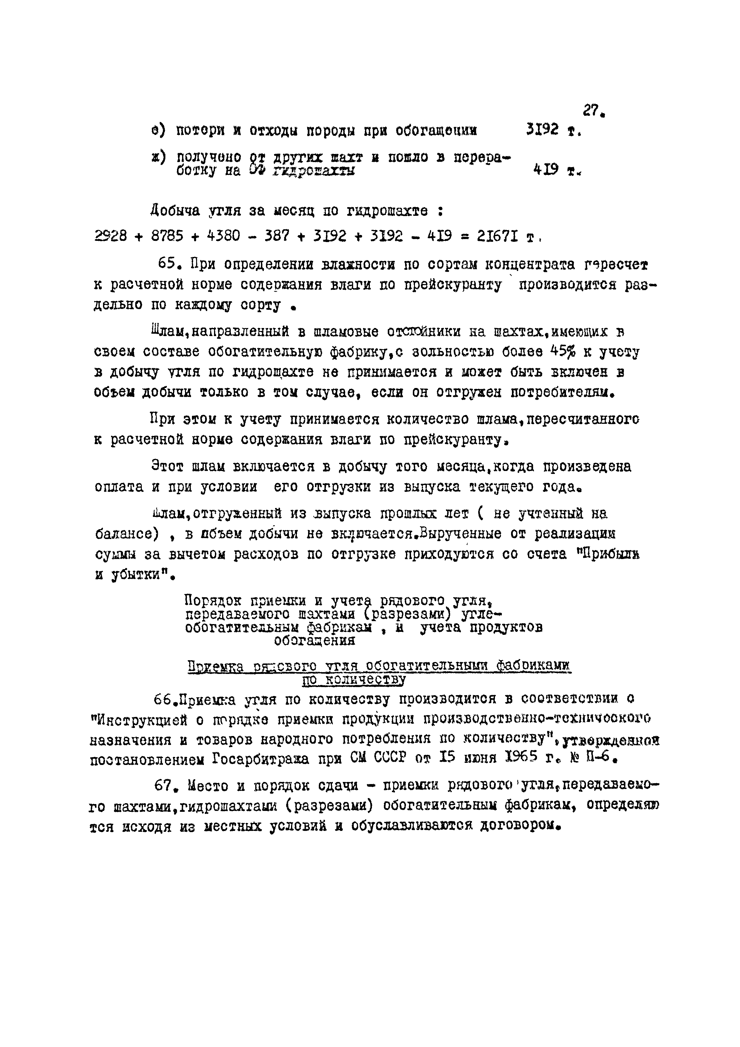 Скачать Инструкция по учету добычи угля (сланца) и продуктов обогащения на шахтах (разрезах) обогатительных фабриках Министерства угольной промышленности СССРДата актуализации: 01.01.2021