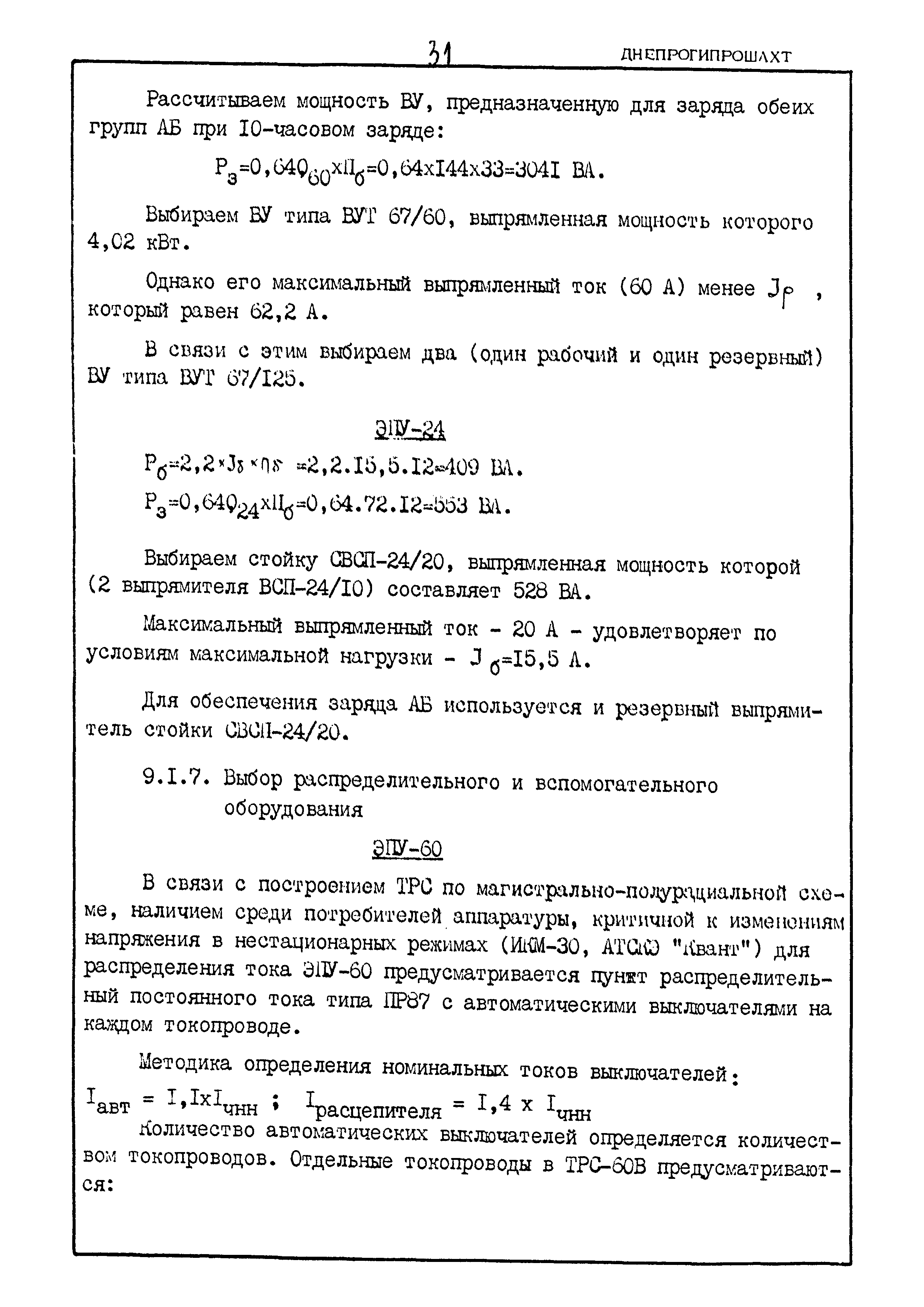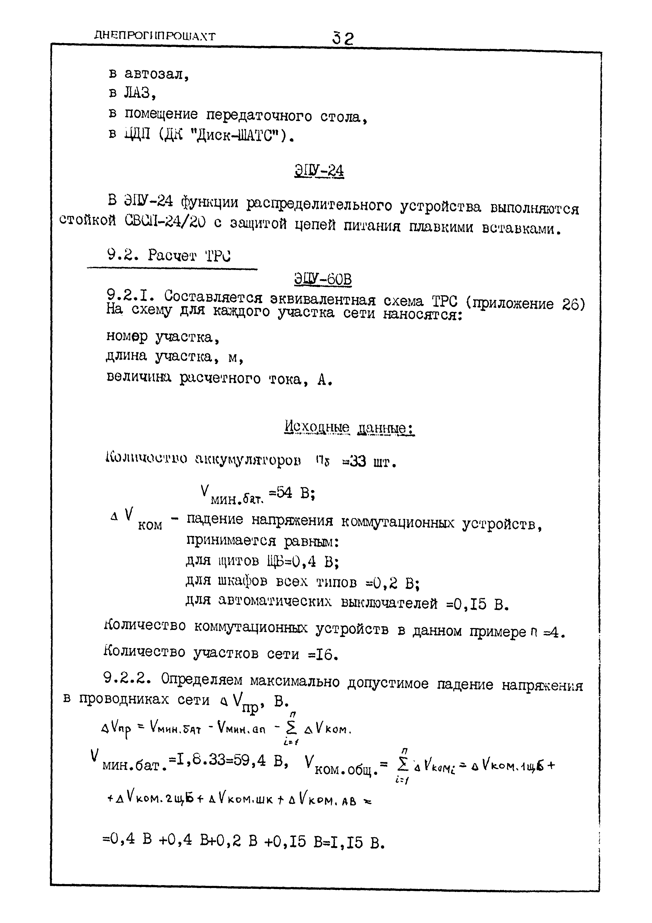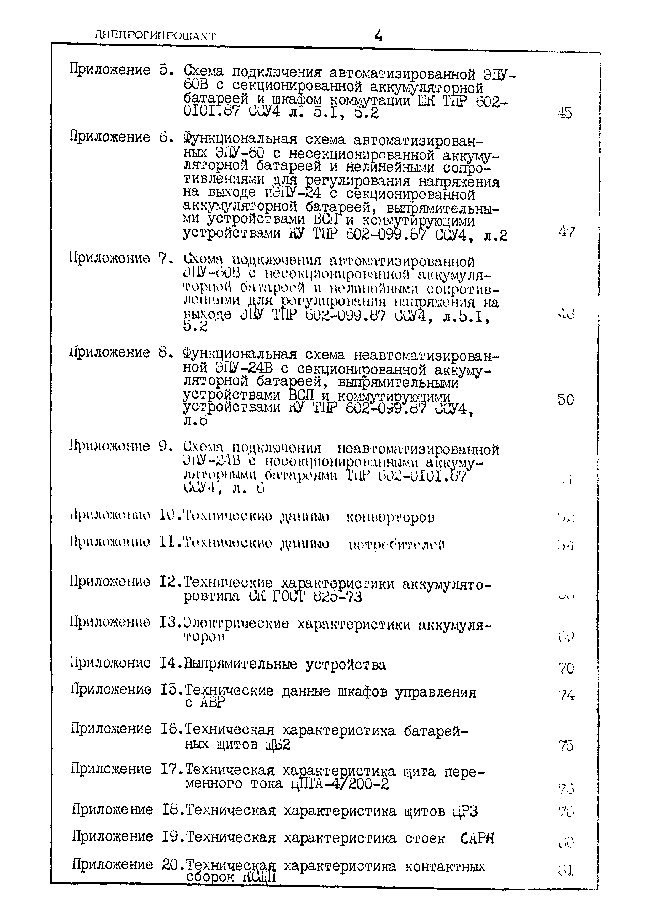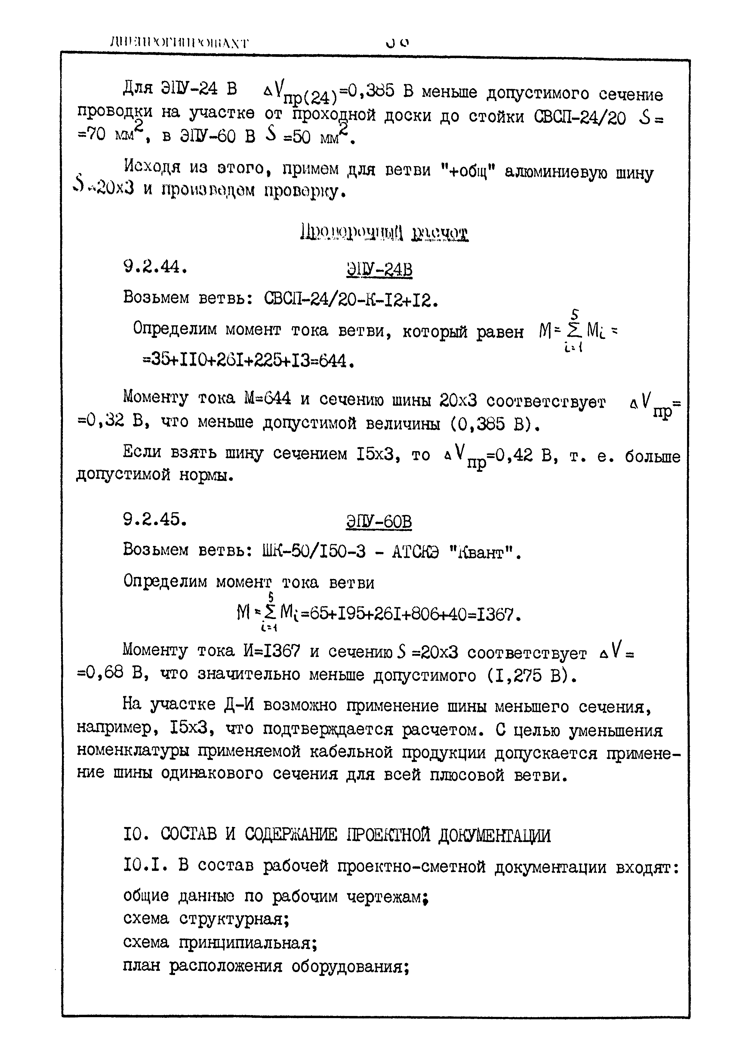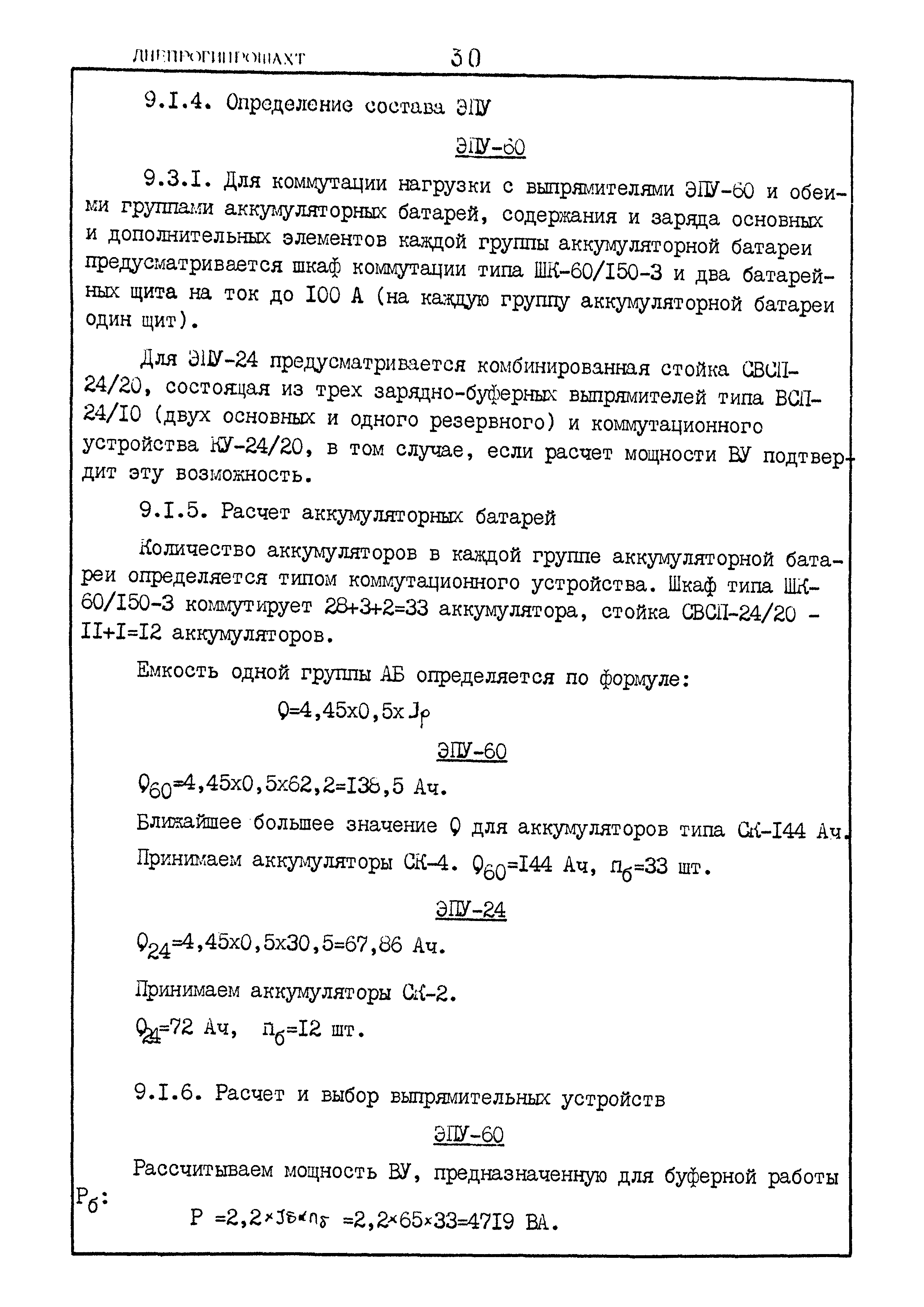 | Оглавление: | 1. Общие положения 2. Нормативные требования к ЭПУ 3. Технология проектирования 4. Выбор схемы построения и расчет ЭПУ 5. Проектирование токораспределительной сети (ТРС) 6. Требования к помещениям ЭПУ 6.1. Архитектурно-строительная часть 6.2. Требования к отоплению и вентиляции 6.3. Требования к водопроводу и канализации 6.4. Требования к электроснабжению и электроосвещению 7. Металлоконструкции 8. Заземляющие устройства 9. Пример расчета ЭПУ 9.1 Расчет ЭПУ 9.2. Расчет ТРС 10. Состав и содержание проектной документации Приложение 1 Перечень действующих нормативных документов, которым следует руководствоваться при проектировании ЭПУ Приложение 2 Функциональная схема автоматизированной ЭПУ-60В с несекционированной аккумуляторной батареей и конверторами Приложение 3 Схема подключения автоматизированной ЭПУ-60В с несекционированной аккумуляторной батареей и конверторами Приложение 4 Функциональная схема автоматизированной ЭПУ-60В с секционированной аккумуляторной батареей и шкафом коммутации ШК и неавтоматизированной ЭПУ-24 с несекционированной аккумуляторной батареей Приложение 5 Схема подключения автоматизированной ЭПУ-60В с секционированной аккумуляторной батареей и шкафом коммутации Приложение 6 Функциональная схема автоматизированных ЭПУ-60В с несекционированной аккумуляторной батареей и нелинейными сопротивлениями для регулирования напряжения на выходе ЭПУ-24 с секционированной аккумуляторной батареей, выпрямительными устройствами ВСП и коммутирующими устройствами Приложение 7 Схема подключения автоматизированной ЭПУ-60В с несекционированной аккумуляторной батареей и нелинейными сопротивлениями для регулирования напряжения на выходе ЭПУ Приложение 8 Функциональная схема неавтоматизированной ЭПУ-24В с секционированной аккумуляторной батареей, выпрямительными устройствами ВСП и коммутирующими устройствами Приложение 9 Схема подключение неавтоматизированной ЭПУ-24В с несекционированными аккумуляторными батареями Приложение 10 Технические данные конвекторов Приложение 11 Технические данные потребителей Приложение 12 Технические характеристики аккумуляторов типа СК ГОСТ 825-73 Приложение 13 Электрические характеристики аккумуляторов Приложение 14 Выпрямительные устройства Приложение 15 Технические данные шкафов управления с АВР Приложение 16 Техническая характеристика батарейных щитов щБ2 Приложение 17 Техническая характеристика щита переменного тока ЩПТА-4/200-2 Приложение 18 Техническая характеристика щитов ЩРЗ Приложение 19 Техническая характеристика стоек САРН Приложение 20 Техническая характеристика контактных сборок КСЩП Приложение 21 Блоки резисторов типа БРР Приложение 22 Устройства индикации тока УИТ Приложение 23 Техническая характеристика УКНБ Приложение 24 Техническая характеристика табло сигнализации ТОС-4 Приложение 25 Типовые чертежи шкафов для диодов Приложение 26 Эквивалентная схема ТРС ЭПУ-60 Приложение 27 Эквивалентная схема ТРС ЭПУ-24 Приложение 28 Таблица моментов тока для алюминиевой и медной проводки Приложение 29 Таблица моментов тока для алюминиевых шин Приложение 30 Схем расположения заземляющих устройств Приложение 31 Схема расположения и эквивалентная схема ТРС |
