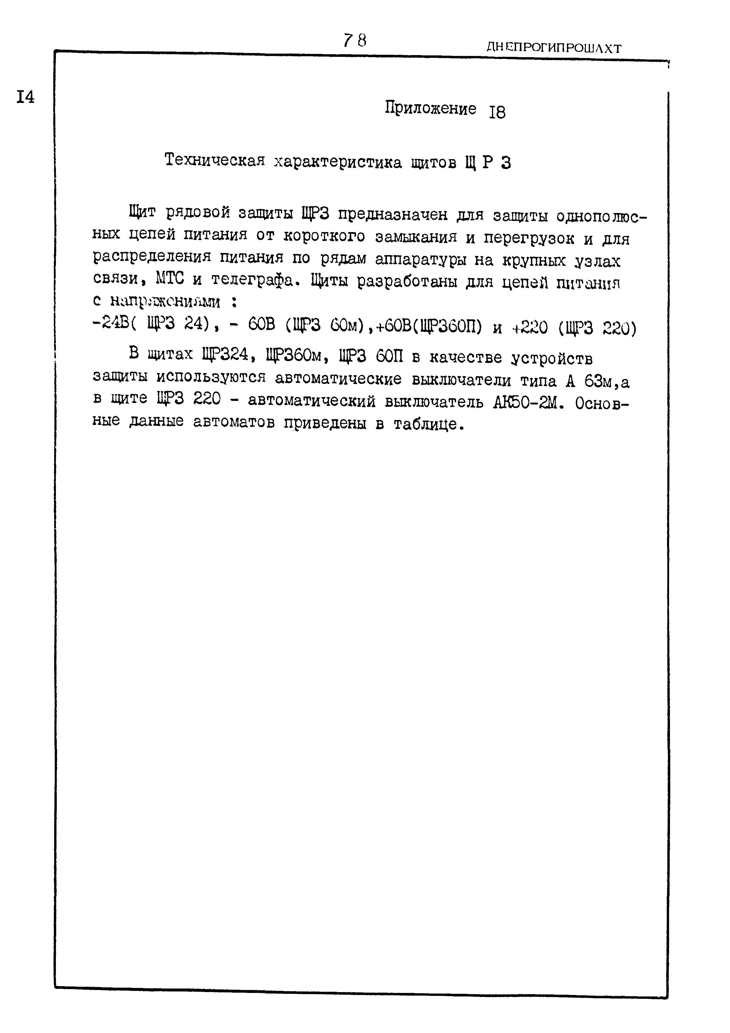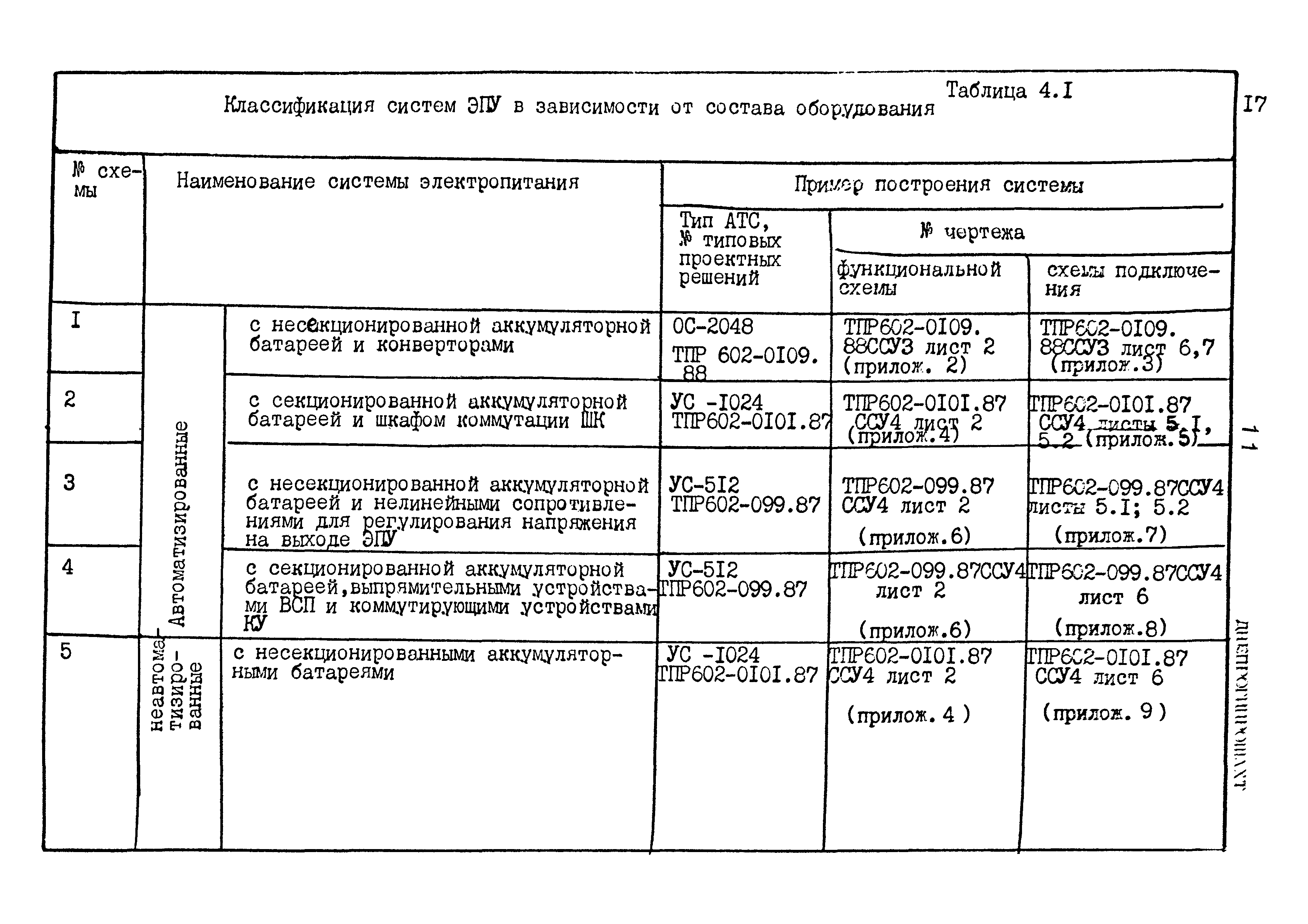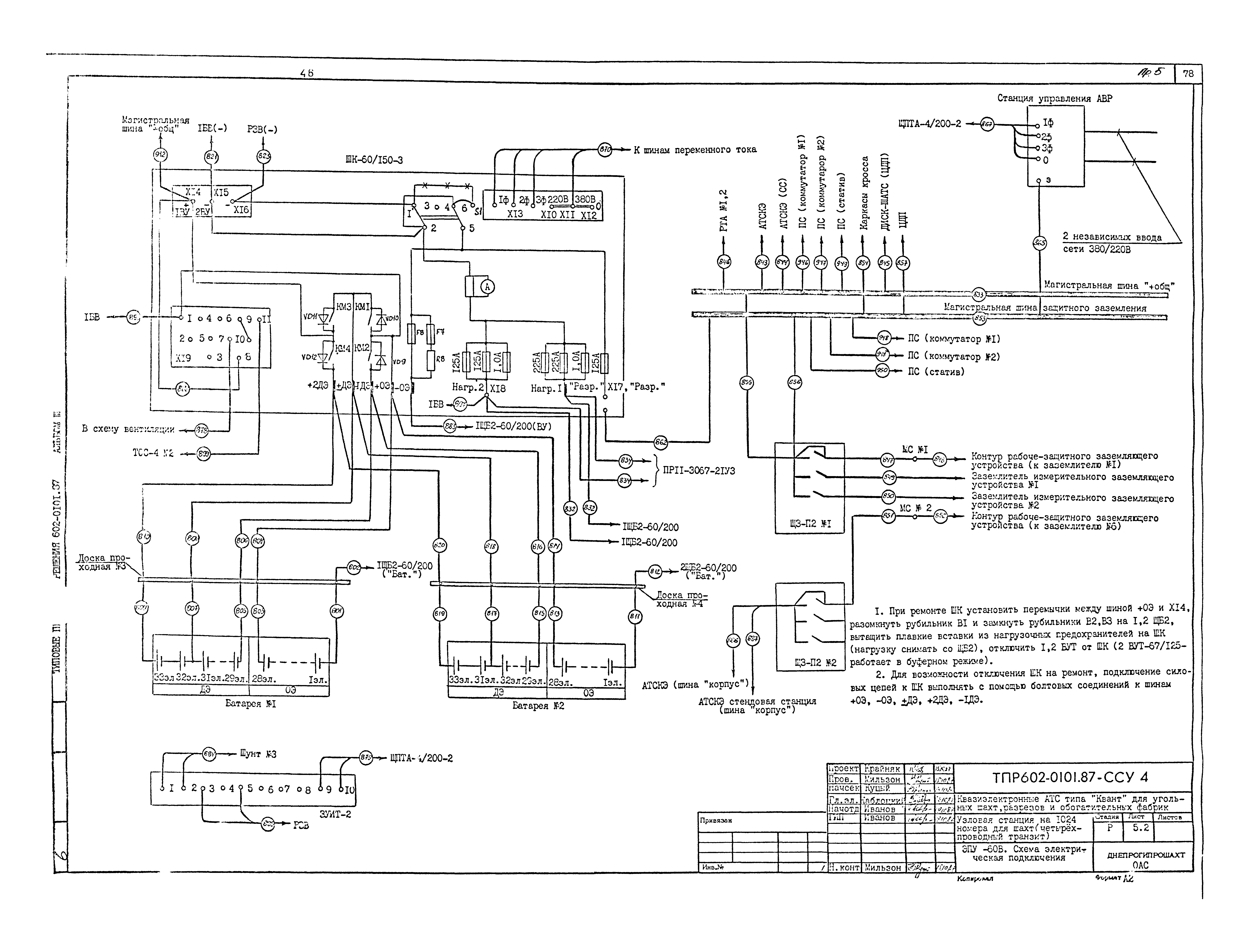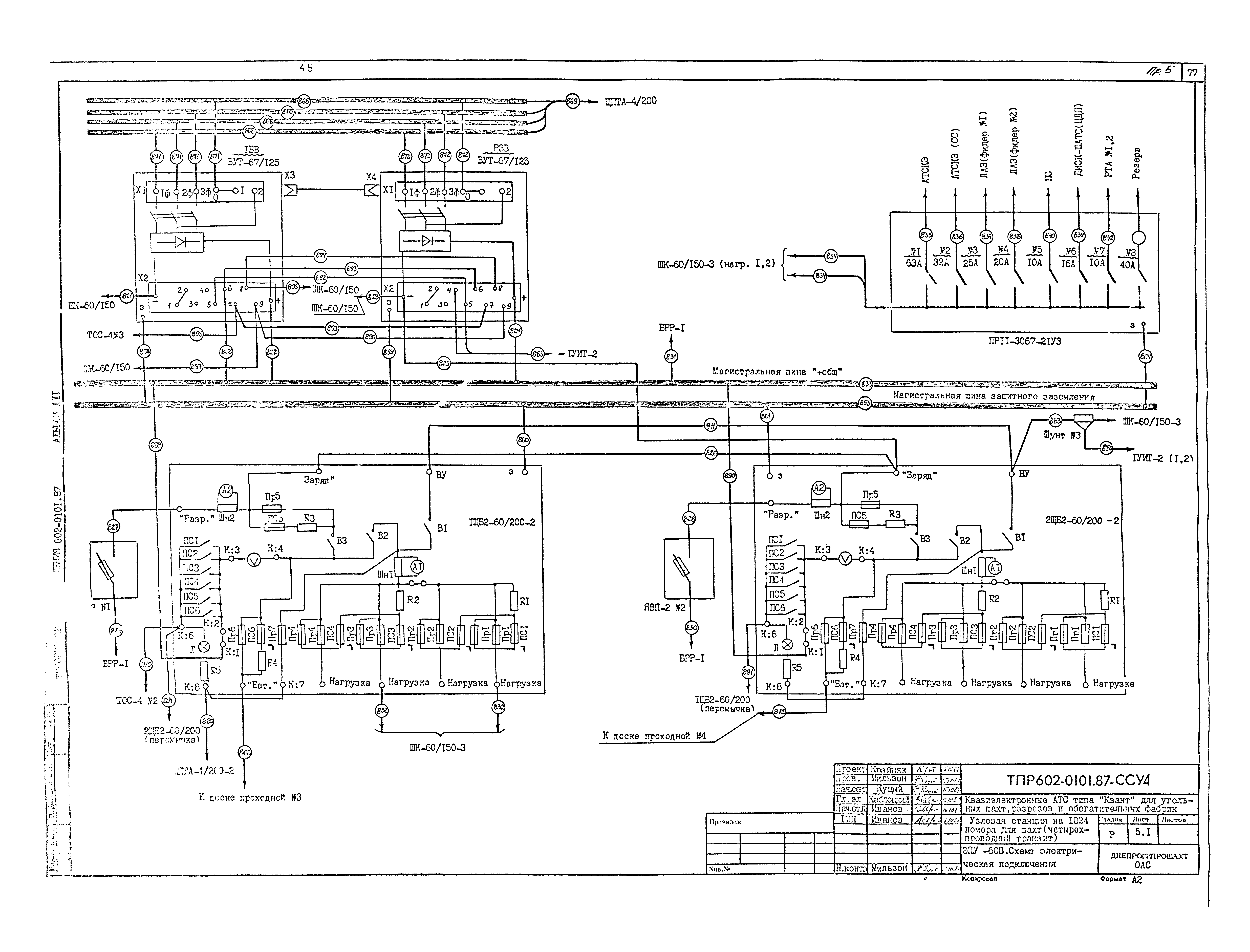 | Оглавление: | 1. Общие положения 2. Нормативные требования к ЭПУ 3. Технология проектирования 4. Выбор схемы построения и расчет ЭПУ 5. Проектирование токораспределительной сети (ТРС) 6. Требования к помещениям ЭПУ 6.1. Архитектурно-строительная часть 6.2. Требования к отоплению и вентиляции 6.3. Требования к водопроводу и канализации 6.4. Требования к электроснабжению и электроосвещению 7. Металлоконструкции 8. Заземляющие устройства 9. Пример расчета ЭПУ 9.1 Расчет ЭПУ 9.2. Расчет ТРС 10. Состав и содержание проектной документации Приложение 1 Перечень действующих нормативных документов, которым следует руководствоваться при проектировании ЭПУ Приложение 2 Функциональная схема автоматизированной ЭПУ-60В с несекционированной аккумуляторной батареей и конверторами Приложение 3 Схема подключения автоматизированной ЭПУ-60В с несекционированной аккумуляторной батареей и конверторами Приложение 4 Функциональная схема автоматизированной ЭПУ-60В с секционированной аккумуляторной батареей и шкафом коммутации ШК и неавтоматизированной ЭПУ-24 с несекционированной аккумуляторной батареей Приложение 5 Схема подключения автоматизированной ЭПУ-60В с секционированной аккумуляторной батареей и шкафом коммутации Приложение 6 Функциональная схема автоматизированных ЭПУ-60В с несекционированной аккумуляторной батареей и нелинейными сопротивлениями для регулирования напряжения на выходе ЭПУ-24 с секционированной аккумуляторной батареей, выпрямительными устройствами ВСП и коммутирующими устройствами Приложение 7 Схема подключения автоматизированной ЭПУ-60В с несекционированной аккумуляторной батареей и нелинейными сопротивлениями для регулирования напряжения на выходе ЭПУ Приложение 8 Функциональная схема неавтоматизированной ЭПУ-24В с секционированной аккумуляторной батареей, выпрямительными устройствами ВСП и коммутирующими устройствами Приложение 9 Схема подключение неавтоматизированной ЭПУ-24В с несекционированными аккумуляторными батареями Приложение 10 Технические данные конвекторов Приложение 11 Технические данные потребителей Приложение 12 Технические характеристики аккумуляторов типа СК ГОСТ 825-73 Приложение 13 Электрические характеристики аккумуляторов Приложение 14 Выпрямительные устройства Приложение 15 Технические данные шкафов управления с АВР Приложение 16 Техническая характеристика батарейных щитов щБ2 Приложение 17 Техническая характеристика щита переменного тока ЩПТА-4/200-2 Приложение 18 Техническая характеристика щитов ЩРЗ Приложение 19 Техническая характеристика стоек САРН Приложение 20 Техническая характеристика контактных сборок КСЩП Приложение 21 Блоки резисторов типа БРР Приложение 22 Устройства индикации тока УИТ Приложение 23 Техническая характеристика УКНБ Приложение 24 Техническая характеристика табло сигнализации ТОС-4 Приложение 25 Типовые чертежи шкафов для диодов Приложение 26 Эквивалентная схема ТРС ЭПУ-60 Приложение 27 Эквивалентная схема ТРС ЭПУ-24 Приложение 28 Таблица моментов тока для алюминиевой и медной проводки Приложение 29 Таблица моментов тока для алюминиевых шин Приложение 30 Схем расположения заземляющих устройств Приложение 31 Схема расположения и эквивалентная схема ТРС |