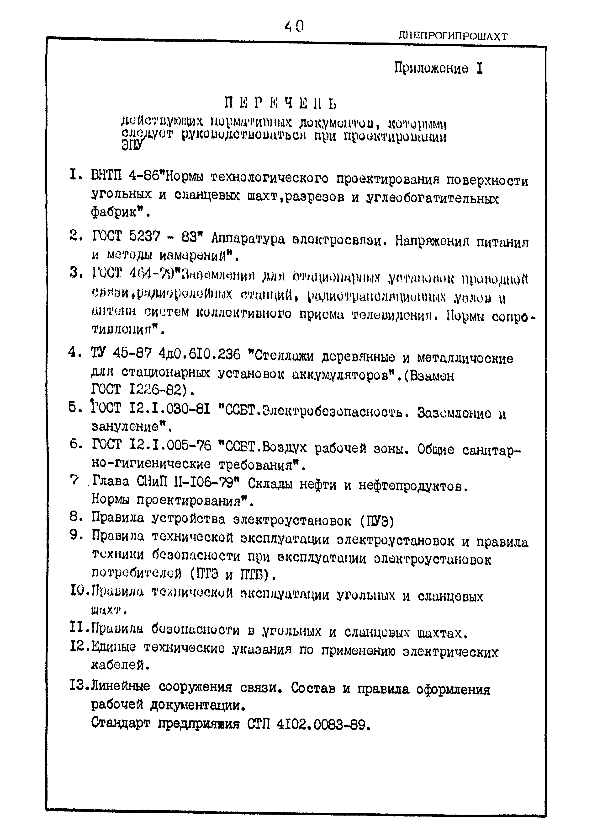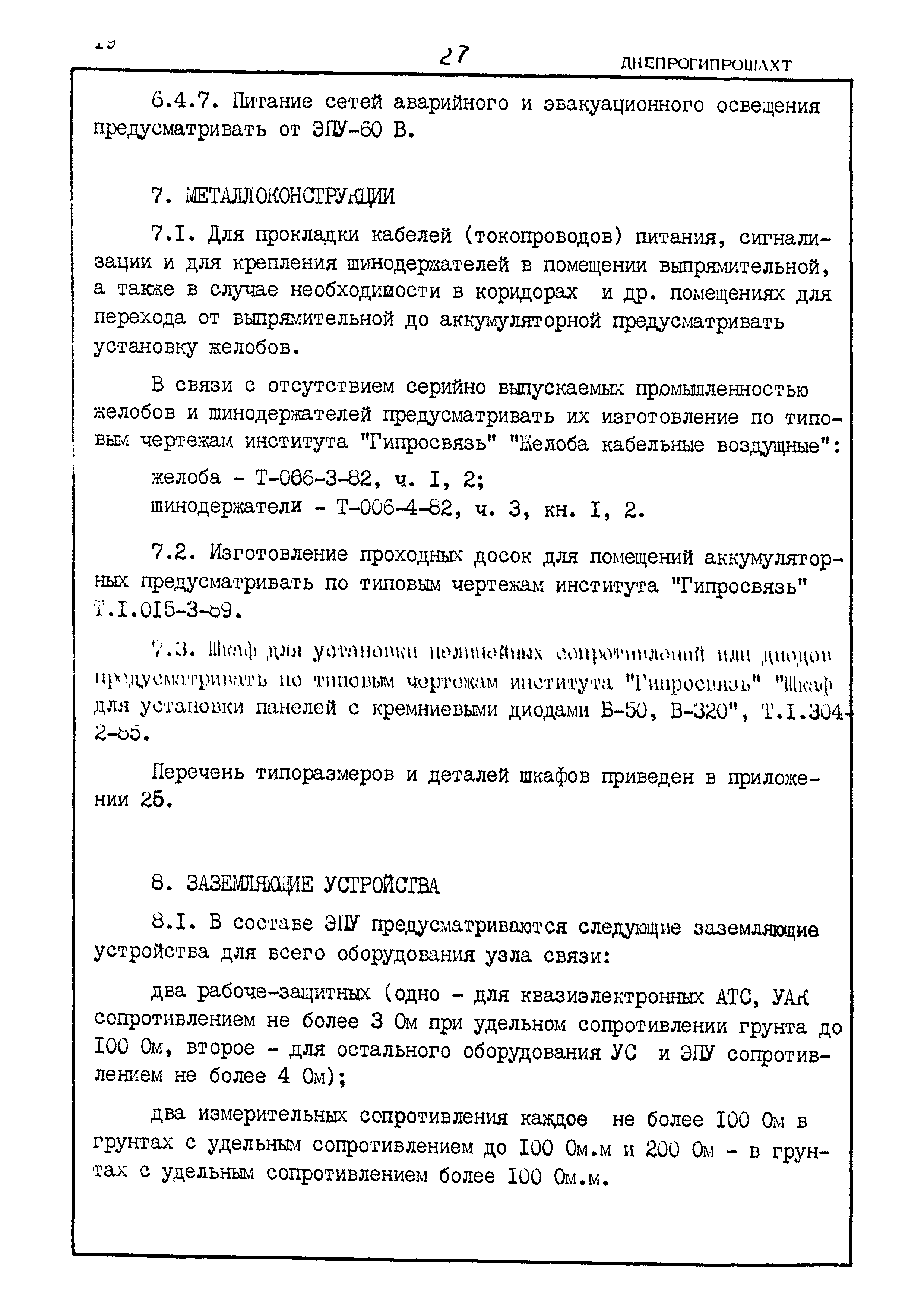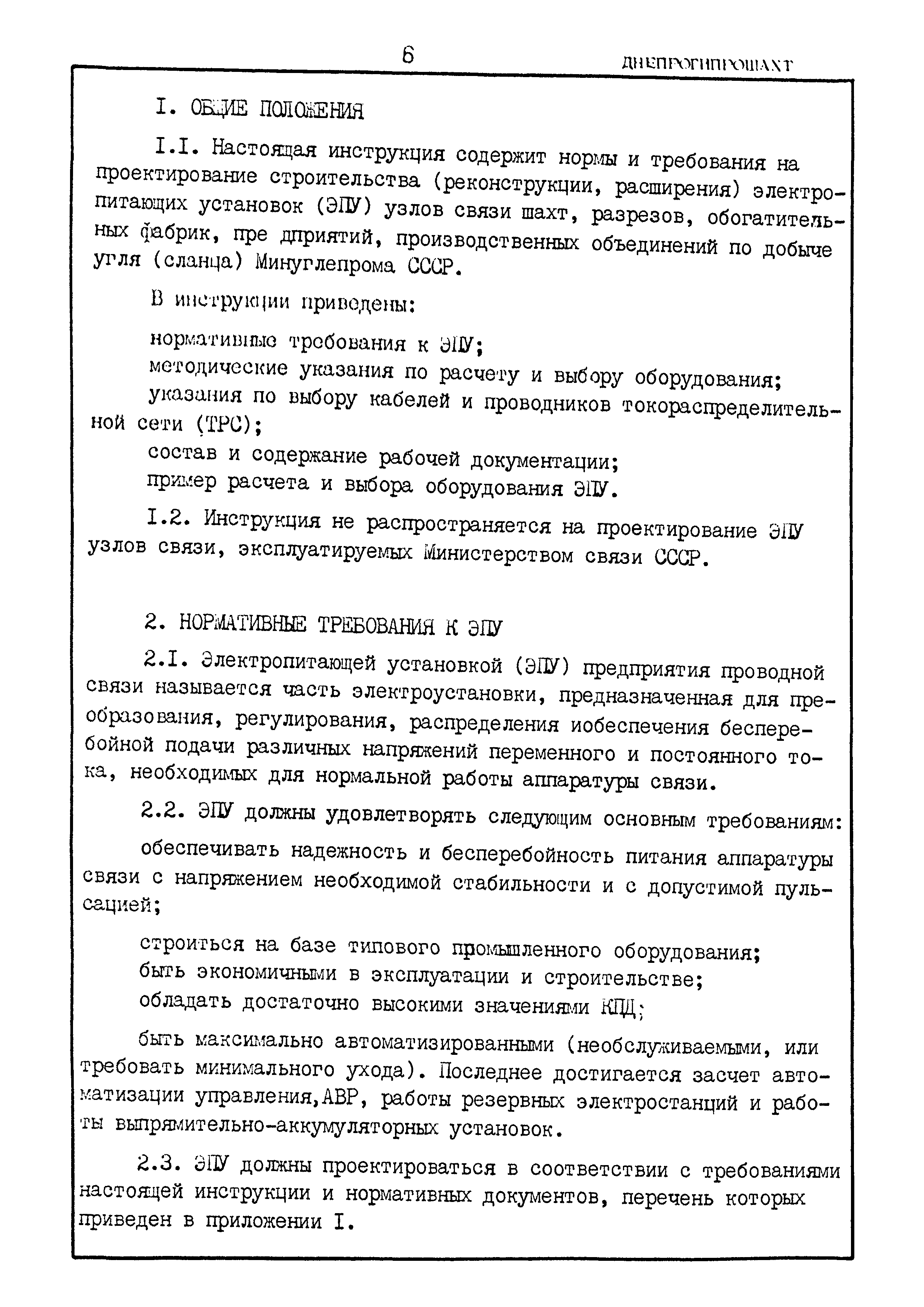 | Область применения: | Инструкция содержит нормы и требования на проектирование строительства (реконструкции, расширения) электропитающих установок узлов связи шахт, разрезов, обогатительных фабрик, предприятий, производственных объединений по добыче угля (сланца) Минуглепрома СССР. Инструкция не распространяется на проектирование электропитающих установок узлов связи, эксплуатируемых Министерством связи СССР. |