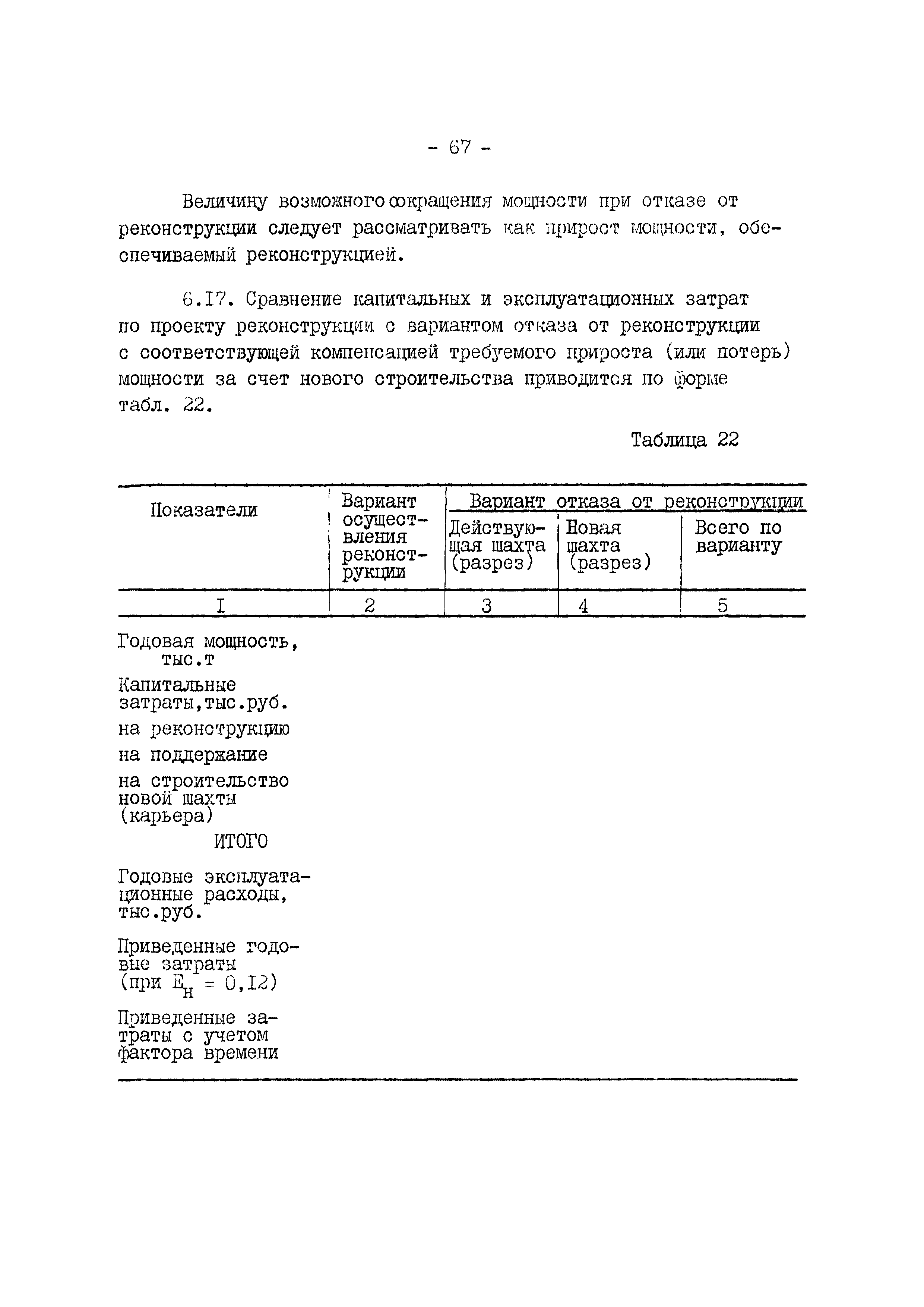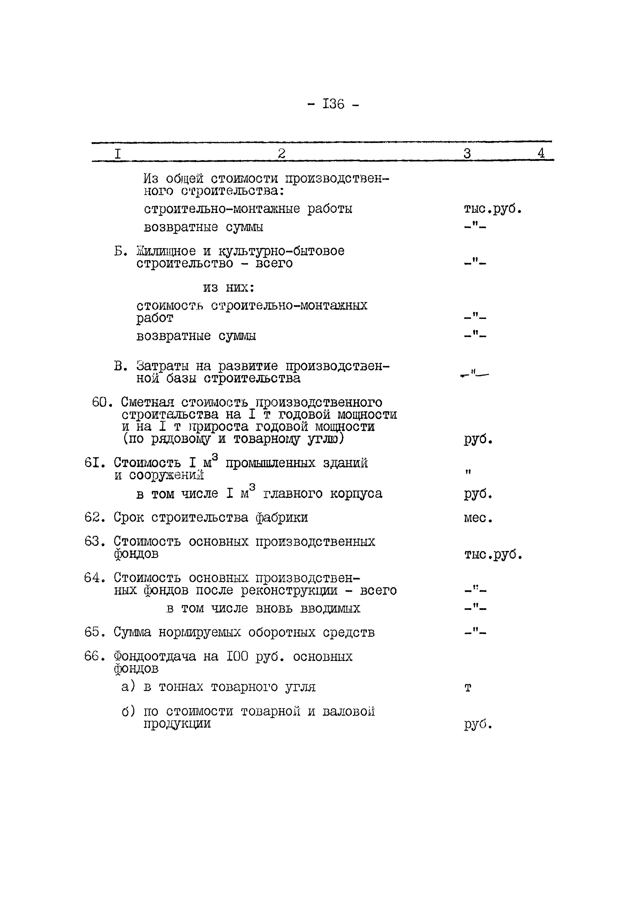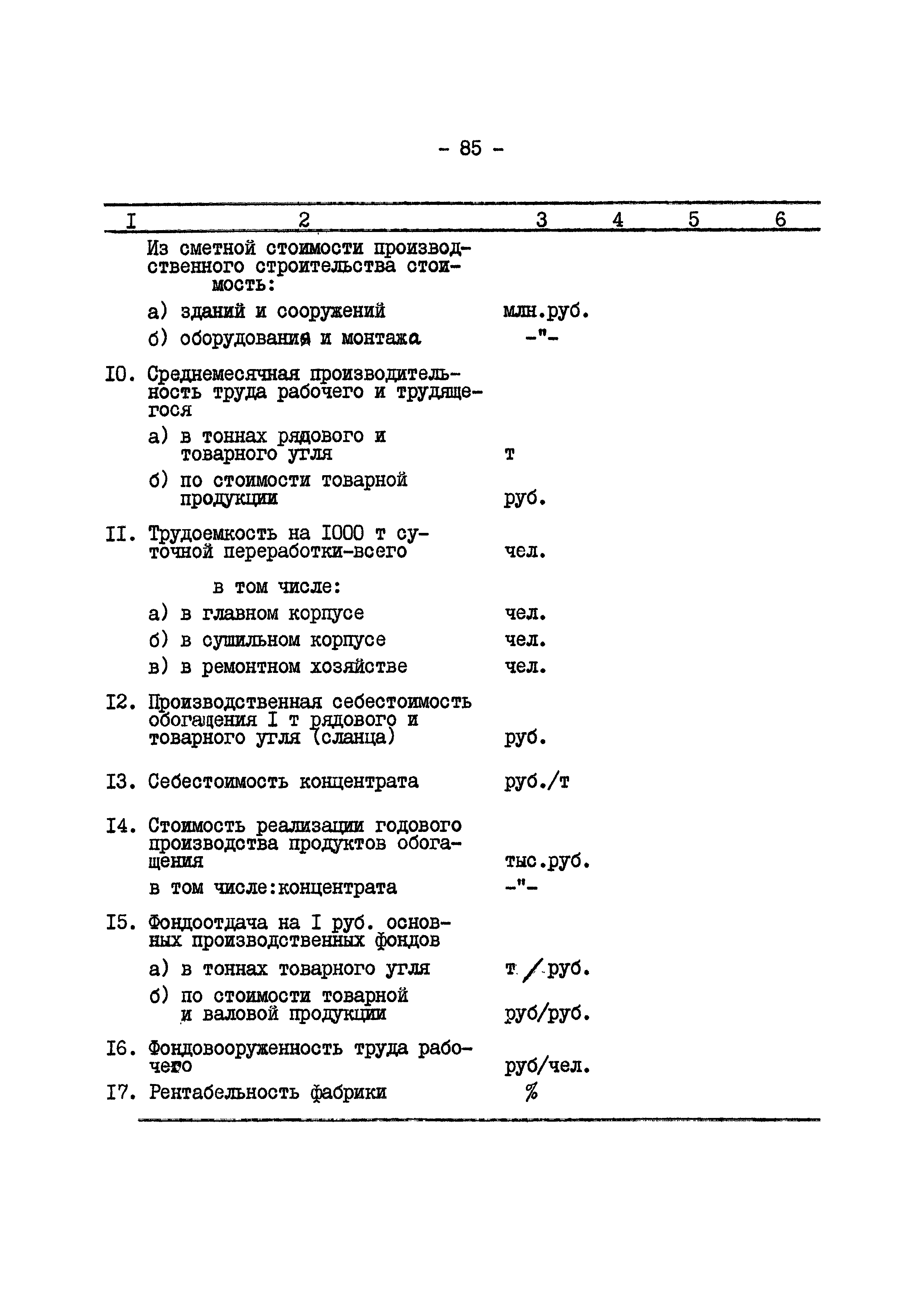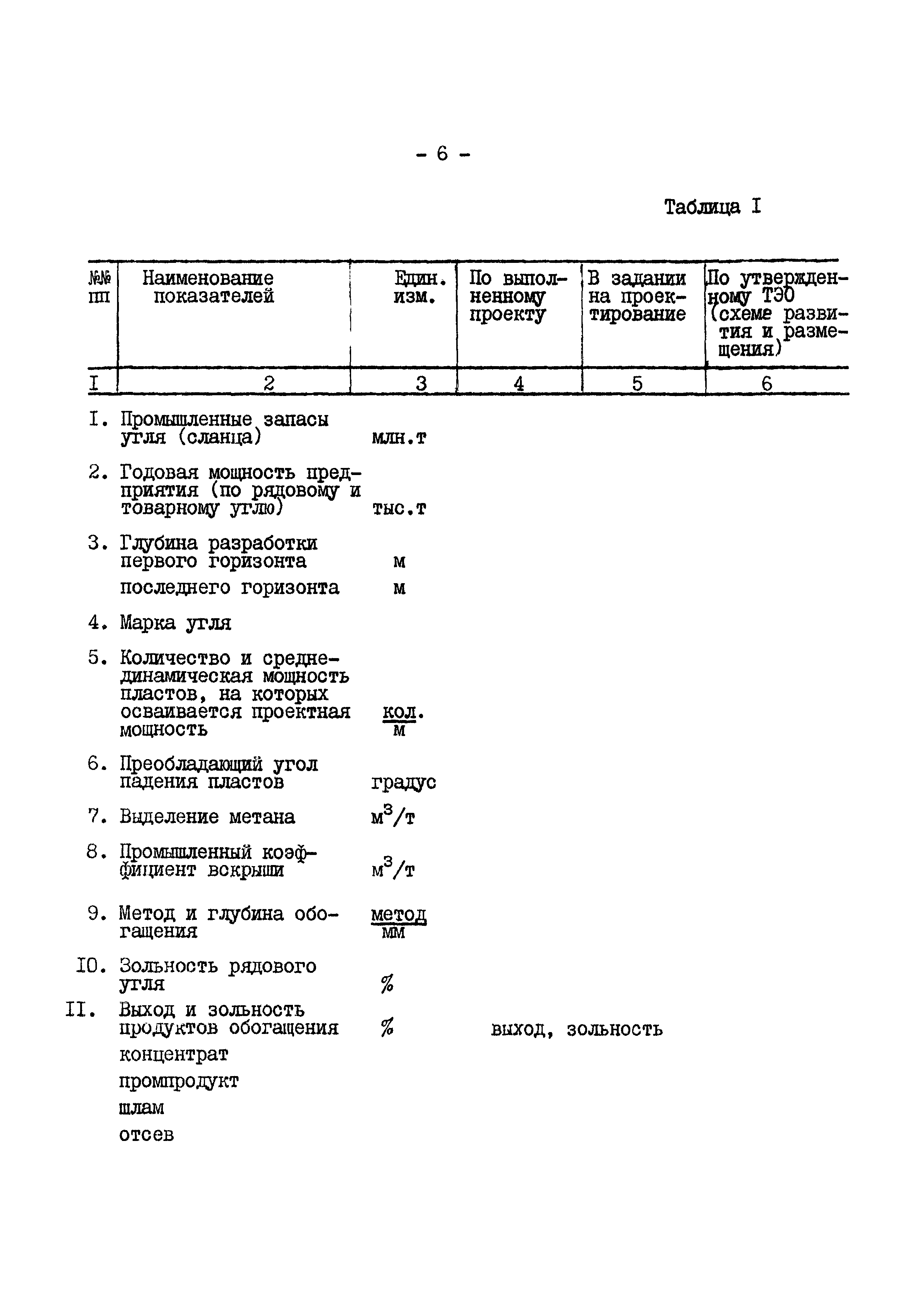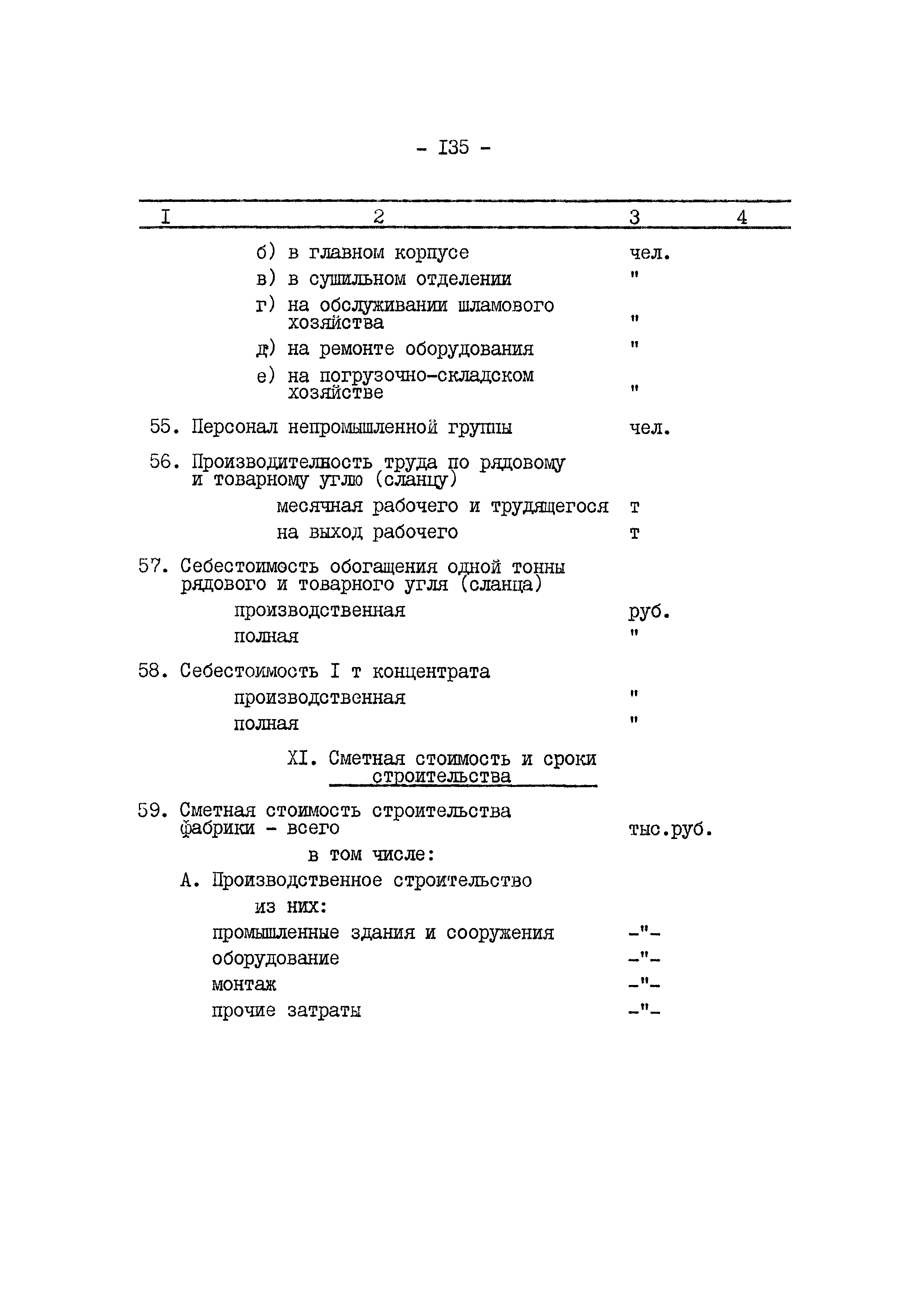 | Оглавление: | I. Целесообразность строительства и реконструкции предприятия и подготовки горизонтов на действующих шахтах II. Капитальные вложения III. Численность трудящихся и производительность труда IV. Себестоимость добычи и обогащения V. Основные промышленно-производственные фонды и нормируете оборотные средства VI. Технико-экономическая эффективность проекта А. Прибыль я рентабельность производства Б. Экономическая эффективность капиталовложении В. Важнейшие технико-экономические показатели проекта в сравнении с показателями лучшего проекта и передового предприятия VII. Технико-экономические показатели выполненного проекта Технико-экономические показатели выполненного проекта шахты Технико-экономические показателя выполненного проекта разреза Технико-экономические показатели выполненного проекта обогатительной фабрики Приложение 1. Перечень профессий рабочих предприятий и строек угольной и сланцевой промышленности Приложение 2. То же, рабочих железнодорожных цехов Приложение 3. Перечень производственных процессов по шахтам, разрезам и обогатительным фабрикам Приложение 4. Перечень работников непромышленной группы Приложение 5. Распределение рабочих шахт по степени механизации труда Приложение 6. Распределение рабочих разрезов по степени механизации труда Приложение 7. Распределение рабочих углеобогатительных фабрик по степени механизации труда Приложение 8. Перечень горных выработок капитального характера на шахтах и разрезах Приложение 9. Инструкция по применению норм продолжительности освоения проектных мощностей новыми и реконструируемыми угольными, сланцевыми шахтами, разрезами и обогатительными/брикетными/фабриками и определению объемов добычи/переработки/угля, сланцев при текущем и перспективном планировании Приложение 10. Инструкция о порядке учета добычи угля, производительности труда рабочих и себестоимости тонны угля в товарном исчислении Приложение 11. Директивное письмо Минуглепрома СССР № Д-87 от 18 августа 1970 г. Приложение 12. Перечень объектов, относящихся к внешним коммуникациям и сооружаемых при долевом участии Приложение 13. Примерные формы для расчета численности рабочих, затрат на материалы и амортизационных отчислений |