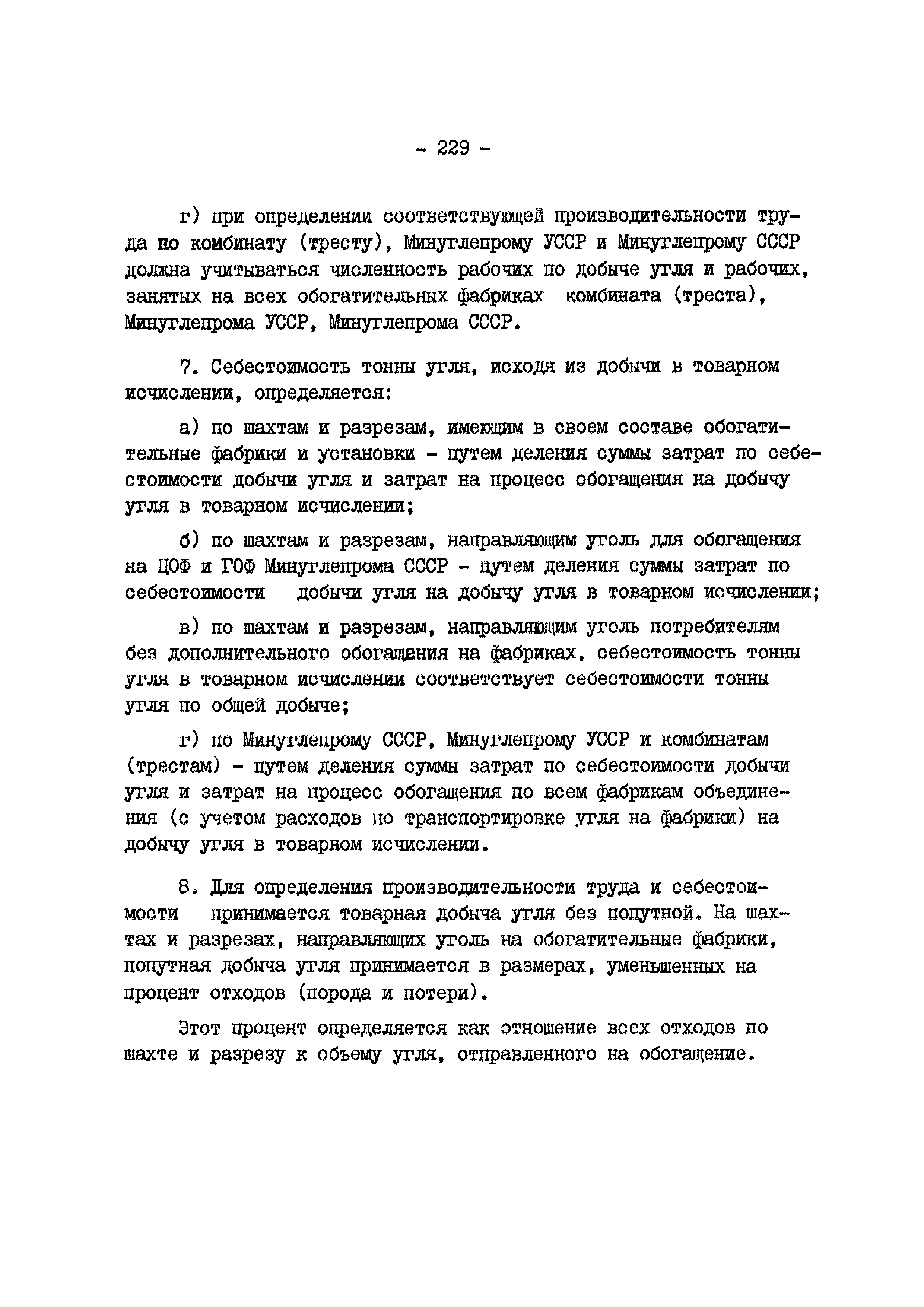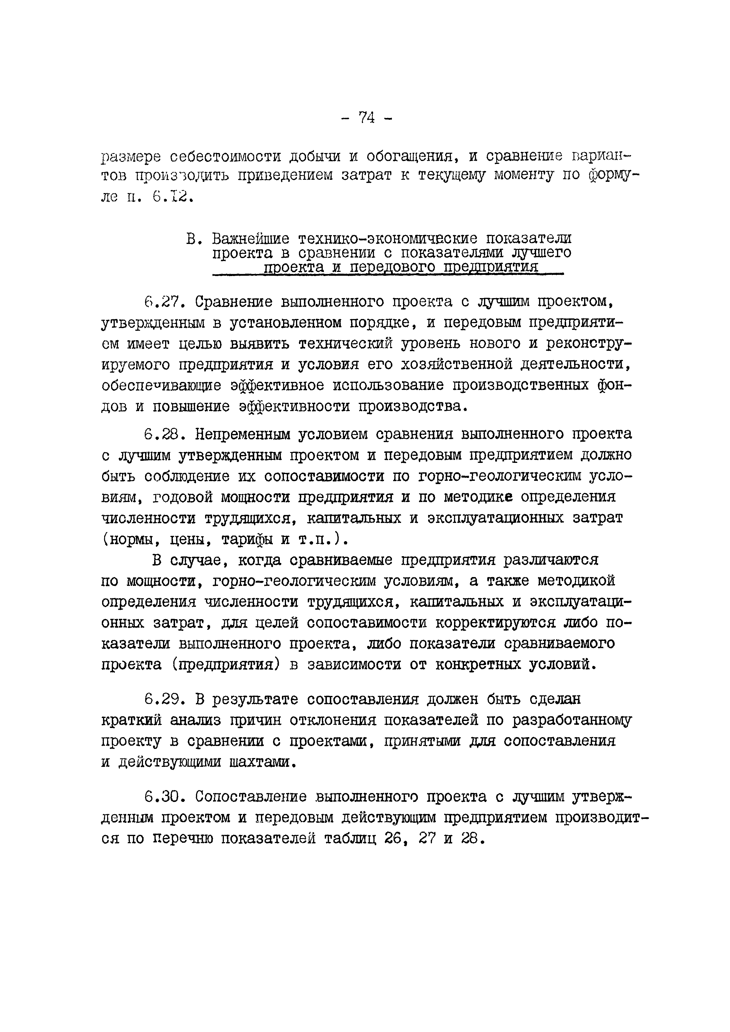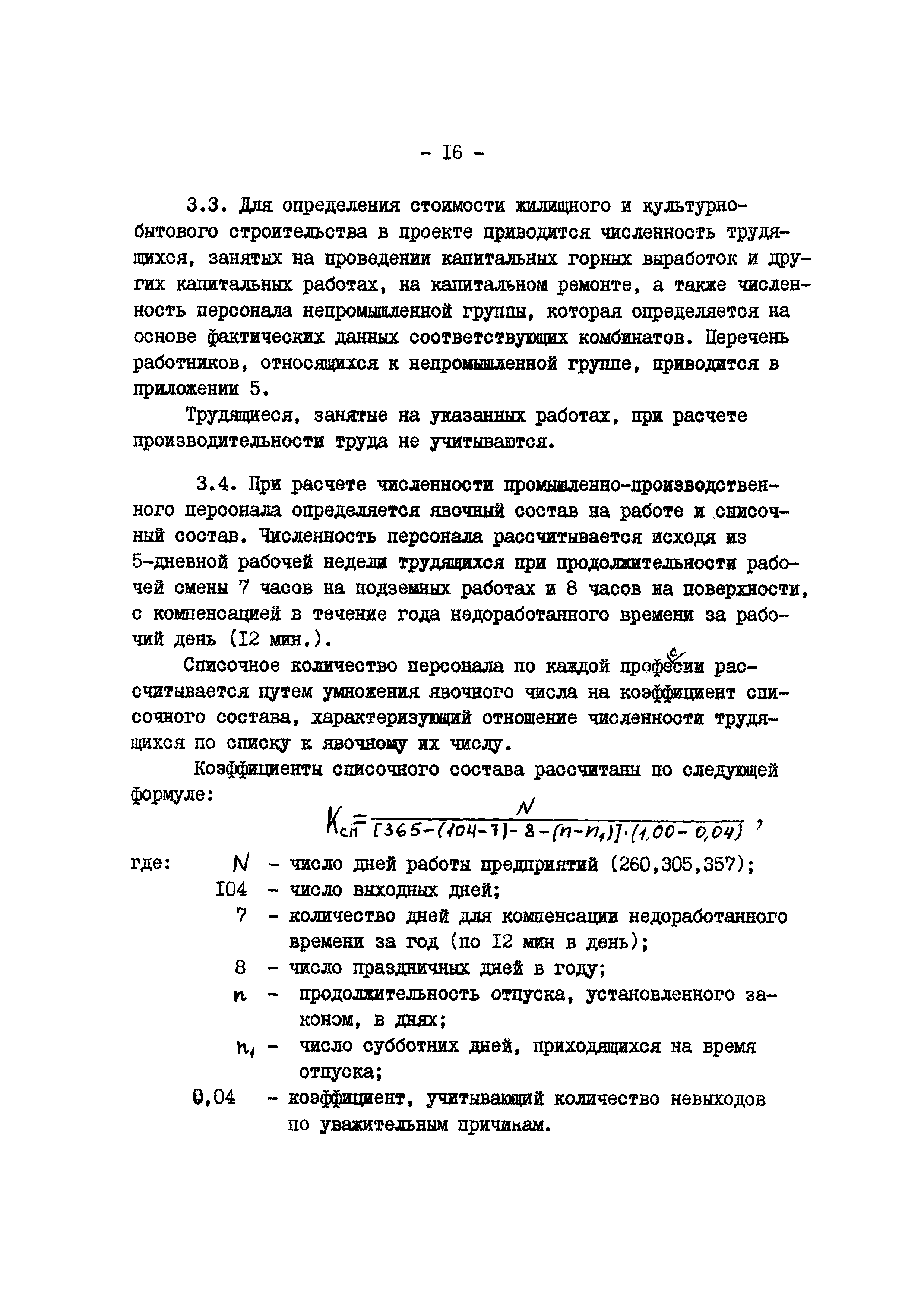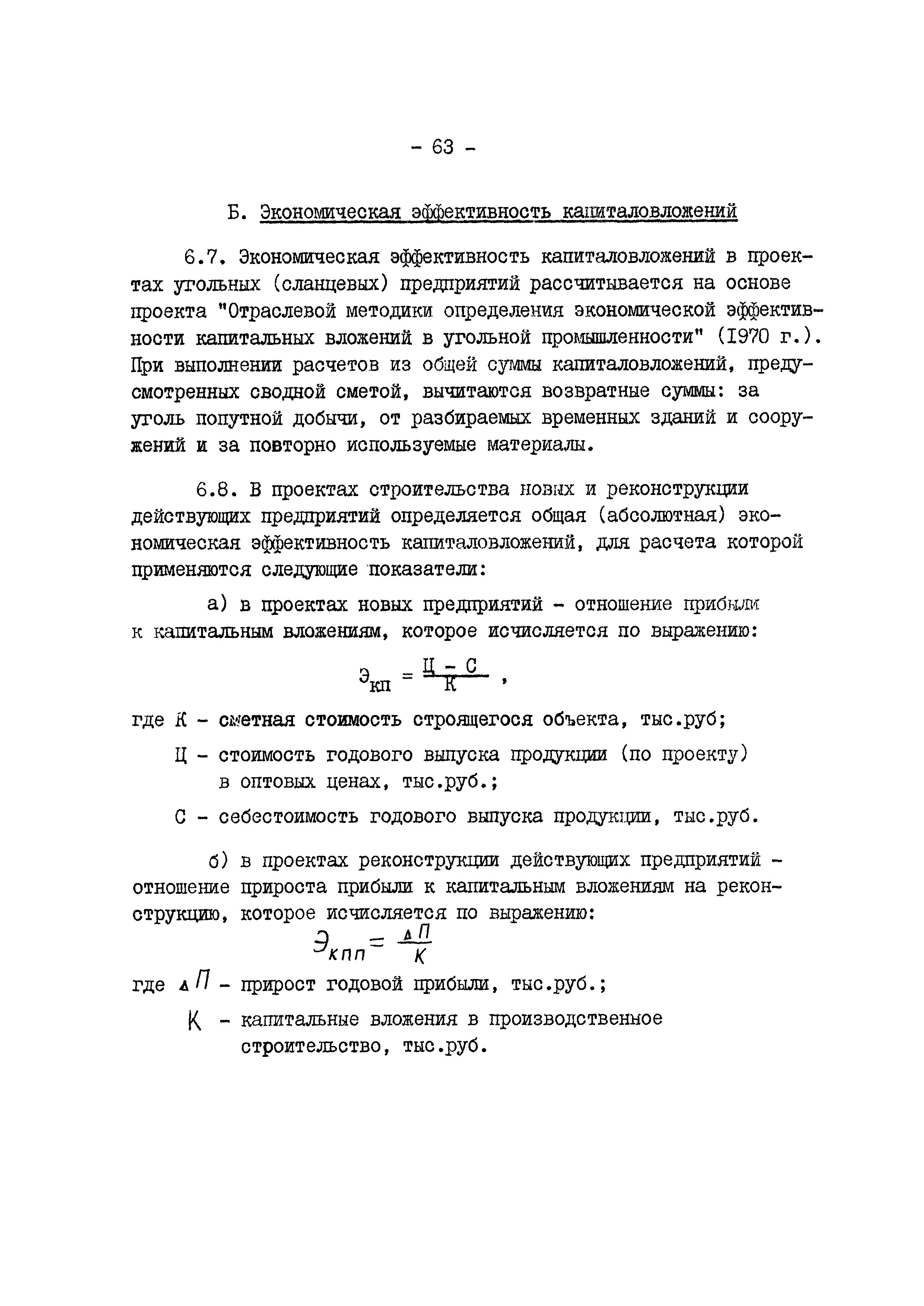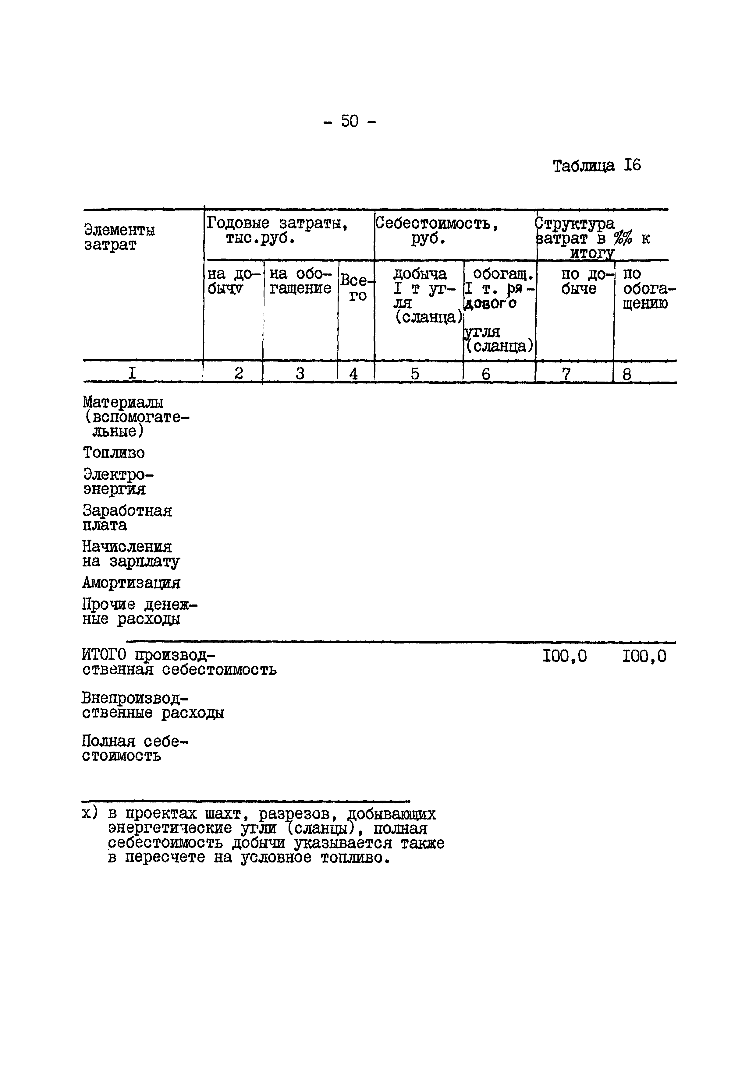 | Оглавление: | I. Целесообразность строительства и реконструкции предприятия и подготовки горизонтов на действующих шахтах II. Капитальные вложения III. Численность трудящихся и производительность труда IV. Себестоимость добычи и обогащения V. Основные промышленно-производственные фонды и нормируете оборотные средства VI. Технико-экономическая эффективность проекта А. Прибыль я рентабельность производства Б. Экономическая эффективность капиталовложении В. Важнейшие технико-экономические показатели проекта в сравнении с показателями лучшего проекта и передового предприятия VII. Технико-экономические показатели выполненного проекта Технико-экономические показатели выполненного проекта шахты Технико-экономические показателя выполненного проекта разреза Технико-экономические показатели выполненного проекта обогатительной фабрики Приложение 1. Перечень профессий рабочих предприятий и строек угольной и сланцевой промышленности Приложение 2. То же, рабочих железнодорожных цехов Приложение 3. Перечень производственных процессов по шахтам, разрезам и обогатительным фабрикам Приложение 4. Перечень работников непромышленной группы Приложение 5. Распределение рабочих шахт по степени механизации труда Приложение 6. Распределение рабочих разрезов по степени механизации труда Приложение 7. Распределение рабочих углеобогатительных фабрик по степени механизации труда Приложение 8. Перечень горных выработок капитального характера на шахтах и разрезах Приложение 9. Инструкция по применению норм продолжительности освоения проектных мощностей новыми и реконструируемыми угольными, сланцевыми шахтами, разрезами и обогатительными/брикетными/фабриками и определению объемов добычи/переработки/угля, сланцев при текущем и перспективном планировании Приложение 10. Инструкция о порядке учета добычи угля, производительности труда рабочих и себестоимости тонны угля в товарном исчислении Приложение 11. Директивное письмо Минуглепрома СССР № Д-87 от 18 августа 1970 г. Приложение 12. Перечень объектов, относящихся к внешним коммуникациям и сооружаемых при долевом участии Приложение 13. Примерные формы для расчета численности рабочих, затрат на материалы и амортизационных отчислений |