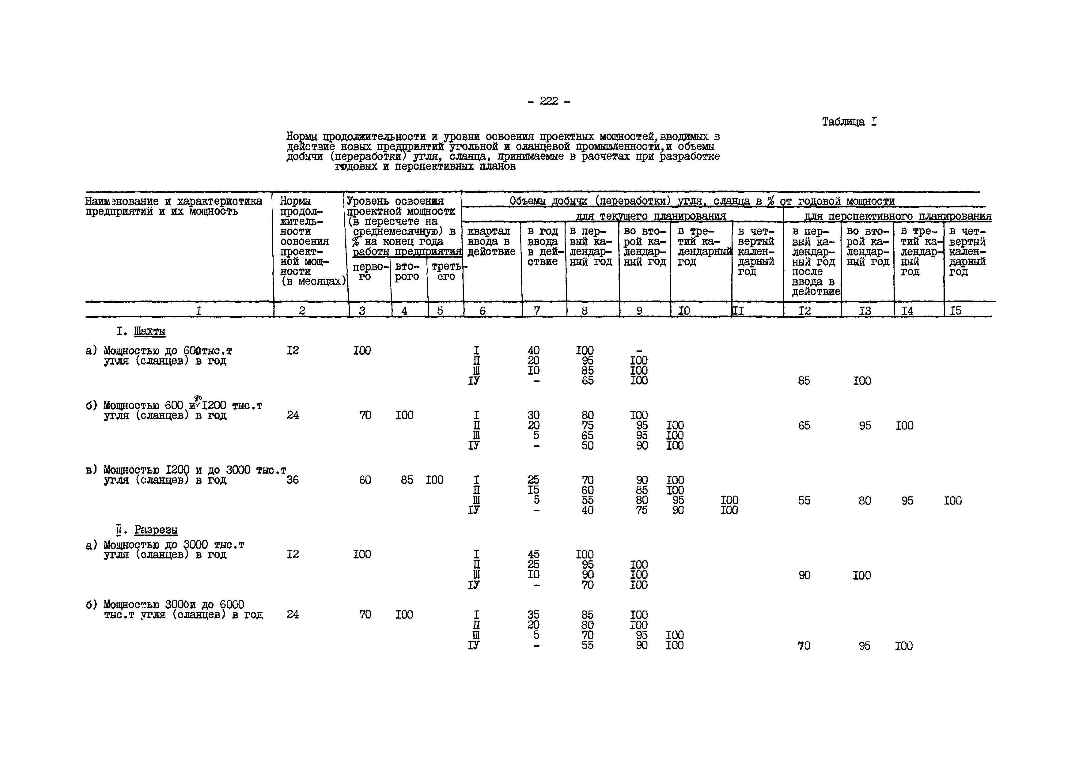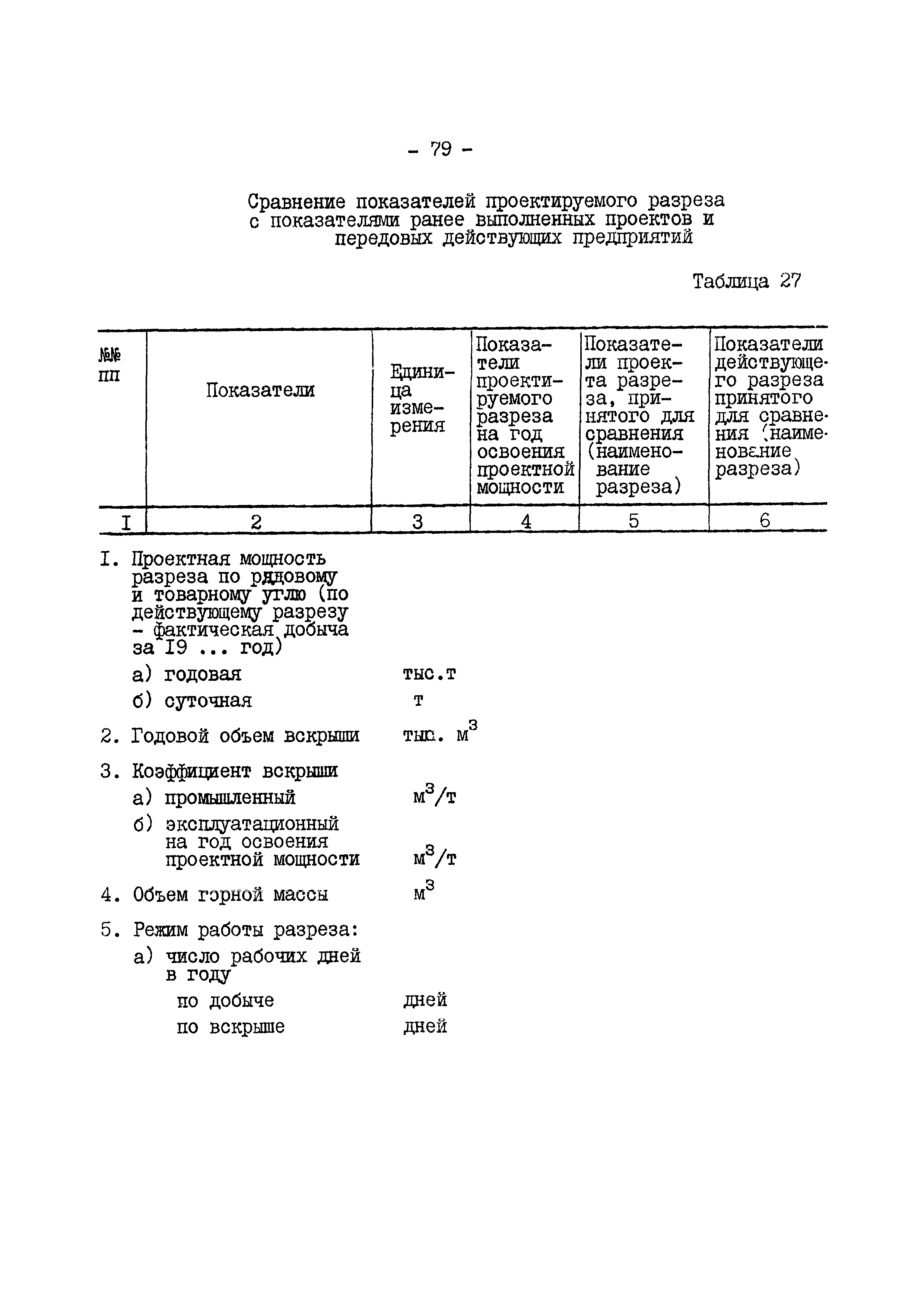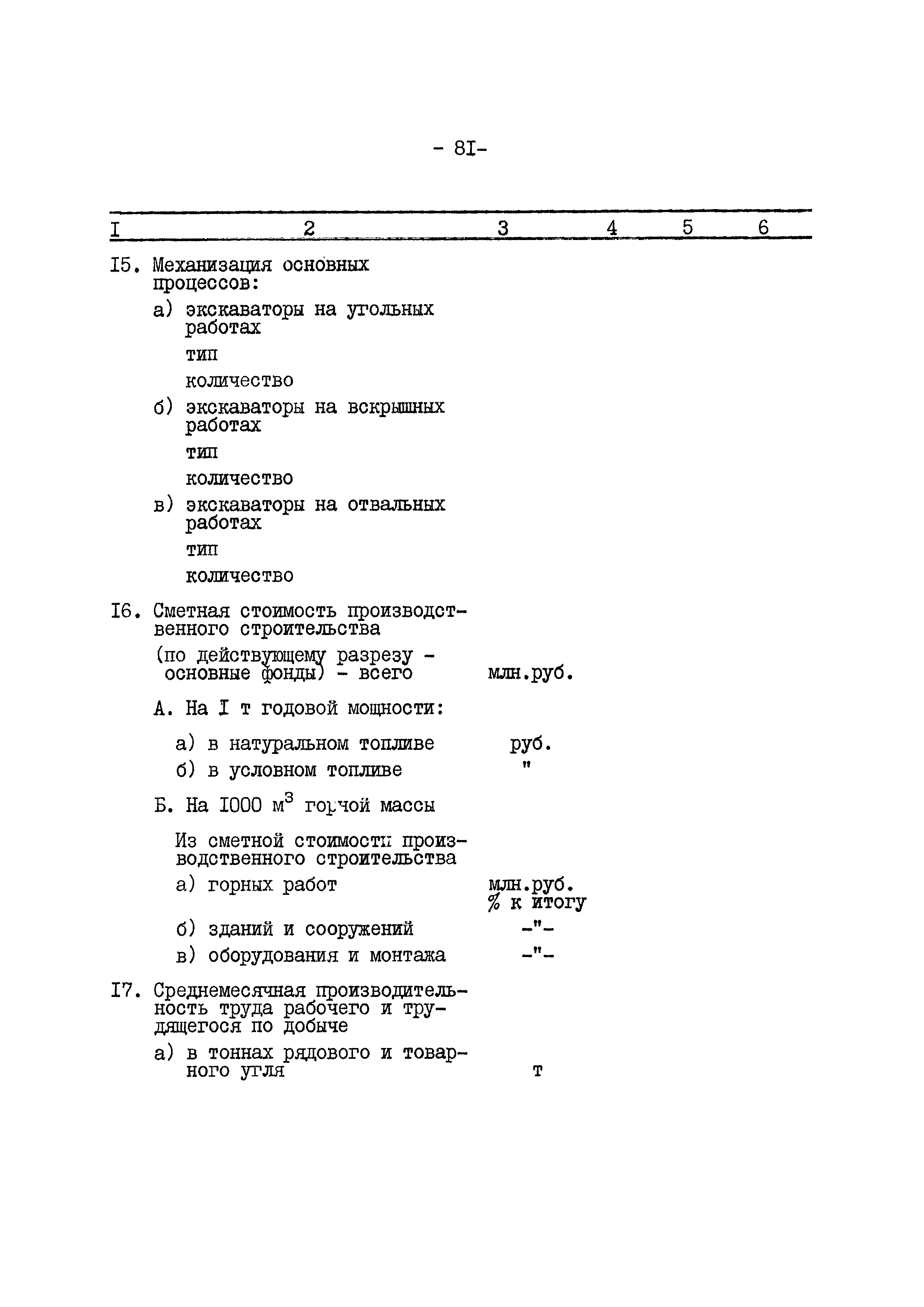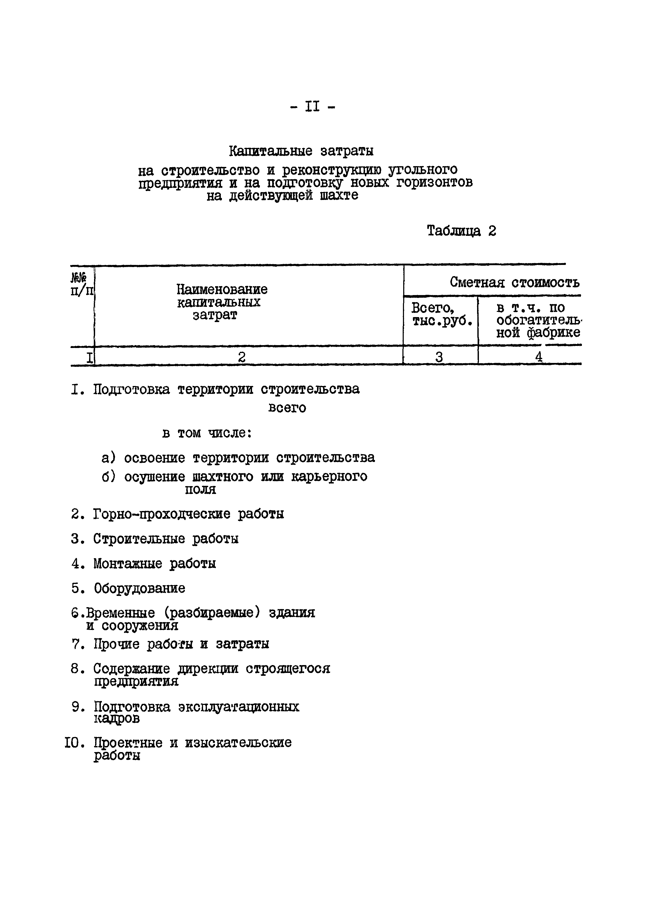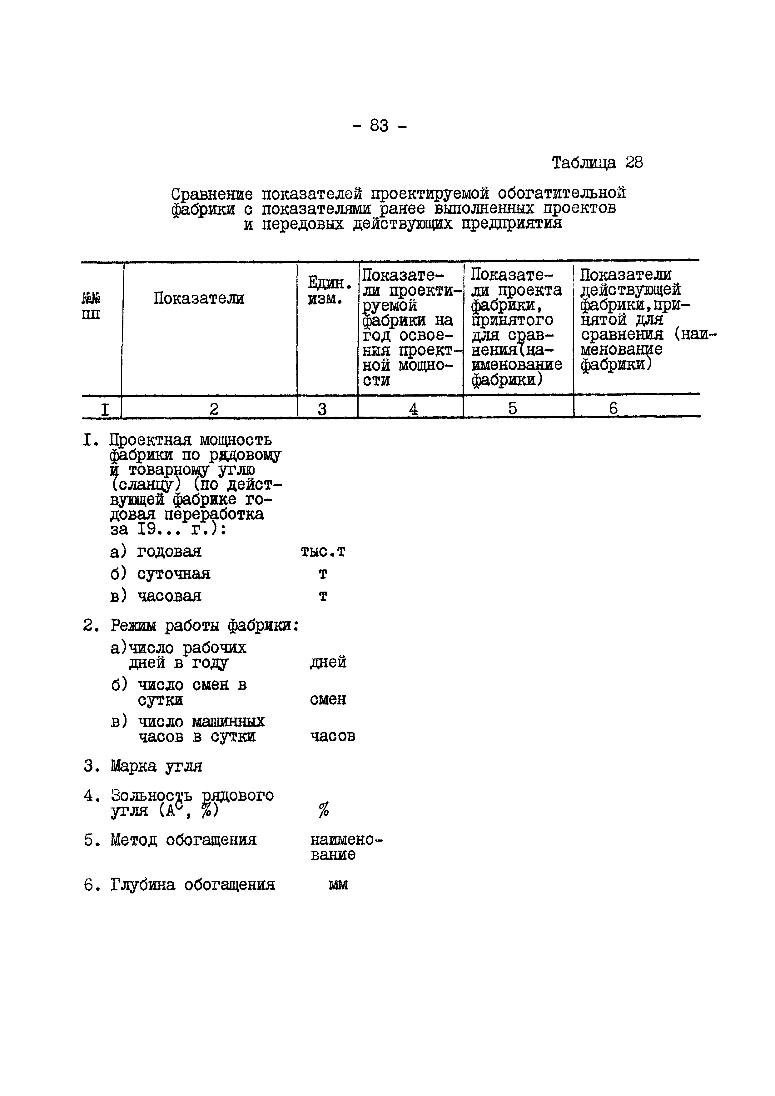 | Оглавление: | I. Целесообразность строительства и реконструкции предприятия и подготовки горизонтов на действующих шахтах II. Капитальные вложения III. Численность трудящихся и производительность труда IV. Себестоимость добычи и обогащения V. Основные промышленно-производственные фонды и нормируете оборотные средства VI. Технико-экономическая эффективность проекта А. Прибыль я рентабельность производства Б. Экономическая эффективность капиталовложении В. Важнейшие технико-экономические показатели проекта в сравнении с показателями лучшего проекта и передового предприятия VII. Технико-экономические показатели выполненного проекта Технико-экономические показатели выполненного проекта шахты Технико-экономические показателя выполненного проекта разреза Технико-экономические показатели выполненного проекта обогатительной фабрики Приложение 1. Перечень профессий рабочих предприятий и строек угольной и сланцевой промышленности Приложение 2. То же, рабочих железнодорожных цехов Приложение 3. Перечень производственных процессов по шахтам, разрезам и обогатительным фабрикам Приложение 4. Перечень работников непромышленной группы Приложение 5. Распределение рабочих шахт по степени механизации труда Приложение 6. Распределение рабочих разрезов по степени механизации труда Приложение 7. Распределение рабочих углеобогатительных фабрик по степени механизации труда Приложение 8. Перечень горных выработок капитального характера на шахтах и разрезах Приложение 9. Инструкция по применению норм продолжительности освоения проектных мощностей новыми и реконструируемыми угольными, сланцевыми шахтами, разрезами и обогатительными/брикетными/фабриками и определению объемов добычи/переработки/угля, сланцев при текущем и перспективном планировании Приложение 10. Инструкция о порядке учета добычи угля, производительности труда рабочих и себестоимости тонны угля в товарном исчислении Приложение 11. Директивное письмо Минуглепрома СССР № Д-87 от 18 августа 1970 г. Приложение 12. Перечень объектов, относящихся к внешним коммуникациям и сооружаемых при долевом участии Приложение 13. Примерные формы для расчета численности рабочих, затрат на материалы и амортизационных отчислений |