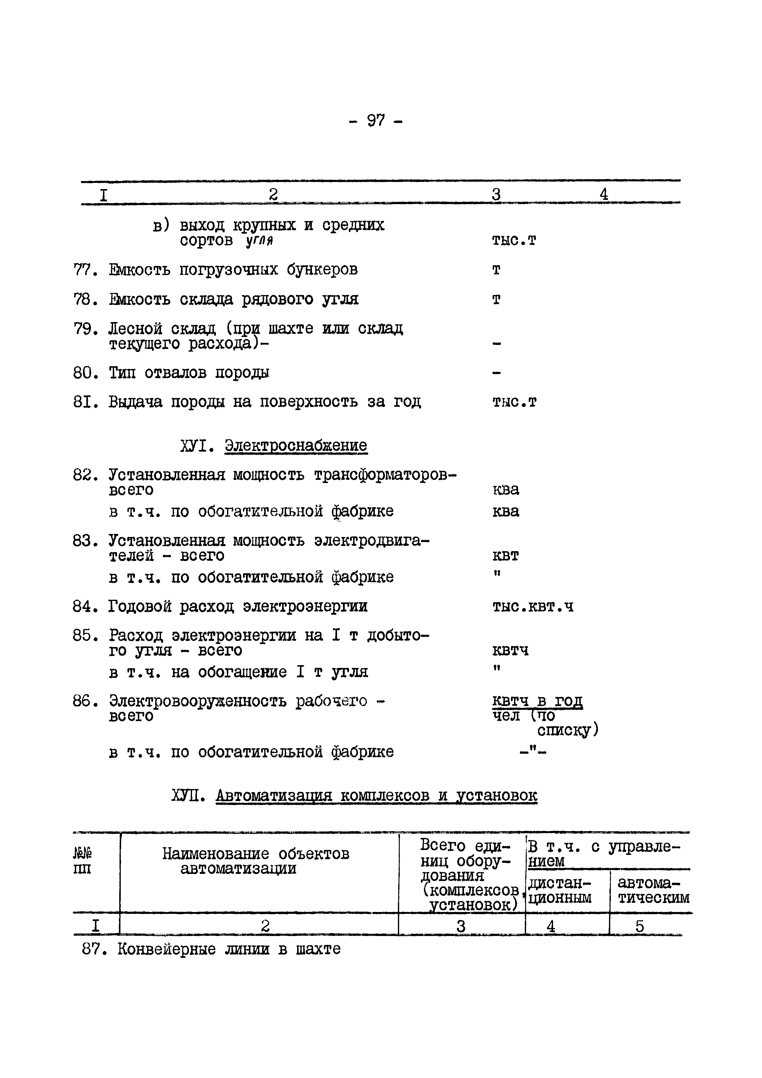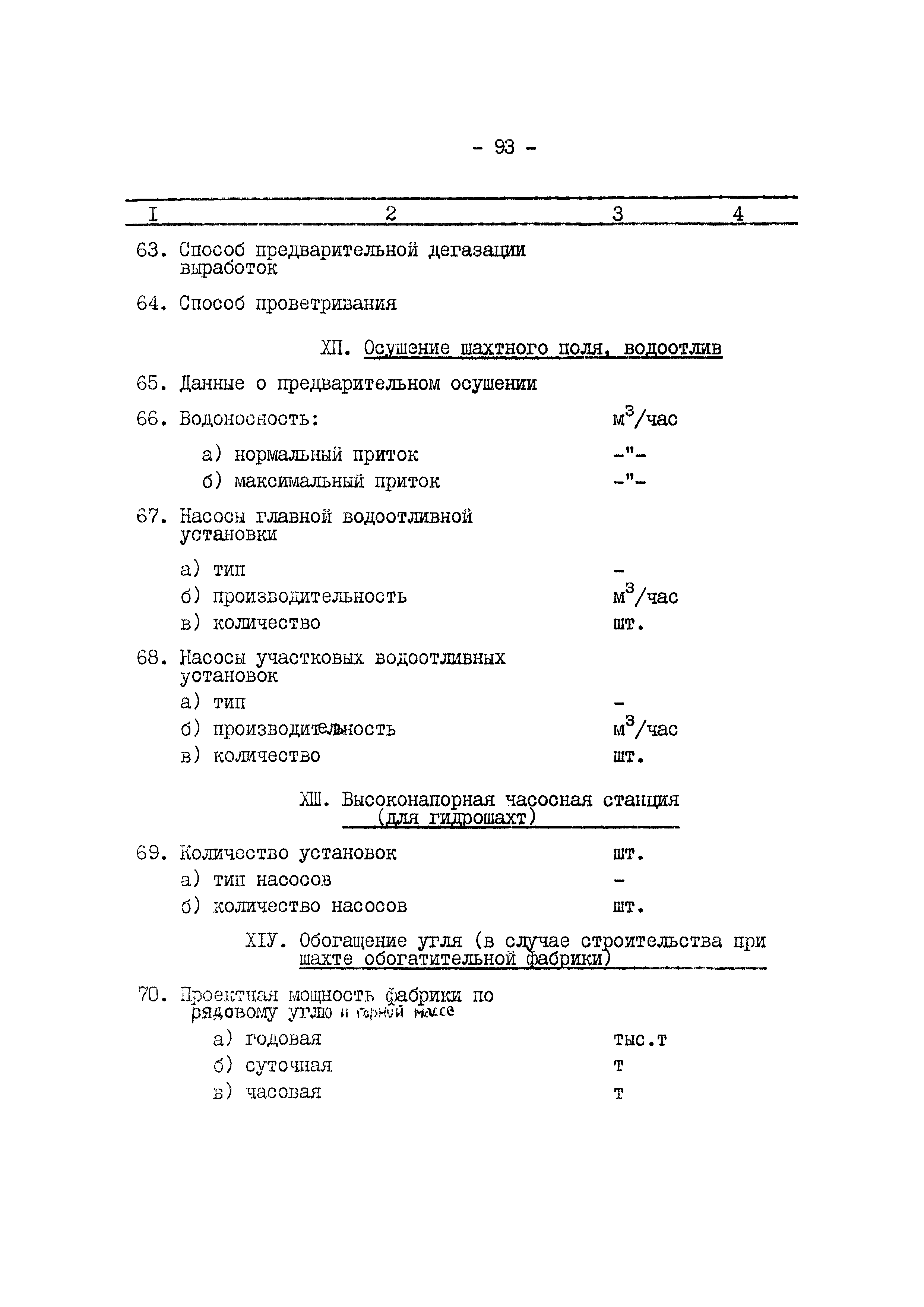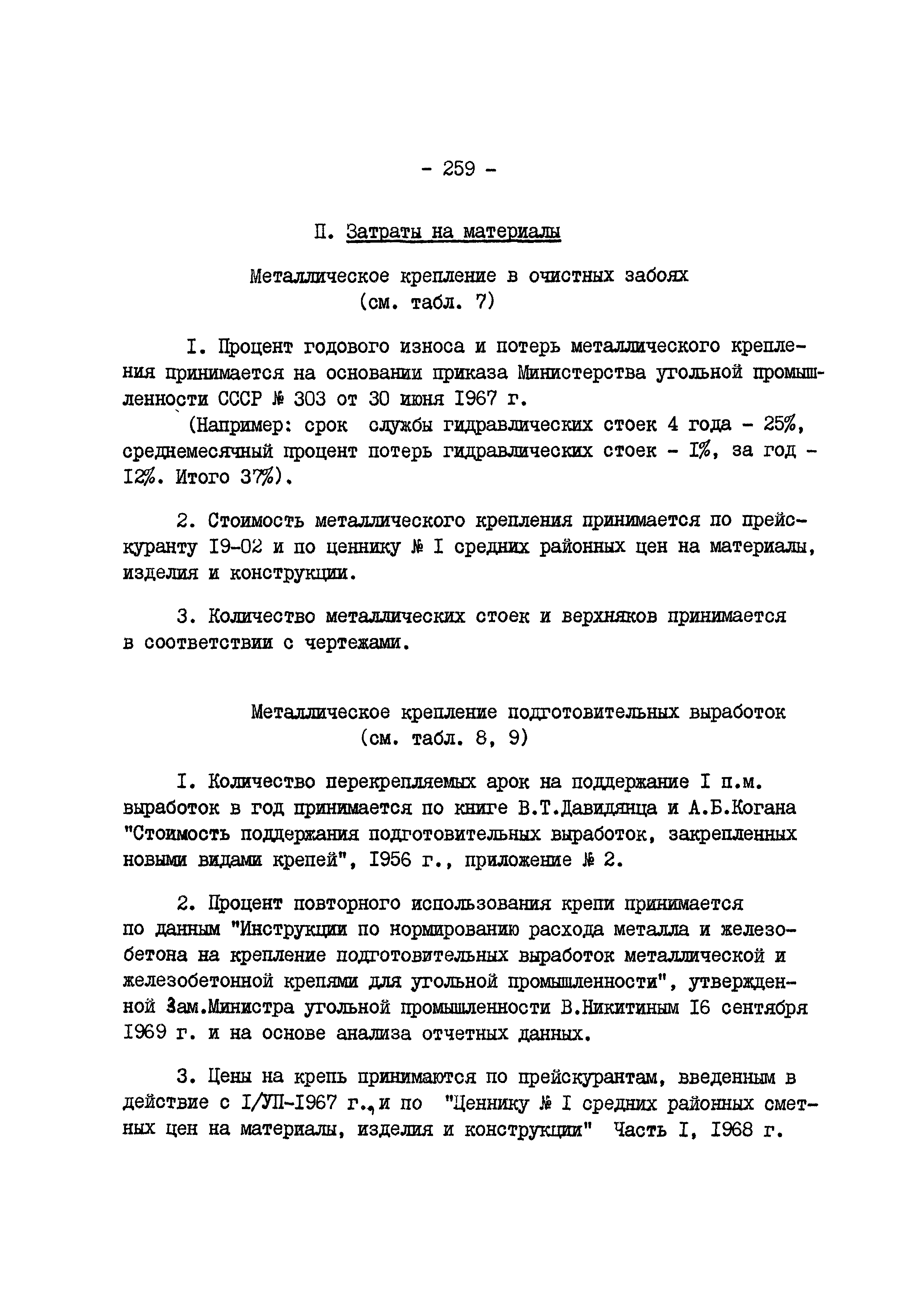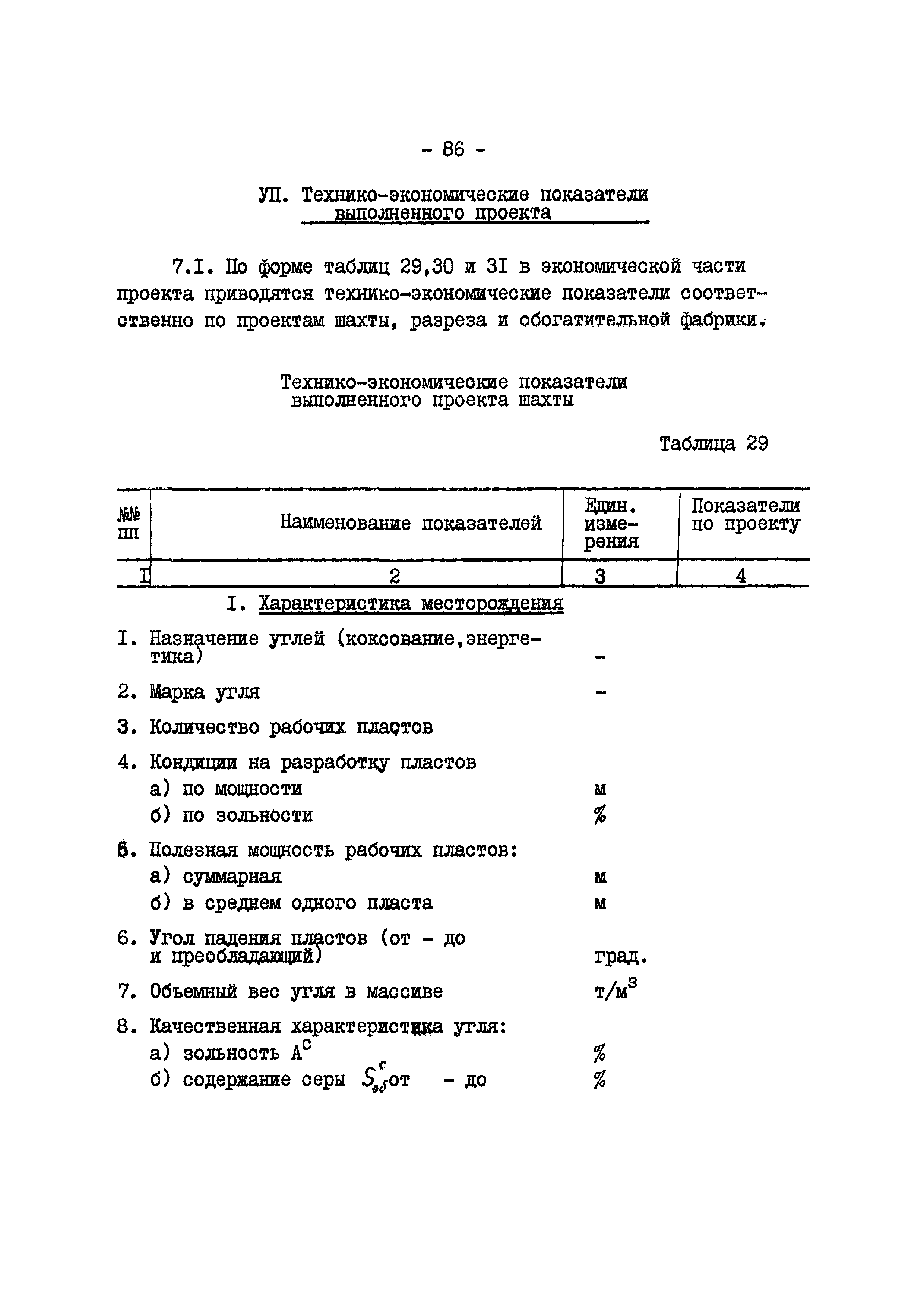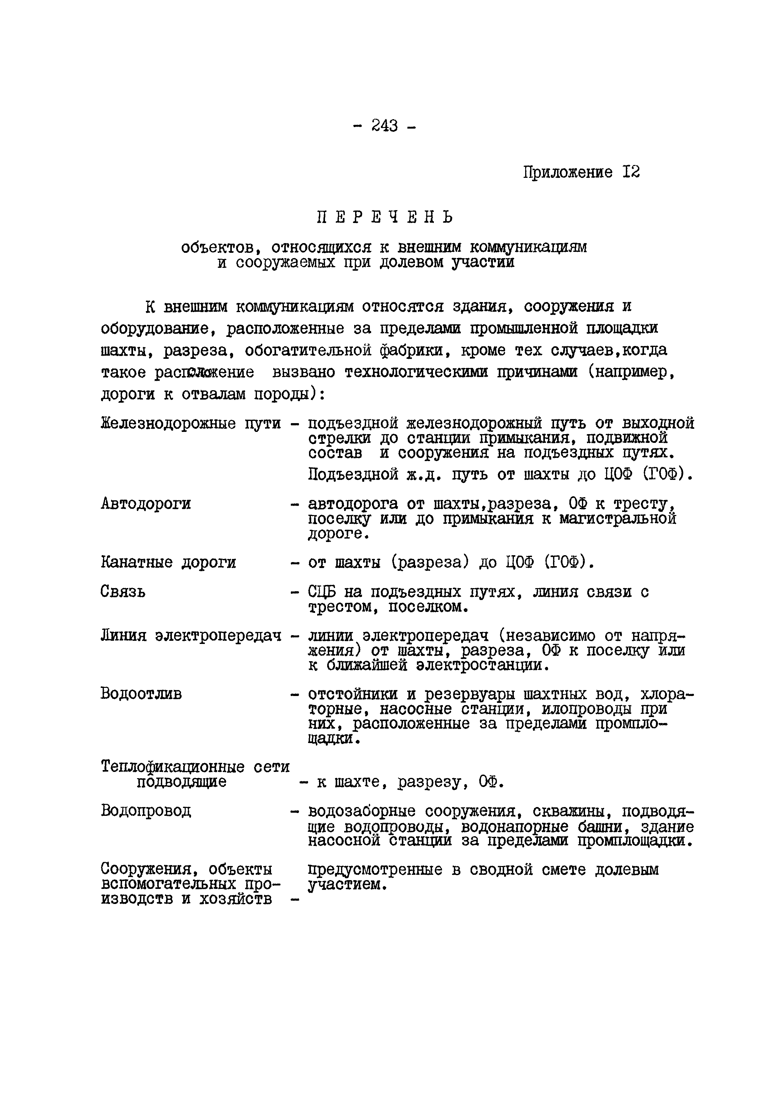 | Оглавление: | I. Целесообразность строительства и реконструкции предприятия и подготовки горизонтов на действующих шахтах II. Капитальные вложения III. Численность трудящихся и производительность труда IV. Себестоимость добычи и обогащения V. Основные промышленно-производственные фонды и нормируете оборотные средства VI. Технико-экономическая эффективность проекта А. Прибыль я рентабельность производства Б. Экономическая эффективность капиталовложении В. Важнейшие технико-экономические показатели проекта в сравнении с показателями лучшего проекта и передового предприятия VII. Технико-экономические показатели выполненного проекта Технико-экономические показатели выполненного проекта шахты Технико-экономические показателя выполненного проекта разреза Технико-экономические показатели выполненного проекта обогатительной фабрики Приложение 1. Перечень профессий рабочих предприятий и строек угольной и сланцевой промышленности Приложение 2. То же, рабочих железнодорожных цехов Приложение 3. Перечень производственных процессов по шахтам, разрезам и обогатительным фабрикам Приложение 4. Перечень работников непромышленной группы Приложение 5. Распределение рабочих шахт по степени механизации труда Приложение 6. Распределение рабочих разрезов по степени механизации труда Приложение 7. Распределение рабочих углеобогатительных фабрик по степени механизации труда Приложение 8. Перечень горных выработок капитального характера на шахтах и разрезах Приложение 9. Инструкция по применению норм продолжительности освоения проектных мощностей новыми и реконструируемыми угольными, сланцевыми шахтами, разрезами и обогатительными/брикетными/фабриками и определению объемов добычи/переработки/угля, сланцев при текущем и перспективном планировании Приложение 10. Инструкция о порядке учета добычи угля, производительности труда рабочих и себестоимости тонны угля в товарном исчислении Приложение 11. Директивное письмо Минуглепрома СССР № Д-87 от 18 августа 1970 г. Приложение 12. Перечень объектов, относящихся к внешним коммуникациям и сооружаемых при долевом участии Приложение 13. Примерные формы для расчета численности рабочих, затрат на материалы и амортизационных отчислений |