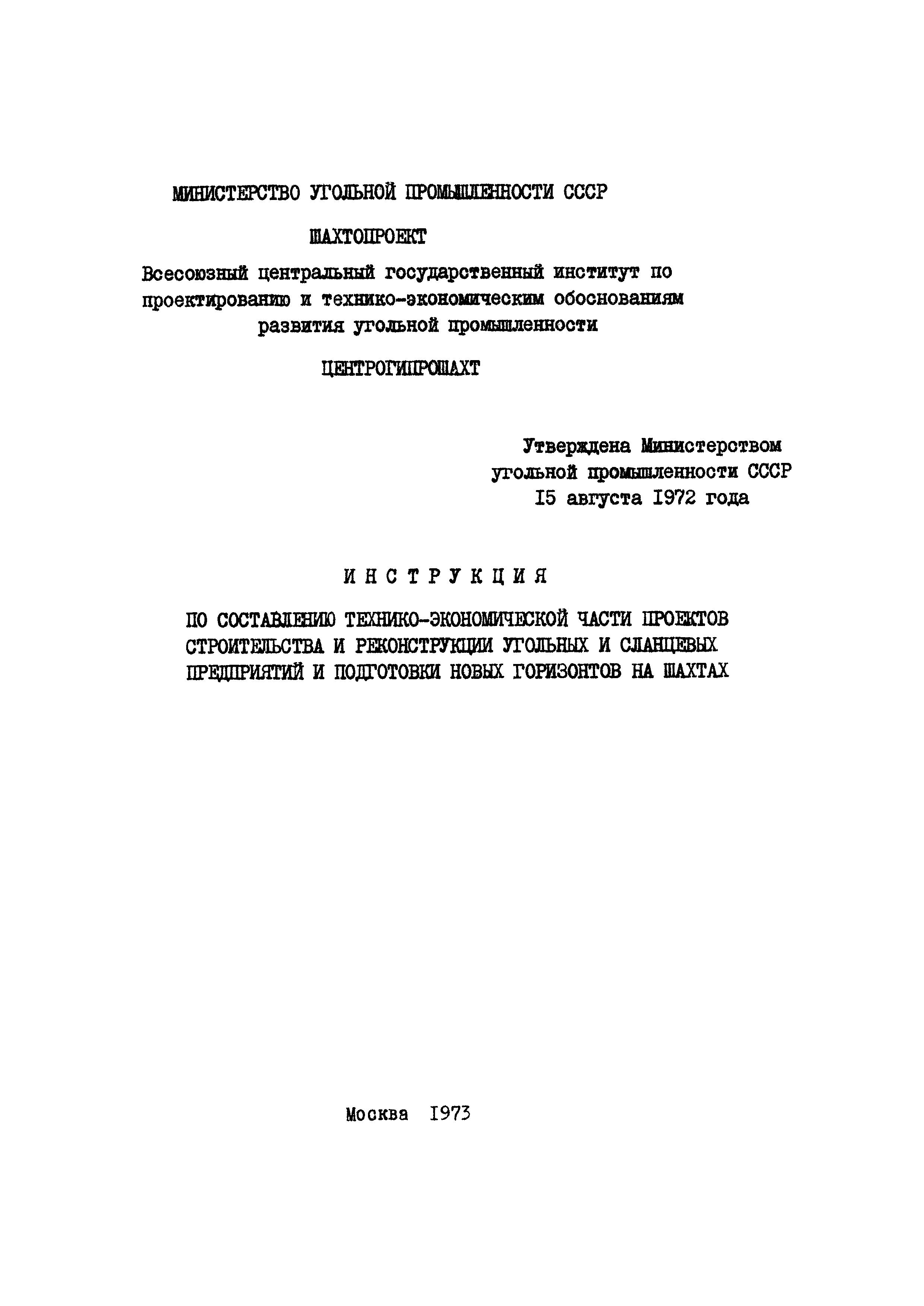 | Название рус.: | Инструкция по составлению технико-экономической части проектов строительства и реконструкции угольных и сланцевых предприятий и подготовки новых горизонтов на шахтах |