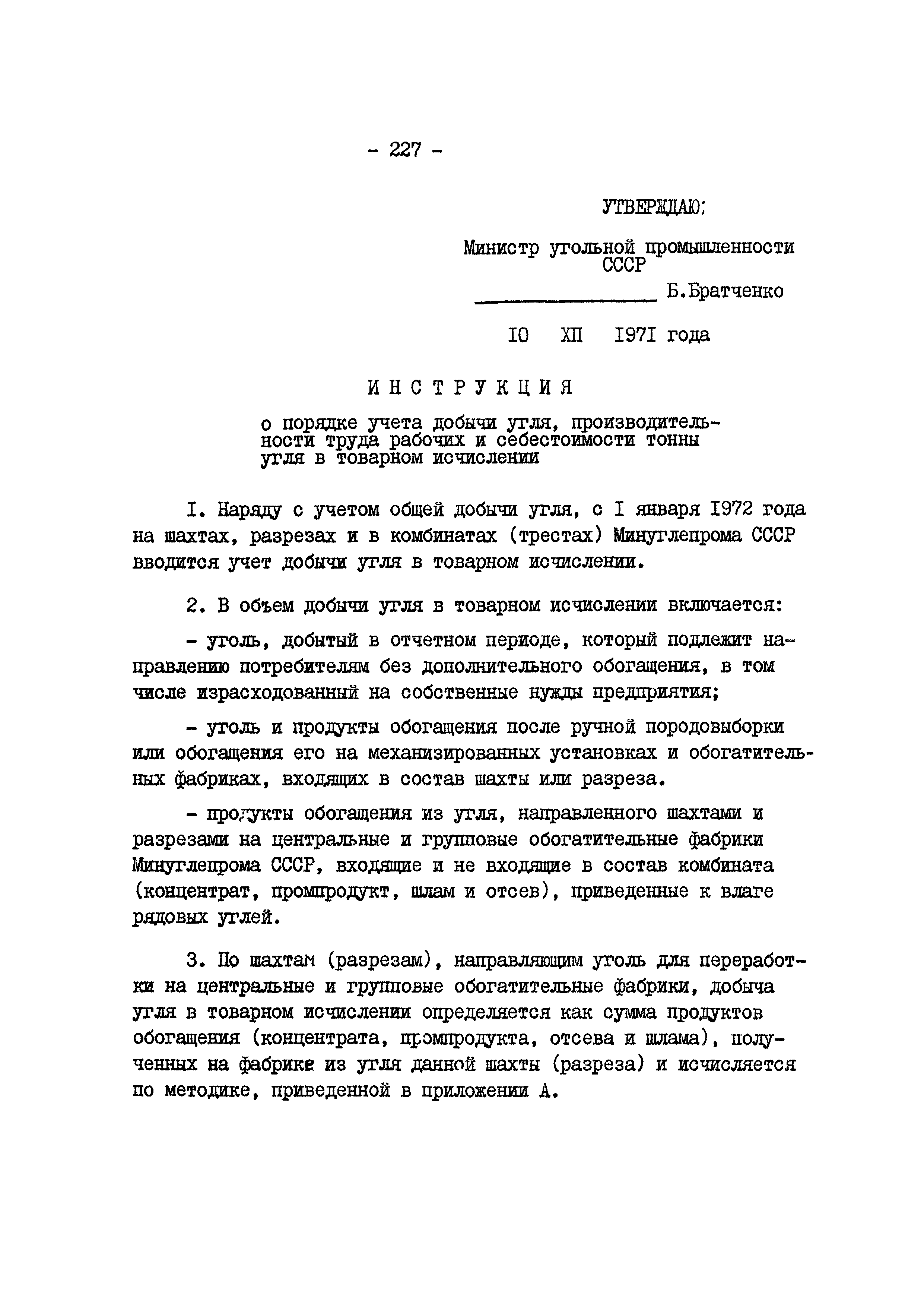 | Утверждён: | 15.09.1972 Министерство угольной промышленности СССР (USSR Ministry of the Coal Industry )