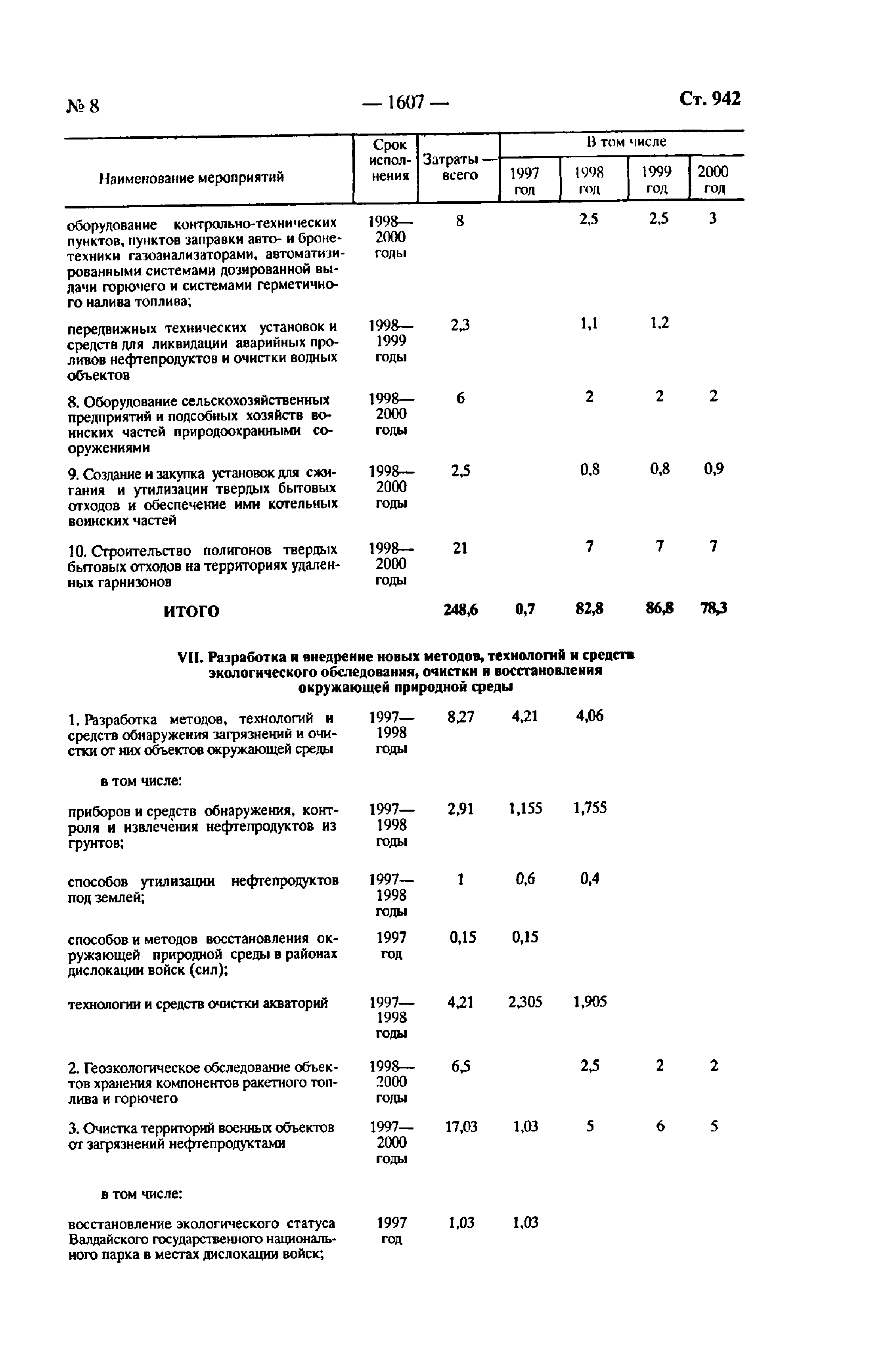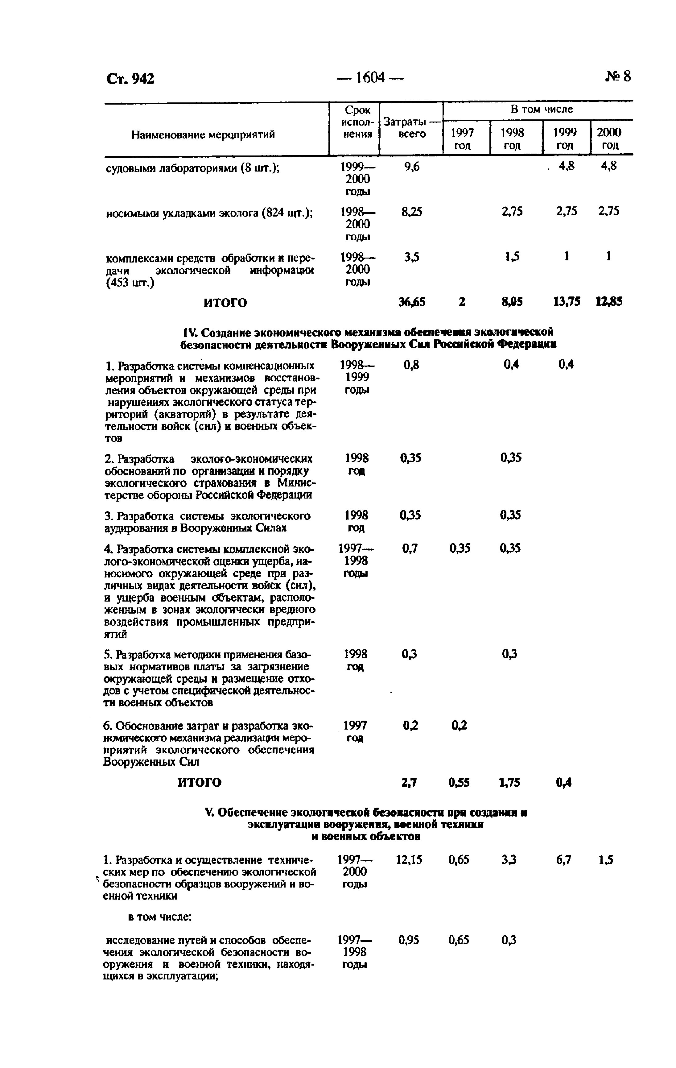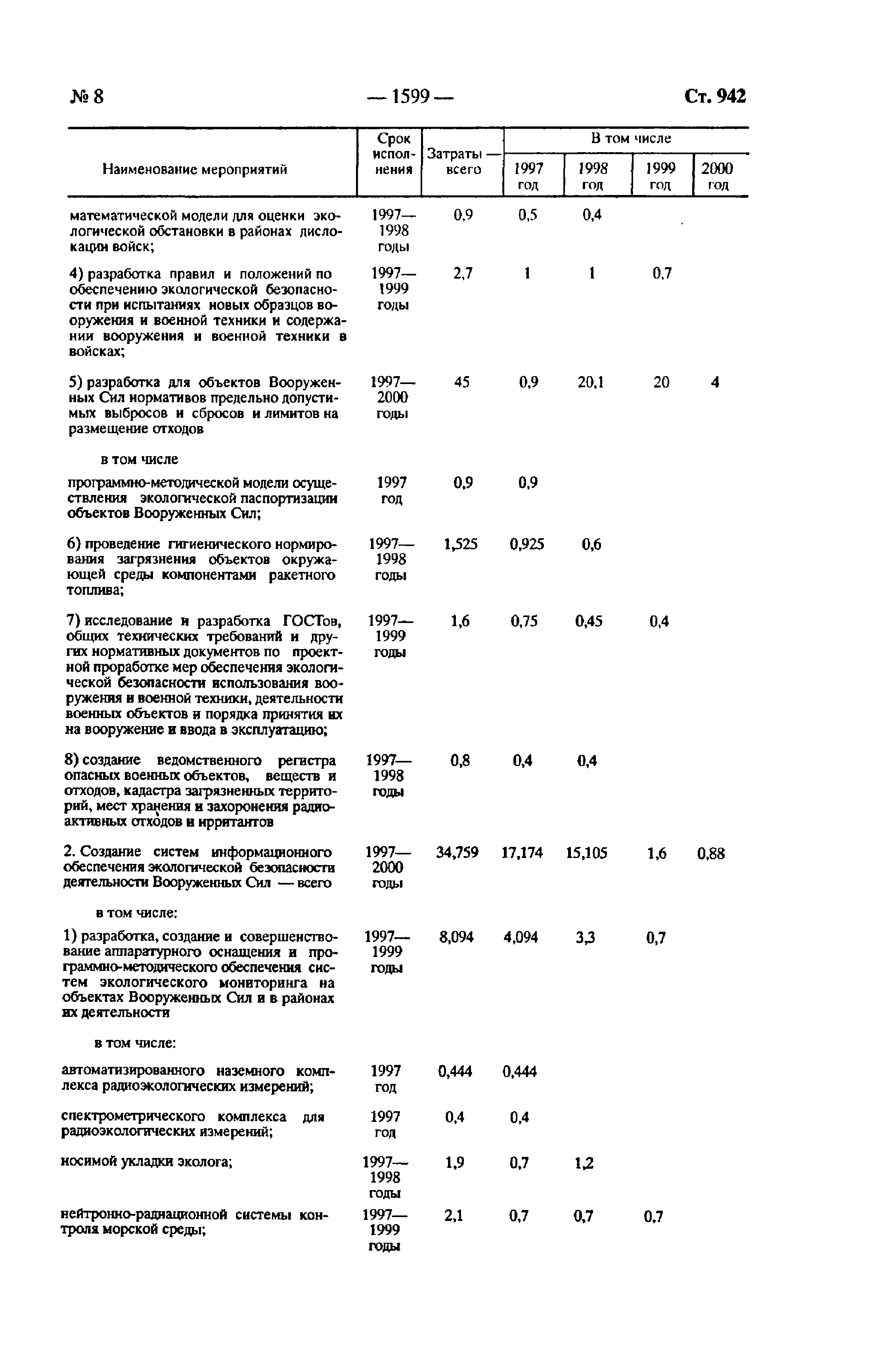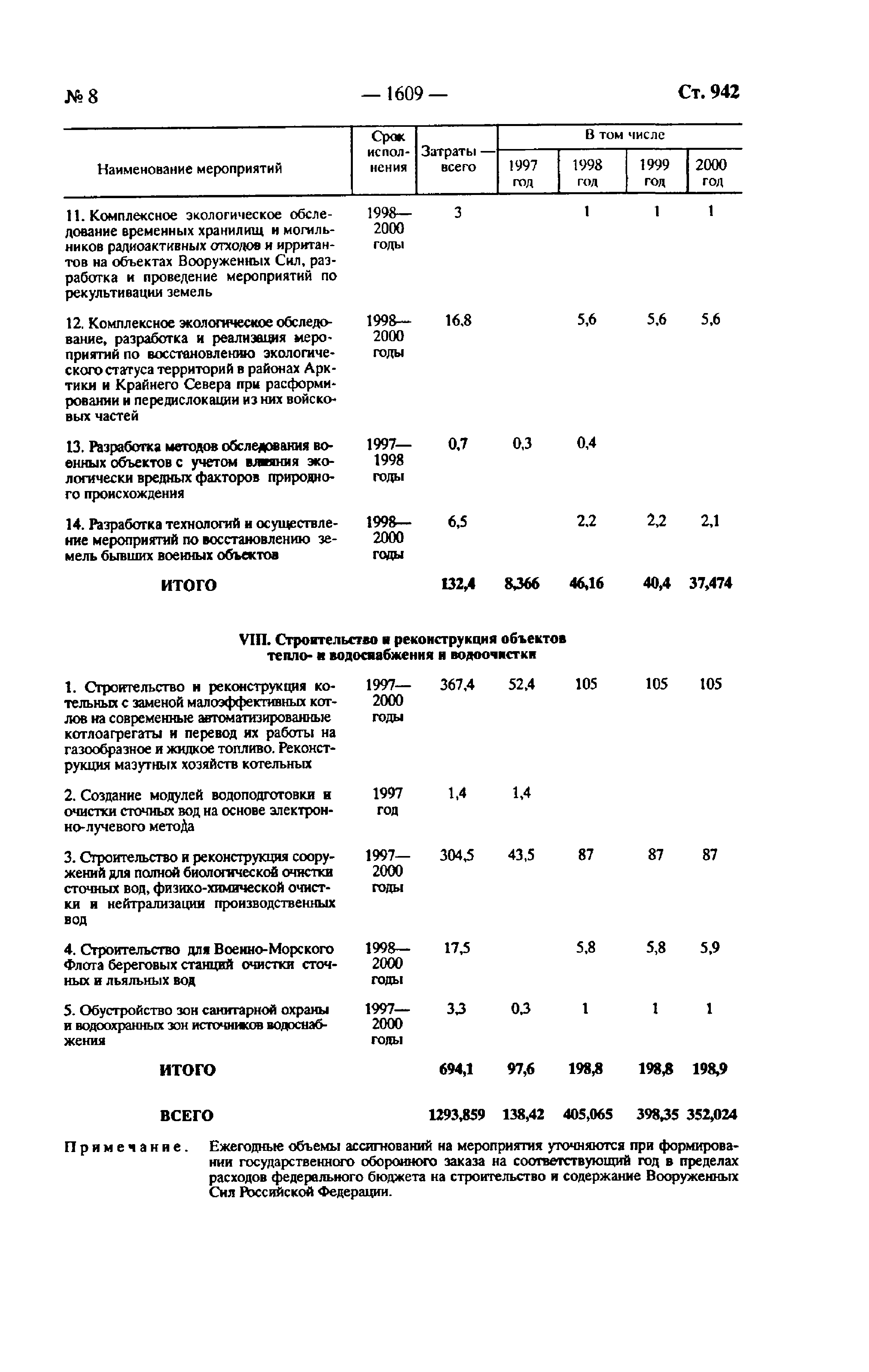 Первоочередные мероприятия по обеспечению экологической безопасности при осуществлении деятельности Вооруженных Сил Российской Федерации на 1997 - 2000 годы| Статус: | действует | | Название рус.: | Первоочередные мероприятия по обеспечению экологической безопасности при осуществлении деятельности Вооруженных Сил Российской Федерации на 1997 - 2000 годы | | Дата добавления в базу: | 01.02.2020 | | Дата актуализации: | 01.01.2021 | | Дата введения: | 04.03.1997 | | Утверждён: | 31.10.1996 Правительство Российской Федерации (1310)