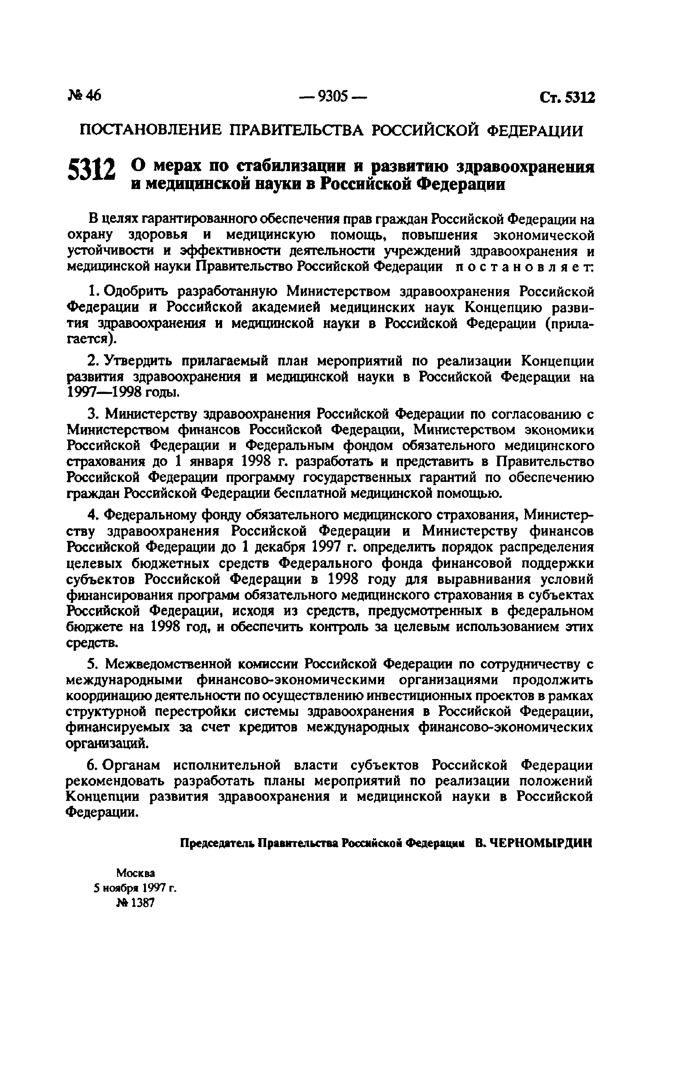 | Утверждён: | 05.11.1997 Правительство Российской Федерации (1387)