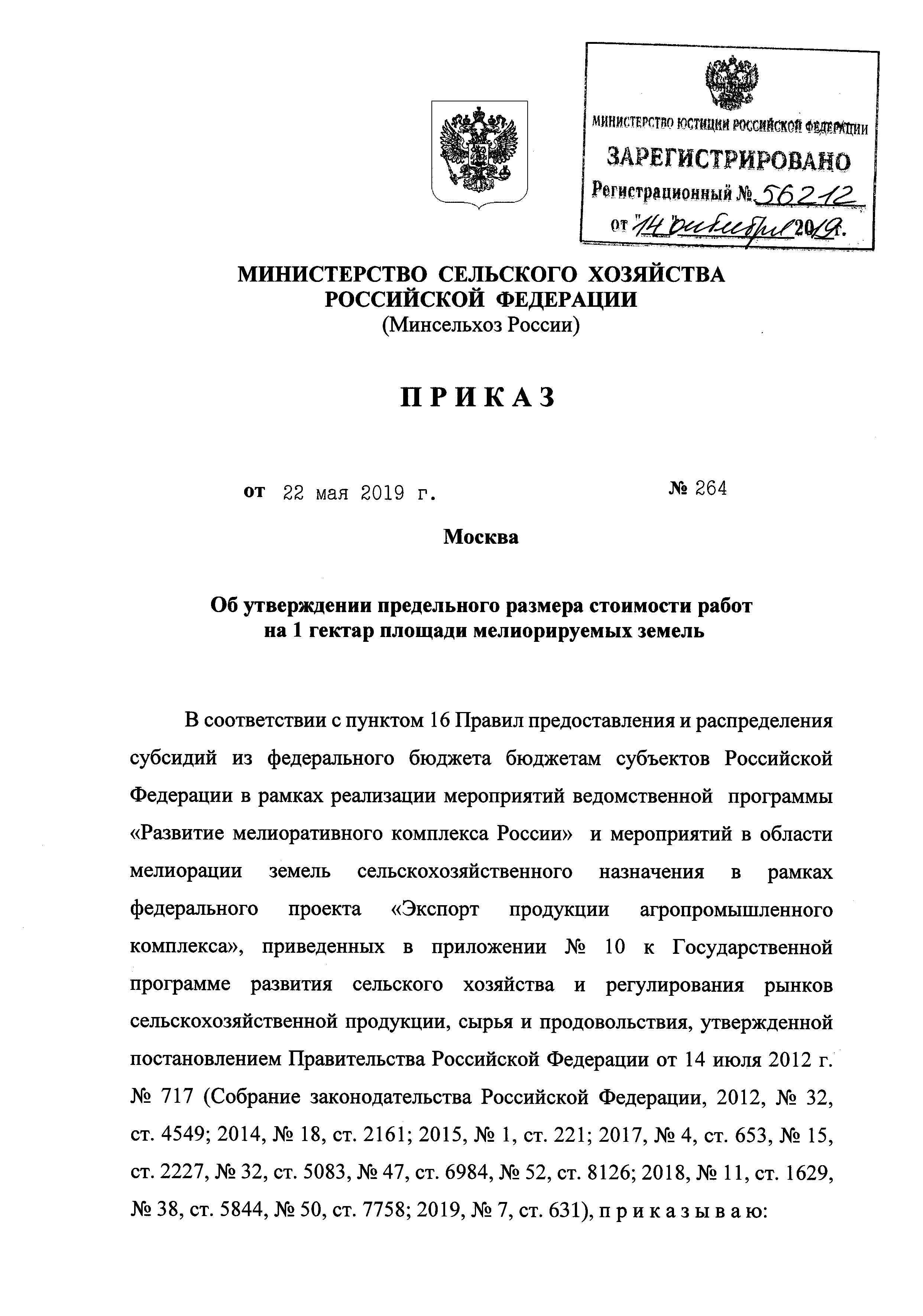 | Утверждён: | 22.05.2019 Министерство сельского хозяйства Российской Федерации (264)