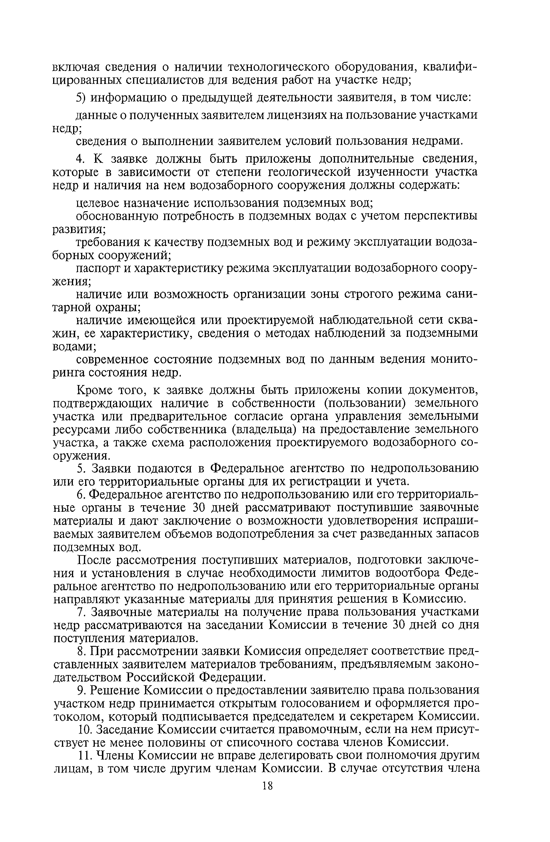 | Область применения: | Порядок регламентирует процедуру рассмотрения заявок на получение права пользования недрами для целей добычи подземных вод, используемых для питьевого водоснабжения населения или технологического обеспечения водой объектов промышленности |