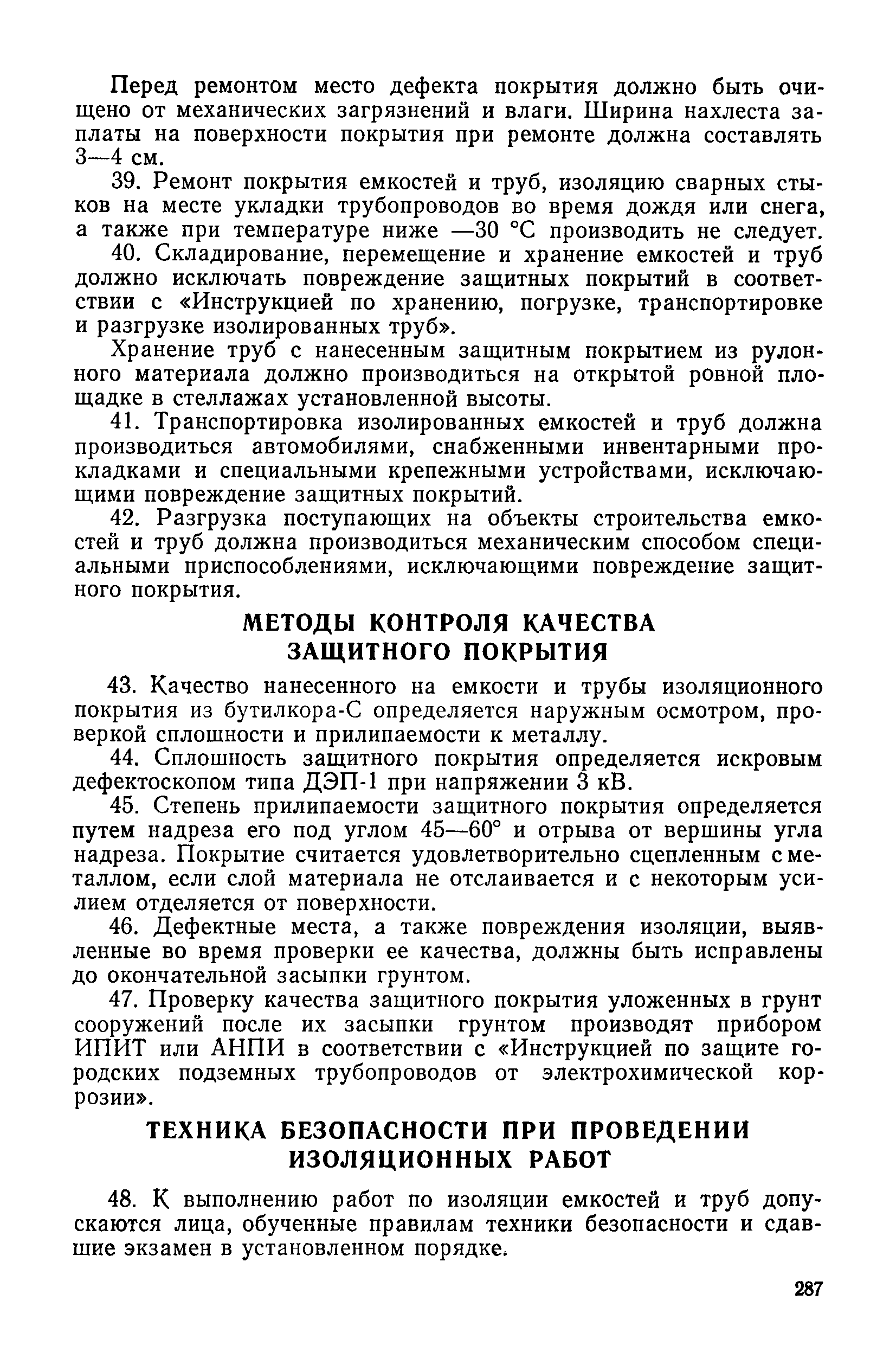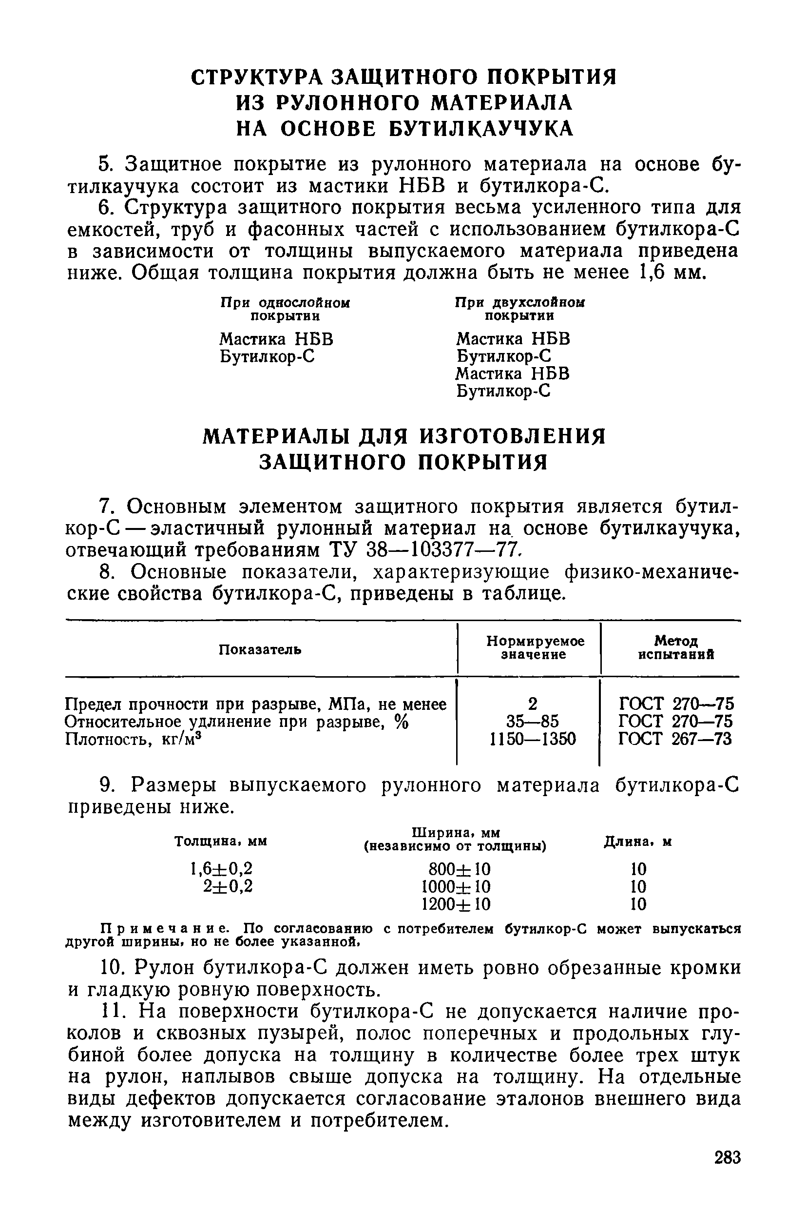 | Оглавление: | Общие положения Структура защитного покрытия из рулонного материала на основе бутилкаучука Материалы для изготовления защитного покрытия Нанесение защитного покрытия на подземные сооружения Ремонт, хранение и транспортировка емкостей и труб Методы контроля качества защитного покрытия Техника безопасности при проведении изоляционных работ |