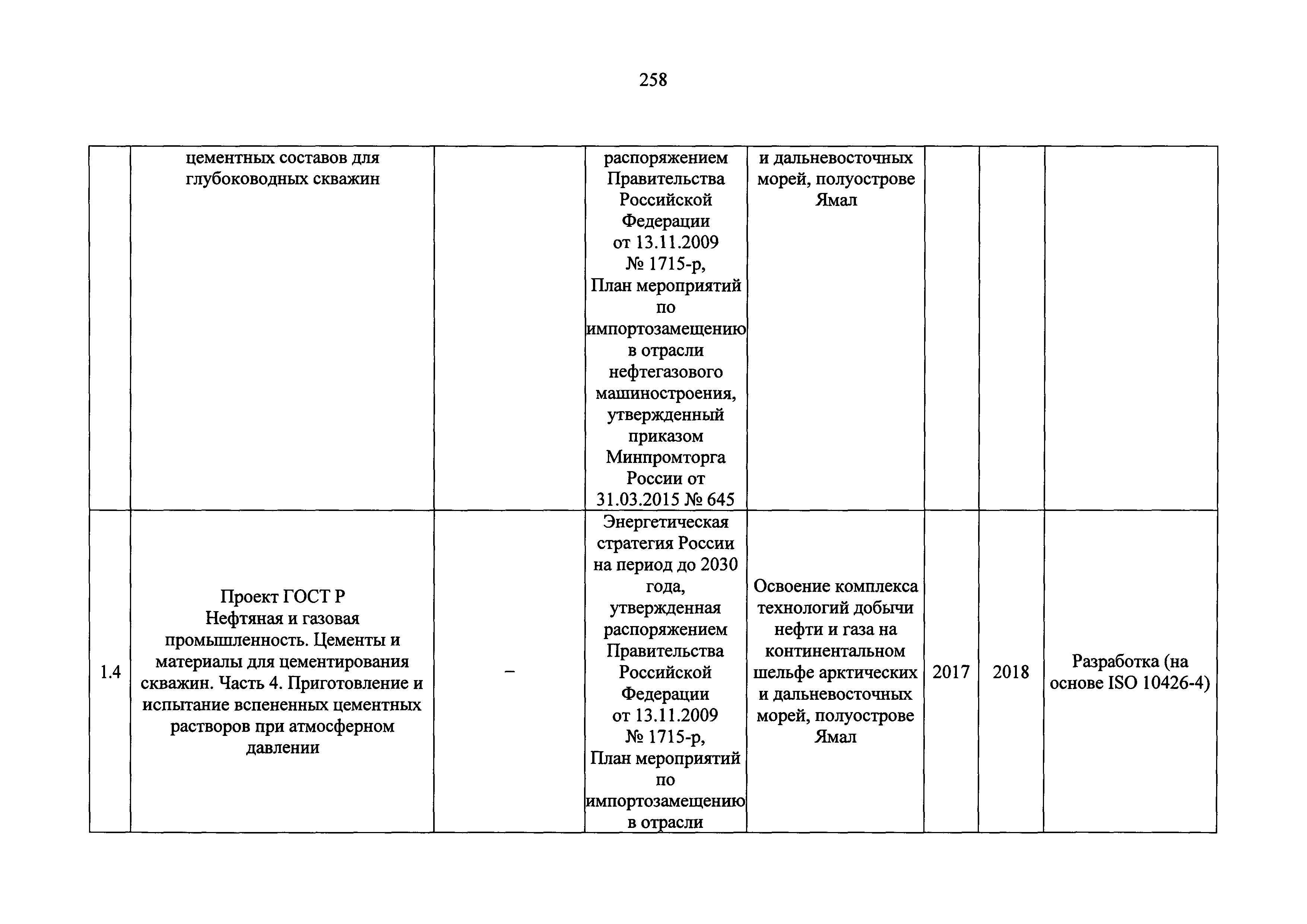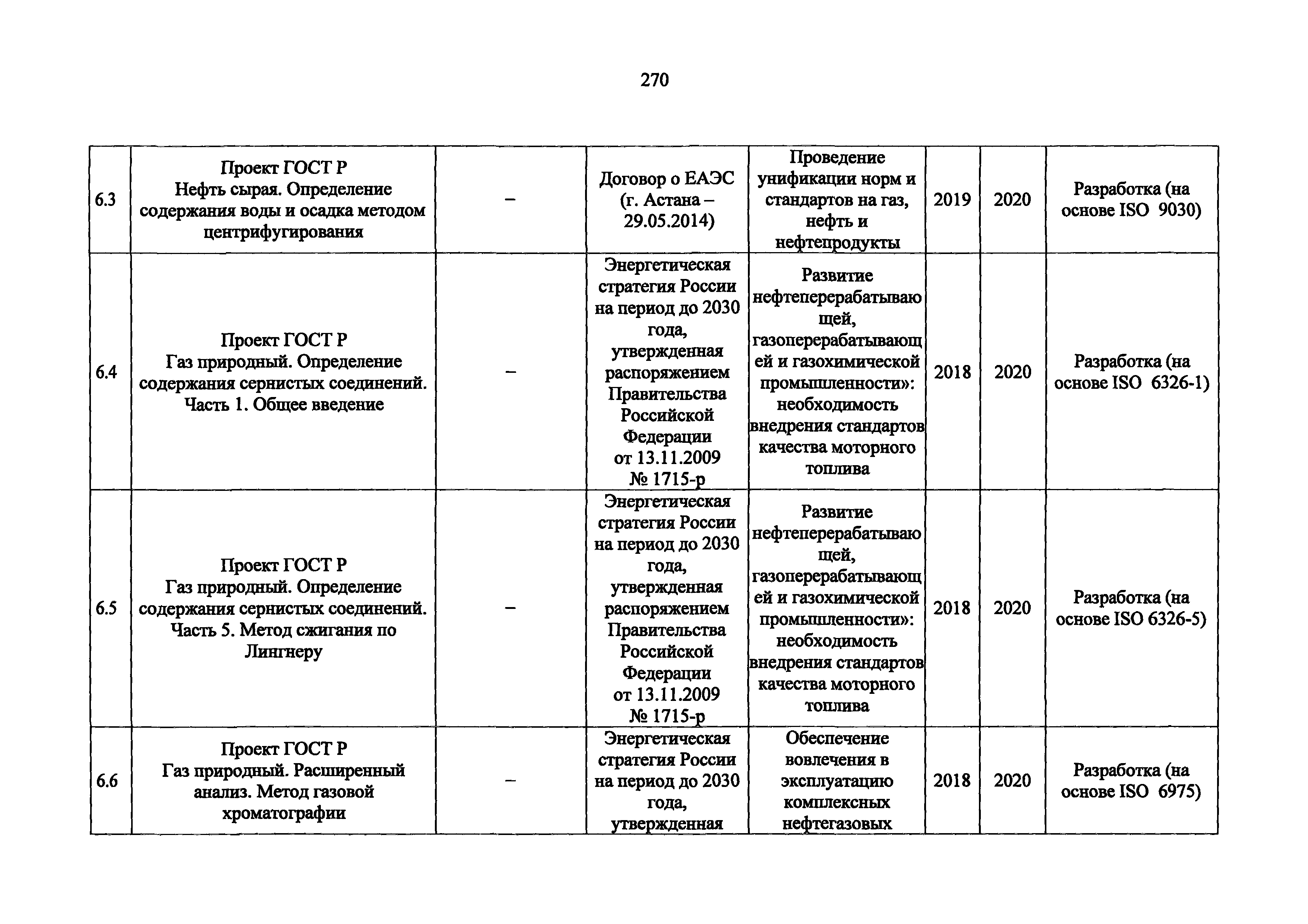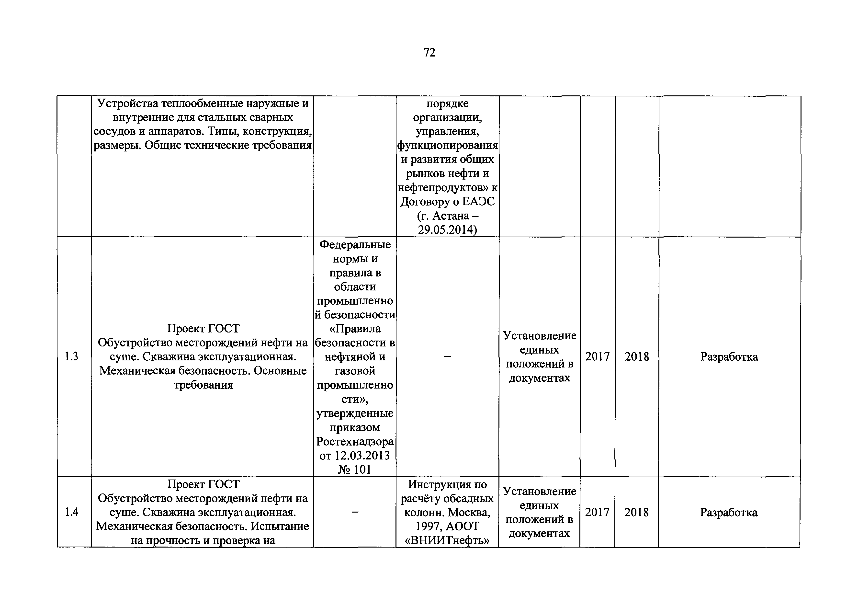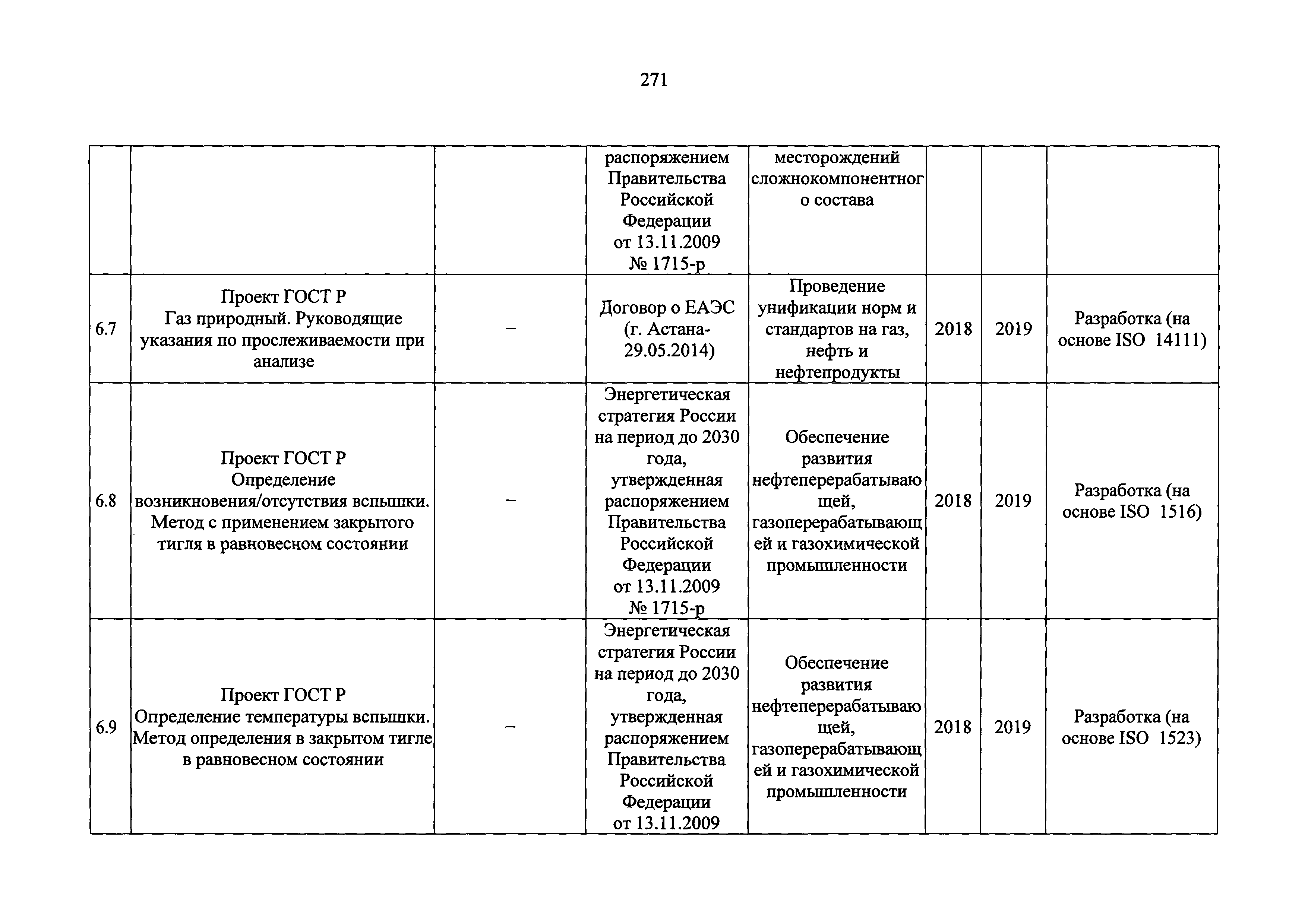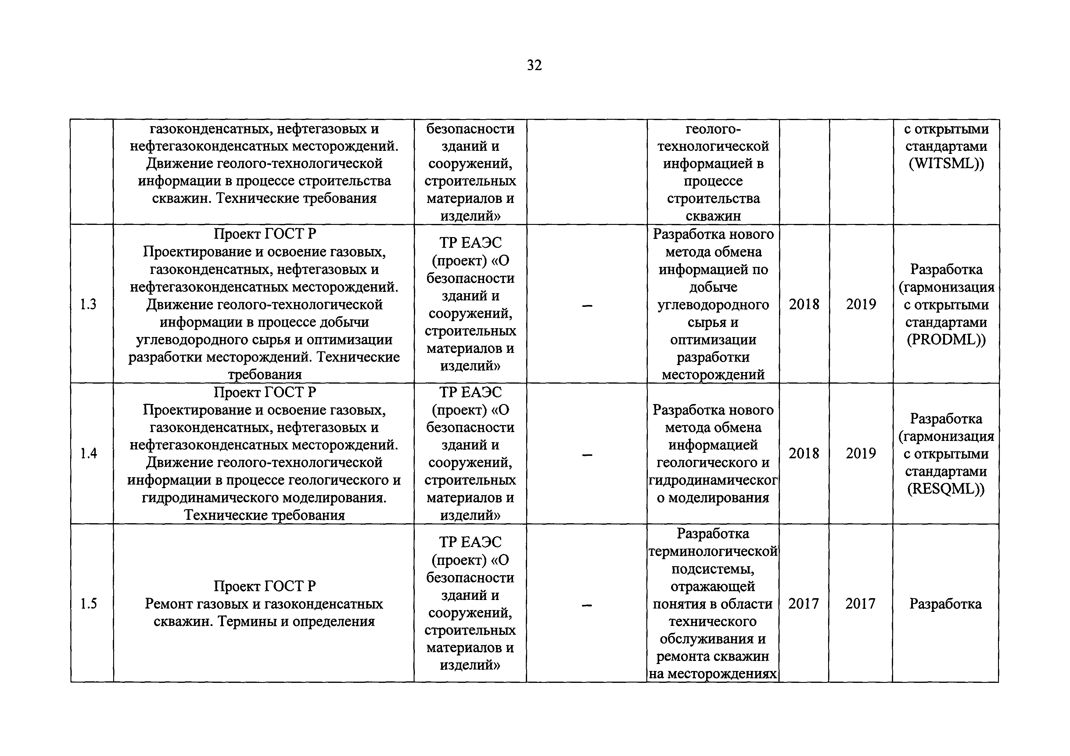 | Оглавление: | 1. Пояснительная записка к Перспективной программе стандартизации в нефтегазовом комплексе на период 2017 - 2022 годов 1.1. Основание для разработки Программы 1.2. Цели и задача Программы 1.3. Разработчики Программы 1.4. Сроки реализации Программы 1.5. Основные мероприятия Программы 1.6. Источники финансирования реализации Программы 1.7. Механизм реализации Программы 2. Краткий обзор механизмов формирования Перспективной программы стандартизации в нефтегазовом комплексе на период 2017 - 2022 годов 2.1. Основные принципы формирования структуры и разделов Программы 2.2. Ключевые аспекты проведения анализа международных, межгосударственных и национальных (государственных) стандартов в целях формирования Программы 2.3. Формирование научно обоснованных предложений по содержанию Программы 3. Паспорт Перспективной программы стандартизации в нефтегазовом комплексе на период 2017 - 2022 годов 3.1. Основные показатели Программы 3.2. Сокращения и обозначения 4. Перспективная программа стандартизации в нефтегазовом комплексе на период 2017 - 2022 годов Таблица 4.1 - Стандарты, которые необходимо разработать в целях реализации принятых и подлежащих разработке технических регламентов ЕАЭС Таблица 4.2 - Межгосударственные стандарты, которые необходимо разработать в целях исполнения соглашений в рамках ЕАЭС Таблица 4.3.1 - Межгосударственные стандарты, которые необходимо актуализировать в целях реализации принятых и подлежащих разработке технических регламентов ЕАЭС Таблица 4.3.2 - Межгосударственные стандарты, которые необходимо актуализировать в целях исполнения соглашений в рамках ЕАЭС, за исключением стандартов, на которые даны ссылки в технических регламентах ЕАЭС Таблица 4.4 - Стандарты, которые необходимо разработать в целях повышения уровня модернизации и конкурентоспособности организаций российского нефтегазового комплекса Таблица 4.5 - Стандарты, подлежащие актуализации в целях приведения в соответствие с положениями законодательства Российской Федерации и повышения конкурентоспособности продукции нефтегазового комплекса Таблица 4.6 - Международные стандарты, подлежащие переводу и принятию в рамках Российской Федерации с целью интеграции российского нефтегазового комплекса в мировую экономику |