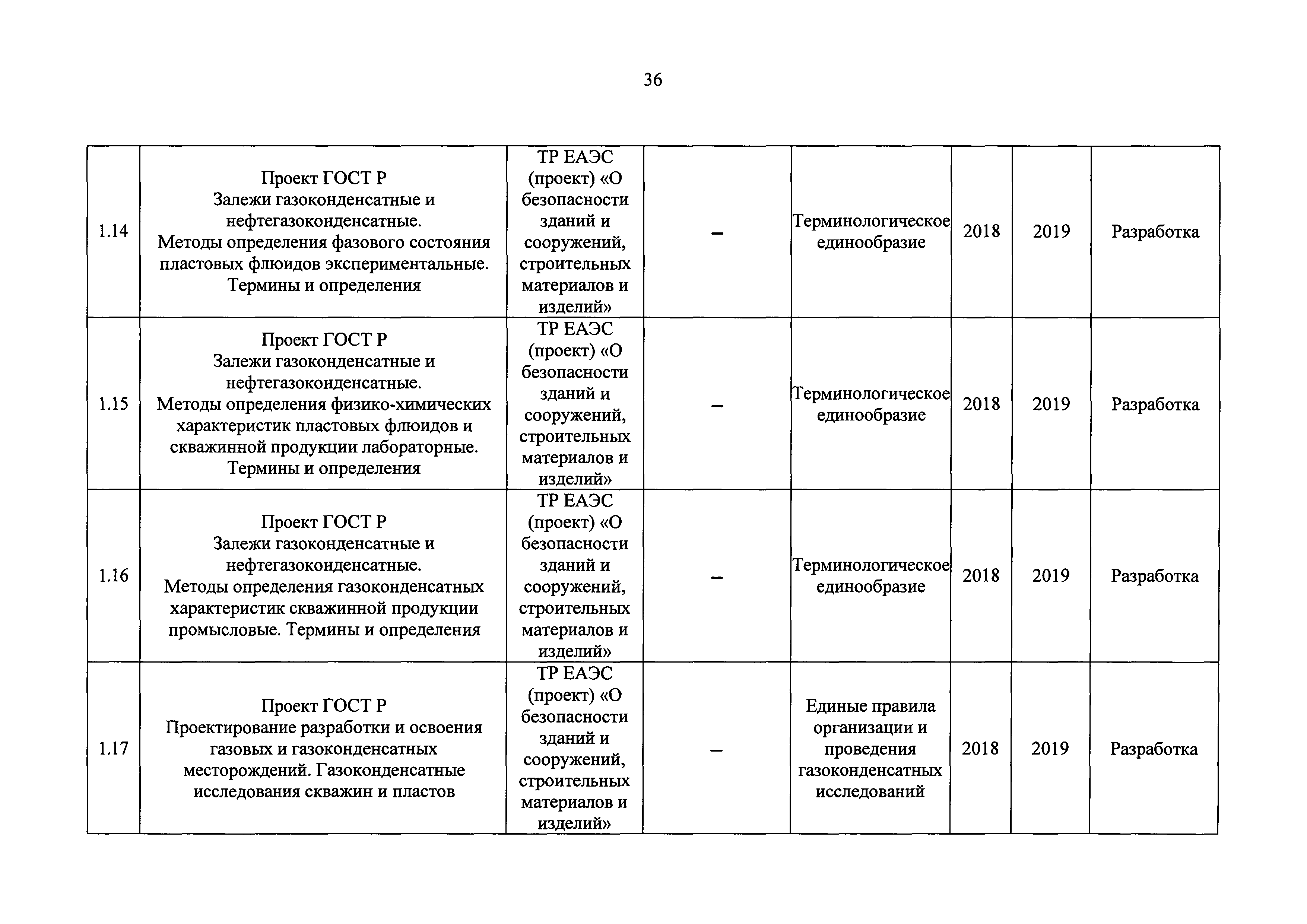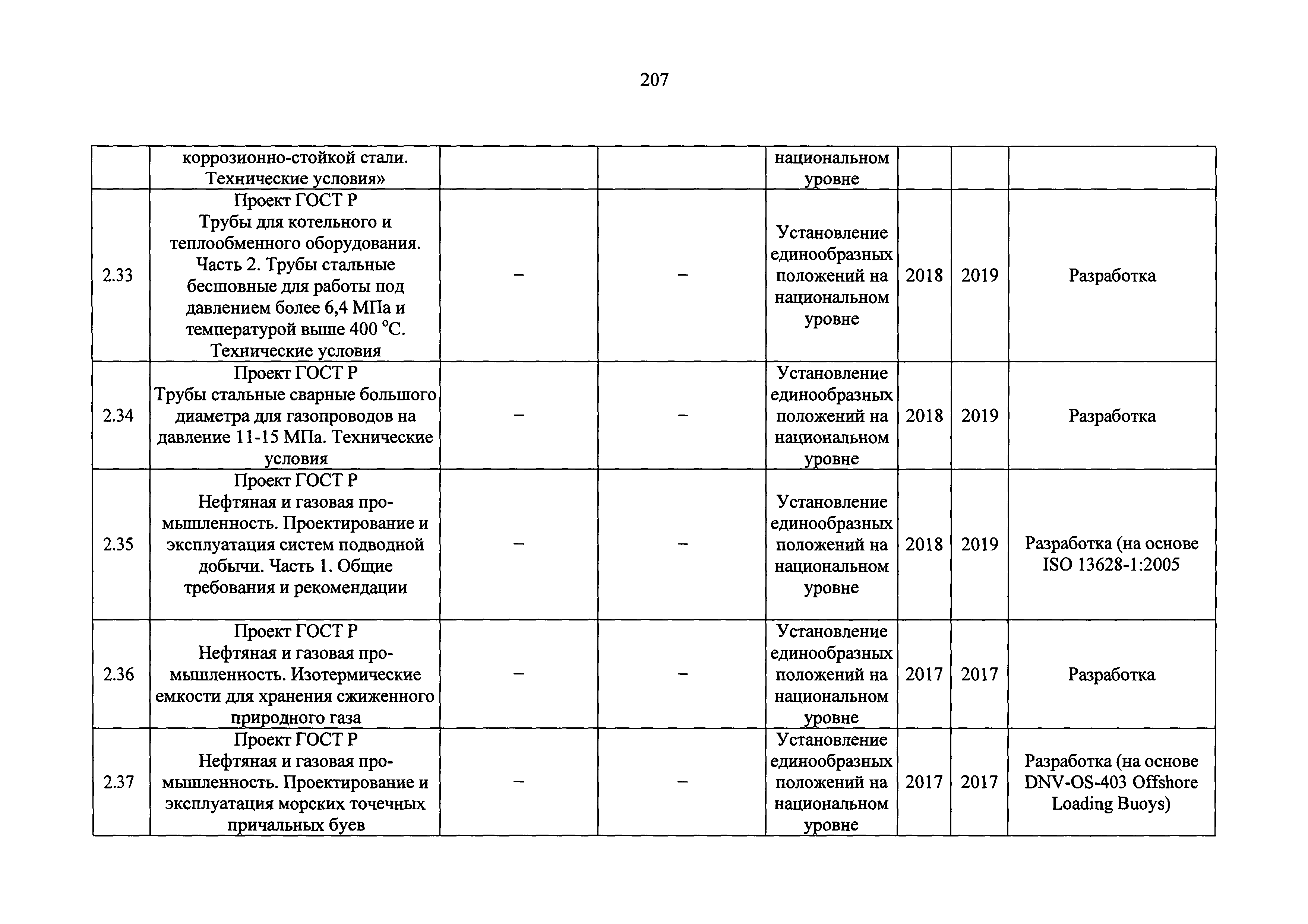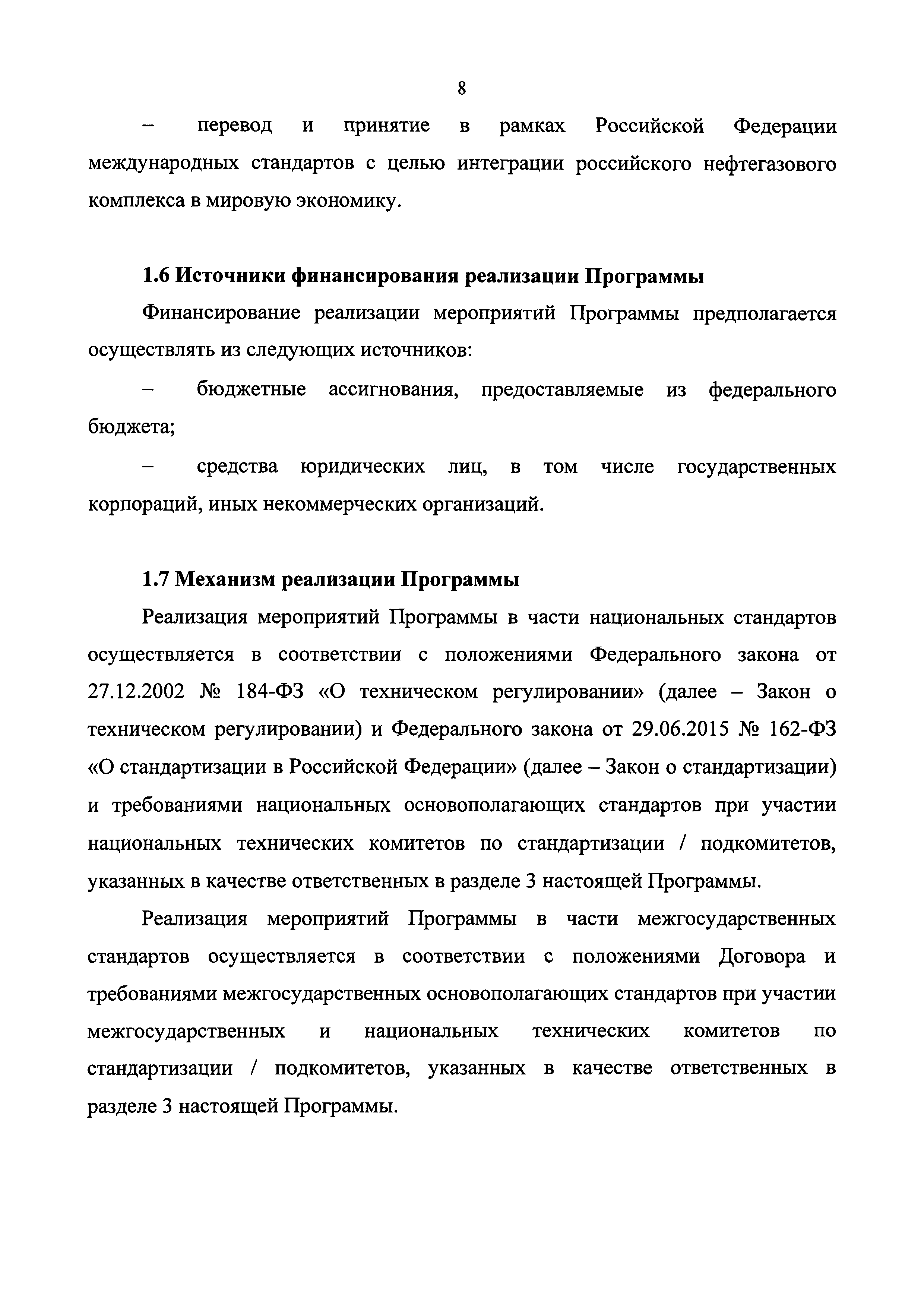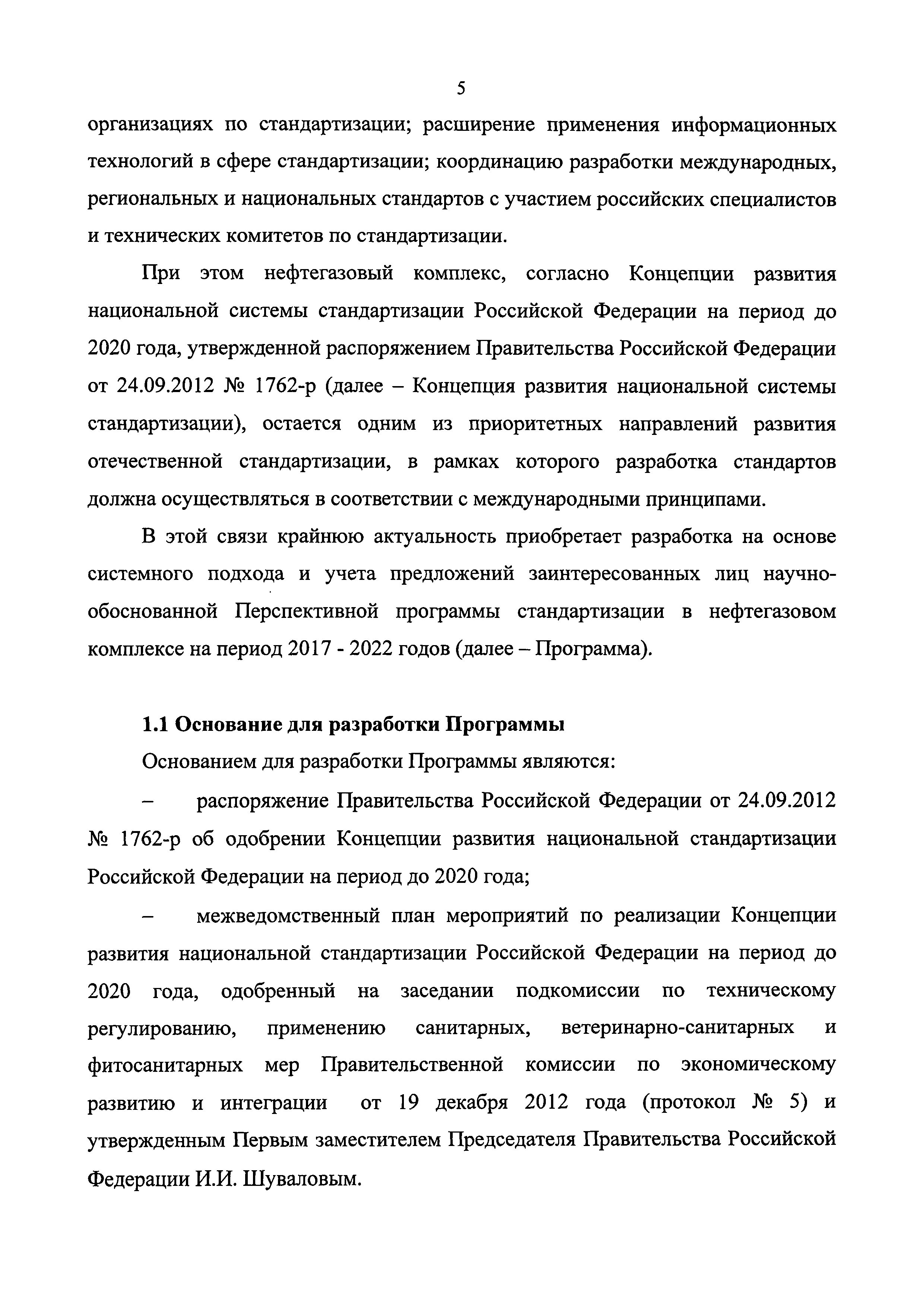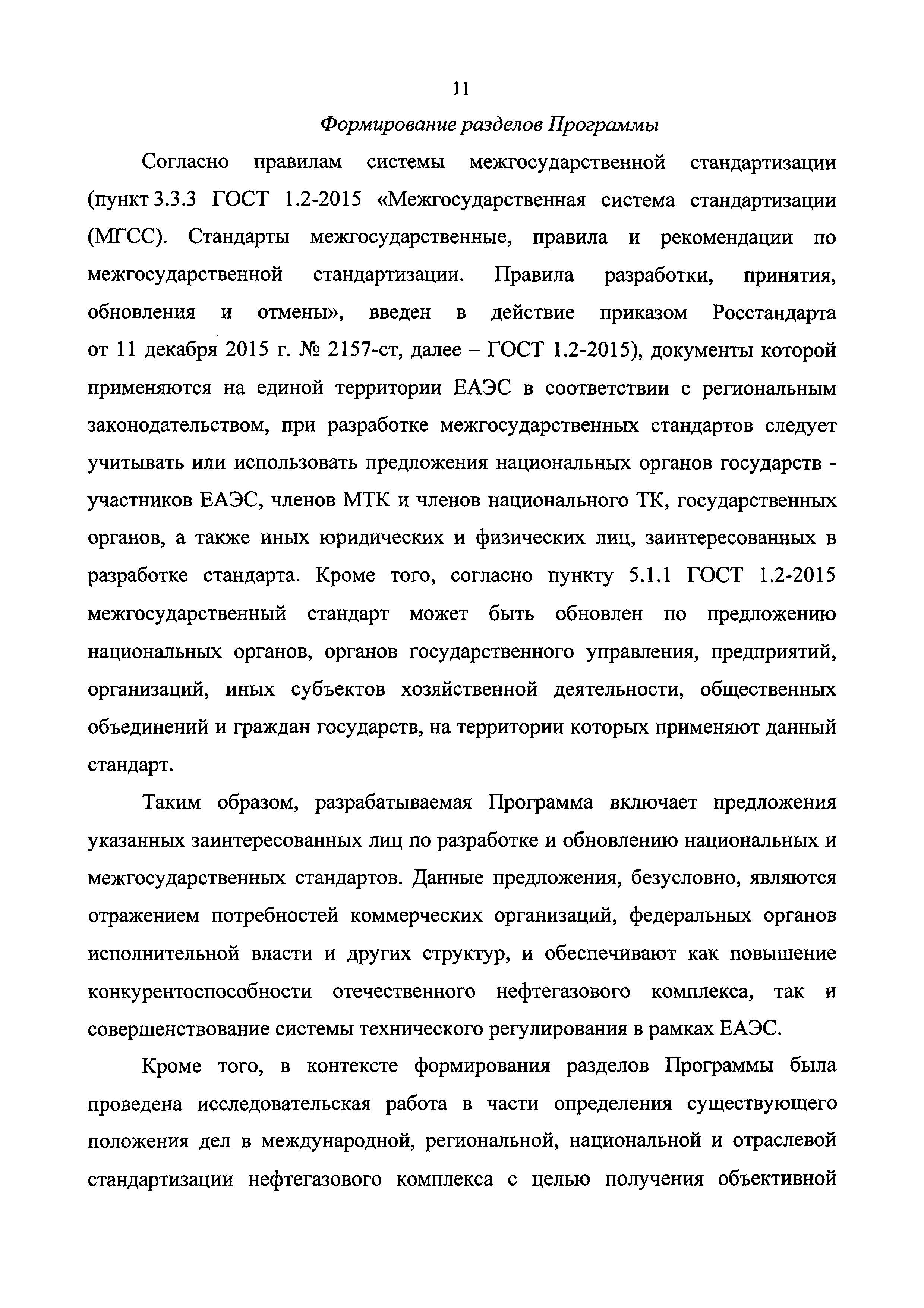| Оглавление: | 1. Пояснительная записка к Перспективной программе стандартизации в нефтегазовом комплексе на период 2017 - 2022 годов 1.1. Основание для разработки Программы 1.2. Цели и задача Программы 1.3. Разработчики Программы 1.4. Сроки реализации Программы 1.5. Основные мероприятия Программы 1.6. Источники финансирования реализации Программы 1.7. Механизм реализации Программы 2. Краткий обзор механизмов формирования Перспективной программы стандартизации в нефтегазовом комплексе на период 2017 - 2022 годов 2.1. Основные принципы формирования структуры и разделов Программы 2.2. Ключевые аспекты проведения анализа международных, межгосударственных и национальных (государственных) стандартов в целях формирования Программы 2.3. Формирование научно обоснованных предложений по содержанию Программы 3. Паспорт Перспективной программы стандартизации в нефтегазовом комплексе на период 2017 - 2022 годов 3.1. Основные показатели Программы 3.2. Сокращения и обозначения 4. Перспективная программа стандартизации в нефтегазовом комплексе на период 2017 - 2022 годов Таблица 4.1 - Стандарты, которые необходимо разработать в целях реализации принятых и подлежащих разработке технических регламентов ЕАЭС Таблица 4.2 - Межгосударственные стандарты, которые необходимо разработать в целях исполнения соглашений в рамках ЕАЭС Таблица 4.3.1 - Межгосударственные стандарты, которые необходимо актуализировать в целях реализации принятых и подлежащих разработке технических регламентов ЕАЭС Таблица 4.3.2 - Межгосударственные стандарты, которые необходимо актуализировать в целях исполнения соглашений в рамках ЕАЭС, за исключением стандартов, на которые даны ссылки в технических регламентах ЕАЭС Таблица 4.4 - Стандарты, которые необходимо разработать в целях повышения уровня модернизации и конкурентоспособности организаций российского нефтегазового комплекса Таблица 4.5 - Стандарты, подлежащие актуализации в целях приведения в соответствие с положениями законодательства Российской Федерации и повышения конкурентоспособности продукции нефтегазового комплекса Таблица 4.6 - Международные стандарты, подлежащие переводу и принятию в рамках Российской Федерации с целью интеграции российского нефтегазового комплекса в мировую экономику |