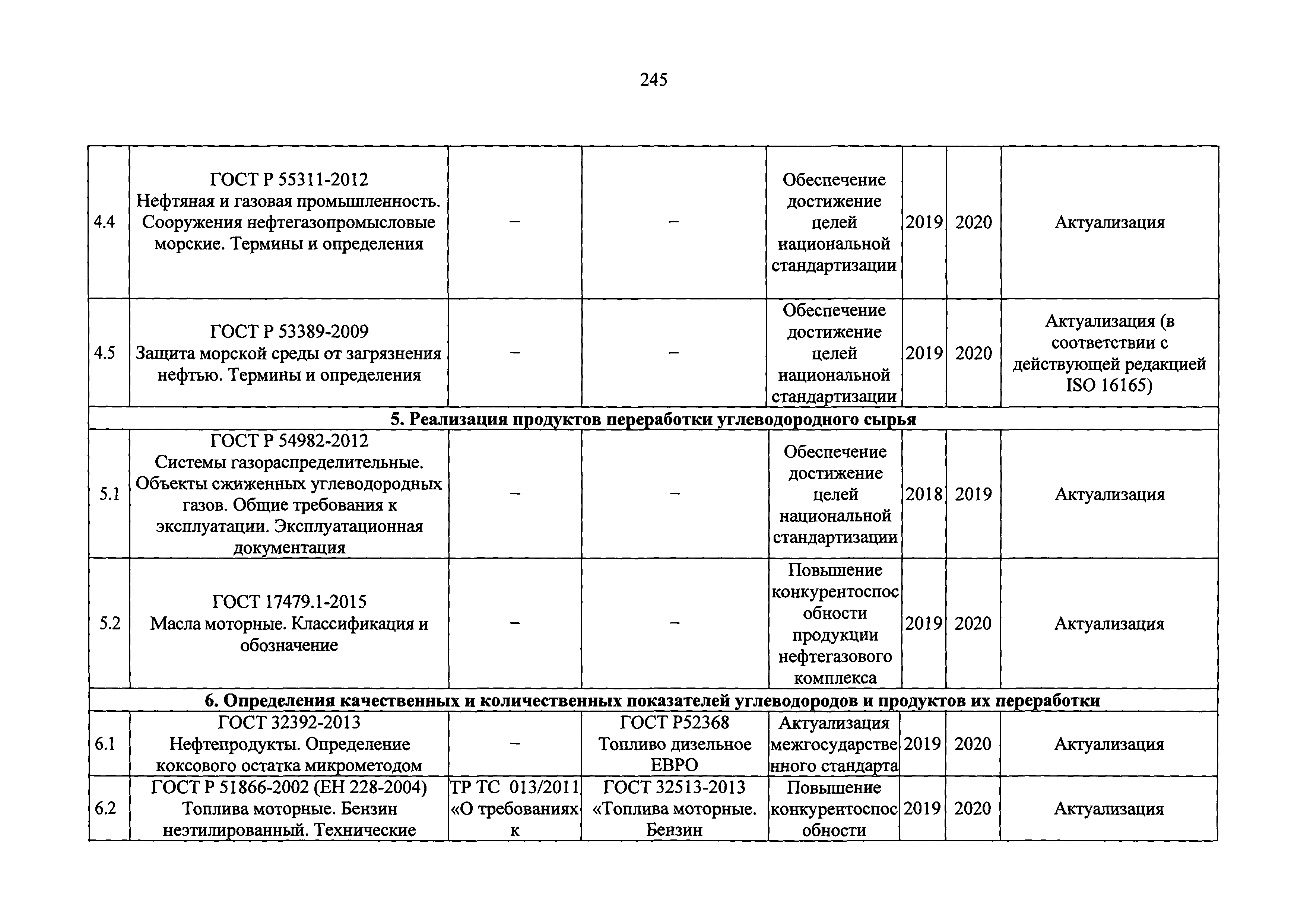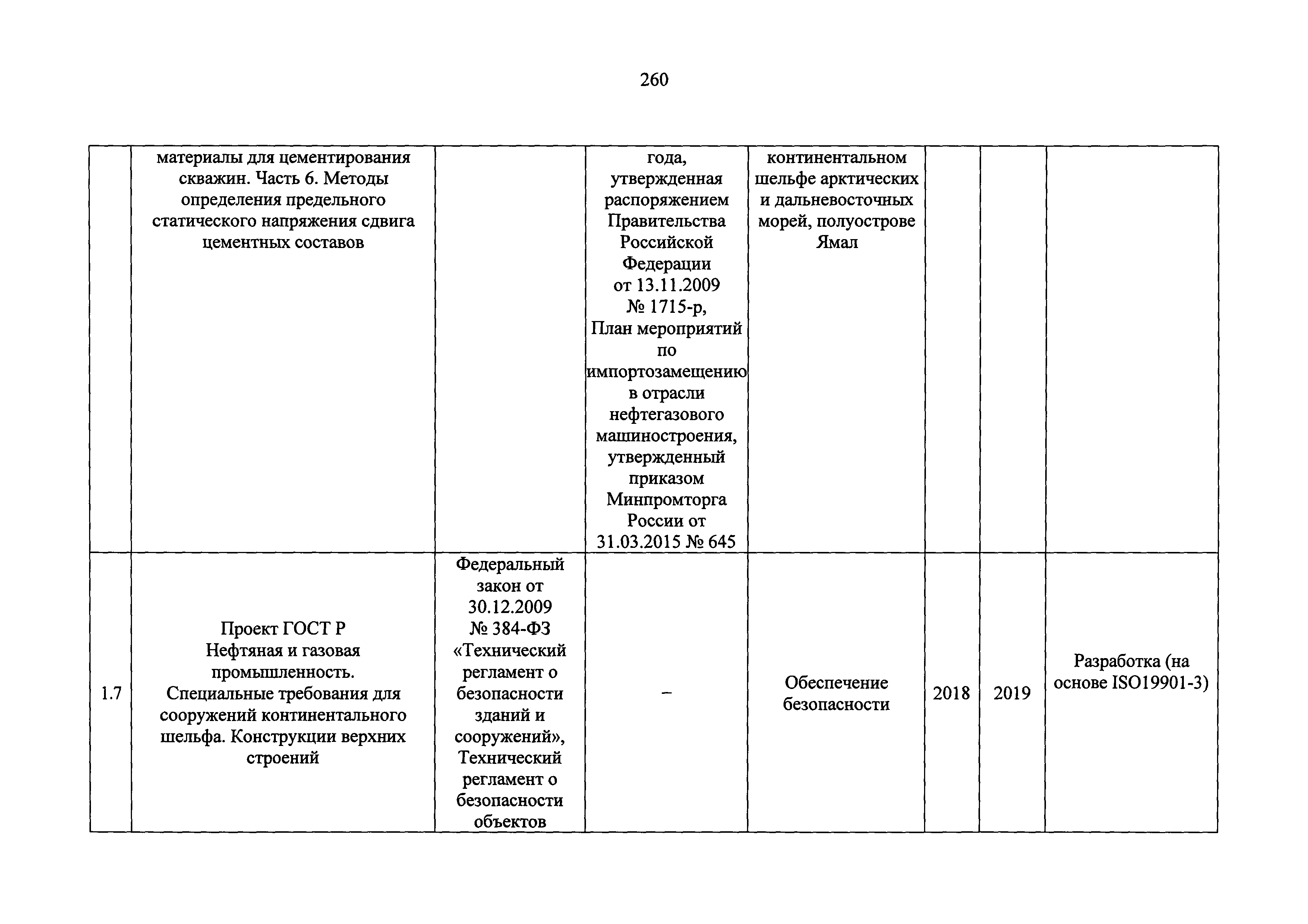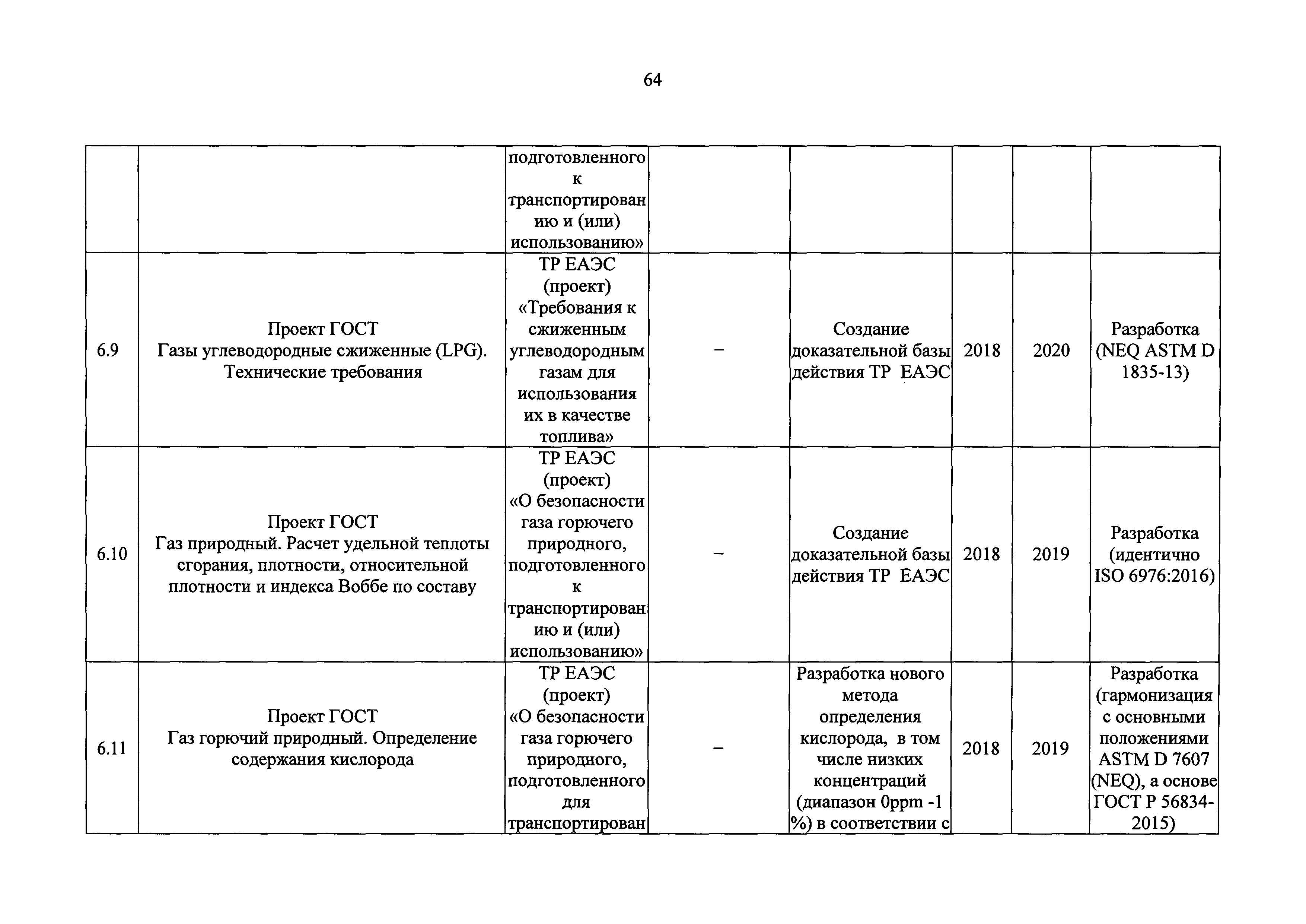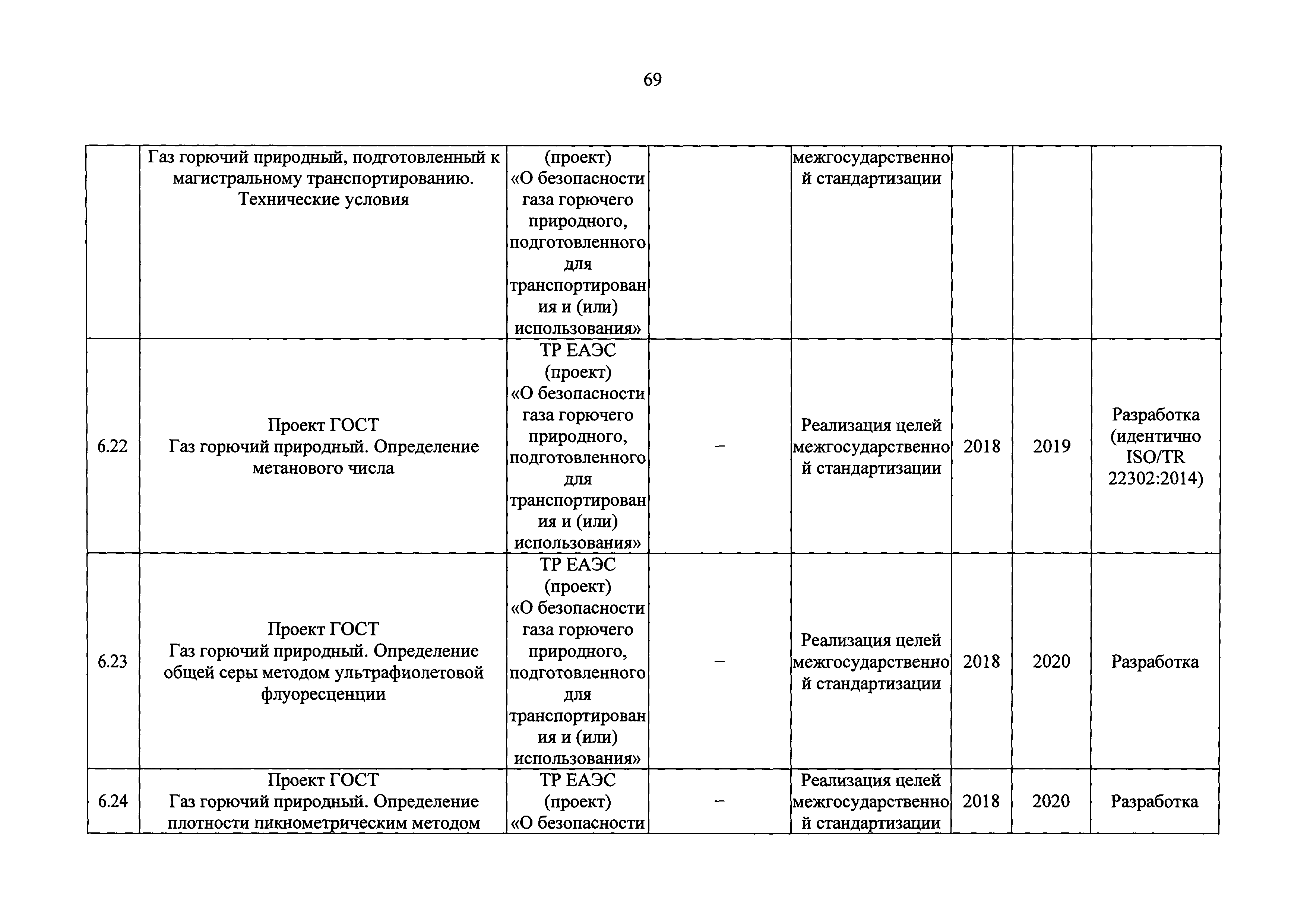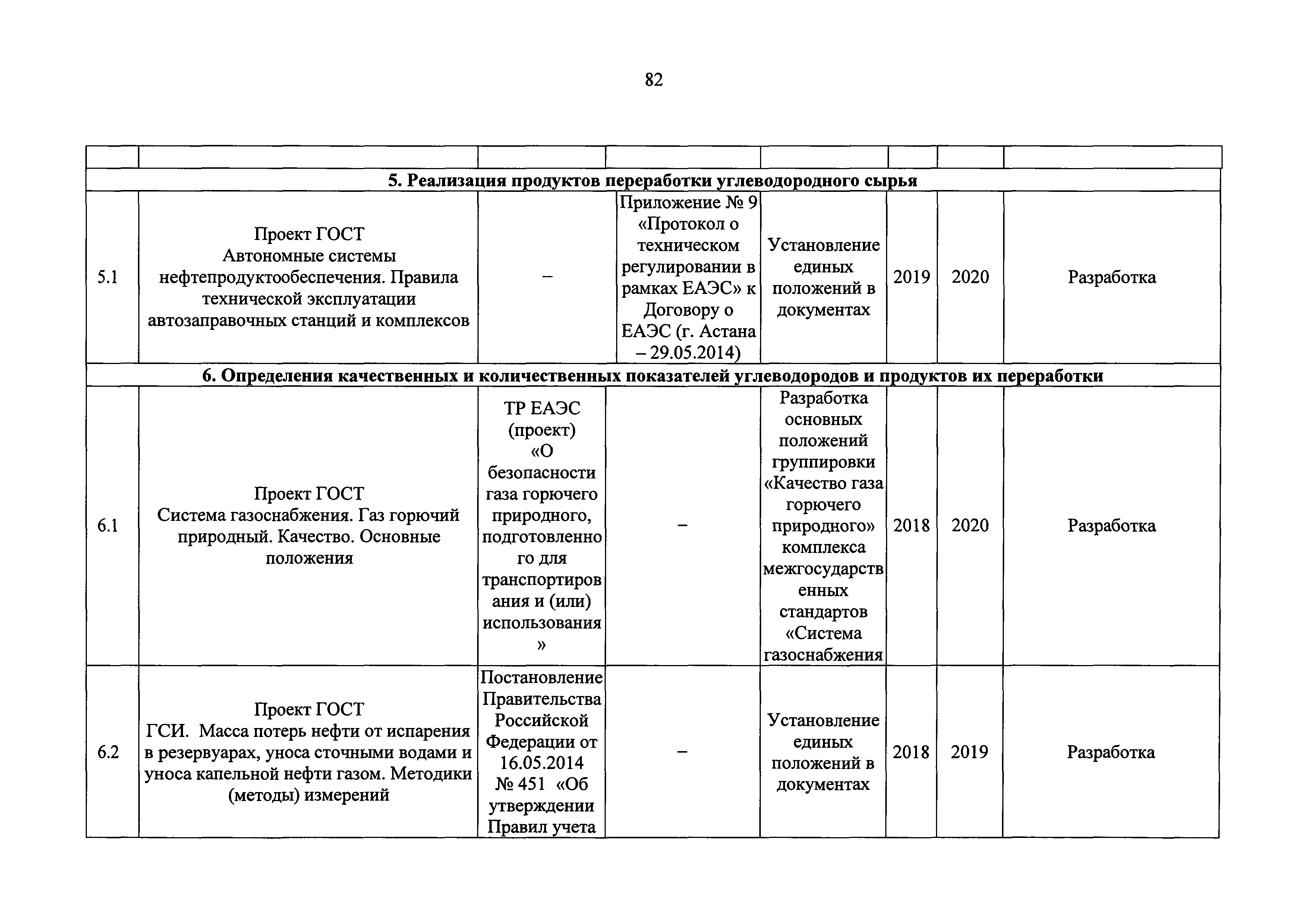 | Оглавление: | 1. Пояснительная записка к Перспективной программе стандартизации в нефтегазовом комплексе на период 2017 - 2022 годов 1.1. Основание для разработки Программы 1.2. Цели и задача Программы 1.3. Разработчики Программы 1.4. Сроки реализации Программы 1.5. Основные мероприятия Программы 1.6. Источники финансирования реализации Программы 1.7. Механизм реализации Программы 2. Краткий обзор механизмов формирования Перспективной программы стандартизации в нефтегазовом комплексе на период 2017 - 2022 годов 2.1. Основные принципы формирования структуры и разделов Программы 2.2. Ключевые аспекты проведения анализа международных, межгосударственных и национальных (государственных) стандартов в целях формирования Программы 2.3. Формирование научно обоснованных предложений по содержанию Программы 3. Паспорт Перспективной программы стандартизации в нефтегазовом комплексе на период 2017 - 2022 годов 3.1. Основные показатели Программы 3.2. Сокращения и обозначения 4. Перспективная программа стандартизации в нефтегазовом комплексе на период 2017 - 2022 годов Таблица 4.1 - Стандарты, которые необходимо разработать в целях реализации принятых и подлежащих разработке технических регламентов ЕАЭС Таблица 4.2 - Межгосударственные стандарты, которые необходимо разработать в целях исполнения соглашений в рамках ЕАЭС Таблица 4.3.1 - Межгосударственные стандарты, которые необходимо актуализировать в целях реализации принятых и подлежащих разработке технических регламентов ЕАЭС Таблица 4.3.2 - Межгосударственные стандарты, которые необходимо актуализировать в целях исполнения соглашений в рамках ЕАЭС, за исключением стандартов, на которые даны ссылки в технических регламентах ЕАЭС Таблица 4.4 - Стандарты, которые необходимо разработать в целях повышения уровня модернизации и конкурентоспособности организаций российского нефтегазового комплекса Таблица 4.5 - Стандарты, подлежащие актуализации в целях приведения в соответствие с положениями законодательства Российской Федерации и повышения конкурентоспособности продукции нефтегазового комплекса Таблица 4.6 - Международные стандарты, подлежащие переводу и принятию в рамках Российской Федерации с целью интеграции российского нефтегазового комплекса в мировую экономику |