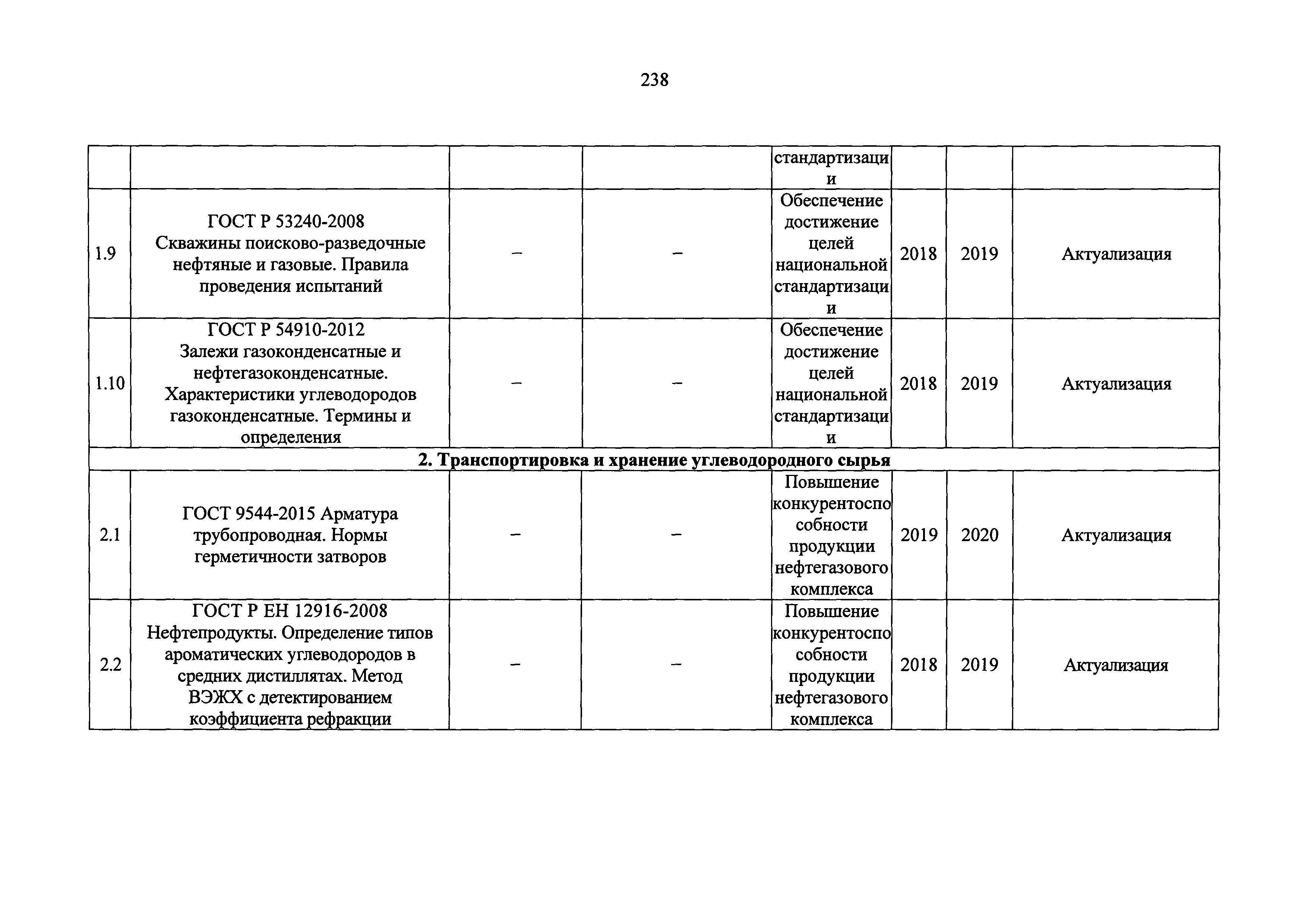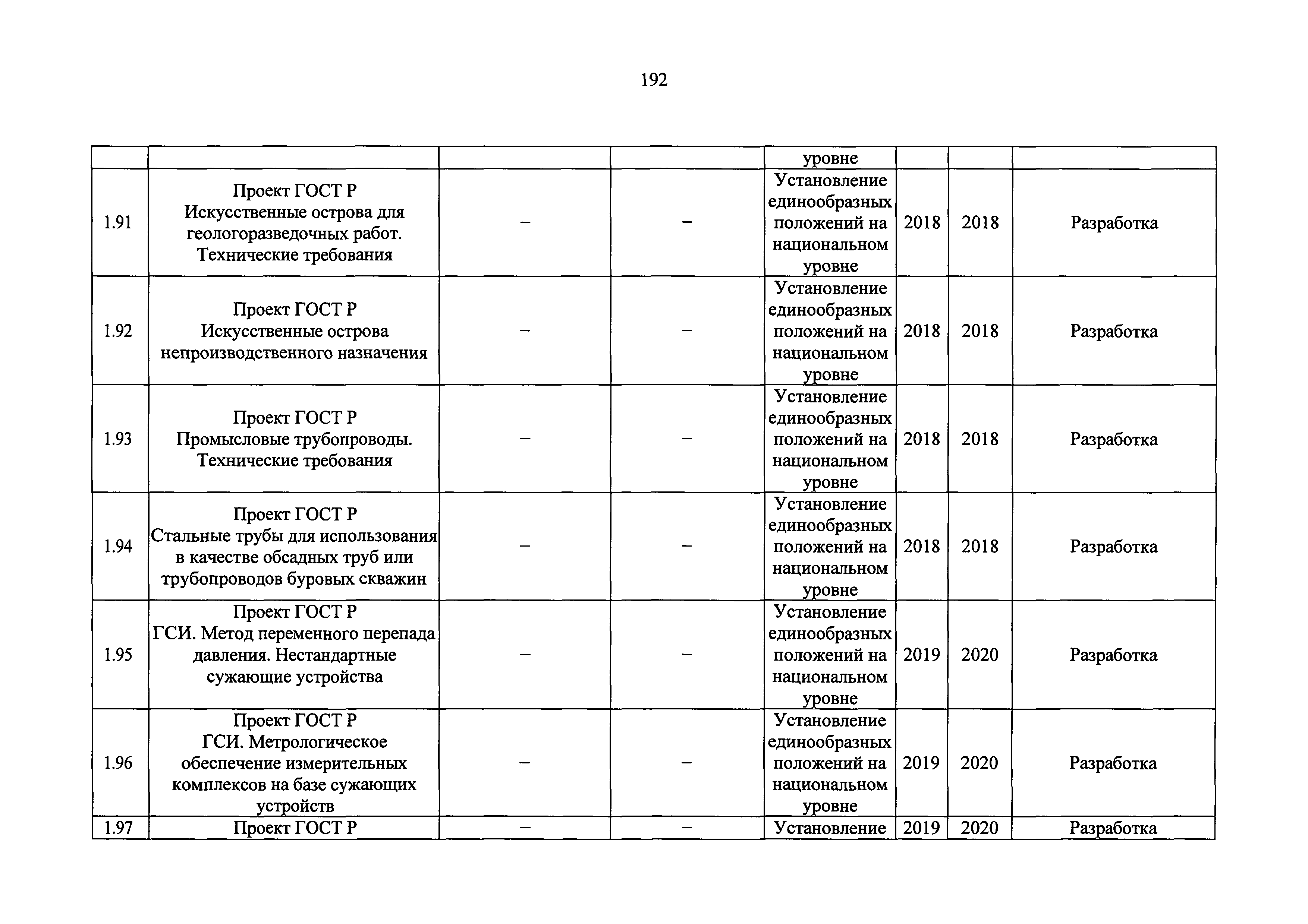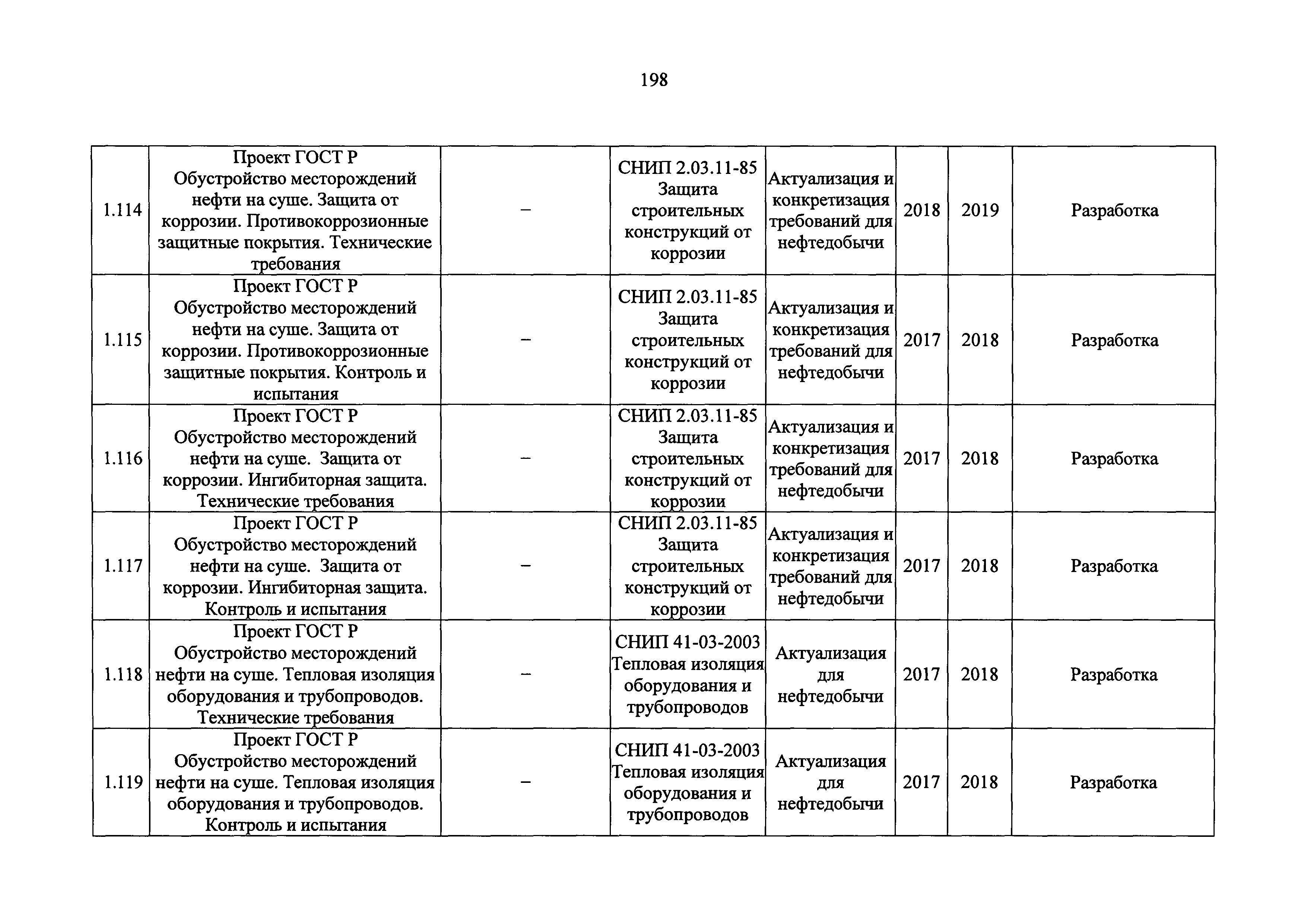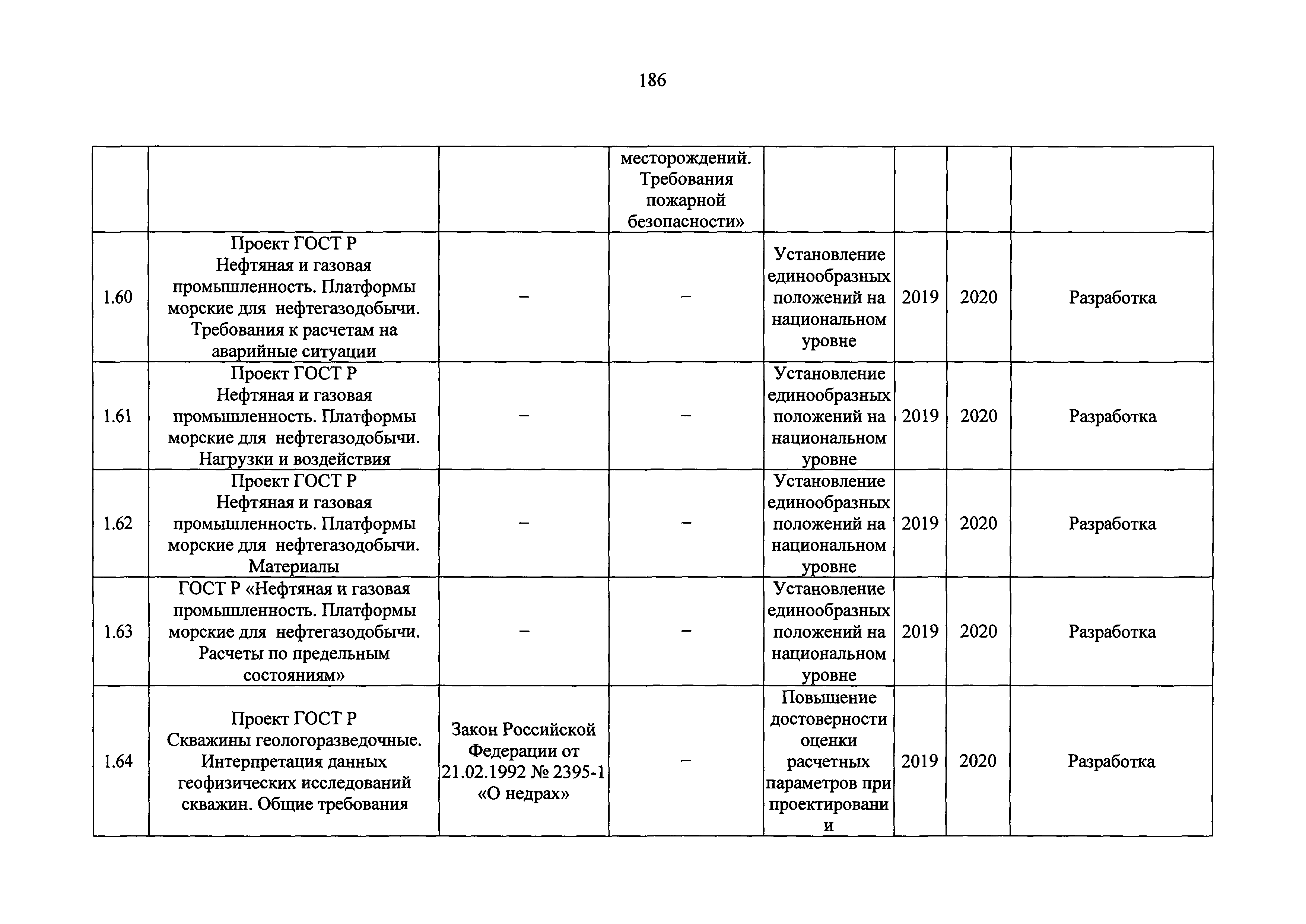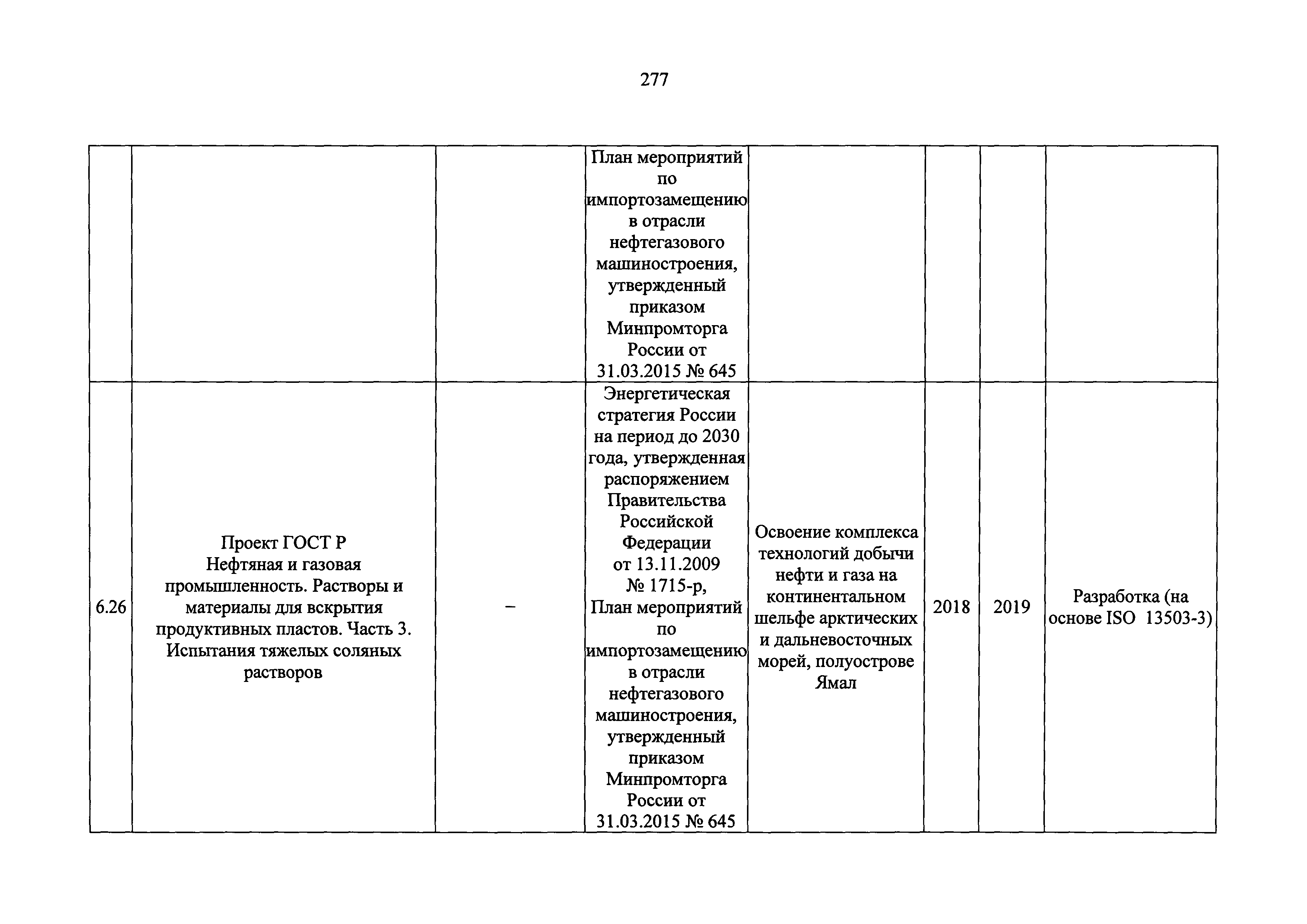 | Оглавление: | 1. Пояснительная записка к Перспективной программе стандартизации в нефтегазовом комплексе на период 2017 - 2022 годов 1.1. Основание для разработки Программы 1.2. Цели и задача Программы 1.3. Разработчики Программы 1.4. Сроки реализации Программы 1.5. Основные мероприятия Программы 1.6. Источники финансирования реализации Программы 1.7. Механизм реализации Программы 2. Краткий обзор механизмов формирования Перспективной программы стандартизации в нефтегазовом комплексе на период 2017 - 2022 годов 2.1. Основные принципы формирования структуры и разделов Программы 2.2. Ключевые аспекты проведения анализа международных, межгосударственных и национальных (государственных) стандартов в целях формирования Программы 2.3. Формирование научно обоснованных предложений по содержанию Программы 3. Паспорт Перспективной программы стандартизации в нефтегазовом комплексе на период 2017 - 2022 годов 3.1. Основные показатели Программы 3.2. Сокращения и обозначения 4. Перспективная программа стандартизации в нефтегазовом комплексе на период 2017 - 2022 годов Таблица 4.1 - Стандарты, которые необходимо разработать в целях реализации принятых и подлежащих разработке технических регламентов ЕАЭС Таблица 4.2 - Межгосударственные стандарты, которые необходимо разработать в целях исполнения соглашений в рамках ЕАЭС Таблица 4.3.1 - Межгосударственные стандарты, которые необходимо актуализировать в целях реализации принятых и подлежащих разработке технических регламентов ЕАЭС Таблица 4.3.2 - Межгосударственные стандарты, которые необходимо актуализировать в целях исполнения соглашений в рамках ЕАЭС, за исключением стандартов, на которые даны ссылки в технических регламентах ЕАЭС Таблица 4.4 - Стандарты, которые необходимо разработать в целях повышения уровня модернизации и конкурентоспособности организаций российского нефтегазового комплекса Таблица 4.5 - Стандарты, подлежащие актуализации в целях приведения в соответствие с положениями законодательства Российской Федерации и повышения конкурентоспособности продукции нефтегазового комплекса Таблица 4.6 - Международные стандарты, подлежащие переводу и принятию в рамках Российской Федерации с целью интеграции российского нефтегазового комплекса в мировую экономику |