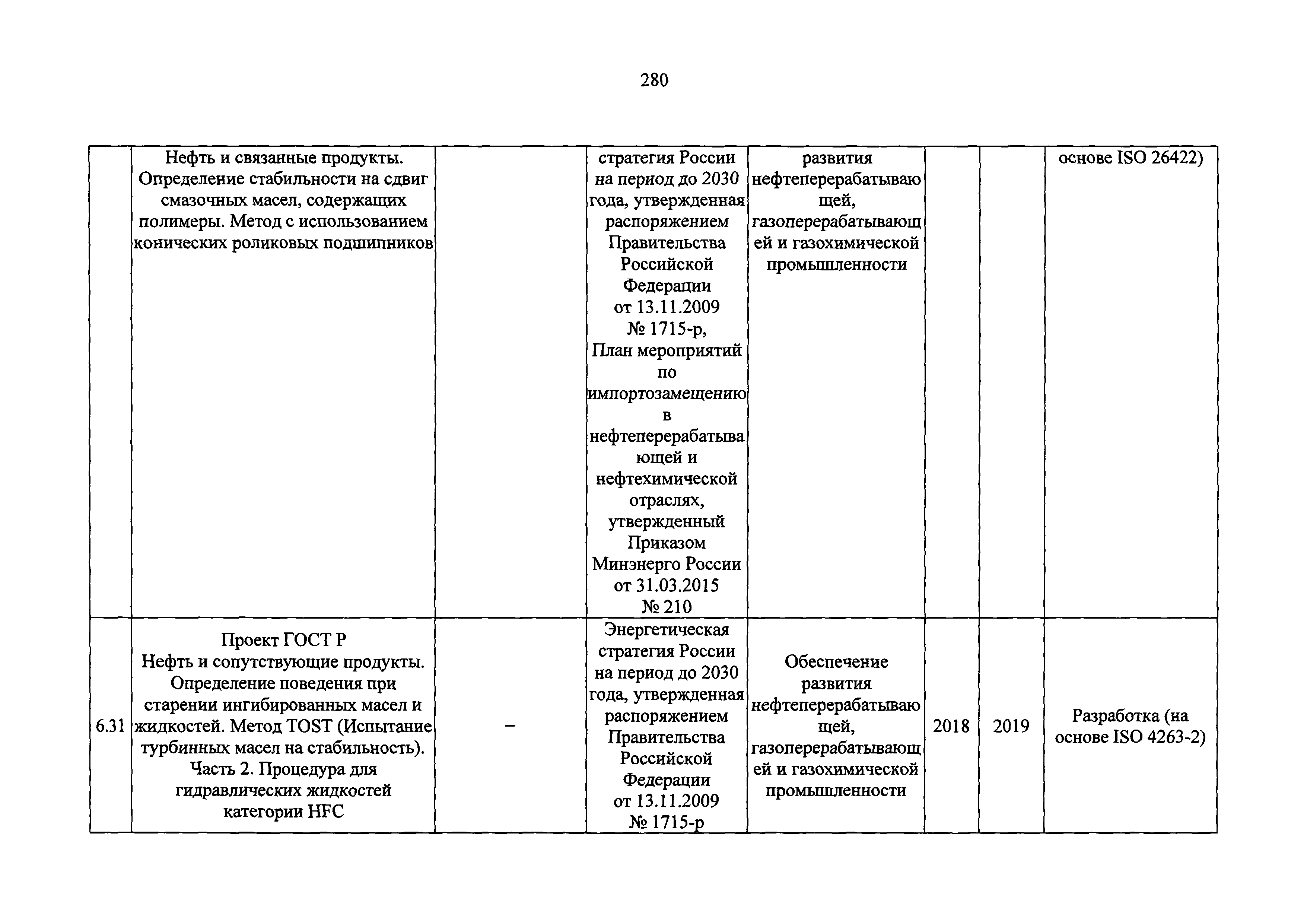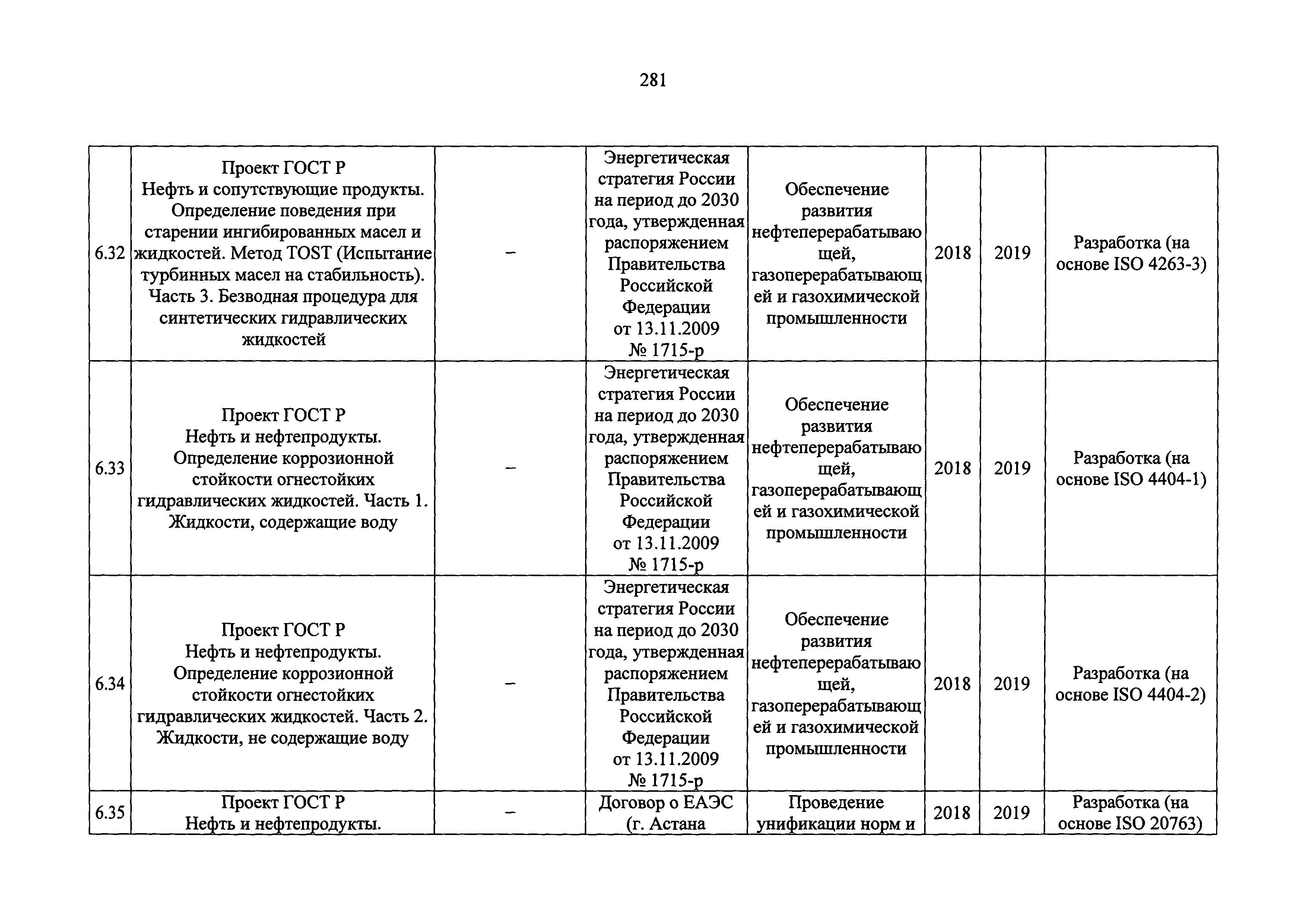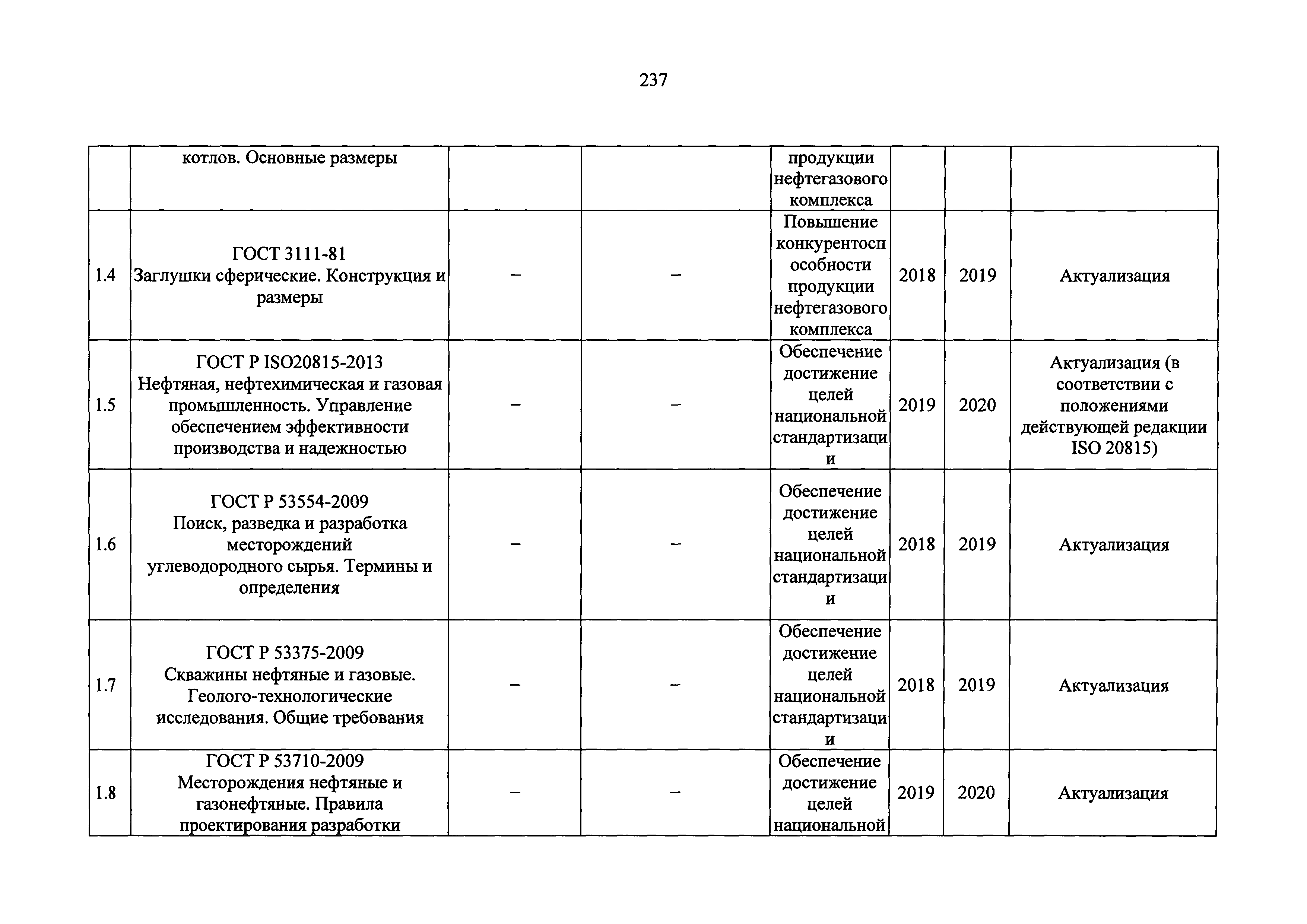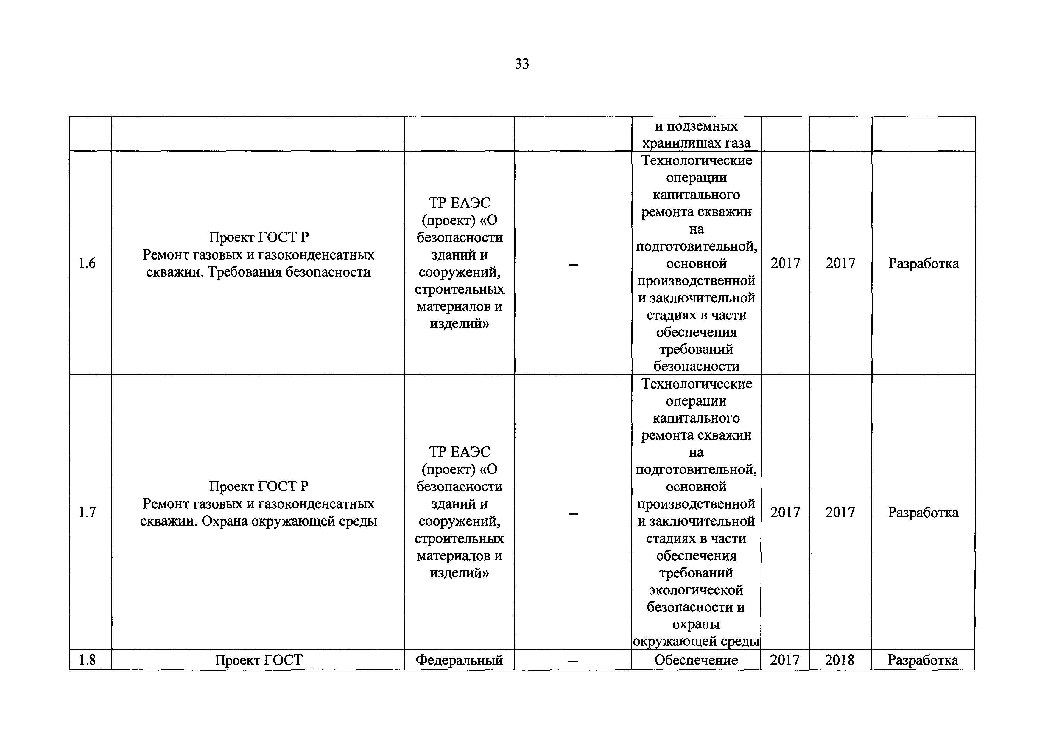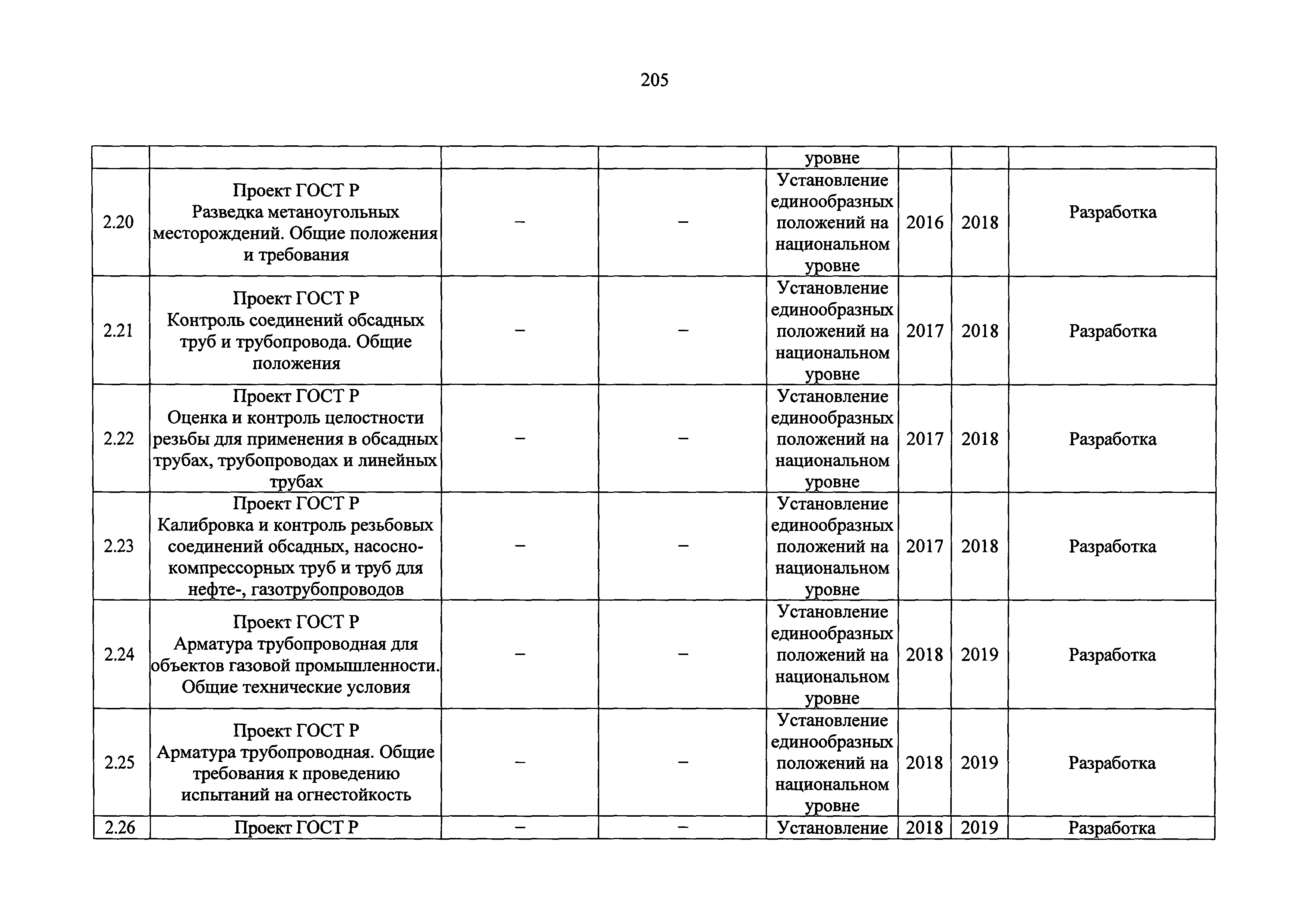 | Оглавление: | 1. Пояснительная записка к Перспективной программе стандартизации в нефтегазовом комплексе на период 2017 - 2022 годов 1.1. Основание для разработки Программы 1.2. Цели и задача Программы 1.3. Разработчики Программы 1.4. Сроки реализации Программы 1.5. Основные мероприятия Программы 1.6. Источники финансирования реализации Программы 1.7. Механизм реализации Программы 2. Краткий обзор механизмов формирования Перспективной программы стандартизации в нефтегазовом комплексе на период 2017 - 2022 годов 2.1. Основные принципы формирования структуры и разделов Программы 2.2. Ключевые аспекты проведения анализа международных, межгосударственных и национальных (государственных) стандартов в целях формирования Программы 2.3. Формирование научно обоснованных предложений по содержанию Программы 3. Паспорт Перспективной программы стандартизации в нефтегазовом комплексе на период 2017 - 2022 годов 3.1. Основные показатели Программы 3.2. Сокращения и обозначения 4. Перспективная программа стандартизации в нефтегазовом комплексе на период 2017 - 2022 годов Таблица 4.1 - Стандарты, которые необходимо разработать в целях реализации принятых и подлежащих разработке технических регламентов ЕАЭС Таблица 4.2 - Межгосударственные стандарты, которые необходимо разработать в целях исполнения соглашений в рамках ЕАЭС Таблица 4.3.1 - Межгосударственные стандарты, которые необходимо актуализировать в целях реализации принятых и подлежащих разработке технических регламентов ЕАЭС Таблица 4.3.2 - Межгосударственные стандарты, которые необходимо актуализировать в целях исполнения соглашений в рамках ЕАЭС, за исключением стандартов, на которые даны ссылки в технических регламентах ЕАЭС Таблица 4.4 - Стандарты, которые необходимо разработать в целях повышения уровня модернизации и конкурентоспособности организаций российского нефтегазового комплекса Таблица 4.5 - Стандарты, подлежащие актуализации в целях приведения в соответствие с положениями законодательства Российской Федерации и повышения конкурентоспособности продукции нефтегазового комплекса Таблица 4.6 - Международные стандарты, подлежащие переводу и принятию в рамках Российской Федерации с целью интеграции российского нефтегазового комплекса в мировую экономику |