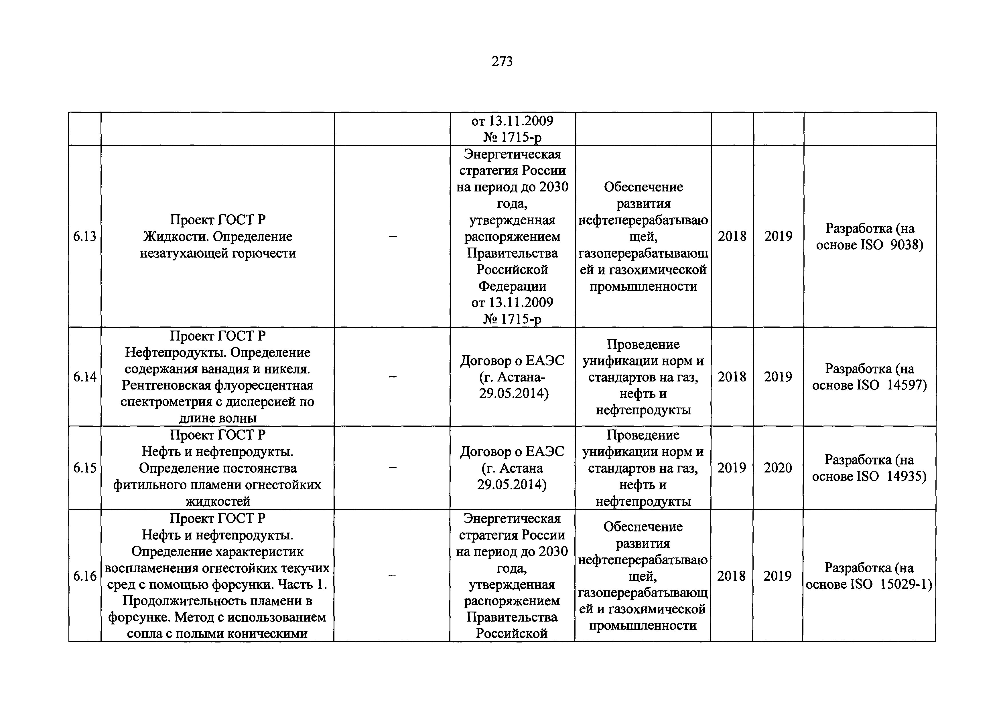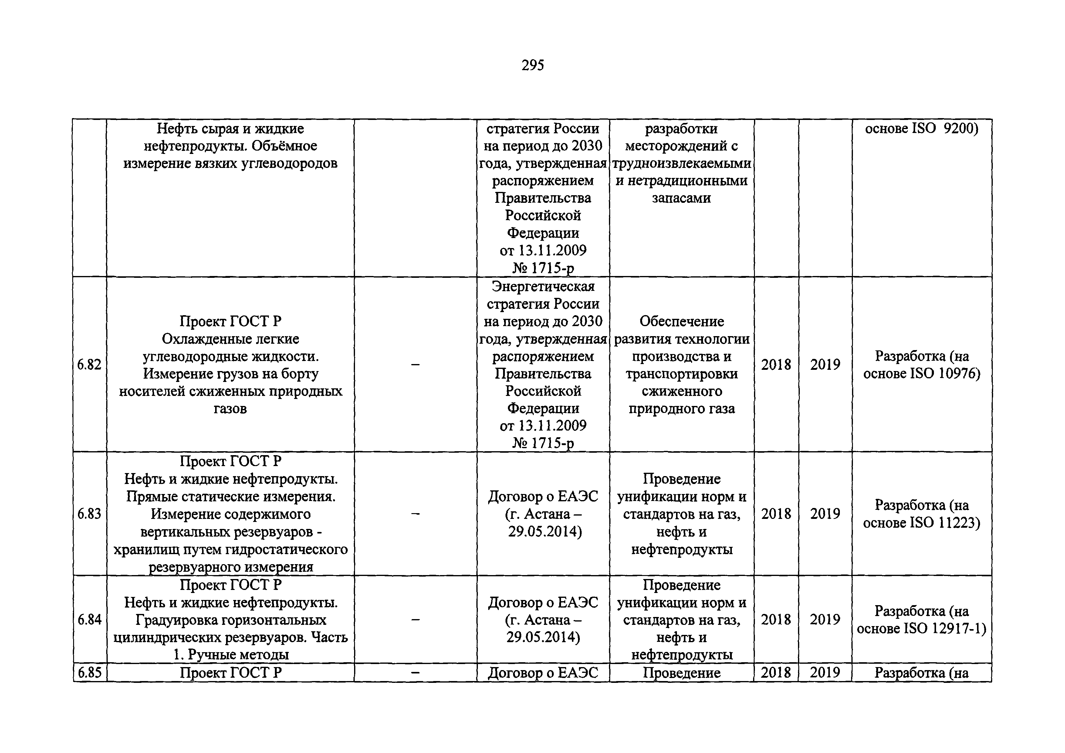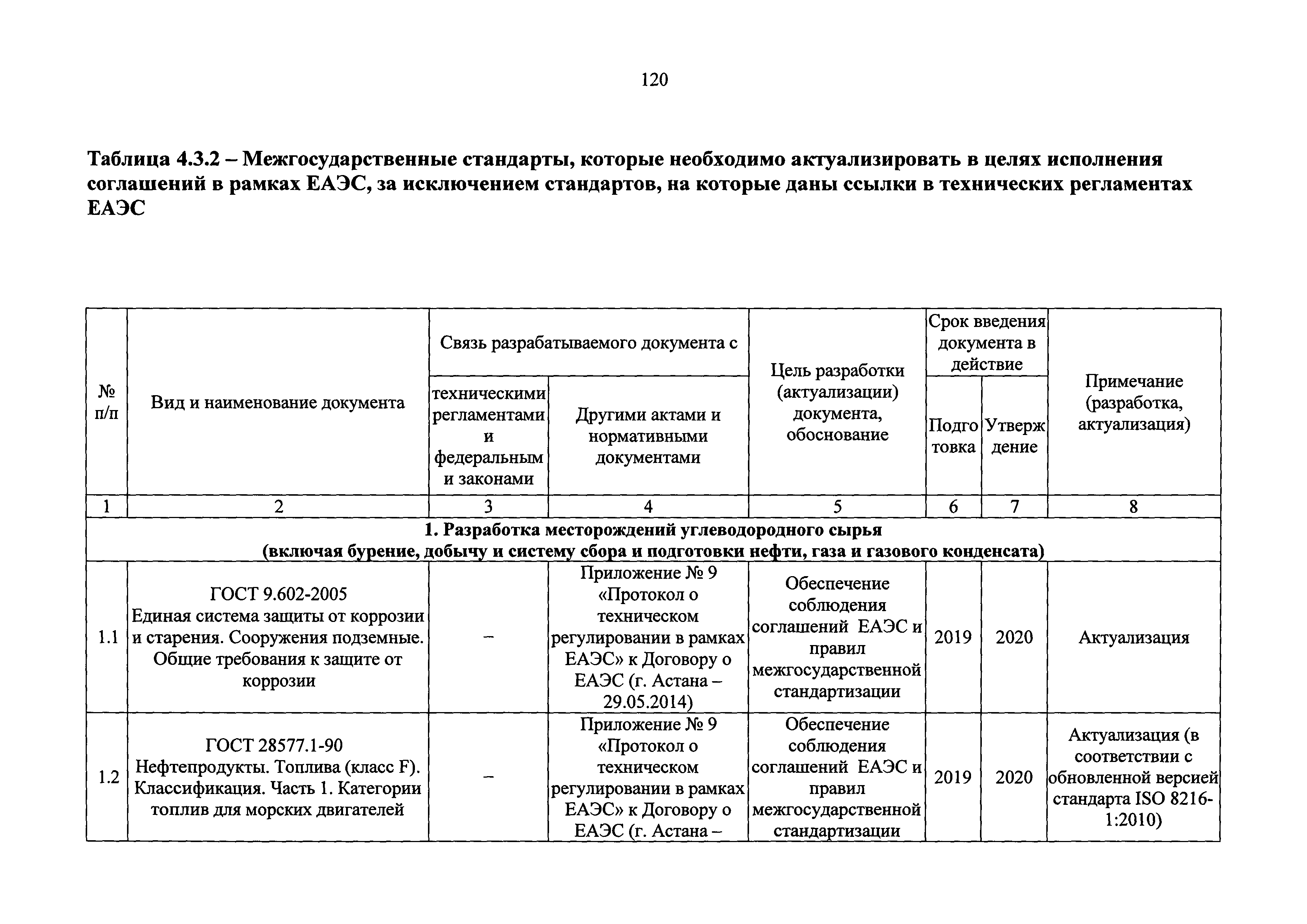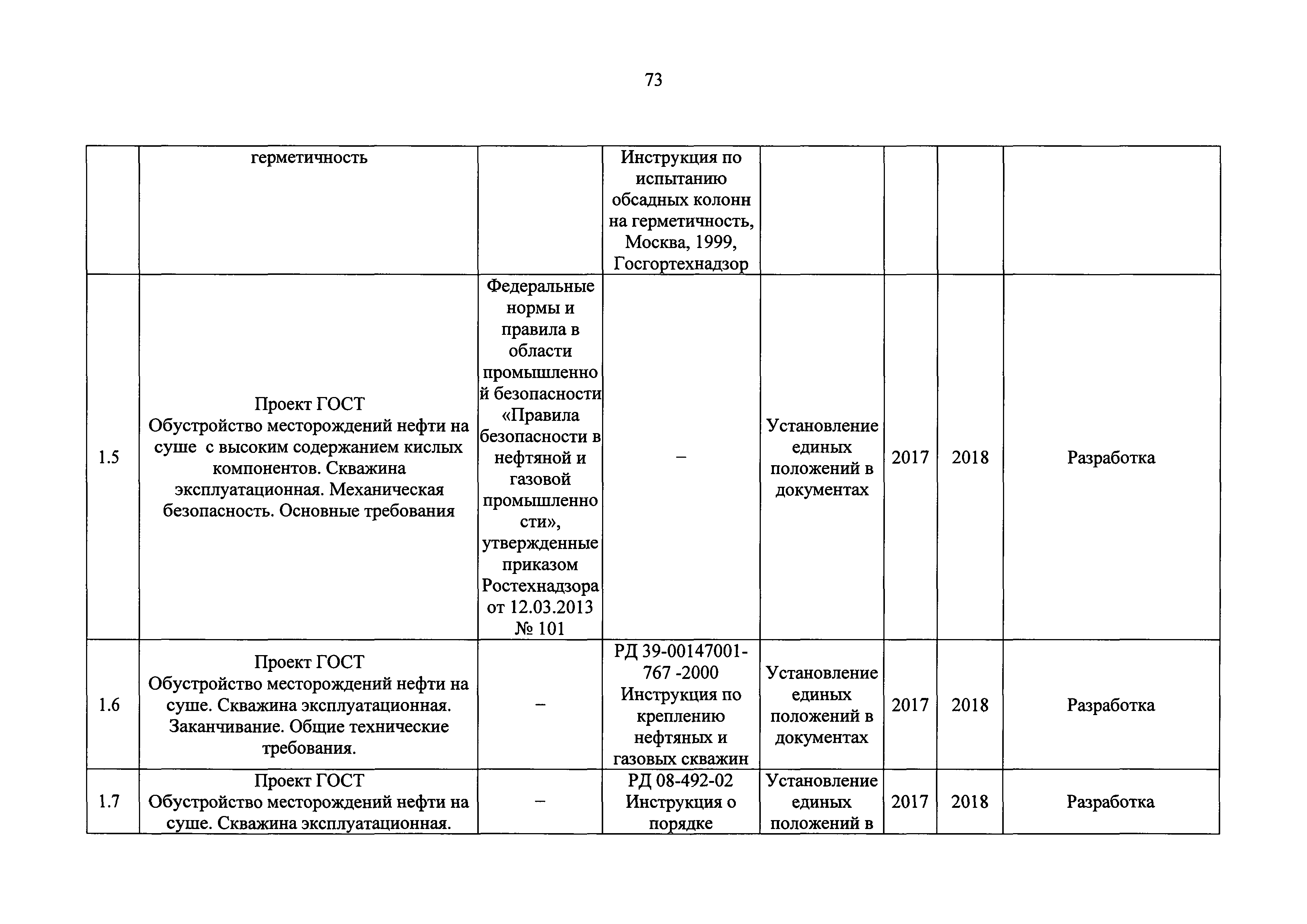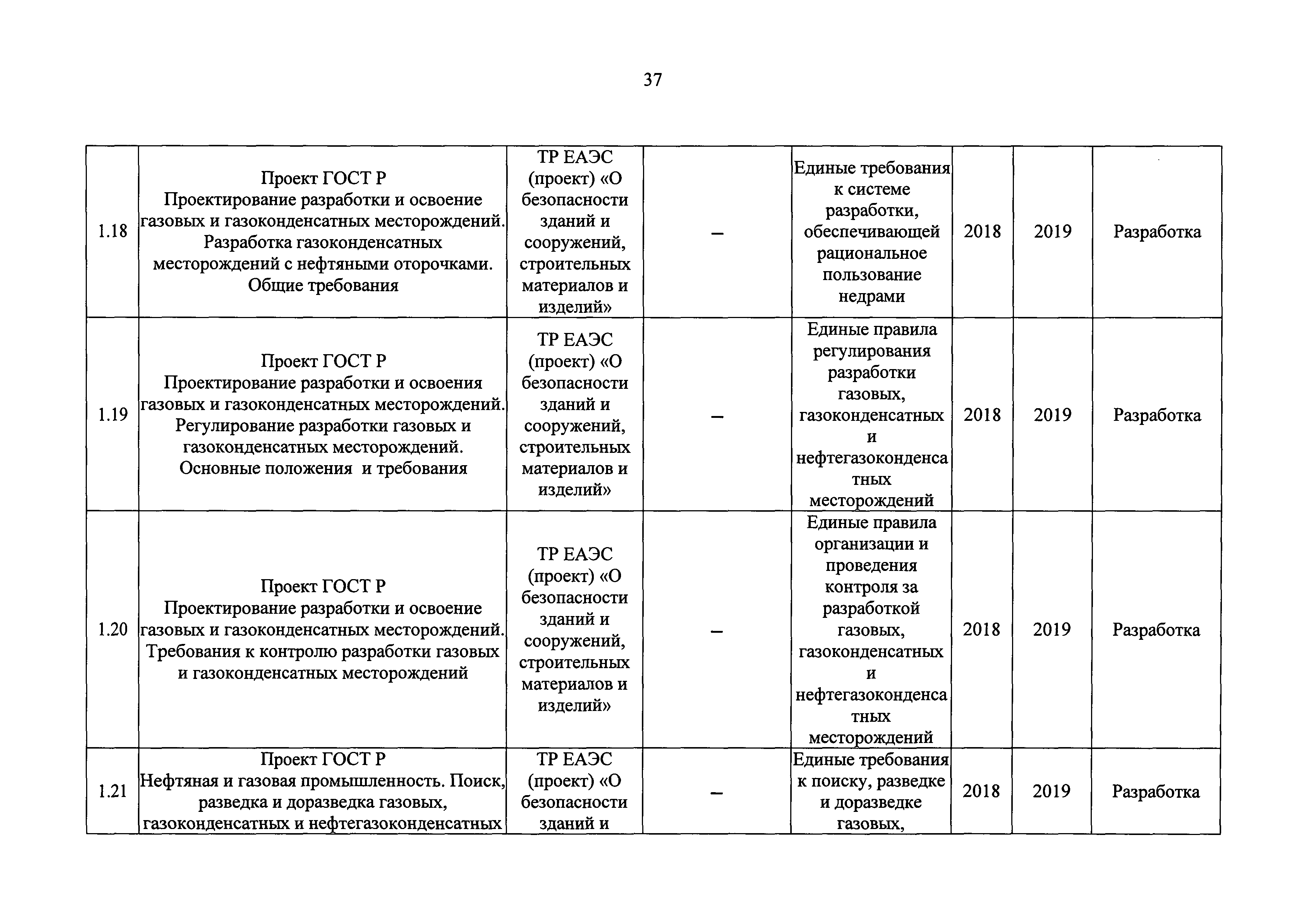 | Оглавление: | 1. Пояснительная записка к Перспективной программе стандартизации в нефтегазовом комплексе на период 2017 - 2022 годов 1.1. Основание для разработки Программы 1.2. Цели и задача Программы 1.3. Разработчики Программы 1.4. Сроки реализации Программы 1.5. Основные мероприятия Программы 1.6. Источники финансирования реализации Программы 1.7. Механизм реализации Программы 2. Краткий обзор механизмов формирования Перспективной программы стандартизации в нефтегазовом комплексе на период 2017 - 2022 годов 2.1. Основные принципы формирования структуры и разделов Программы 2.2. Ключевые аспекты проведения анализа международных, межгосударственных и национальных (государственных) стандартов в целях формирования Программы 2.3. Формирование научно обоснованных предложений по содержанию Программы 3. Паспорт Перспективной программы стандартизации в нефтегазовом комплексе на период 2017 - 2022 годов 3.1. Основные показатели Программы 3.2. Сокращения и обозначения 4. Перспективная программа стандартизации в нефтегазовом комплексе на период 2017 - 2022 годов Таблица 4.1 - Стандарты, которые необходимо разработать в целях реализации принятых и подлежащих разработке технических регламентов ЕАЭС Таблица 4.2 - Межгосударственные стандарты, которые необходимо разработать в целях исполнения соглашений в рамках ЕАЭС Таблица 4.3.1 - Межгосударственные стандарты, которые необходимо актуализировать в целях реализации принятых и подлежащих разработке технических регламентов ЕАЭС Таблица 4.3.2 - Межгосударственные стандарты, которые необходимо актуализировать в целях исполнения соглашений в рамках ЕАЭС, за исключением стандартов, на которые даны ссылки в технических регламентах ЕАЭС Таблица 4.4 - Стандарты, которые необходимо разработать в целях повышения уровня модернизации и конкурентоспособности организаций российского нефтегазового комплекса Таблица 4.5 - Стандарты, подлежащие актуализации в целях приведения в соответствие с положениями законодательства Российской Федерации и повышения конкурентоспособности продукции нефтегазового комплекса Таблица 4.6 - Международные стандарты, подлежащие переводу и принятию в рамках Российской Федерации с целью интеграции российского нефтегазового комплекса в мировую экономику |