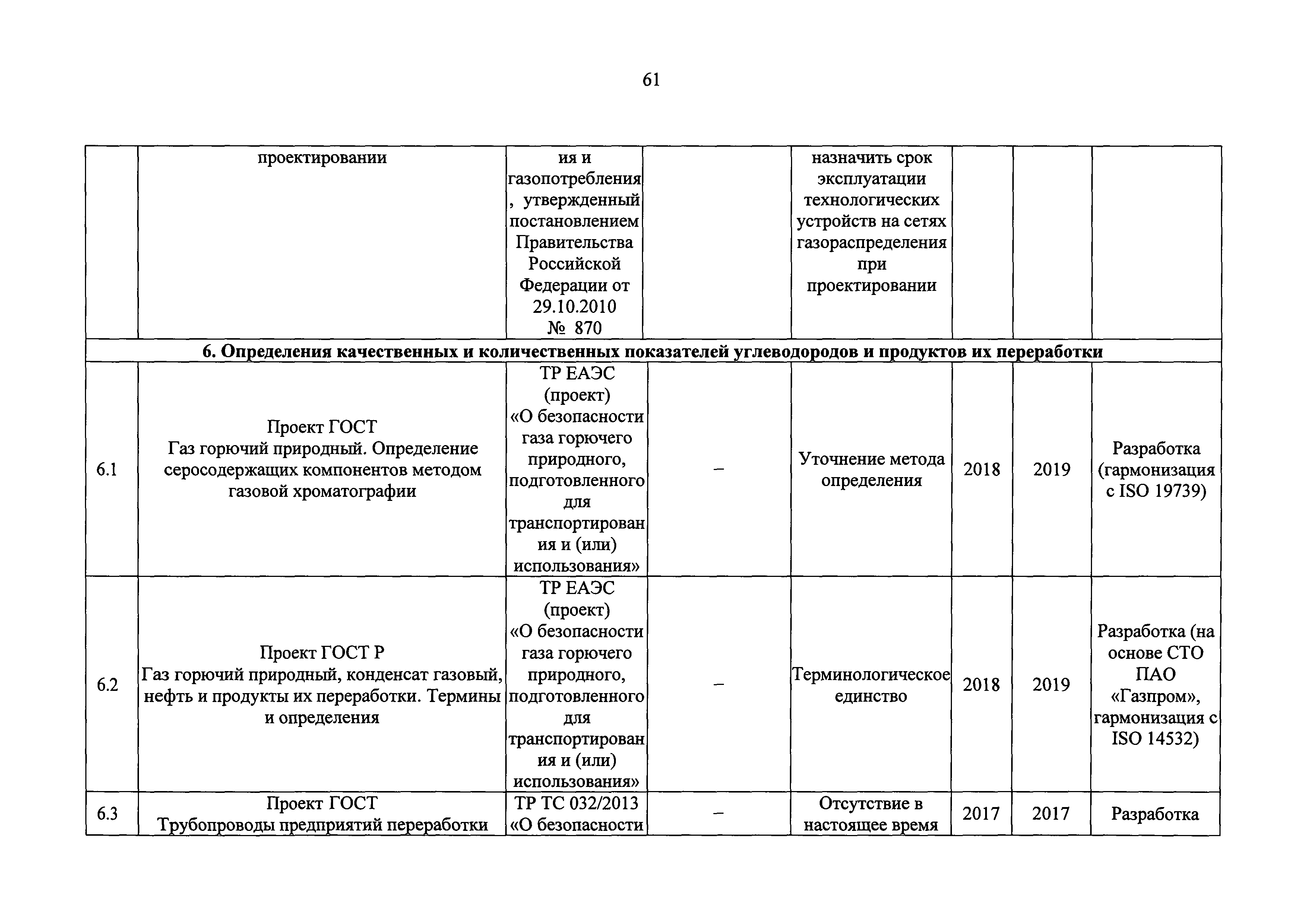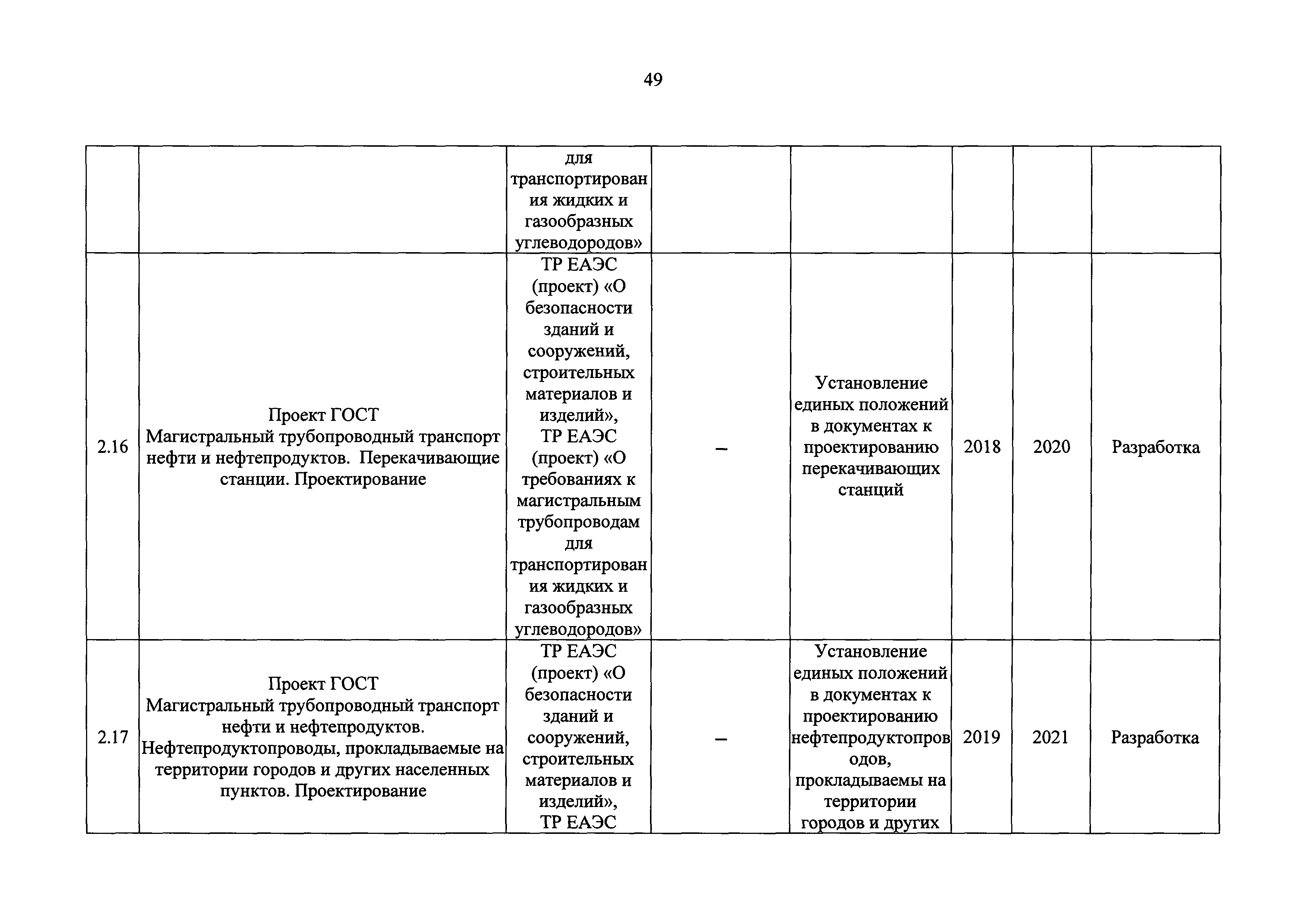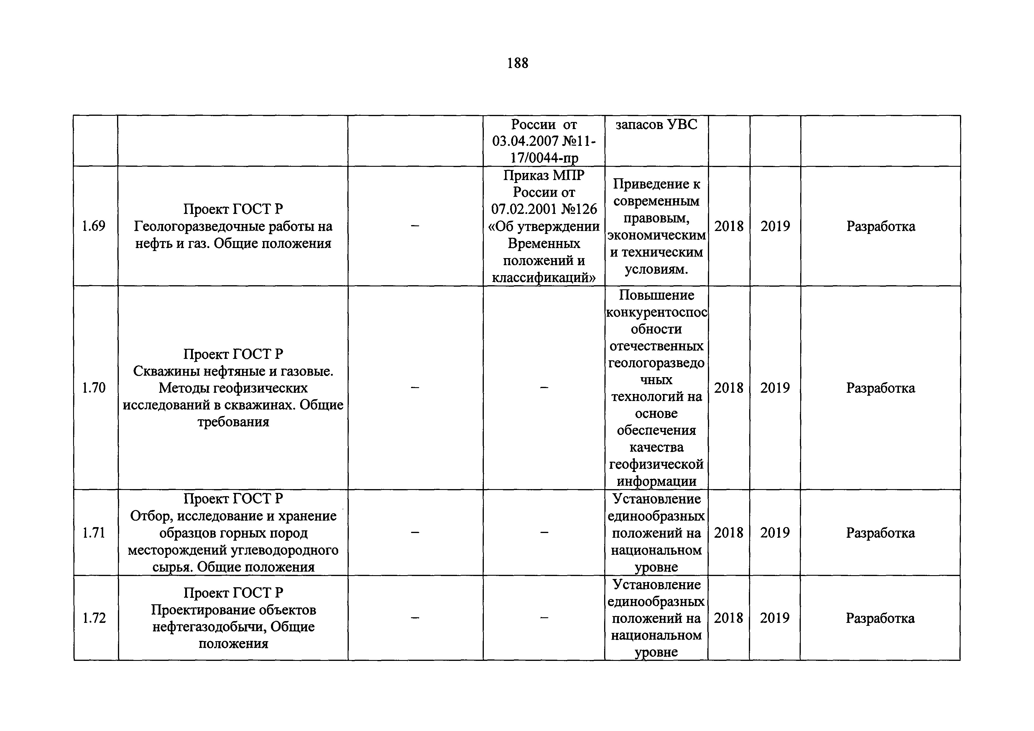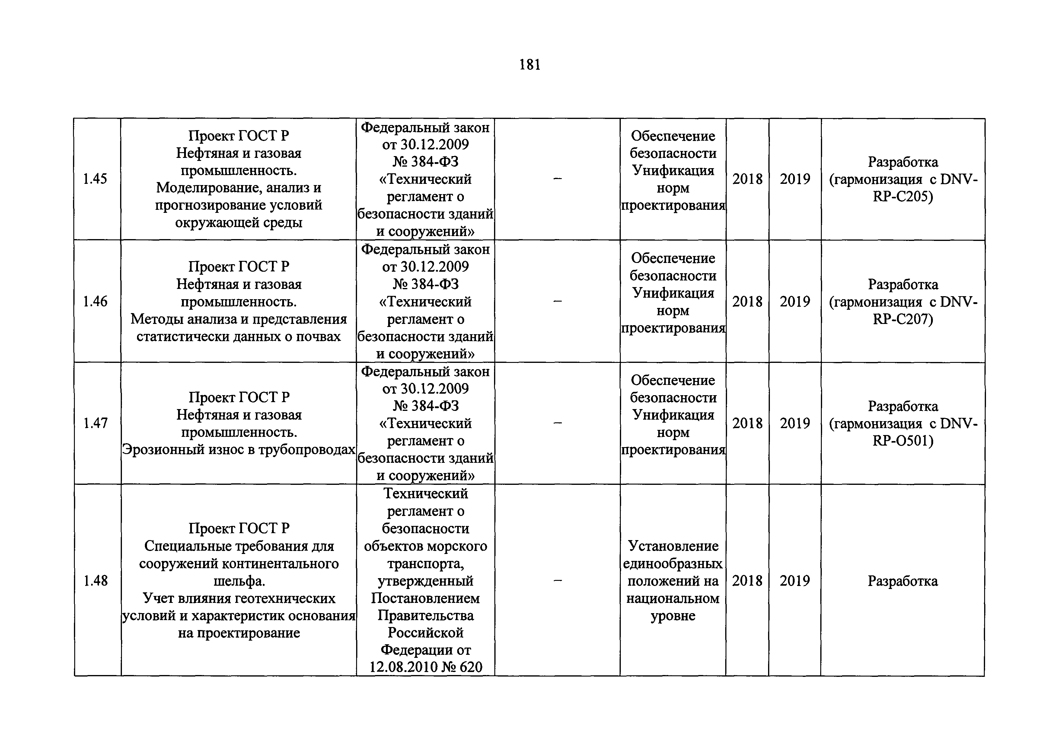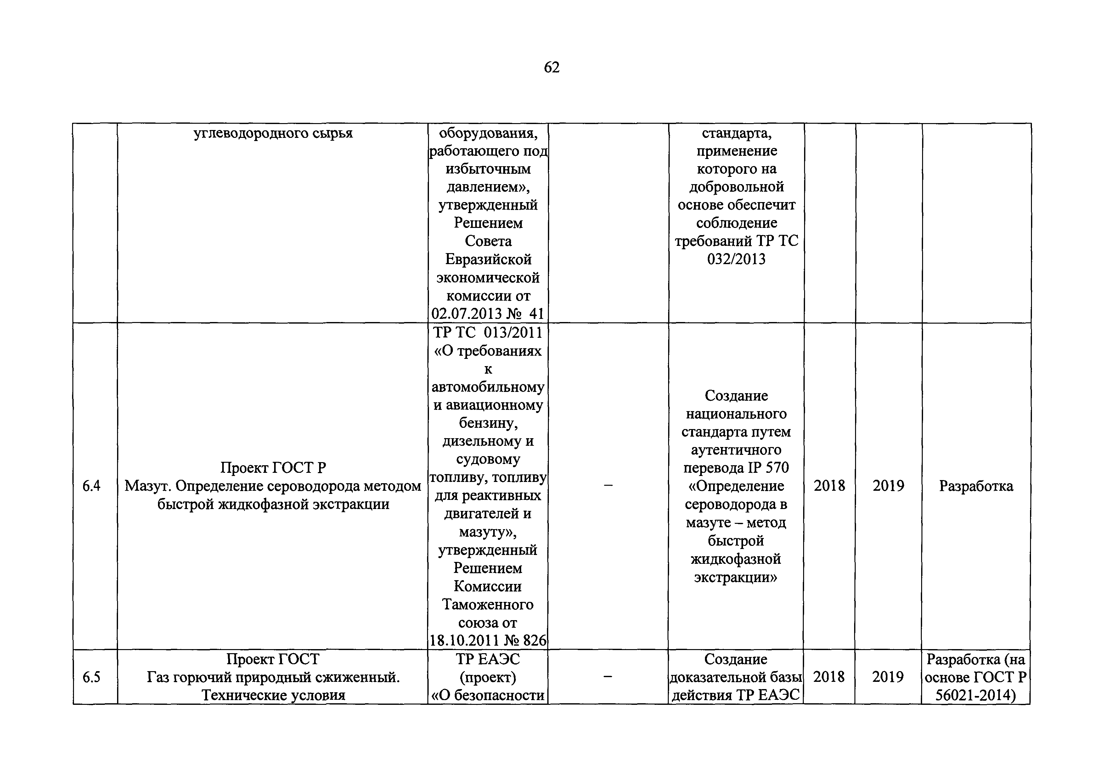 | Оглавление: | 1. Пояснительная записка к Перспективной программе стандартизации в нефтегазовом комплексе на период 2017 - 2022 годов 1.1. Основание для разработки Программы 1.2. Цели и задача Программы 1.3. Разработчики Программы 1.4. Сроки реализации Программы 1.5. Основные мероприятия Программы 1.6. Источники финансирования реализации Программы 1.7. Механизм реализации Программы 2. Краткий обзор механизмов формирования Перспективной программы стандартизации в нефтегазовом комплексе на период 2017 - 2022 годов 2.1. Основные принципы формирования структуры и разделов Программы 2.2. Ключевые аспекты проведения анализа международных, межгосударственных и национальных (государственных) стандартов в целях формирования Программы 2.3. Формирование научно обоснованных предложений по содержанию Программы 3. Паспорт Перспективной программы стандартизации в нефтегазовом комплексе на период 2017 - 2022 годов 3.1. Основные показатели Программы 3.2. Сокращения и обозначения 4. Перспективная программа стандартизации в нефтегазовом комплексе на период 2017 - 2022 годов Таблица 4.1 - Стандарты, которые необходимо разработать в целях реализации принятых и подлежащих разработке технических регламентов ЕАЭС Таблица 4.2 - Межгосударственные стандарты, которые необходимо разработать в целях исполнения соглашений в рамках ЕАЭС Таблица 4.3.1 - Межгосударственные стандарты, которые необходимо актуализировать в целях реализации принятых и подлежащих разработке технических регламентов ЕАЭС Таблица 4.3.2 - Межгосударственные стандарты, которые необходимо актуализировать в целях исполнения соглашений в рамках ЕАЭС, за исключением стандартов, на которые даны ссылки в технических регламентах ЕАЭС Таблица 4.4 - Стандарты, которые необходимо разработать в целях повышения уровня модернизации и конкурентоспособности организаций российского нефтегазового комплекса Таблица 4.5 - Стандарты, подлежащие актуализации в целях приведения в соответствие с положениями законодательства Российской Федерации и повышения конкурентоспособности продукции нефтегазового комплекса Таблица 4.6 - Международные стандарты, подлежащие переводу и принятию в рамках Российской Федерации с целью интеграции российского нефтегазового комплекса в мировую экономику |