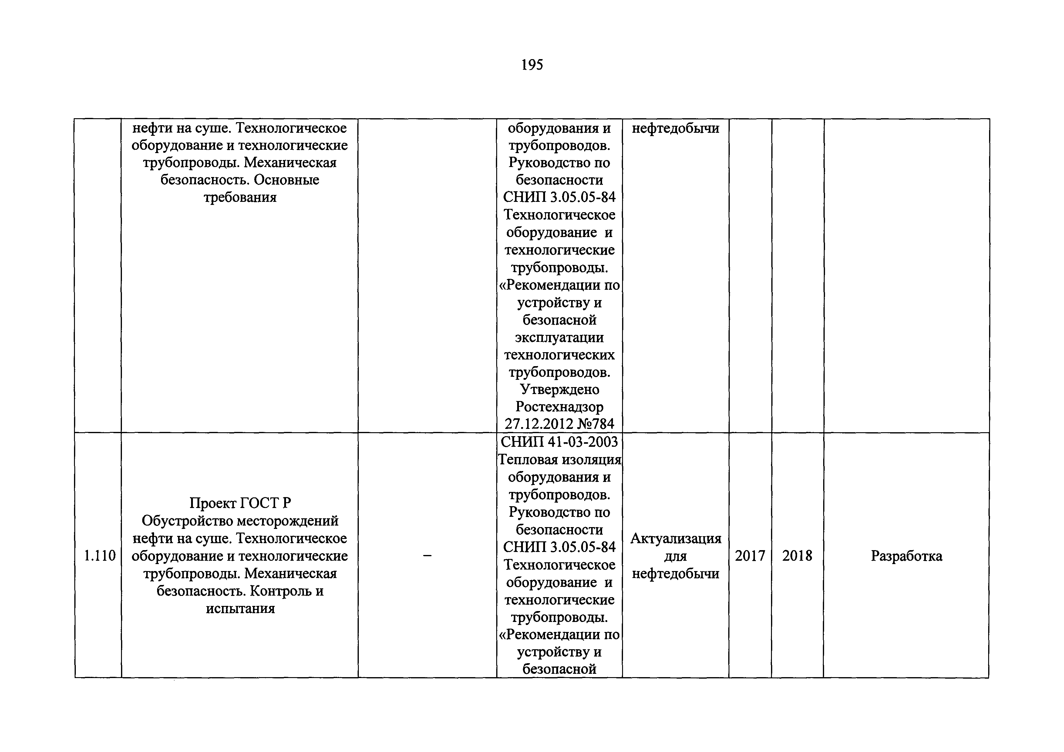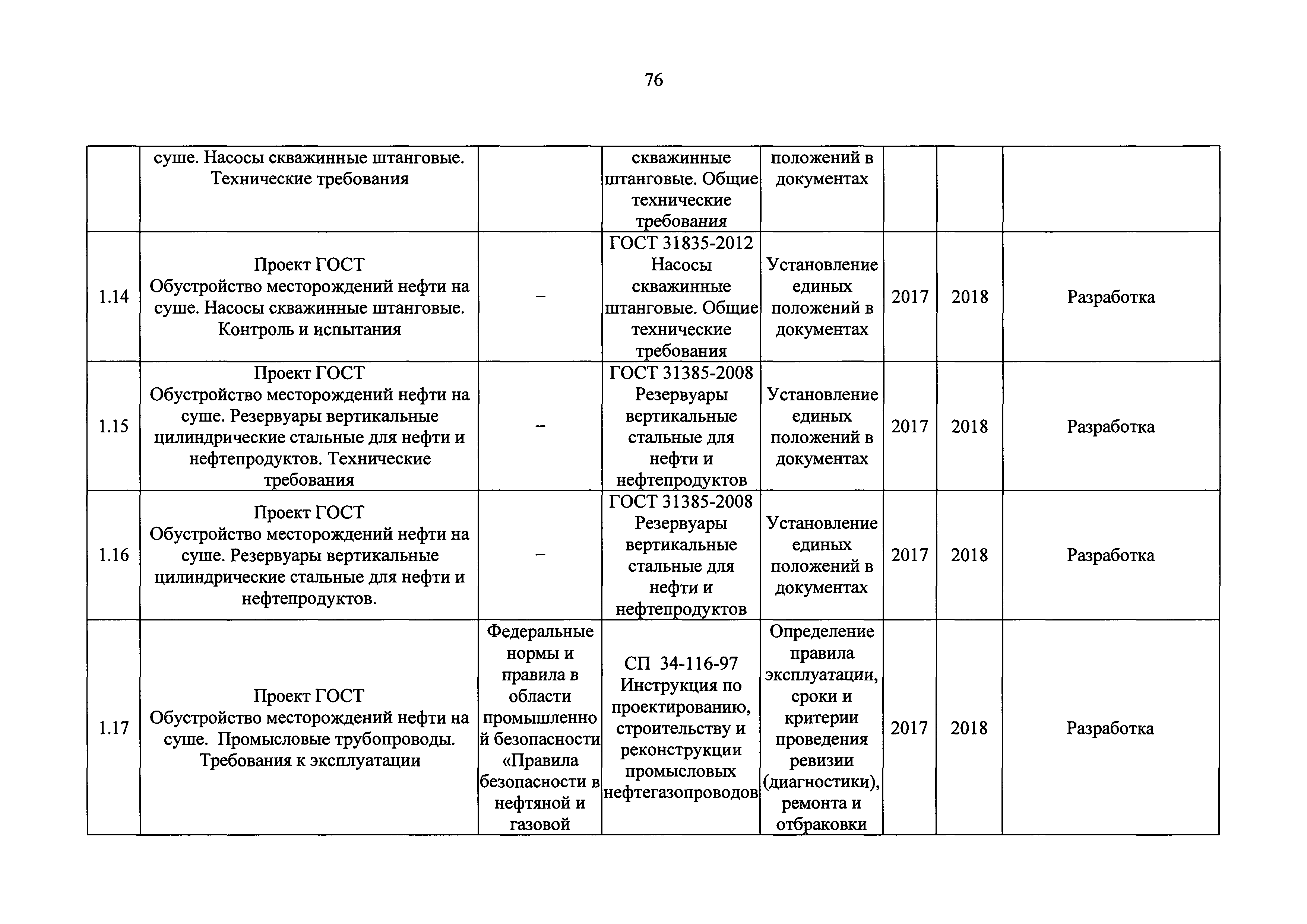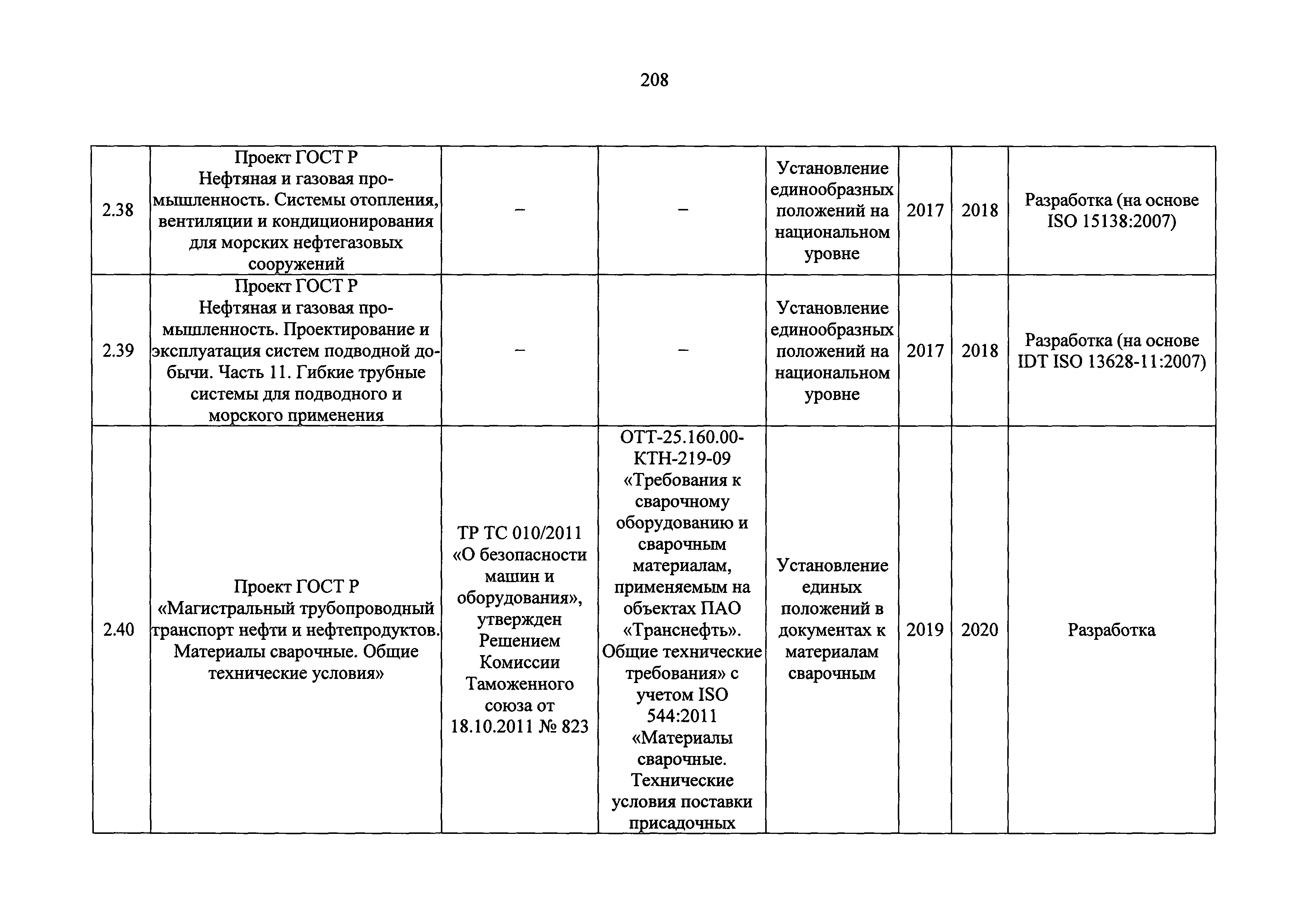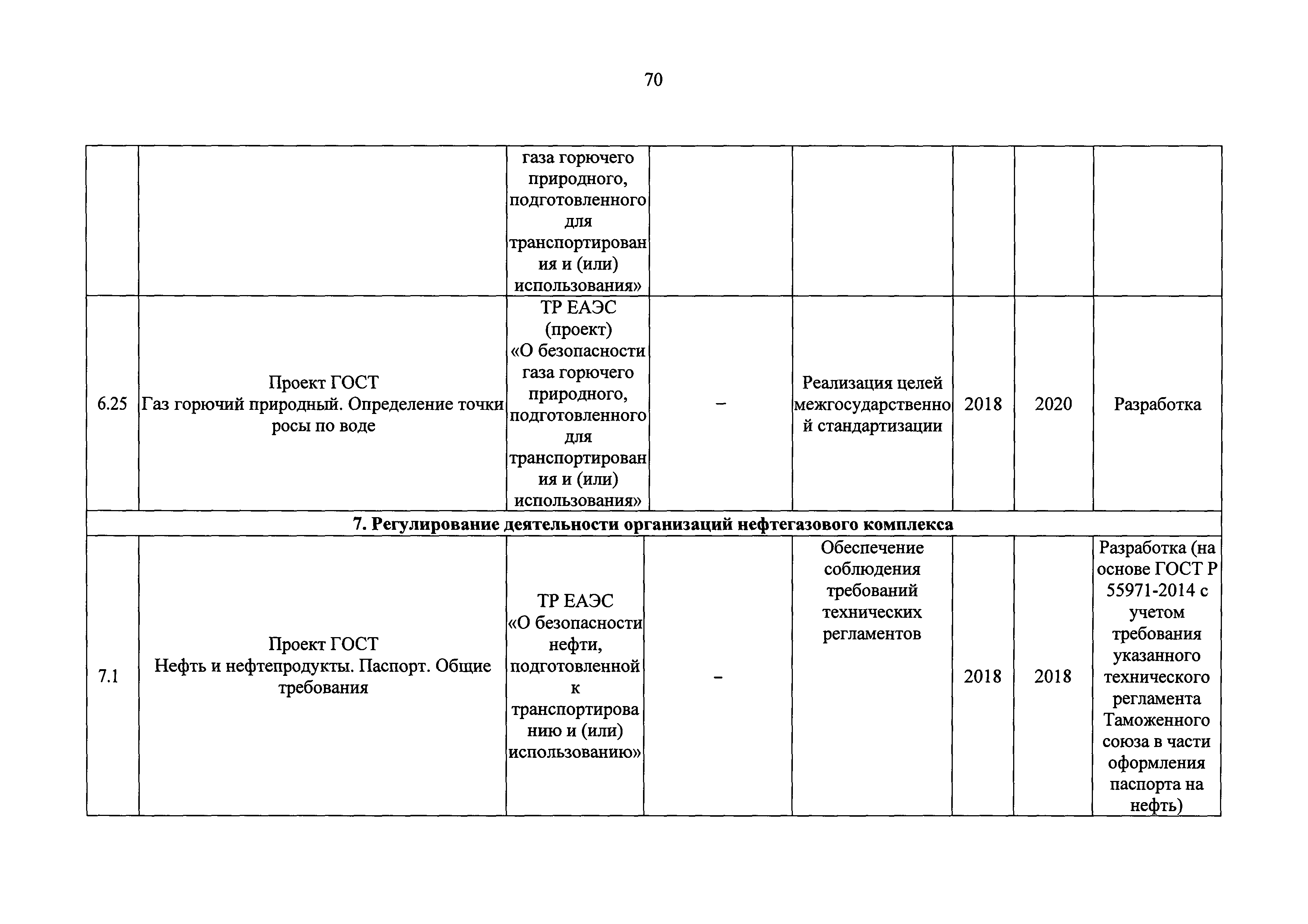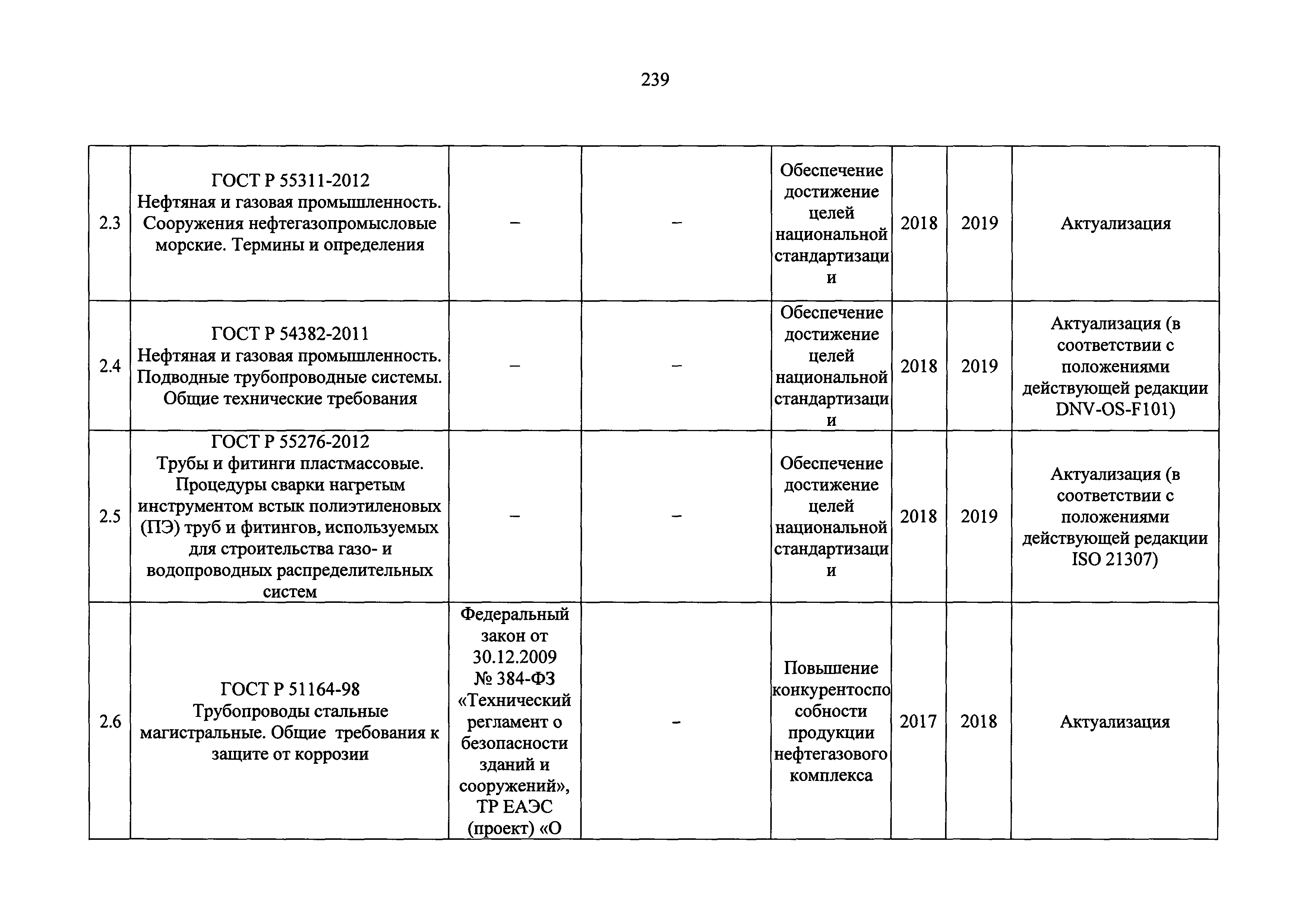 | Оглавление: | 1. Пояснительная записка к Перспективной программе стандартизации в нефтегазовом комплексе на период 2017 - 2022 годов 1.1. Основание для разработки Программы 1.2. Цели и задача Программы 1.3. Разработчики Программы 1.4. Сроки реализации Программы 1.5. Основные мероприятия Программы 1.6. Источники финансирования реализации Программы 1.7. Механизм реализации Программы 2. Краткий обзор механизмов формирования Перспективной программы стандартизации в нефтегазовом комплексе на период 2017 - 2022 годов 2.1. Основные принципы формирования структуры и разделов Программы 2.2. Ключевые аспекты проведения анализа международных, межгосударственных и национальных (государственных) стандартов в целях формирования Программы 2.3. Формирование научно обоснованных предложений по содержанию Программы 3. Паспорт Перспективной программы стандартизации в нефтегазовом комплексе на период 2017 - 2022 годов 3.1. Основные показатели Программы 3.2. Сокращения и обозначения 4. Перспективная программа стандартизации в нефтегазовом комплексе на период 2017 - 2022 годов Таблица 4.1 - Стандарты, которые необходимо разработать в целях реализации принятых и подлежащих разработке технических регламентов ЕАЭС Таблица 4.2 - Межгосударственные стандарты, которые необходимо разработать в целях исполнения соглашений в рамках ЕАЭС Таблица 4.3.1 - Межгосударственные стандарты, которые необходимо актуализировать в целях реализации принятых и подлежащих разработке технических регламентов ЕАЭС Таблица 4.3.2 - Межгосударственные стандарты, которые необходимо актуализировать в целях исполнения соглашений в рамках ЕАЭС, за исключением стандартов, на которые даны ссылки в технических регламентах ЕАЭС Таблица 4.4 - Стандарты, которые необходимо разработать в целях повышения уровня модернизации и конкурентоспособности организаций российского нефтегазового комплекса Таблица 4.5 - Стандарты, подлежащие актуализации в целях приведения в соответствие с положениями законодательства Российской Федерации и повышения конкурентоспособности продукции нефтегазового комплекса Таблица 4.6 - Международные стандарты, подлежащие переводу и принятию в рамках Российской Федерации с целью интеграции российского нефтегазового комплекса в мировую экономику |