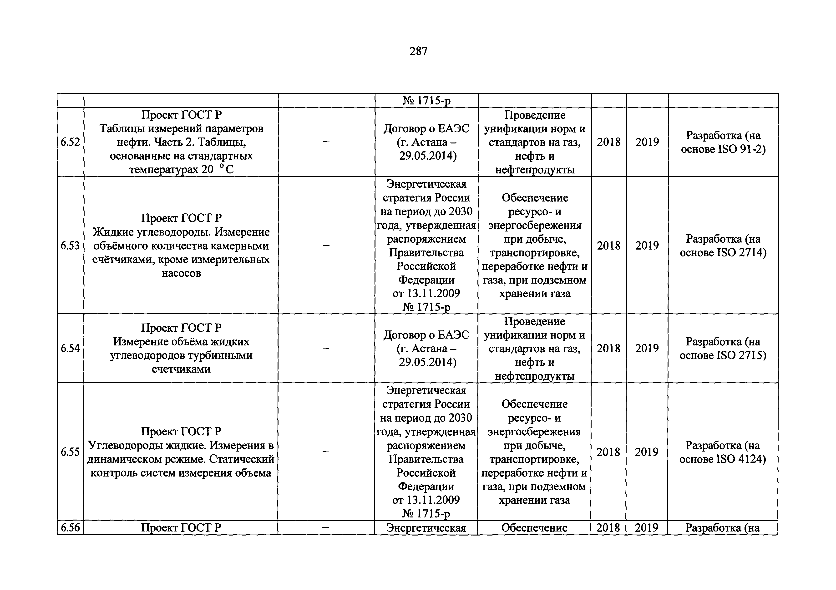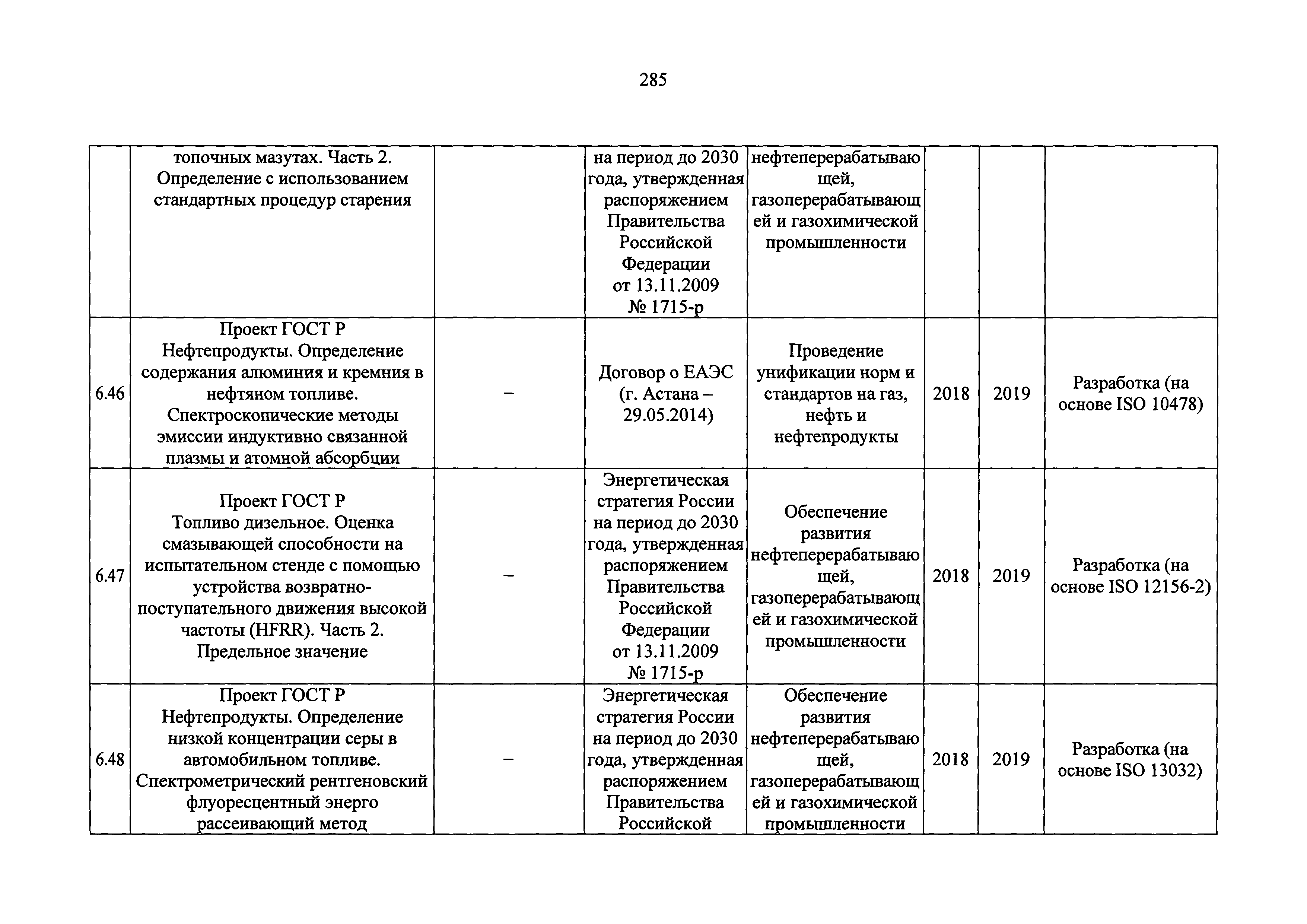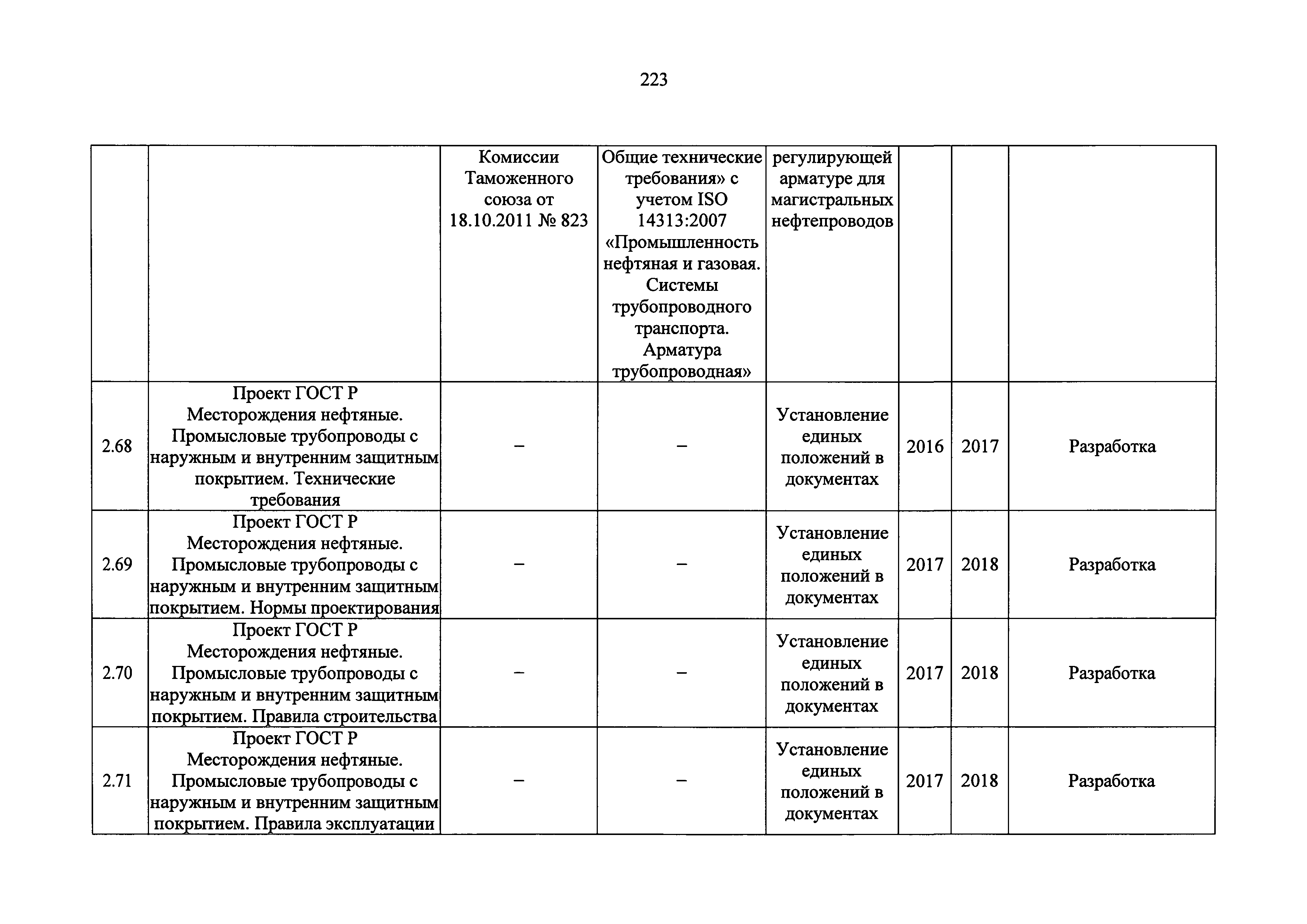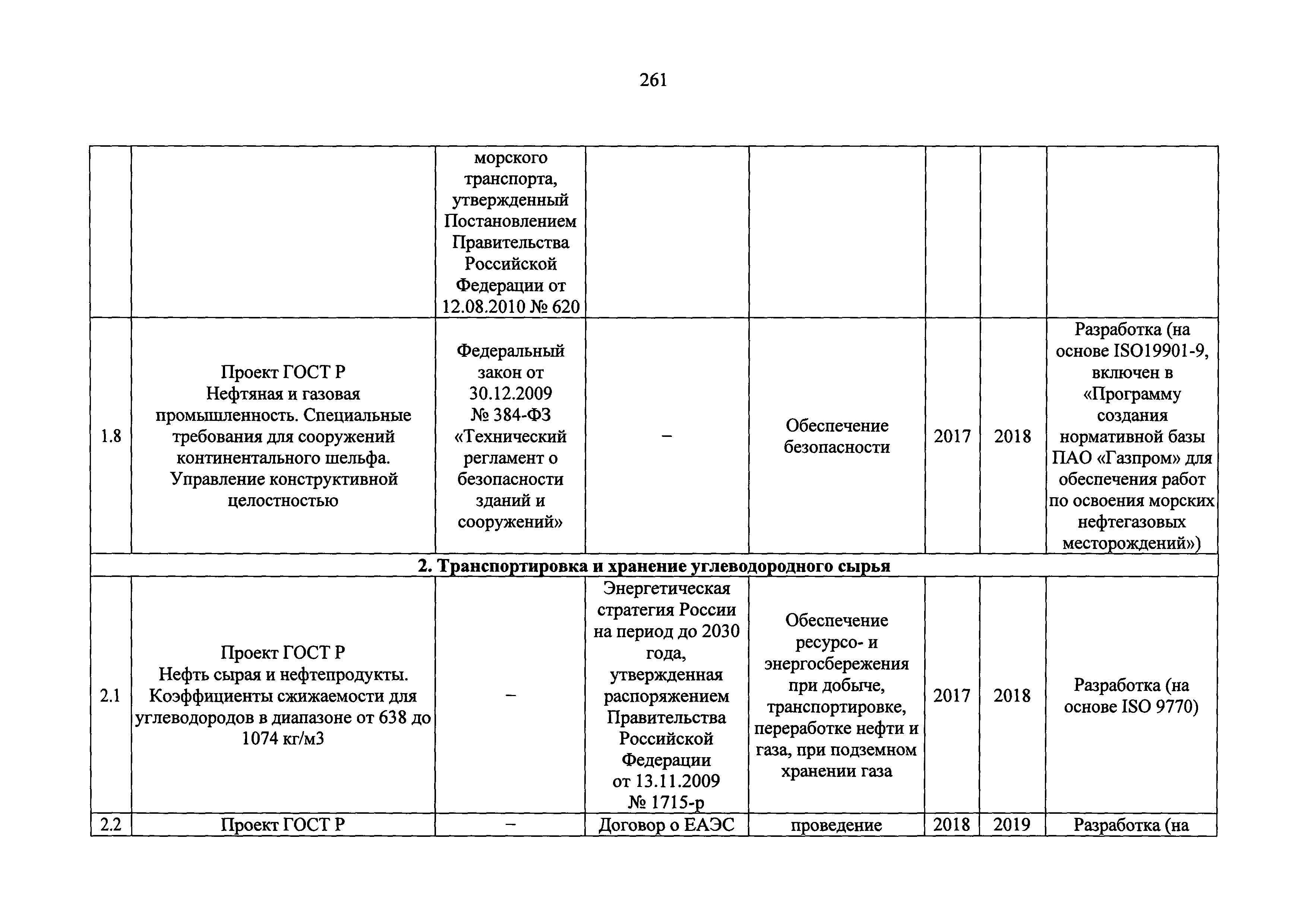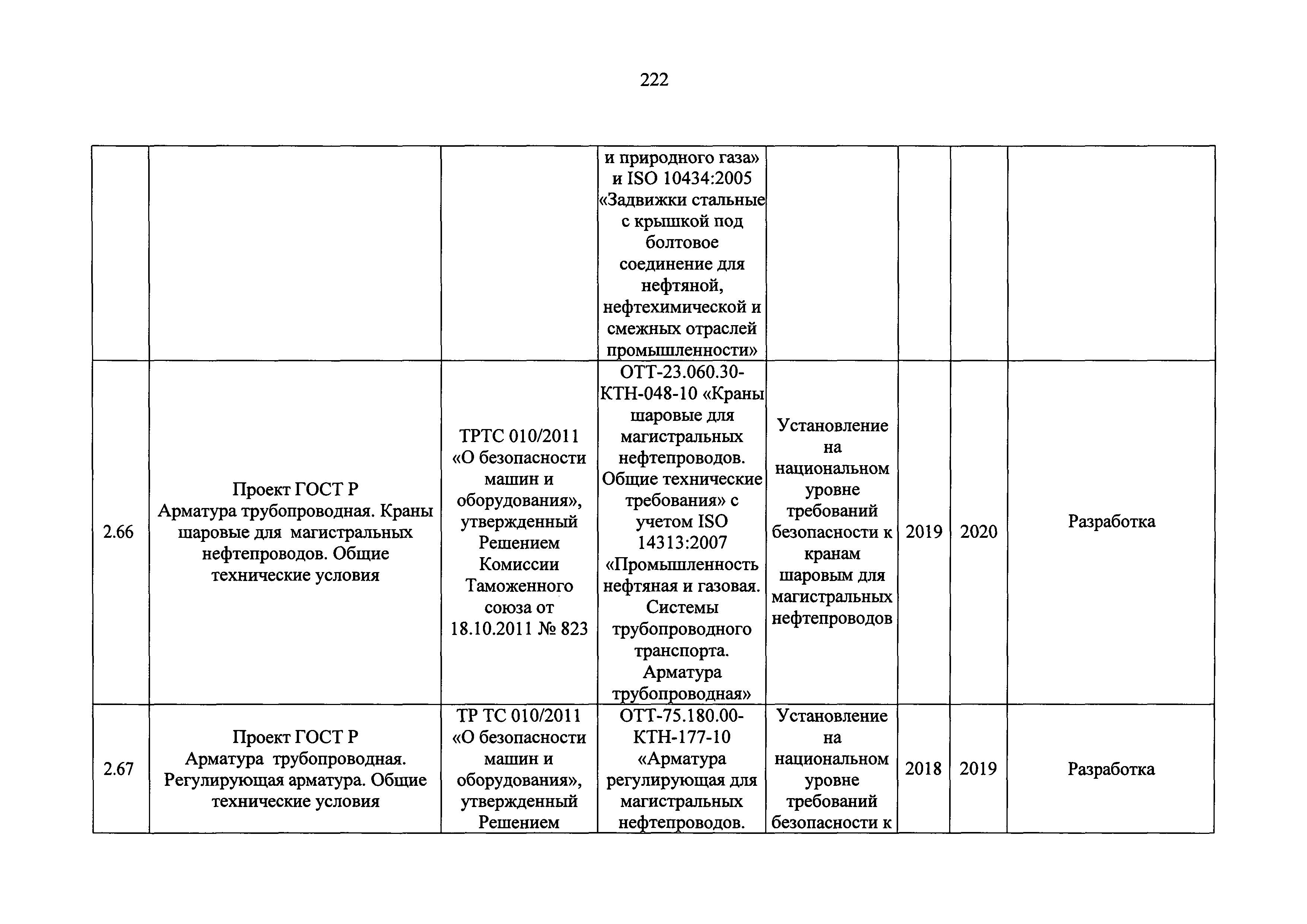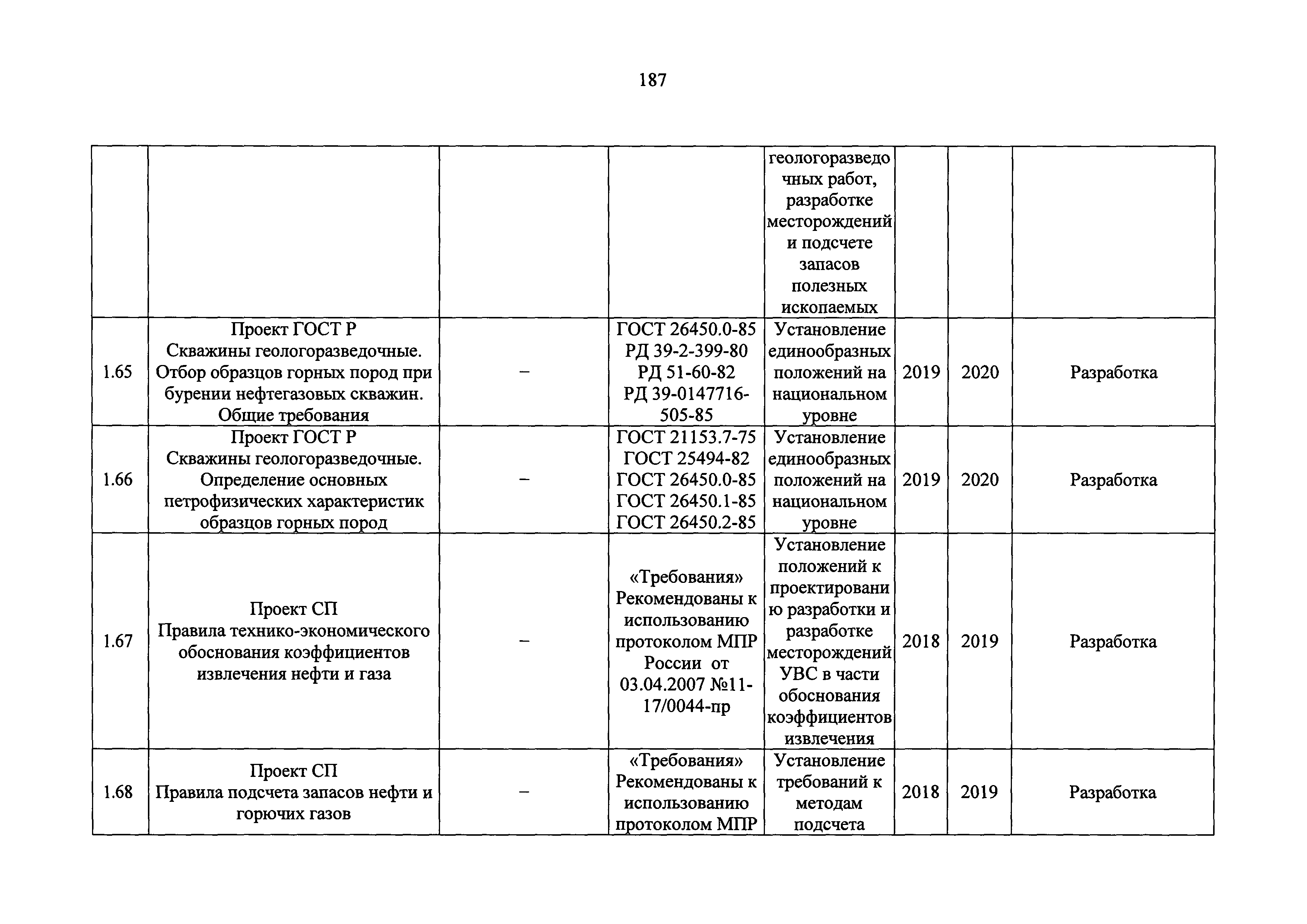 | Оглавление: | 1. Пояснительная записка к Перспективной программе стандартизации в нефтегазовом комплексе на период 2017 - 2022 годов 1.1. Основание для разработки Программы 1.2. Цели и задача Программы 1.3. Разработчики Программы 1.4. Сроки реализации Программы 1.5. Основные мероприятия Программы 1.6. Источники финансирования реализации Программы 1.7. Механизм реализации Программы 2. Краткий обзор механизмов формирования Перспективной программы стандартизации в нефтегазовом комплексе на период 2017 - 2022 годов 2.1. Основные принципы формирования структуры и разделов Программы 2.2. Ключевые аспекты проведения анализа международных, межгосударственных и национальных (государственных) стандартов в целях формирования Программы 2.3. Формирование научно обоснованных предложений по содержанию Программы 3. Паспорт Перспективной программы стандартизации в нефтегазовом комплексе на период 2017 - 2022 годов 3.1. Основные показатели Программы 3.2. Сокращения и обозначения 4. Перспективная программа стандартизации в нефтегазовом комплексе на период 2017 - 2022 годов Таблица 4.1 - Стандарты, которые необходимо разработать в целях реализации принятых и подлежащих разработке технических регламентов ЕАЭС Таблица 4.2 - Межгосударственные стандарты, которые необходимо разработать в целях исполнения соглашений в рамках ЕАЭС Таблица 4.3.1 - Межгосударственные стандарты, которые необходимо актуализировать в целях реализации принятых и подлежащих разработке технических регламентов ЕАЭС Таблица 4.3.2 - Межгосударственные стандарты, которые необходимо актуализировать в целях исполнения соглашений в рамках ЕАЭС, за исключением стандартов, на которые даны ссылки в технических регламентах ЕАЭС Таблица 4.4 - Стандарты, которые необходимо разработать в целях повышения уровня модернизации и конкурентоспособности организаций российского нефтегазового комплекса Таблица 4.5 - Стандарты, подлежащие актуализации в целях приведения в соответствие с положениями законодательства Российской Федерации и повышения конкурентоспособности продукции нефтегазового комплекса Таблица 4.6 - Международные стандарты, подлежащие переводу и принятию в рамках Российской Федерации с целью интеграции российского нефтегазового комплекса в мировую экономику |