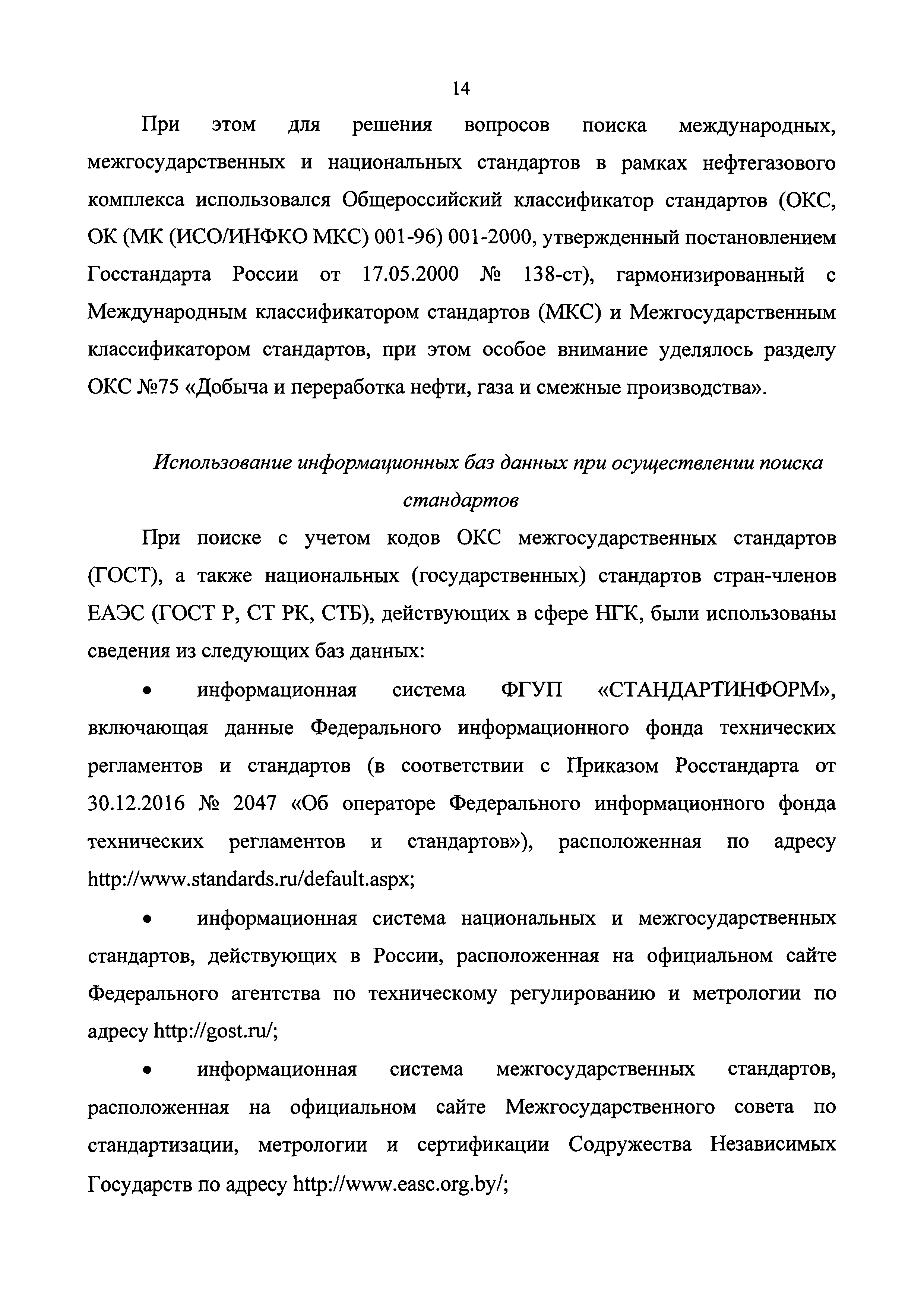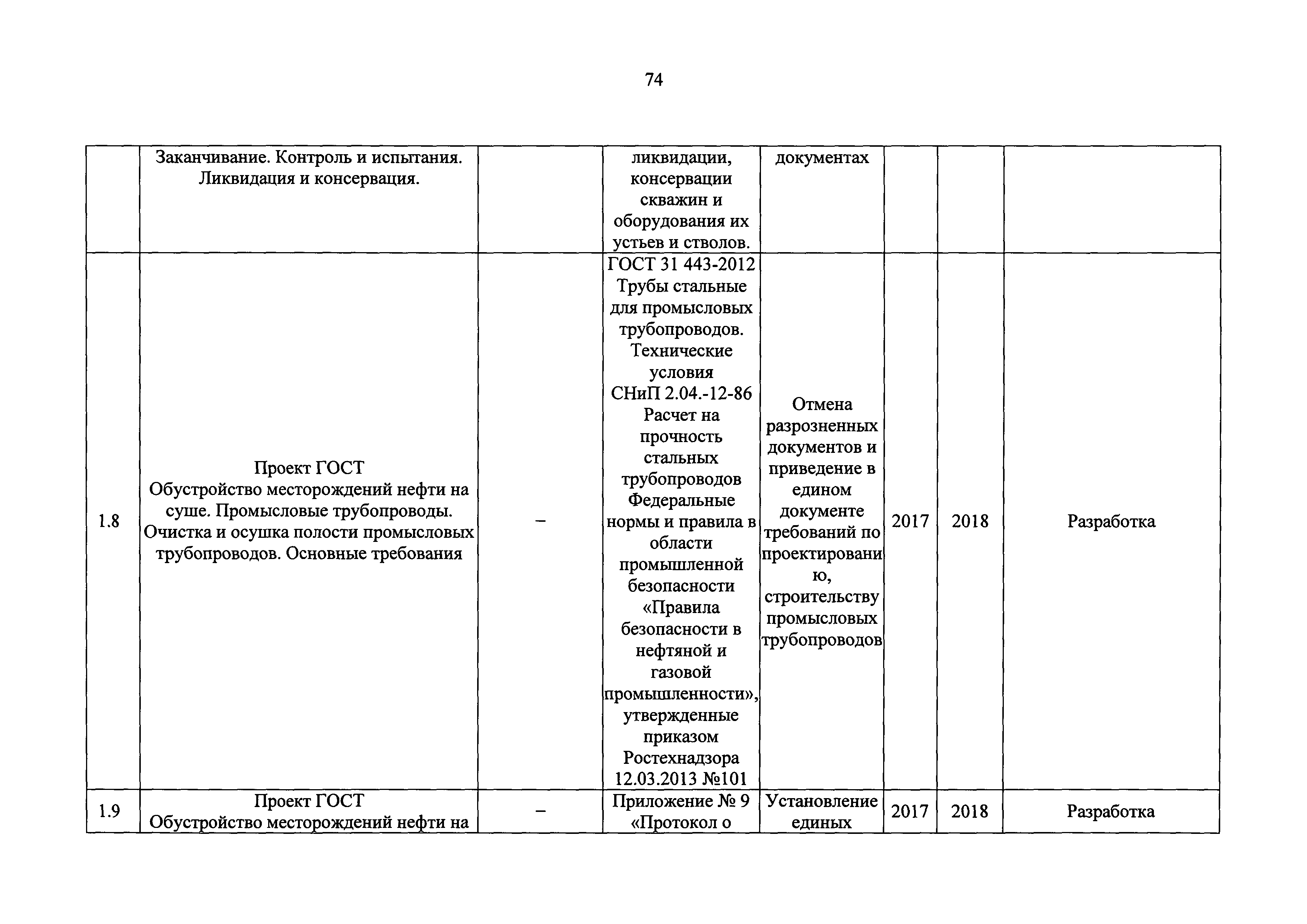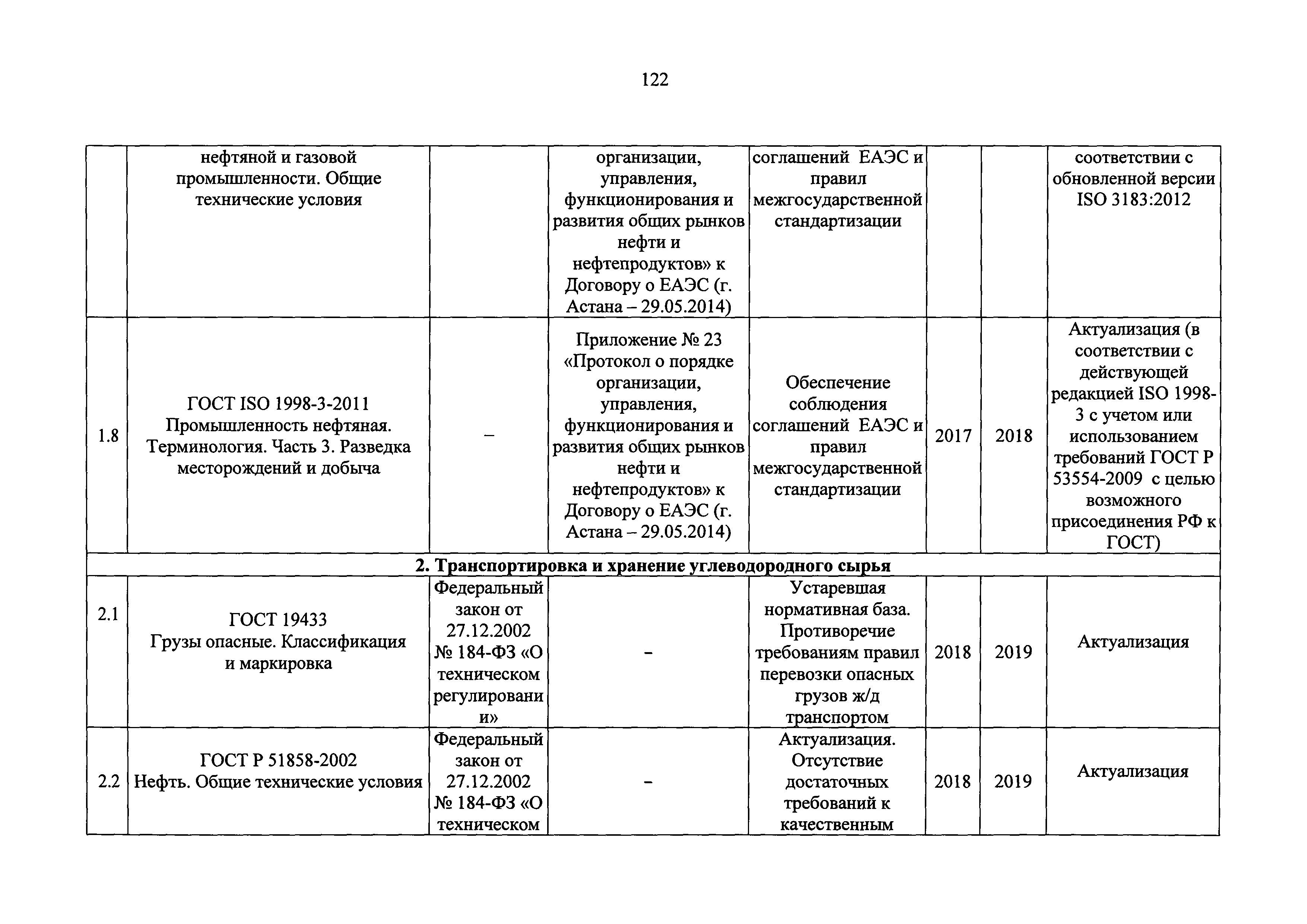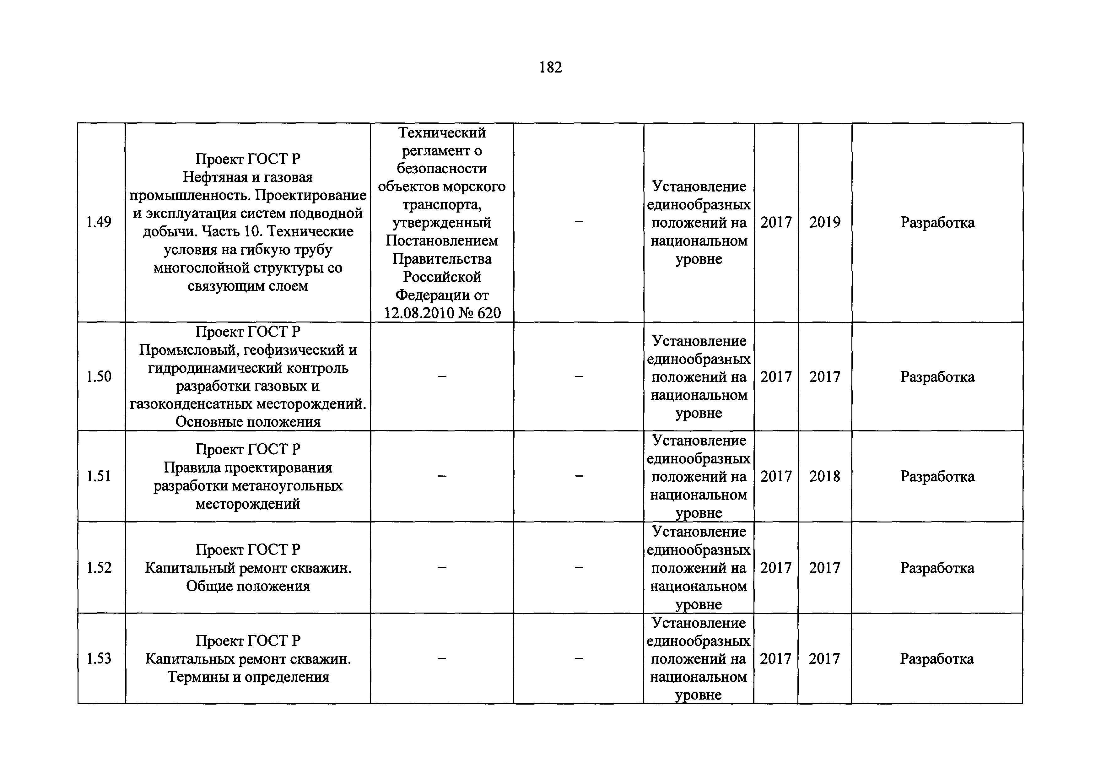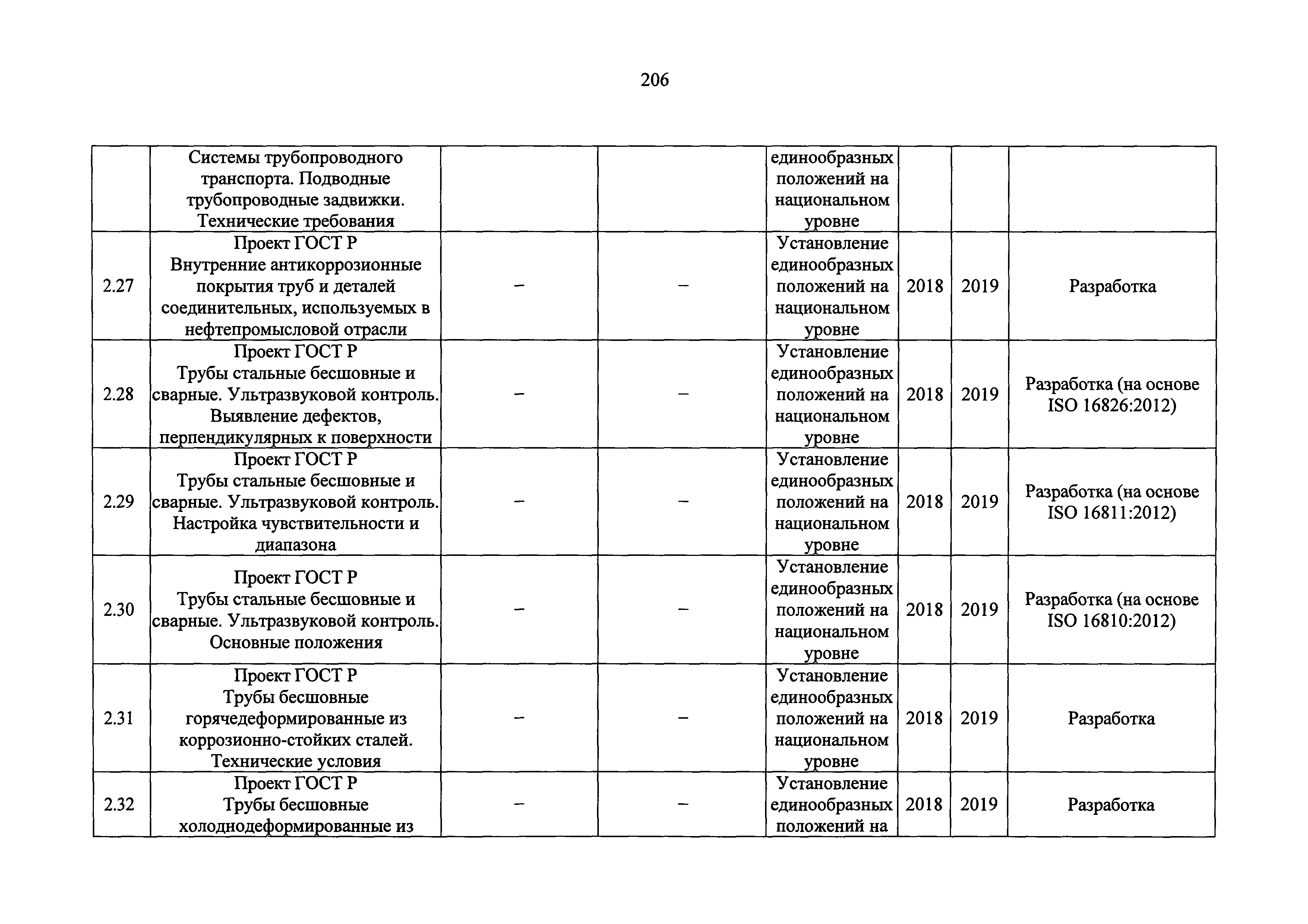 | Оглавление: | 1. Пояснительная записка к Перспективной программе стандартизации в нефтегазовом комплексе на период 2017 - 2022 годов 1.1. Основание для разработки Программы 1.2. Цели и задача Программы 1.3. Разработчики Программы 1.4. Сроки реализации Программы 1.5. Основные мероприятия Программы 1.6. Источники финансирования реализации Программы 1.7. Механизм реализации Программы 2. Краткий обзор механизмов формирования Перспективной программы стандартизации в нефтегазовом комплексе на период 2017 - 2022 годов 2.1. Основные принципы формирования структуры и разделов Программы 2.2. Ключевые аспекты проведения анализа международных, межгосударственных и национальных (государственных) стандартов в целях формирования Программы 2.3. Формирование научно обоснованных предложений по содержанию Программы 3. Паспорт Перспективной программы стандартизации в нефтегазовом комплексе на период 2017 - 2022 годов 3.1. Основные показатели Программы 3.2. Сокращения и обозначения 4. Перспективная программа стандартизации в нефтегазовом комплексе на период 2017 - 2022 годов Таблица 4.1 - Стандарты, которые необходимо разработать в целях реализации принятых и подлежащих разработке технических регламентов ЕАЭС Таблица 4.2 - Межгосударственные стандарты, которые необходимо разработать в целях исполнения соглашений в рамках ЕАЭС Таблица 4.3.1 - Межгосударственные стандарты, которые необходимо актуализировать в целях реализации принятых и подлежащих разработке технических регламентов ЕАЭС Таблица 4.3.2 - Межгосударственные стандарты, которые необходимо актуализировать в целях исполнения соглашений в рамках ЕАЭС, за исключением стандартов, на которые даны ссылки в технических регламентах ЕАЭС Таблица 4.4 - Стандарты, которые необходимо разработать в целях повышения уровня модернизации и конкурентоспособности организаций российского нефтегазового комплекса Таблица 4.5 - Стандарты, подлежащие актуализации в целях приведения в соответствие с положениями законодательства Российской Федерации и повышения конкурентоспособности продукции нефтегазового комплекса Таблица 4.6 - Международные стандарты, подлежащие переводу и принятию в рамках Российской Федерации с целью интеграции российского нефтегазового комплекса в мировую экономику |