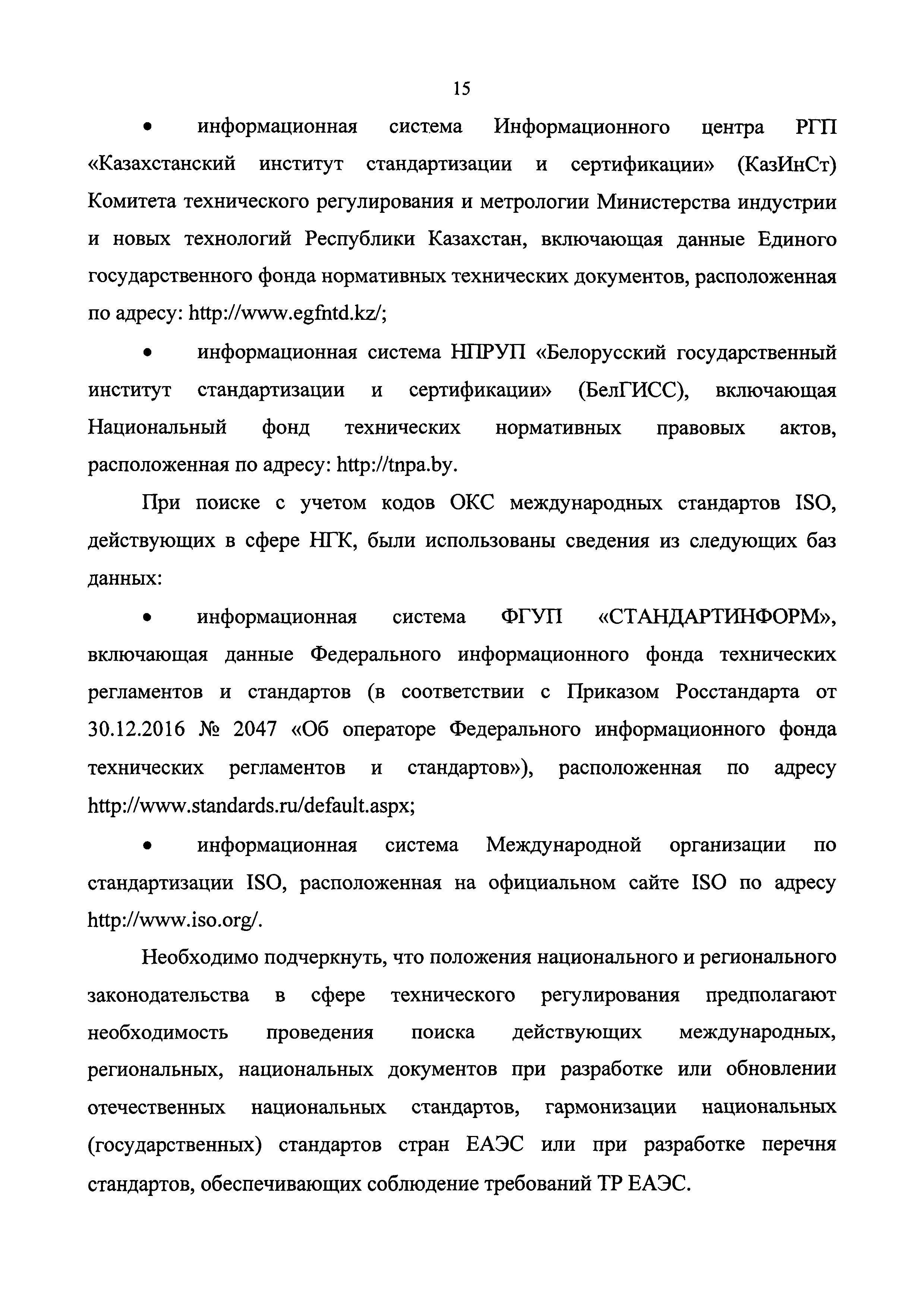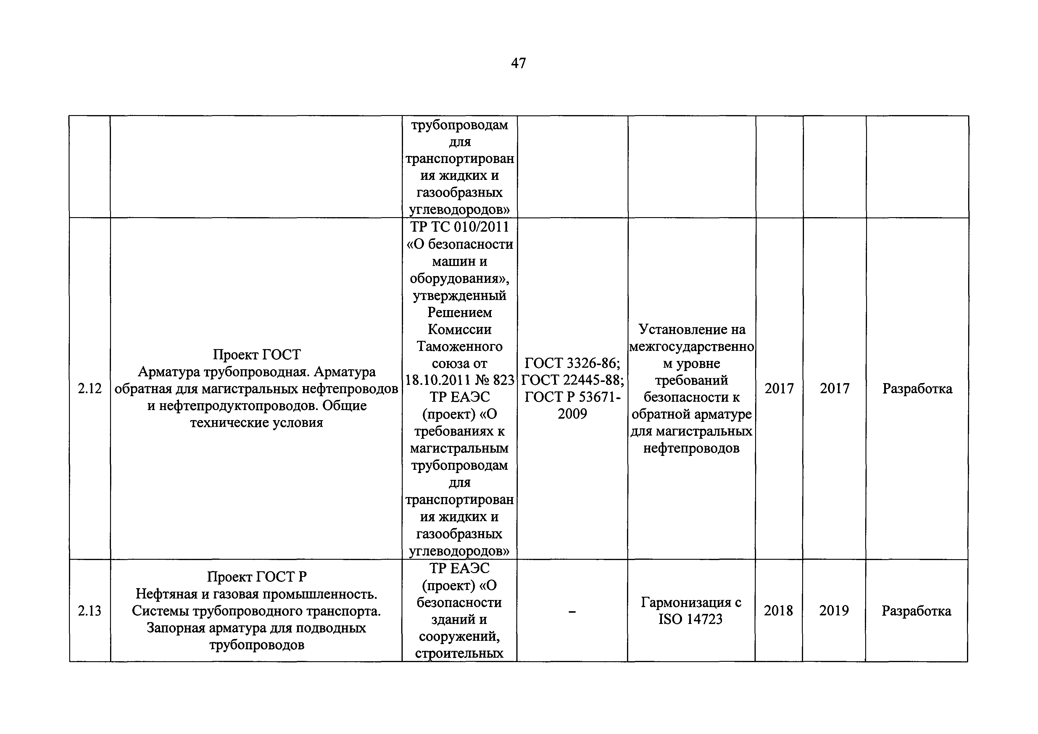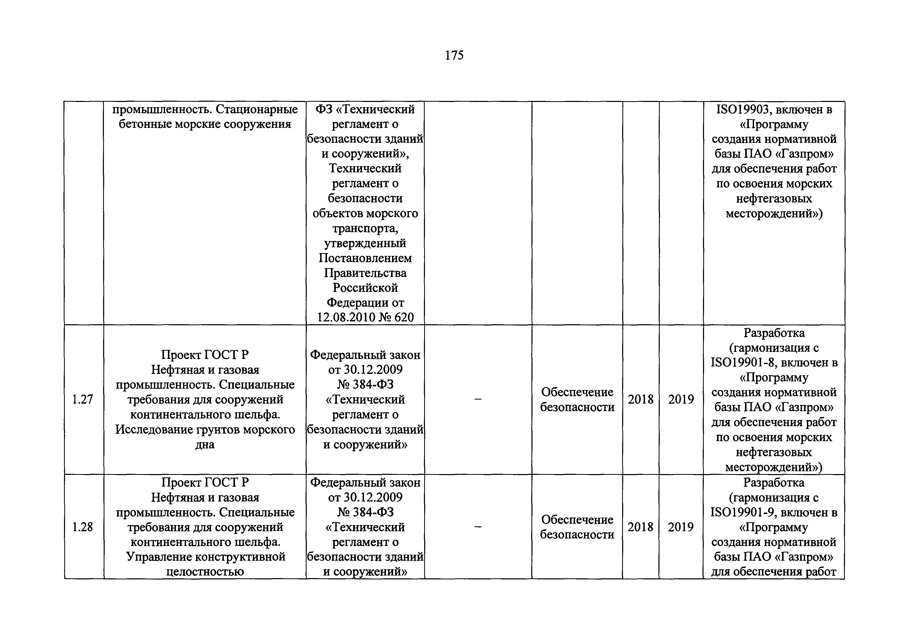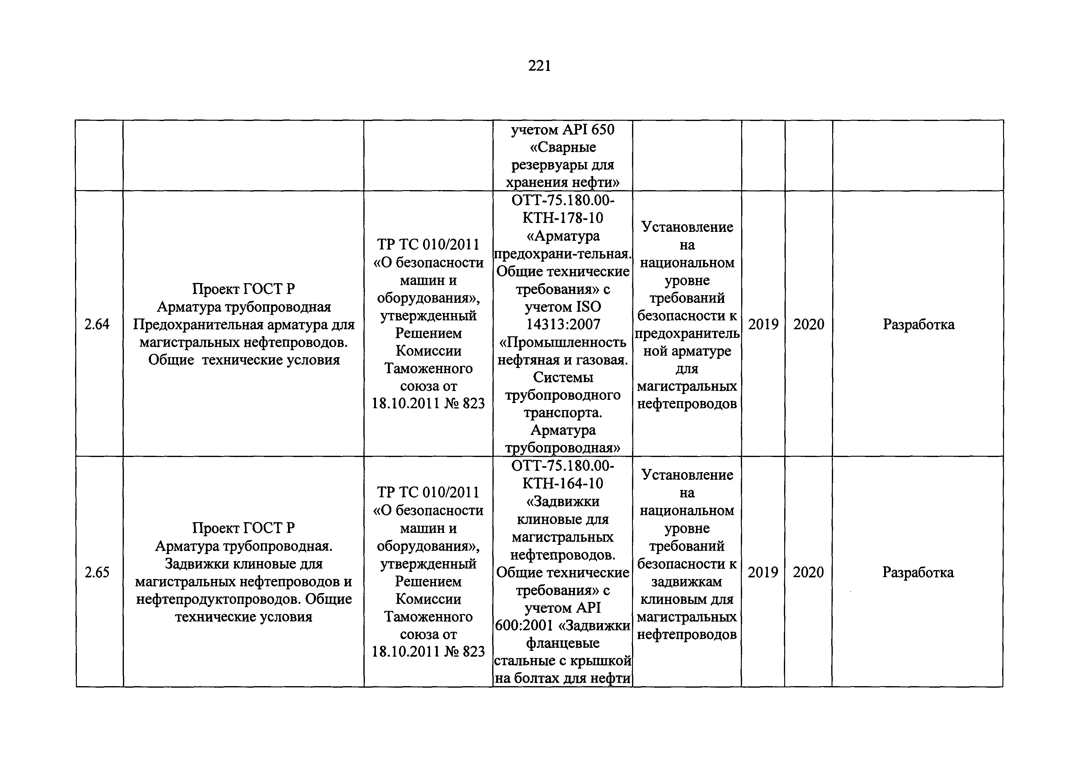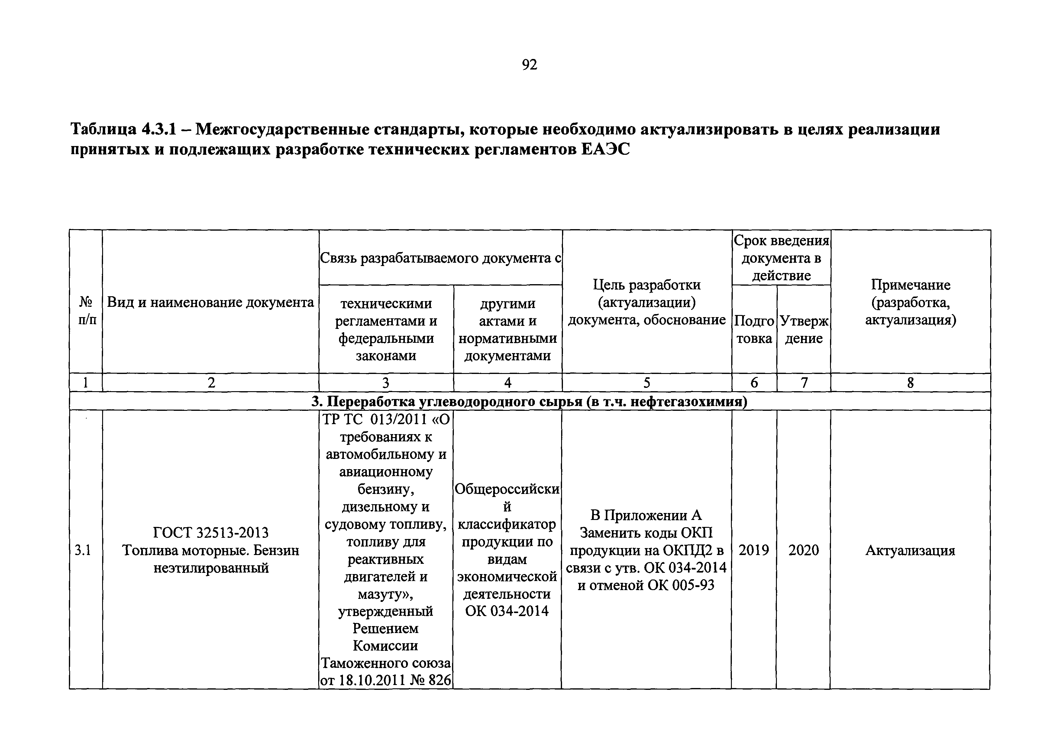 | Оглавление: | 1. Пояснительная записка к Перспективной программе стандартизации в нефтегазовом комплексе на период 2017 - 2022 годов 1.1. Основание для разработки Программы 1.2. Цели и задача Программы 1.3. Разработчики Программы 1.4. Сроки реализации Программы 1.5. Основные мероприятия Программы 1.6. Источники финансирования реализации Программы 1.7. Механизм реализации Программы 2. Краткий обзор механизмов формирования Перспективной программы стандартизации в нефтегазовом комплексе на период 2017 - 2022 годов 2.1. Основные принципы формирования структуры и разделов Программы 2.2. Ключевые аспекты проведения анализа международных, межгосударственных и национальных (государственных) стандартов в целях формирования Программы 2.3. Формирование научно обоснованных предложений по содержанию Программы 3. Паспорт Перспективной программы стандартизации в нефтегазовом комплексе на период 2017 - 2022 годов 3.1. Основные показатели Программы 3.2. Сокращения и обозначения 4. Перспективная программа стандартизации в нефтегазовом комплексе на период 2017 - 2022 годов Таблица 4.1 - Стандарты, которые необходимо разработать в целях реализации принятых и подлежащих разработке технических регламентов ЕАЭС Таблица 4.2 - Межгосударственные стандарты, которые необходимо разработать в целях исполнения соглашений в рамках ЕАЭС Таблица 4.3.1 - Межгосударственные стандарты, которые необходимо актуализировать в целях реализации принятых и подлежащих разработке технических регламентов ЕАЭС Таблица 4.3.2 - Межгосударственные стандарты, которые необходимо актуализировать в целях исполнения соглашений в рамках ЕАЭС, за исключением стандартов, на которые даны ссылки в технических регламентах ЕАЭС Таблица 4.4 - Стандарты, которые необходимо разработать в целях повышения уровня модернизации и конкурентоспособности организаций российского нефтегазового комплекса Таблица 4.5 - Стандарты, подлежащие актуализации в целях приведения в соответствие с положениями законодательства Российской Федерации и повышения конкурентоспособности продукции нефтегазового комплекса Таблица 4.6 - Международные стандарты, подлежащие переводу и принятию в рамках Российской Федерации с целью интеграции российского нефтегазового комплекса в мировую экономику |