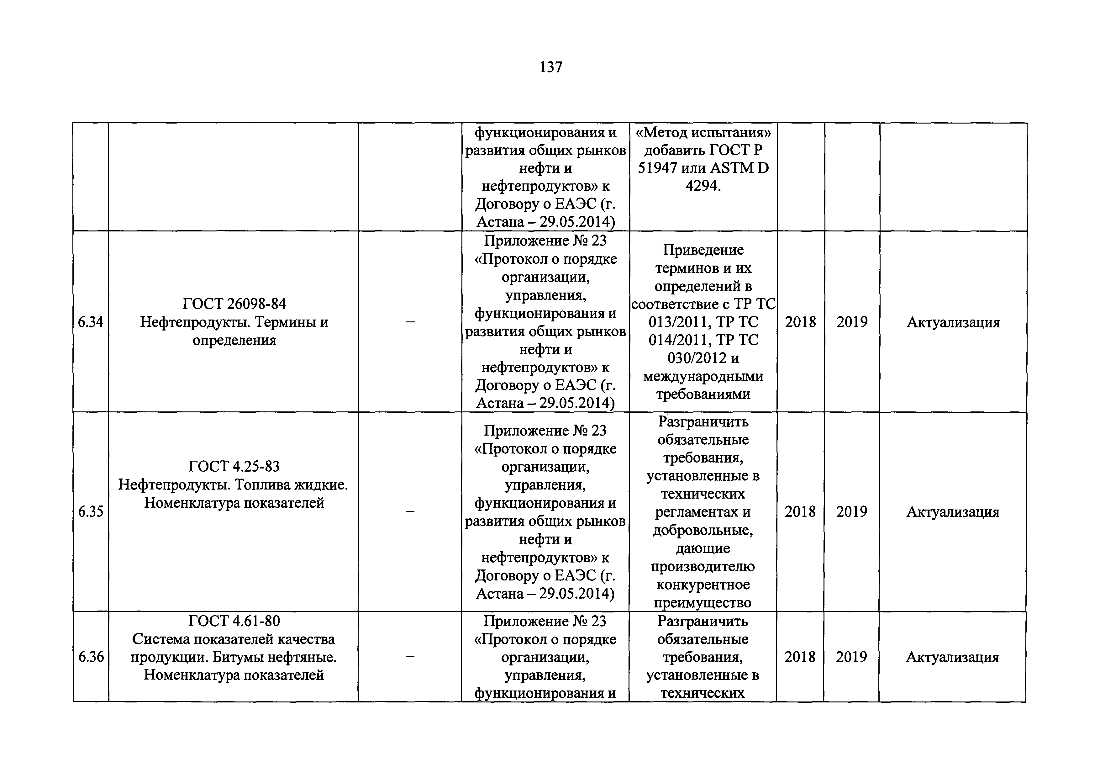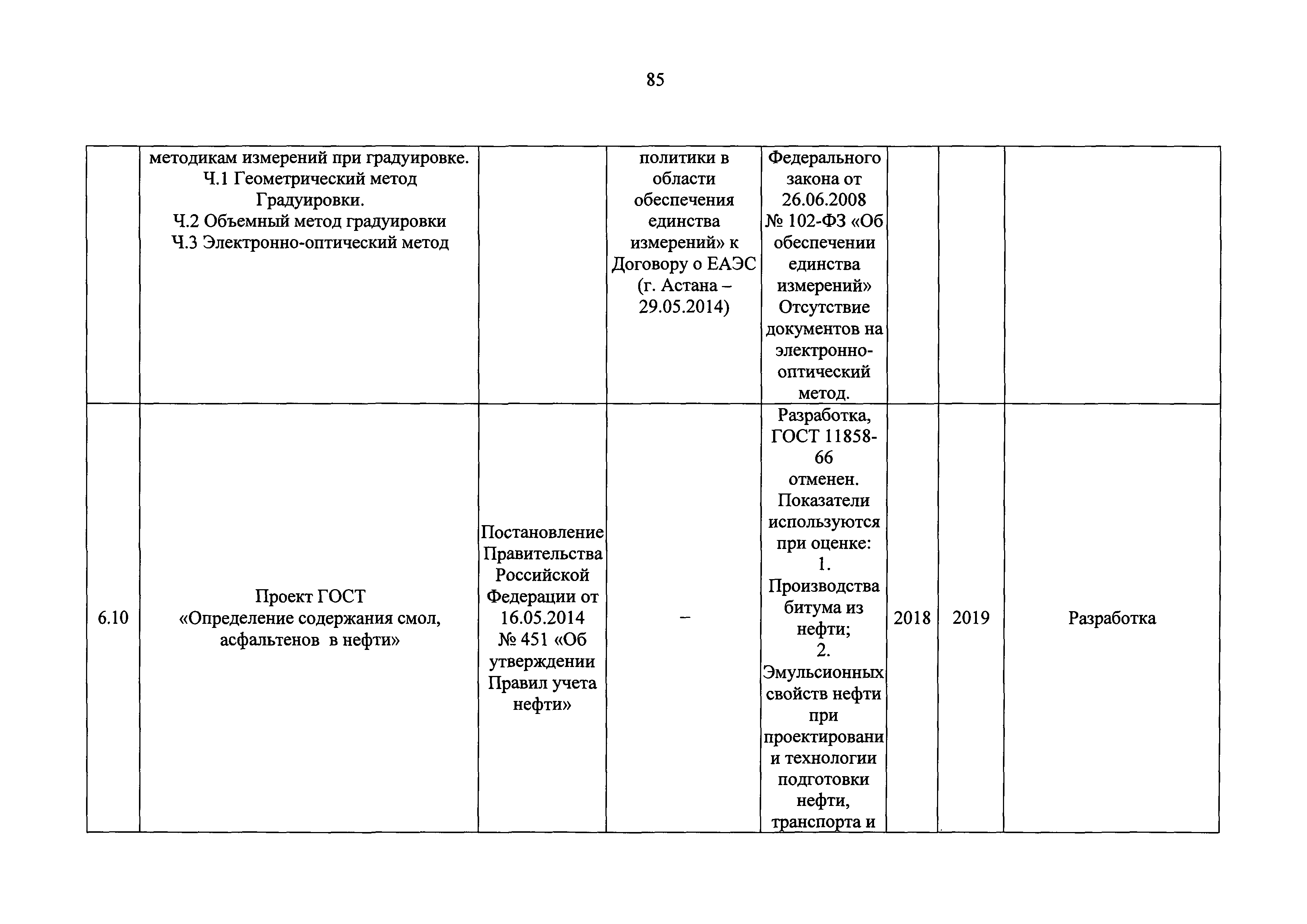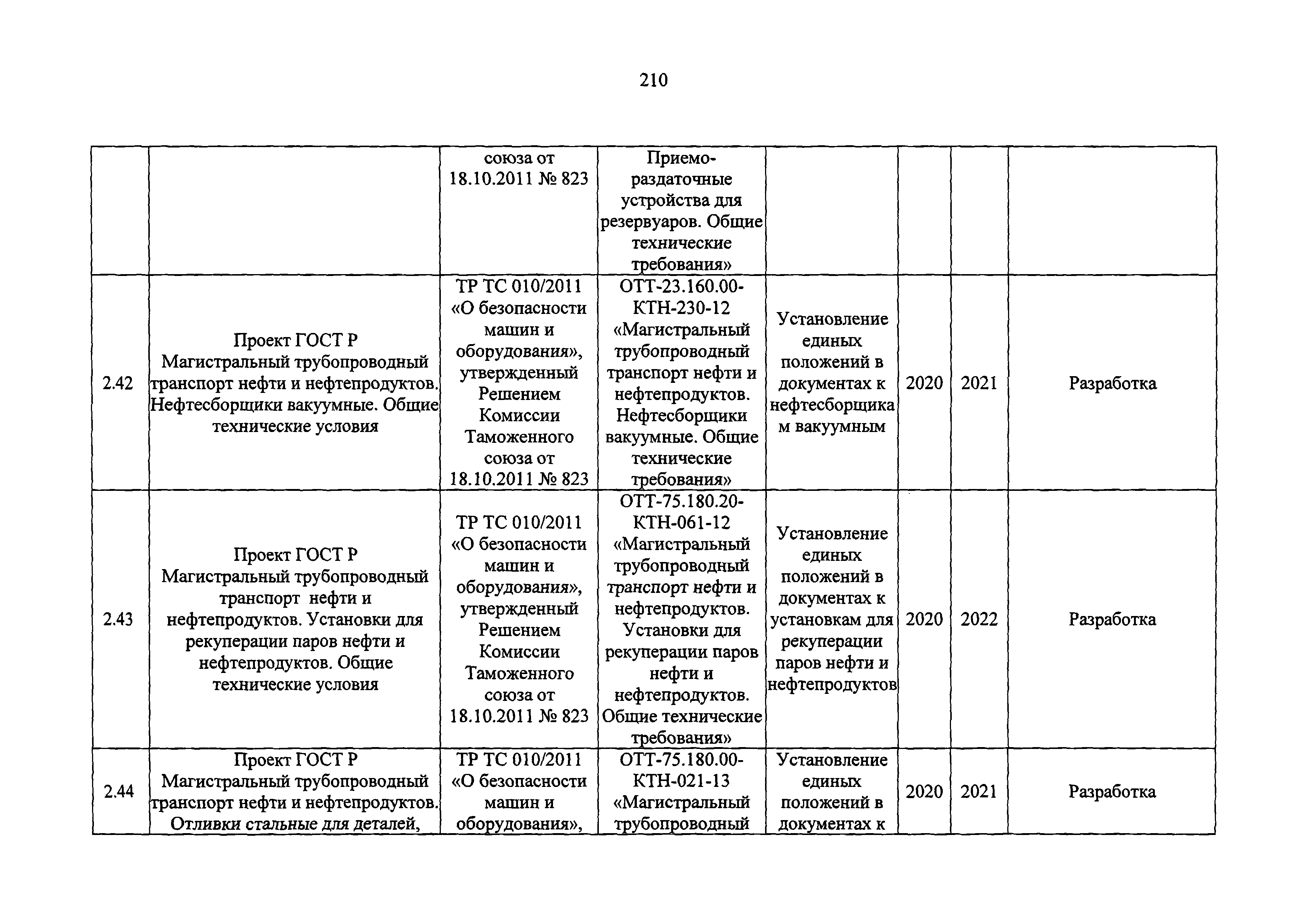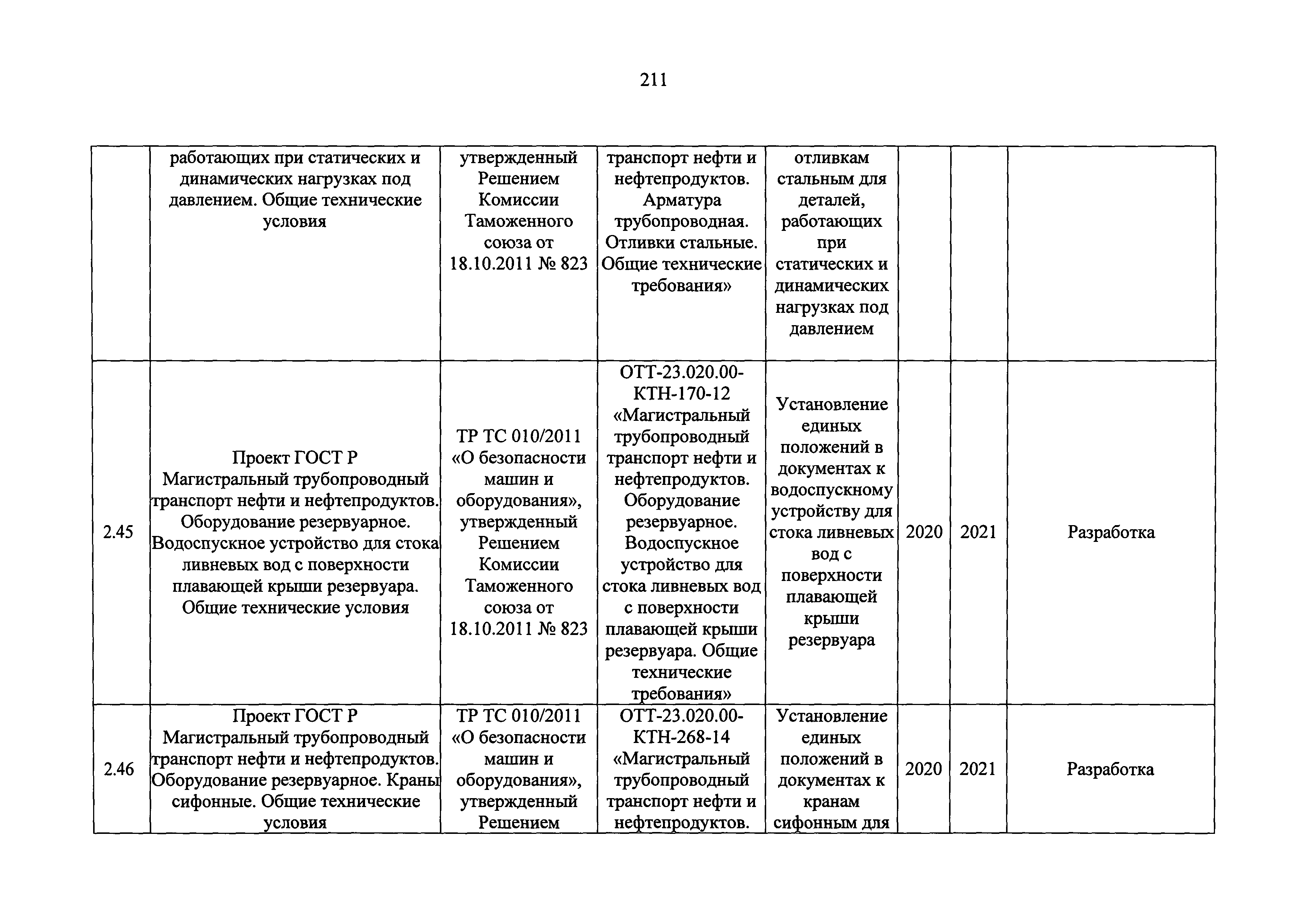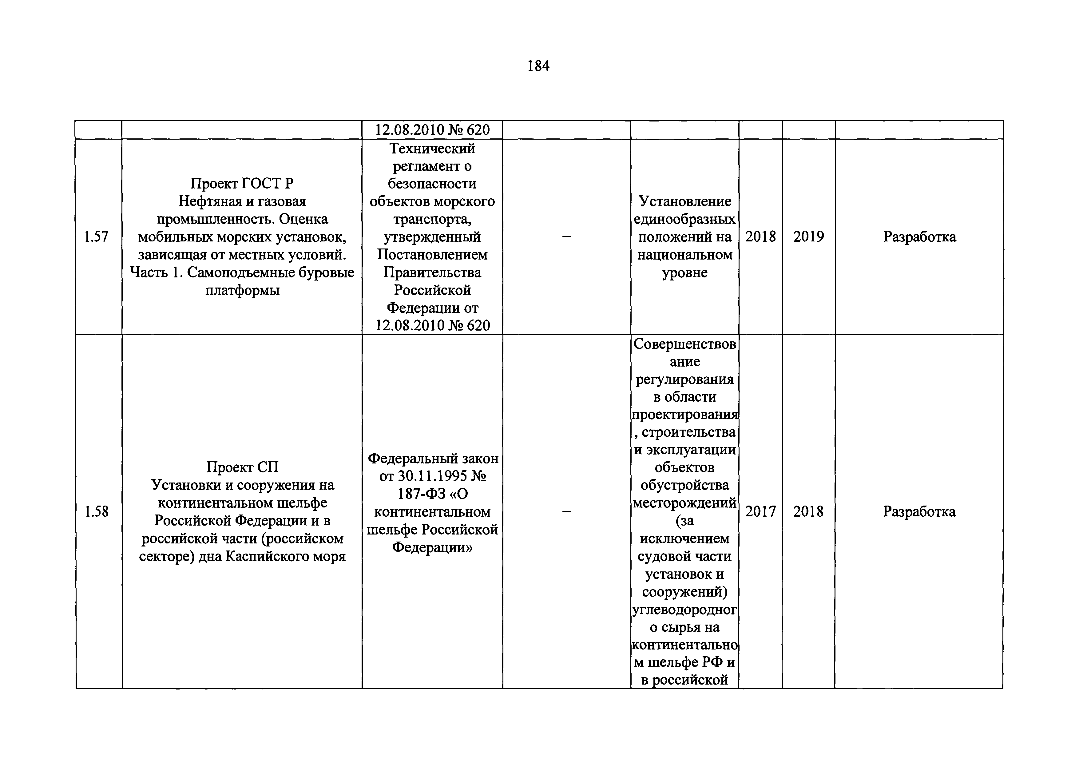 | Оглавление: | 1. Пояснительная записка к Перспективной программе стандартизации в нефтегазовом комплексе на период 2017 - 2022 годов 1.1. Основание для разработки Программы 1.2. Цели и задача Программы 1.3. Разработчики Программы 1.4. Сроки реализации Программы 1.5. Основные мероприятия Программы 1.6. Источники финансирования реализации Программы 1.7. Механизм реализации Программы 2. Краткий обзор механизмов формирования Перспективной программы стандартизации в нефтегазовом комплексе на период 2017 - 2022 годов 2.1. Основные принципы формирования структуры и разделов Программы 2.2. Ключевые аспекты проведения анализа международных, межгосударственных и национальных (государственных) стандартов в целях формирования Программы 2.3. Формирование научно обоснованных предложений по содержанию Программы 3. Паспорт Перспективной программы стандартизации в нефтегазовом комплексе на период 2017 - 2022 годов 3.1. Основные показатели Программы 3.2. Сокращения и обозначения 4. Перспективная программа стандартизации в нефтегазовом комплексе на период 2017 - 2022 годов Таблица 4.1 - Стандарты, которые необходимо разработать в целях реализации принятых и подлежащих разработке технических регламентов ЕАЭС Таблица 4.2 - Межгосударственные стандарты, которые необходимо разработать в целях исполнения соглашений в рамках ЕАЭС Таблица 4.3.1 - Межгосударственные стандарты, которые необходимо актуализировать в целях реализации принятых и подлежащих разработке технических регламентов ЕАЭС Таблица 4.3.2 - Межгосударственные стандарты, которые необходимо актуализировать в целях исполнения соглашений в рамках ЕАЭС, за исключением стандартов, на которые даны ссылки в технических регламентах ЕАЭС Таблица 4.4 - Стандарты, которые необходимо разработать в целях повышения уровня модернизации и конкурентоспособности организаций российского нефтегазового комплекса Таблица 4.5 - Стандарты, подлежащие актуализации в целях приведения в соответствие с положениями законодательства Российской Федерации и повышения конкурентоспособности продукции нефтегазового комплекса Таблица 4.6 - Международные стандарты, подлежащие переводу и принятию в рамках Российской Федерации с целью интеграции российского нефтегазового комплекса в мировую экономику |