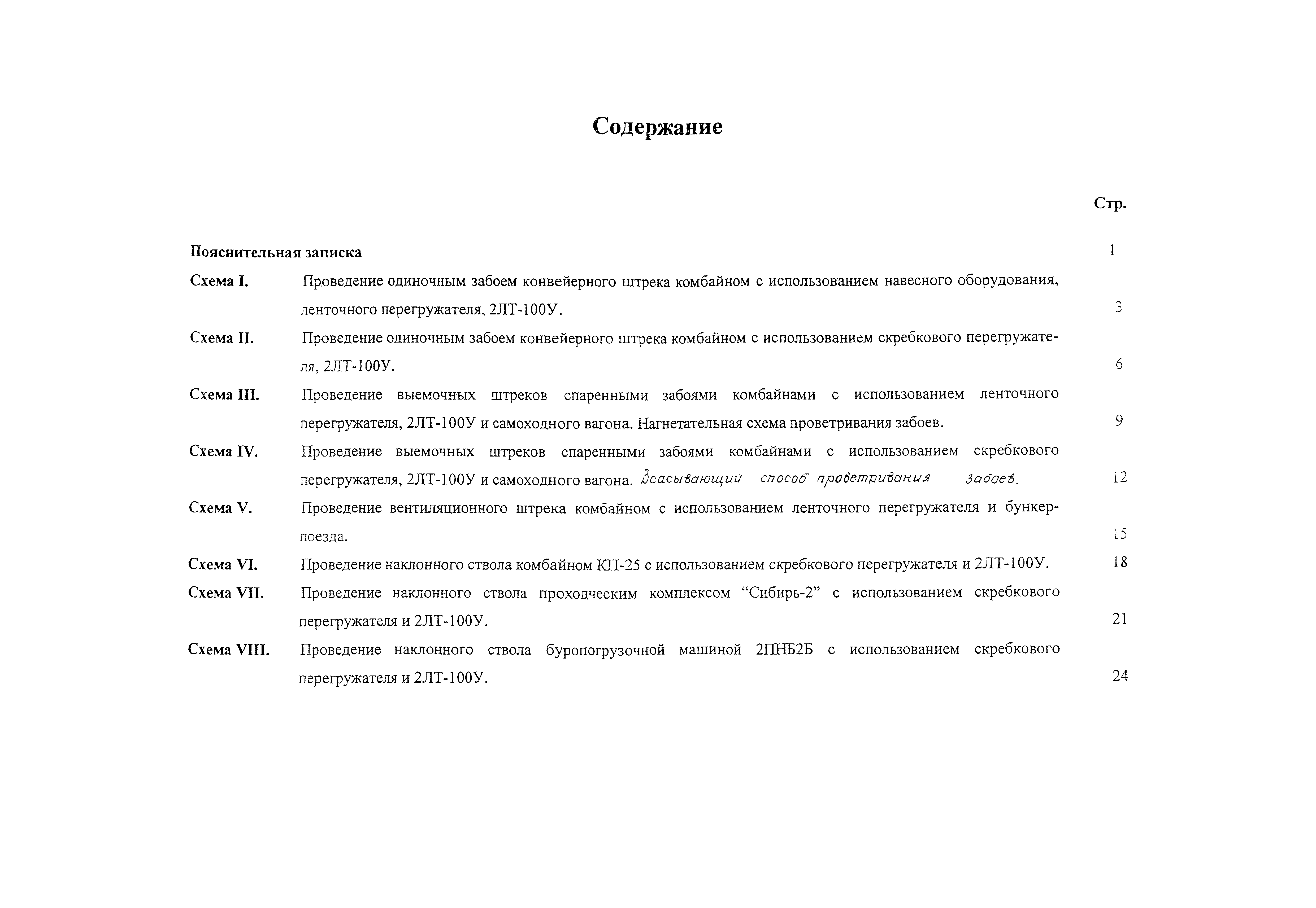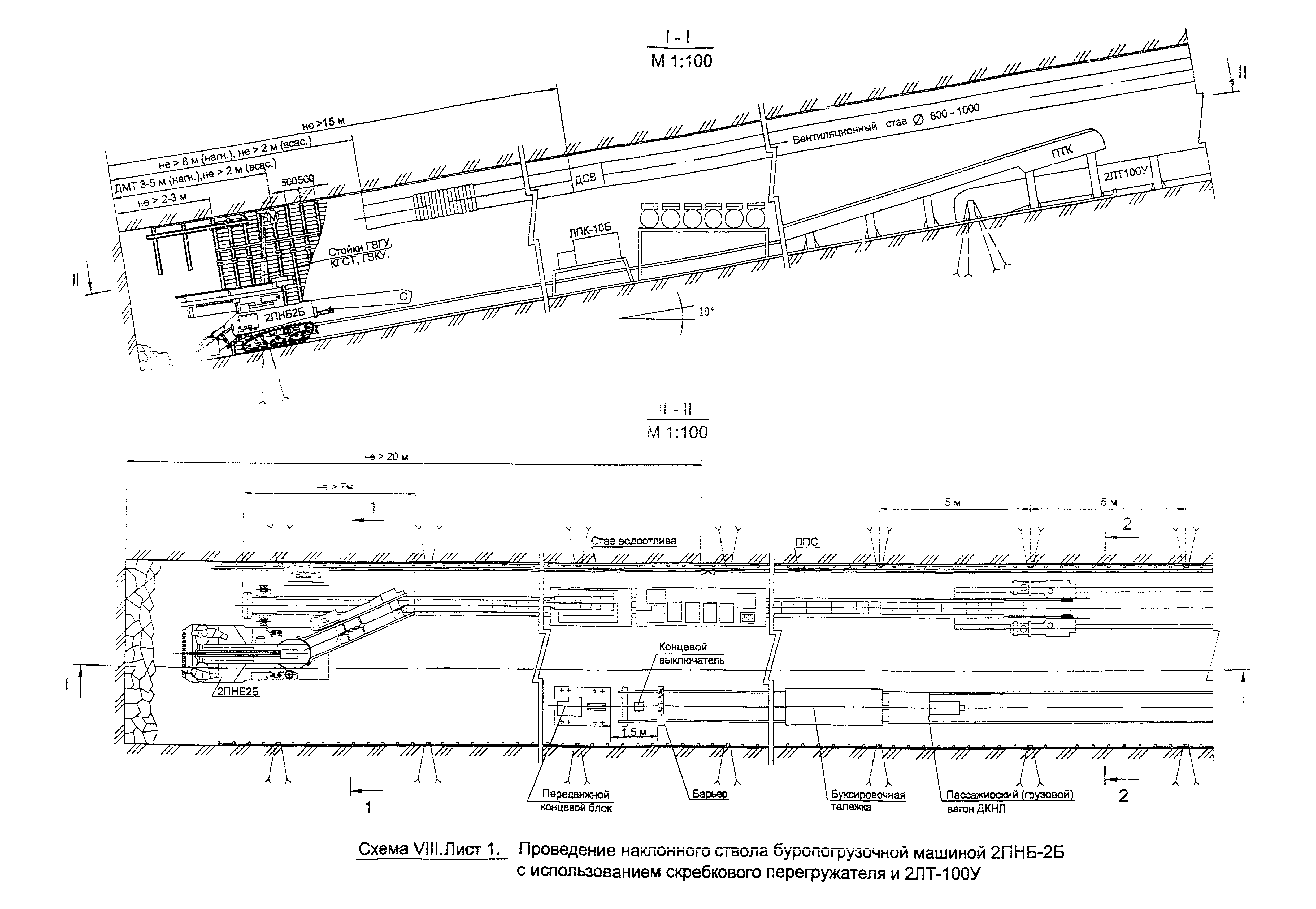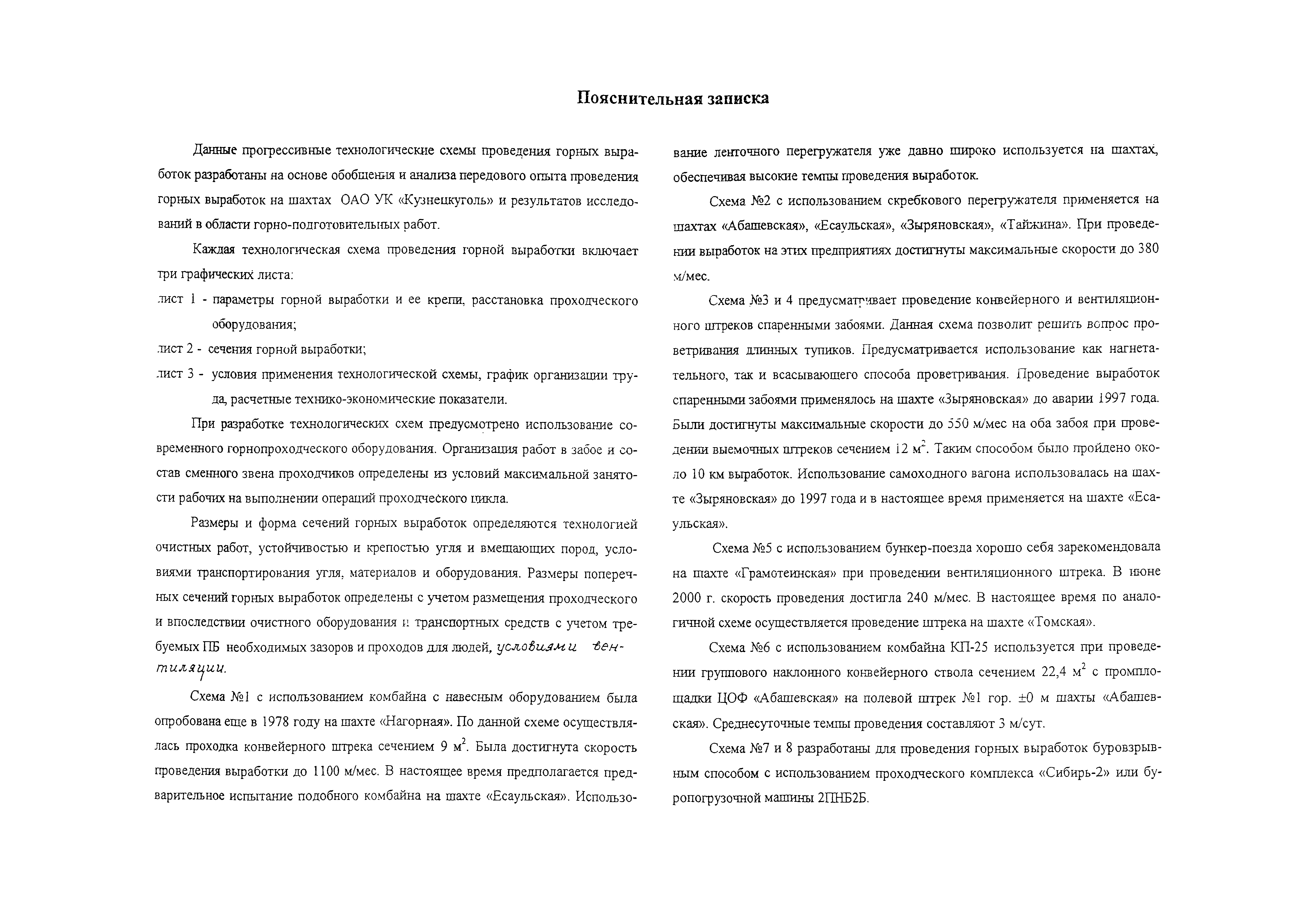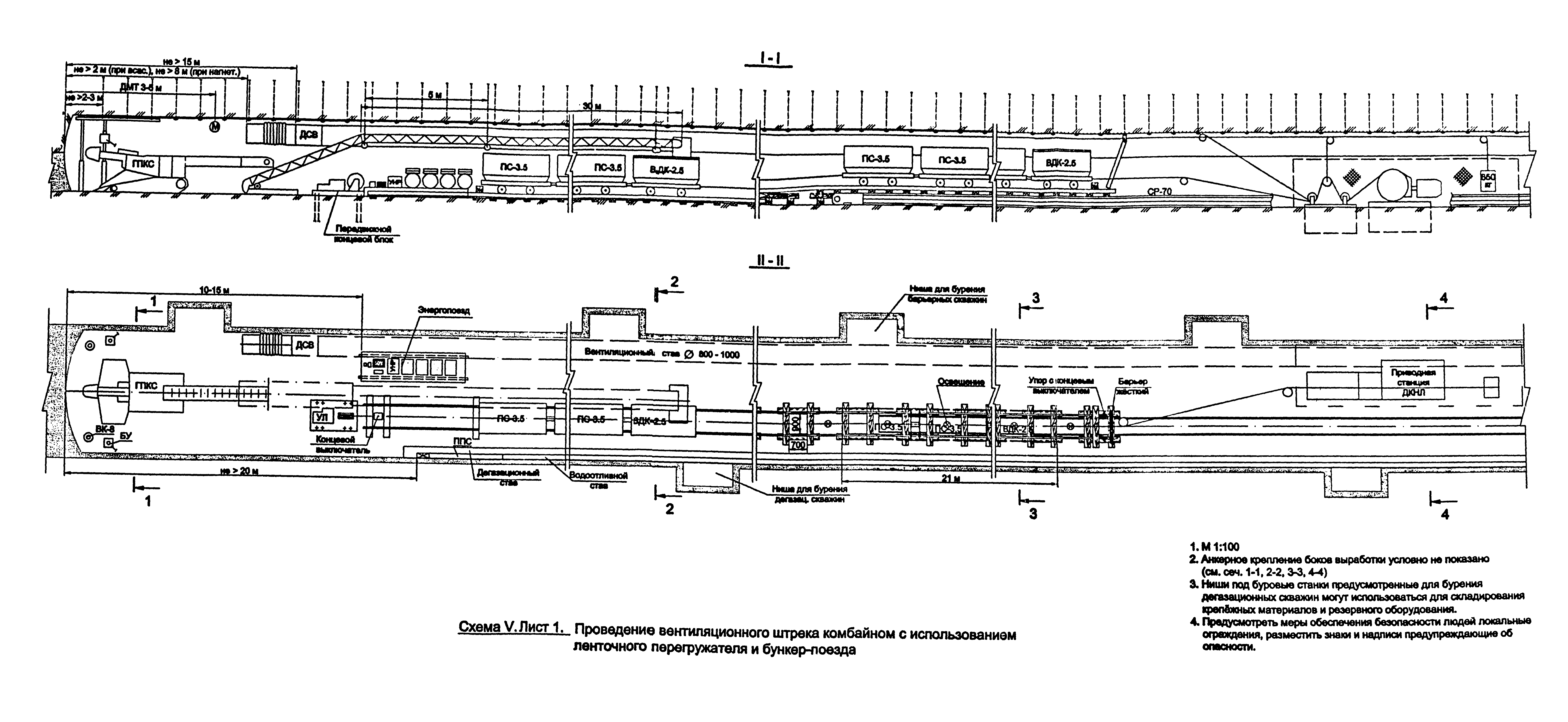 Прогрессивные технологические схемы проведения горных выработок| Статус: | справочные материалы, мп, тпр | | Название рус.: | Прогрессивные технологические схемы проведения горных выработок | | Дата добавления в базу: | 01.02.2020 | | Дата актуализации: | 01.01.2021 | | Оглавление: | Схема I. Проведение одиночным забоем конвейерного штрека комбайном с использованием навесного оборудования, ленточного перегружателя, 2ЛТ-100У Схема II. Проведение одиночным забоем конвейерного штрека комбайном с использованием скребкового перегружателя, 2ЛТ-100У Схема III. Проведение выемочных штреков спаренными забоями комбайнами с использованием ленточного перегружателя, 2ЛТ-100У и самоходного вагона. Нагнетательная схема проветривания забоев Схема IV. Проведение выемочных штреков спаренными забоями комбайнами с использованием скребкового перегружателя, 2ЛТ-100У и самоходного вагона Схема V. Проведение вентиляционного штрека комбайном с использованием ленточного перегружателя и бункер поезда Схема VI. Проведение наклонного ствола комбайном КП-25 с использованием скребкового перегружателя и 2ЛТ-100У Схема VII. Проведение наклонного ствола проходческим комплексом "Сибирь-2" с использованием скребкового перегружателя и 2ЛТ-100У Схема VIII. Проведение наклонного ствола буропогрузочной машиной 2ПНБ2Б с использованием скребкового перегружателя и 2ЛТ-100У |