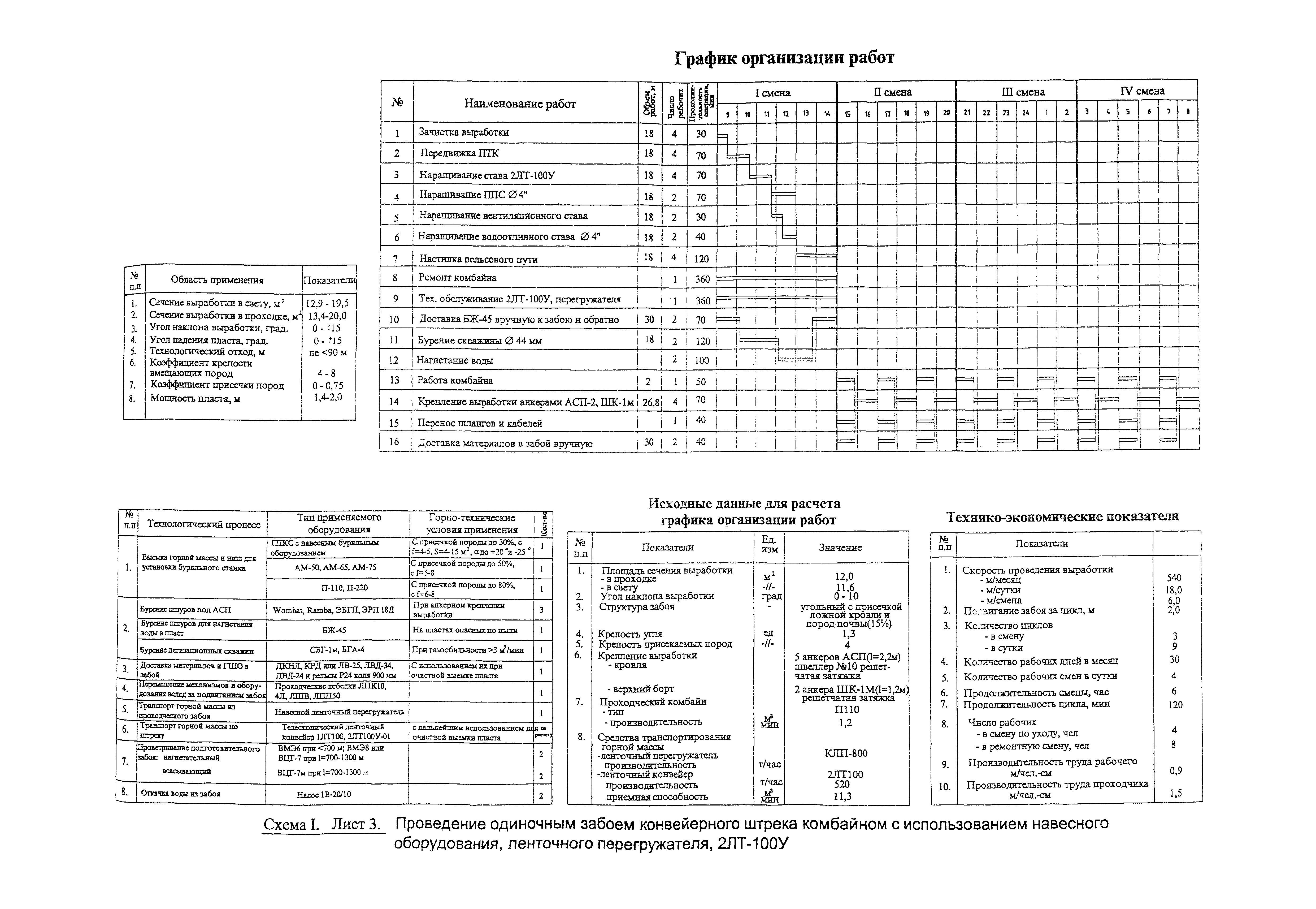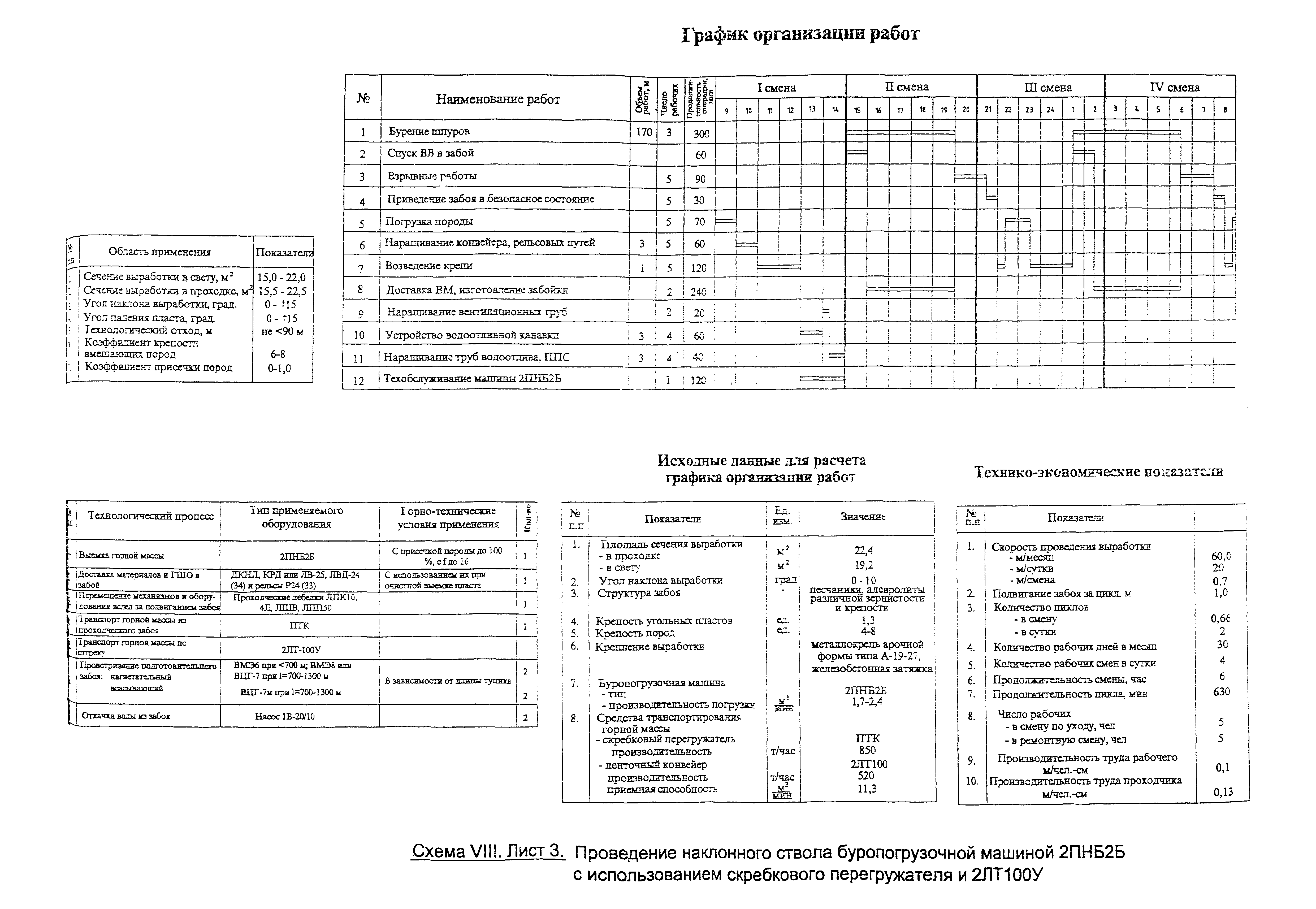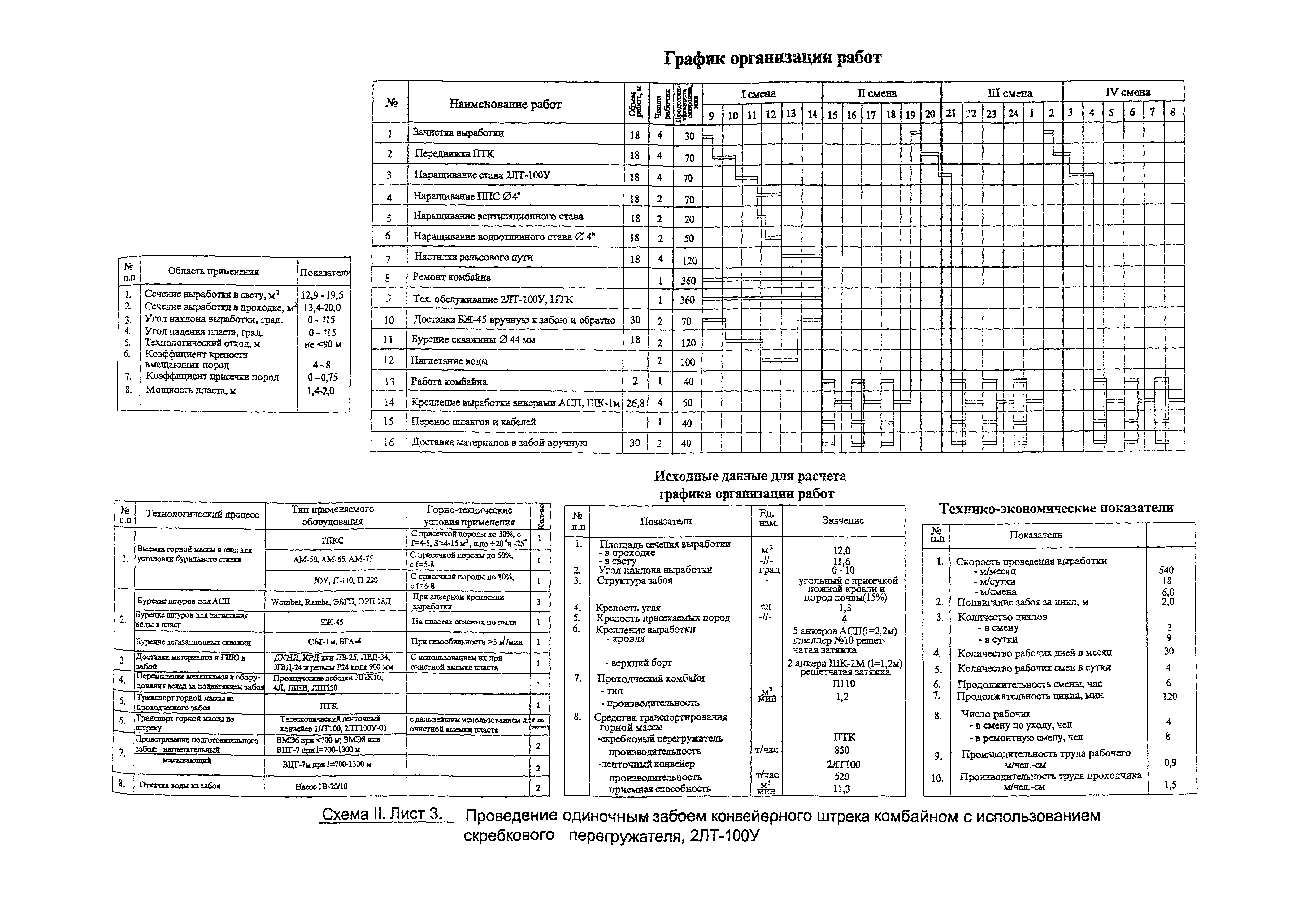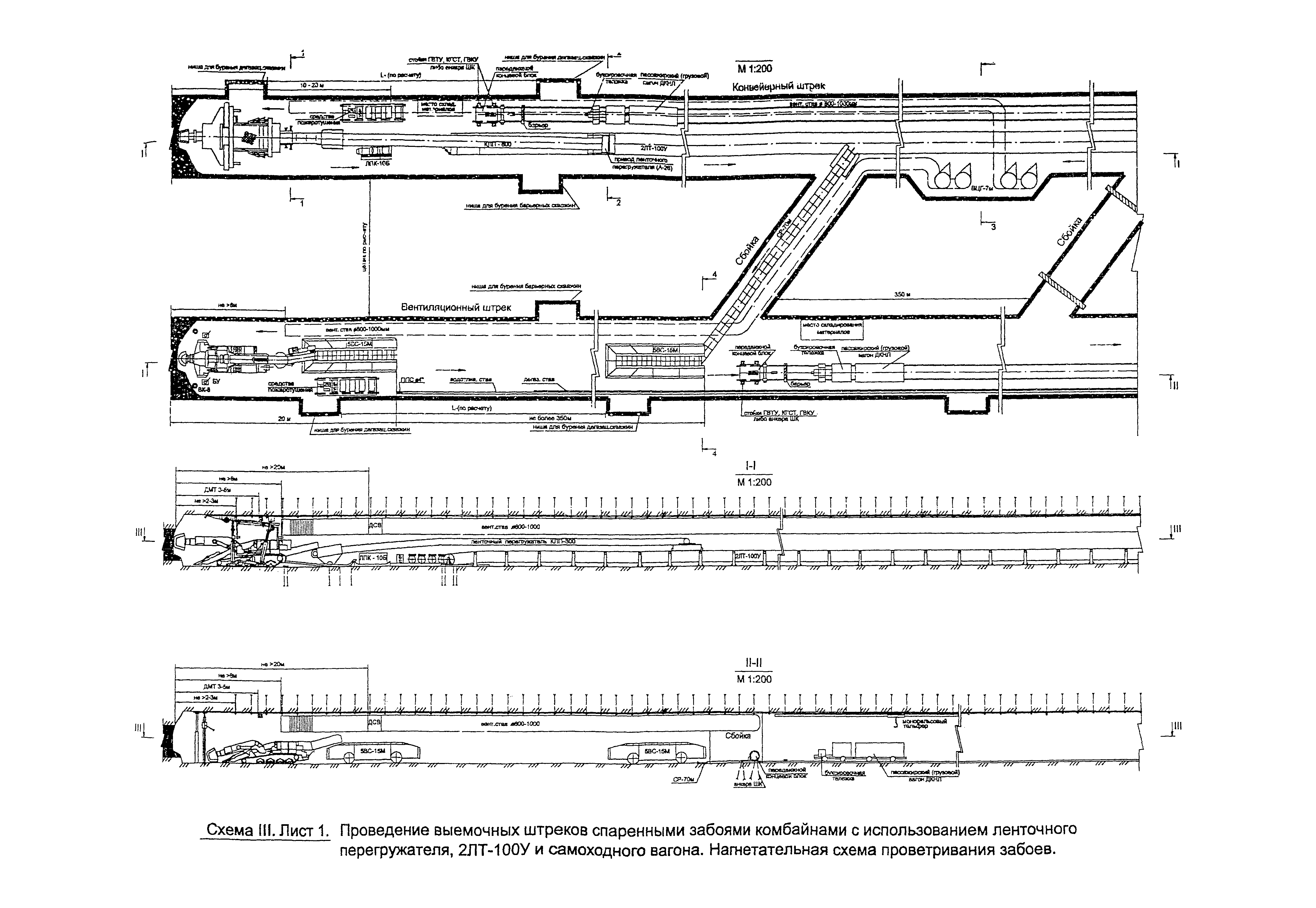 Прогрессивные технологические схемы проведения горных выработок| Статус: | справочные материалы, мп, тпр | | Название рус.: | Прогрессивные технологические схемы проведения горных выработок | | Дата добавления в базу: | 01.02.2020 | | Дата актуализации: | 01.01.2021 | | Оглавление: | Схема I. Проведение одиночным забоем конвейерного штрека комбайном с использованием навесного оборудования, ленточного перегружателя, 2ЛТ-100У Схема II. Проведение одиночным забоем конвейерного штрека комбайном с использованием скребкового перегружателя, 2ЛТ-100У Схема III. Проведение выемочных штреков спаренными забоями комбайнами с использованием ленточного перегружателя, 2ЛТ-100У и самоходного вагона. Нагнетательная схема проветривания забоев Схема IV. Проведение выемочных штреков спаренными забоями комбайнами с использованием скребкового перегружателя, 2ЛТ-100У и самоходного вагона Схема V. Проведение вентиляционного штрека комбайном с использованием ленточного перегружателя и бункер поезда Схема VI. Проведение наклонного ствола комбайном КП-25 с использованием скребкового перегружателя и 2ЛТ-100У Схема VII. Проведение наклонного ствола проходческим комплексом "Сибирь-2" с использованием скребкового перегружателя и 2ЛТ-100У Схема VIII. Проведение наклонного ствола буропогрузочной машиной 2ПНБ2Б с использованием скребкового перегружателя и 2ЛТ-100У |