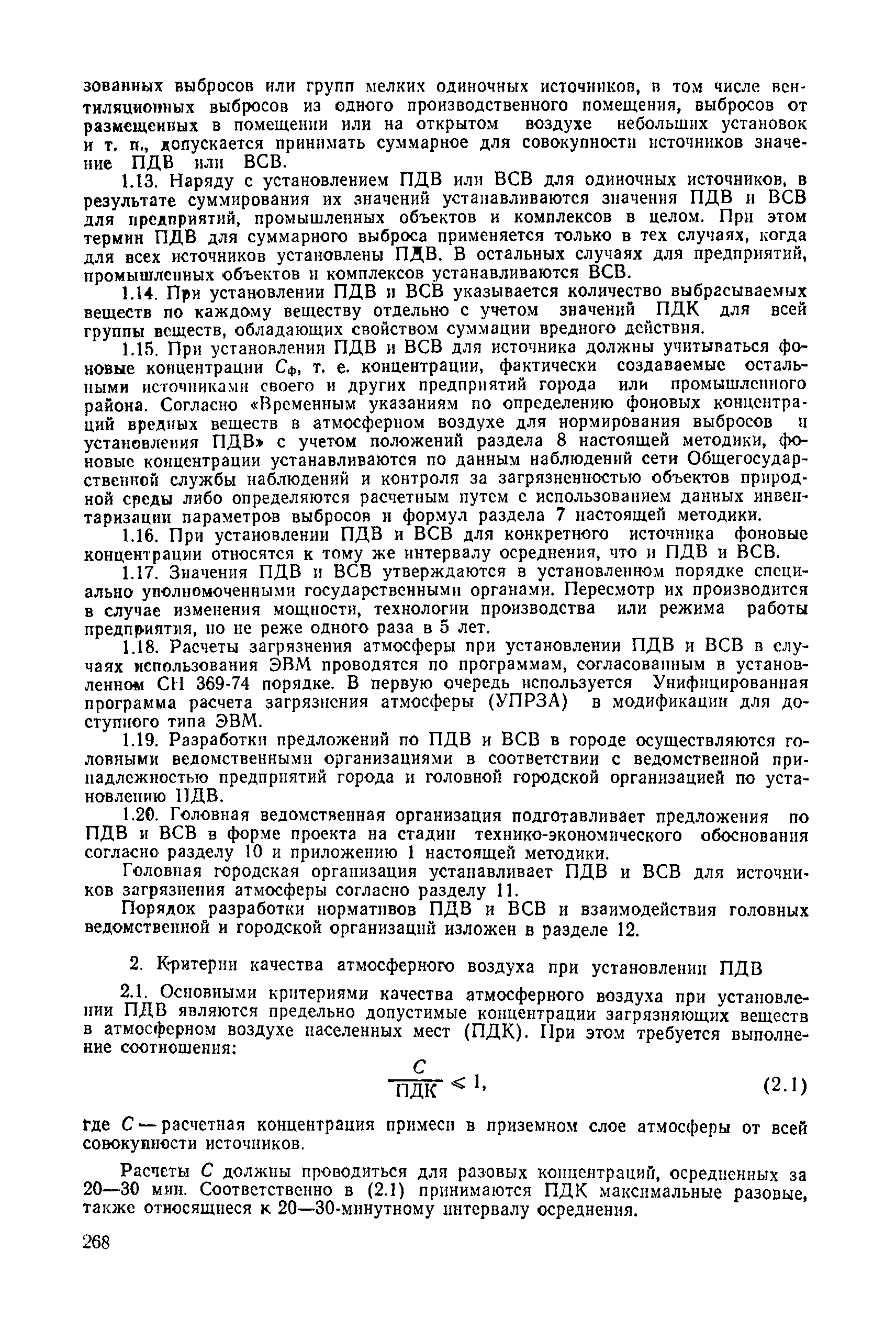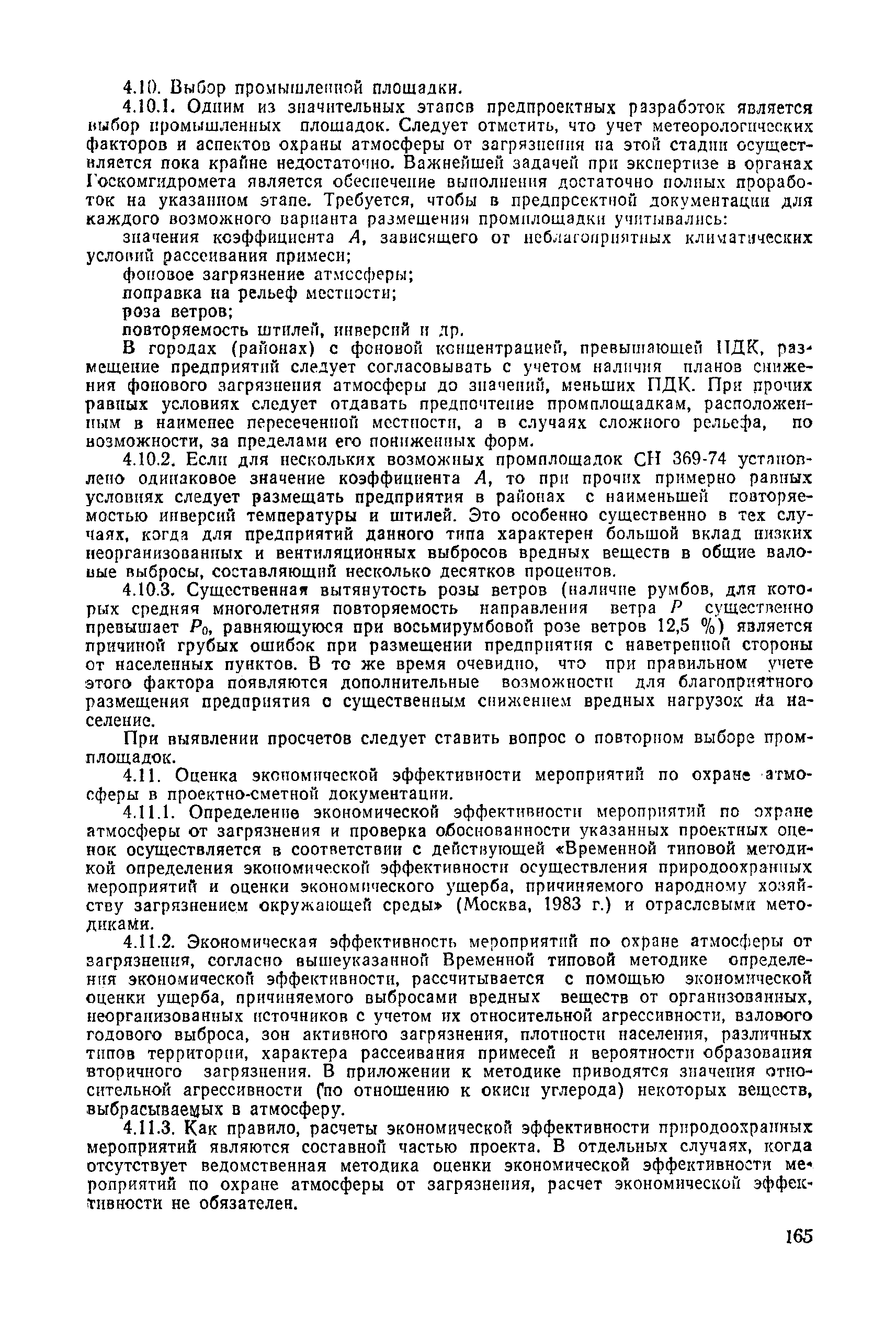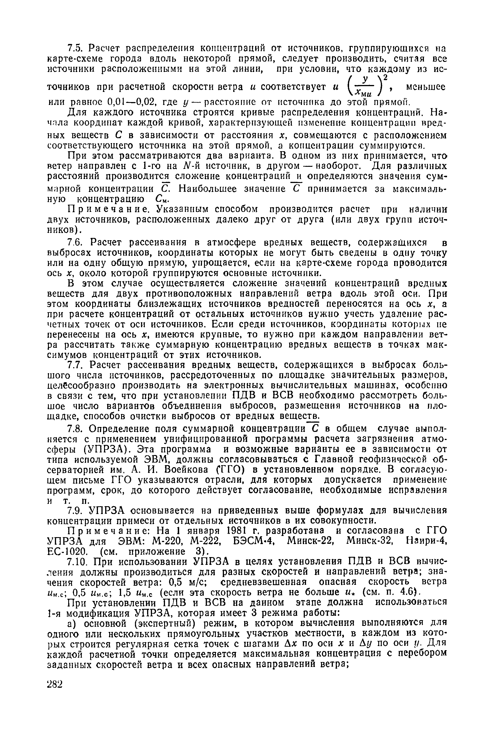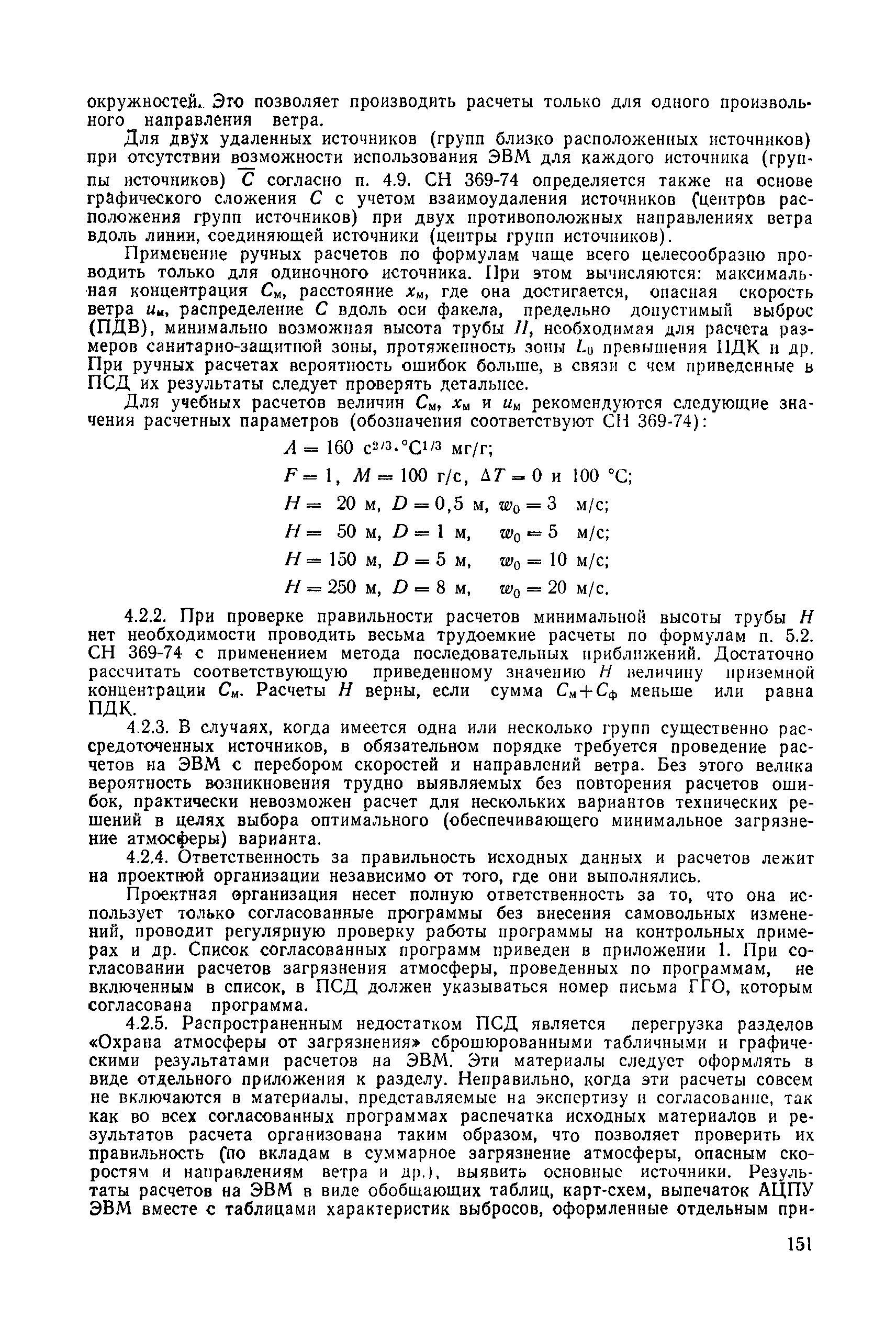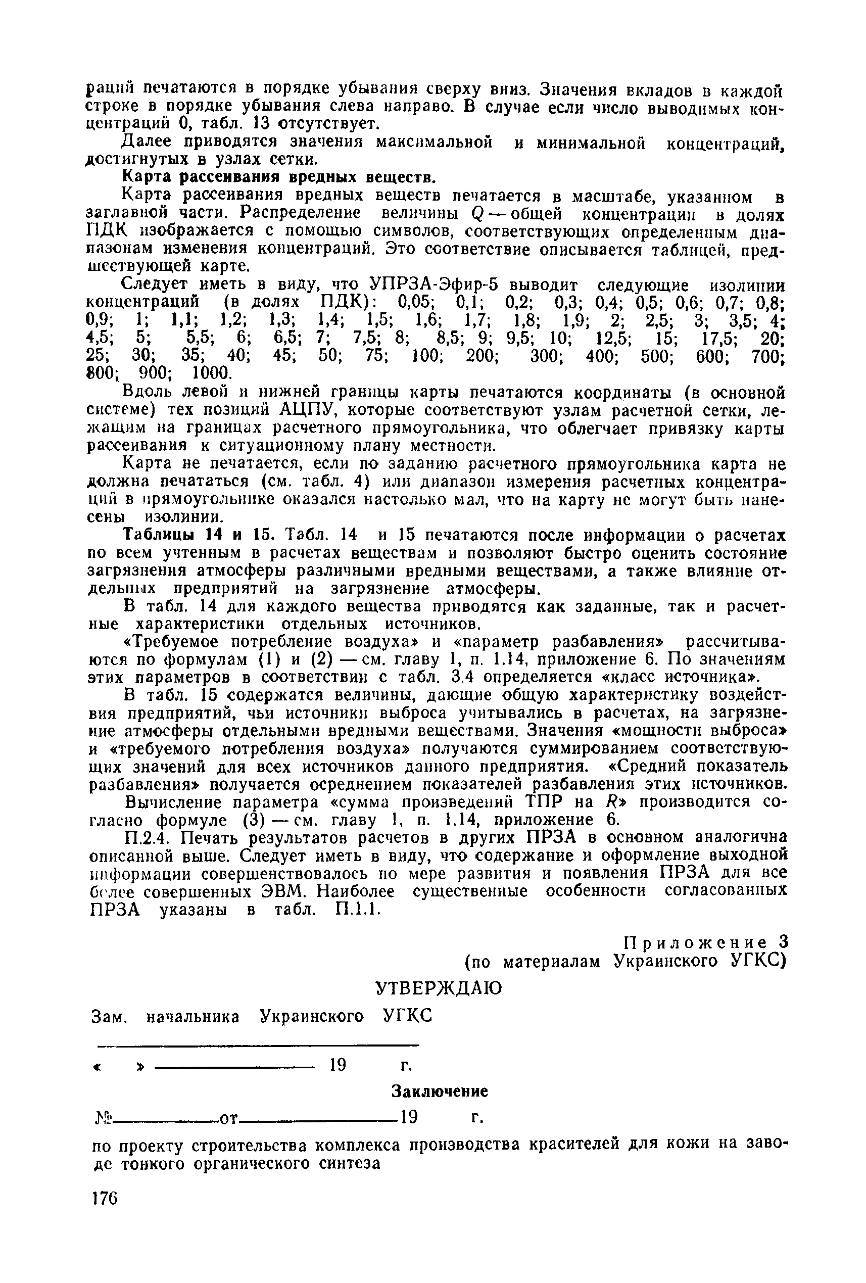| | Нормативные ссылки: |   СН 387-78 «Инструкция по разработке схем генеральных планов групп предприятий с общими объектами (промышленных узлов)»  СН 245-71 «Санитарные нормы проектирования промышленных предприятий»  ГОСТ 17.2.3.02-78 «Охрана природы. Атмосфера. Правила установления допустимых выбросов вредных веществ промышленными предприятиями»  ОНД 1-84 «Инструкция о порядке рассмотрения, согласования и экспертизы воздухоохранных мероприятий и выдачи разрешений на выброс загрязняющих веществ в атмосферу по проектным решениям» РД 50-210-80 «Методические указания по внедрению ГОСТ 17.2.3.02-78 "Охрана природы. Атмосфера. Правила установления допустимых выбросов вредных веществ промышленными предприятиями"» СН 202-81 «Инструкция о составе, порядке разработки, согласования и утверждения проектов и смет на строительство предприятий, зданий и сооружений» ВСН 38-82/Госгражданстрой «Инструкция о составе, порядке разработки, согласования и утверждения схем и проектов районной планировки, планировки и застройки городов, поселков и сельских населенных пунктов» СНиП III-3-81 «Приемка в эксплуатацию законченных строительством объектов. Основные положения» СНиП II-33-75 «Отопление, вентиляция и кондиционирование воздуха»  СНиП 1.01.03-83* «Система нормативных документов в строительстве. Правила изложения и оформления нормативных документов и их изменений» СН 369-74 «Указания по расчету рассеивания в атмосфере вредных веществ, содержащихся в выбросах предприятий»