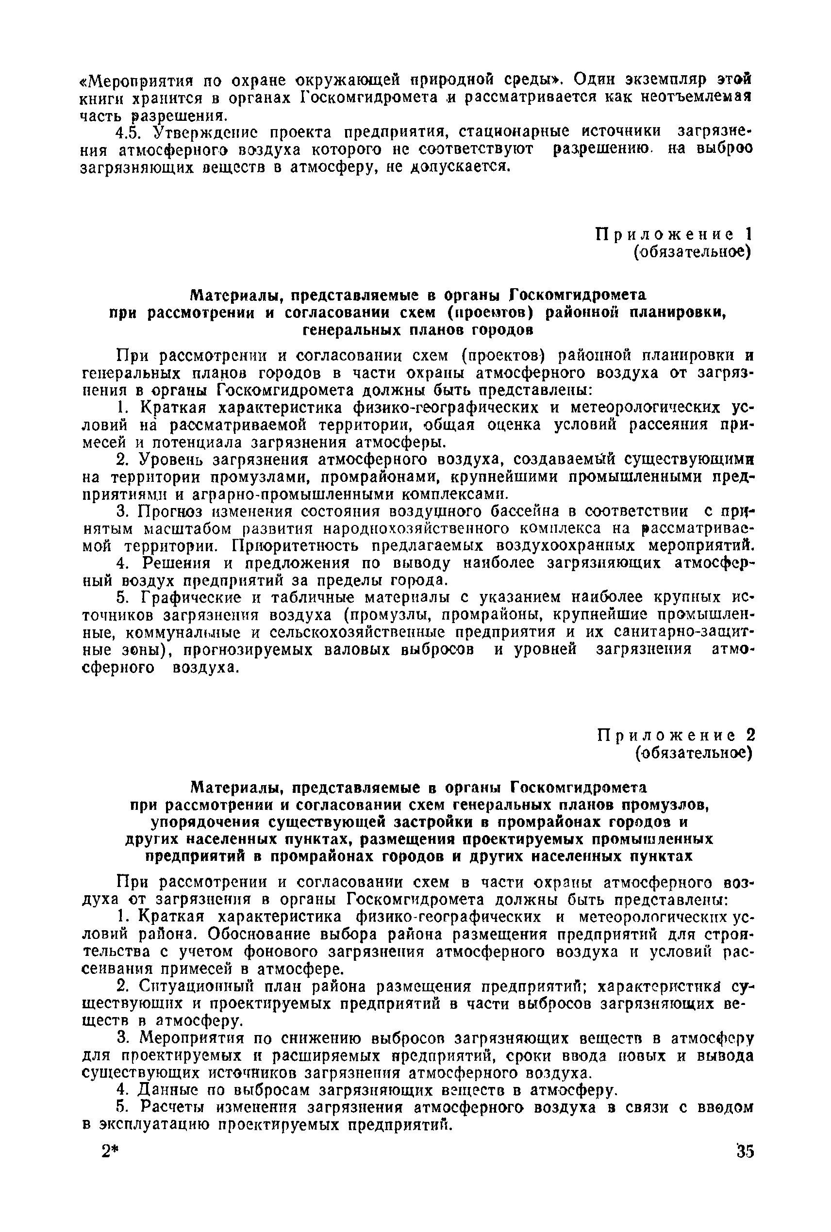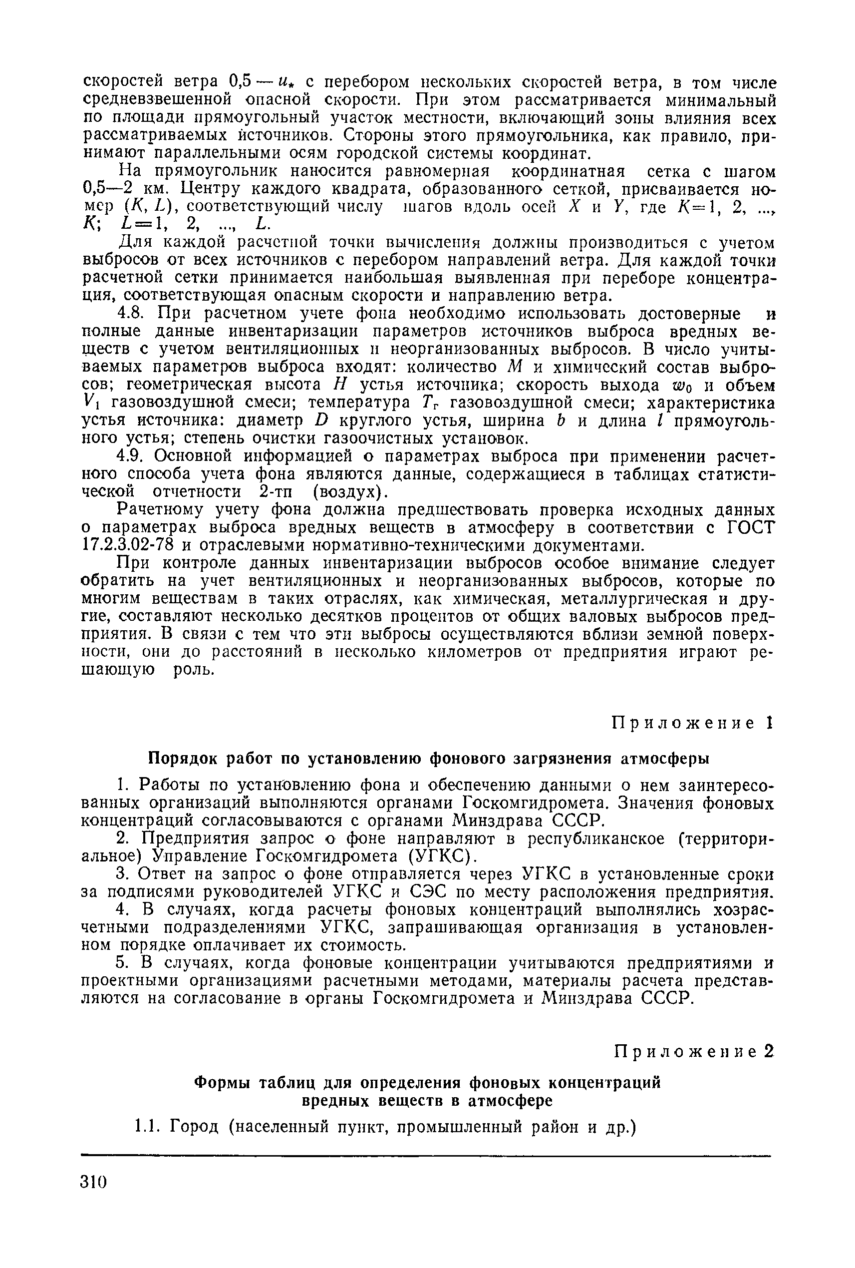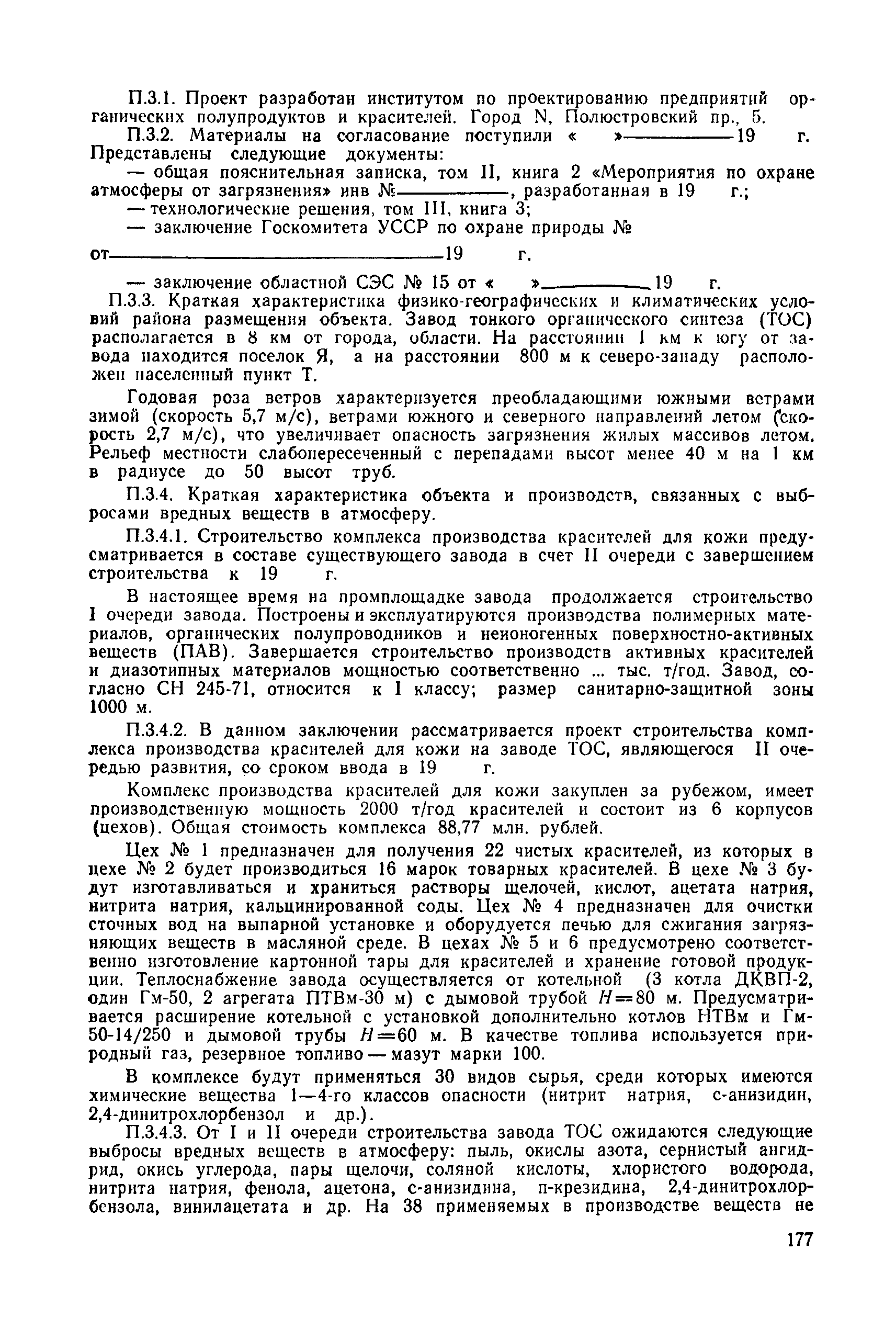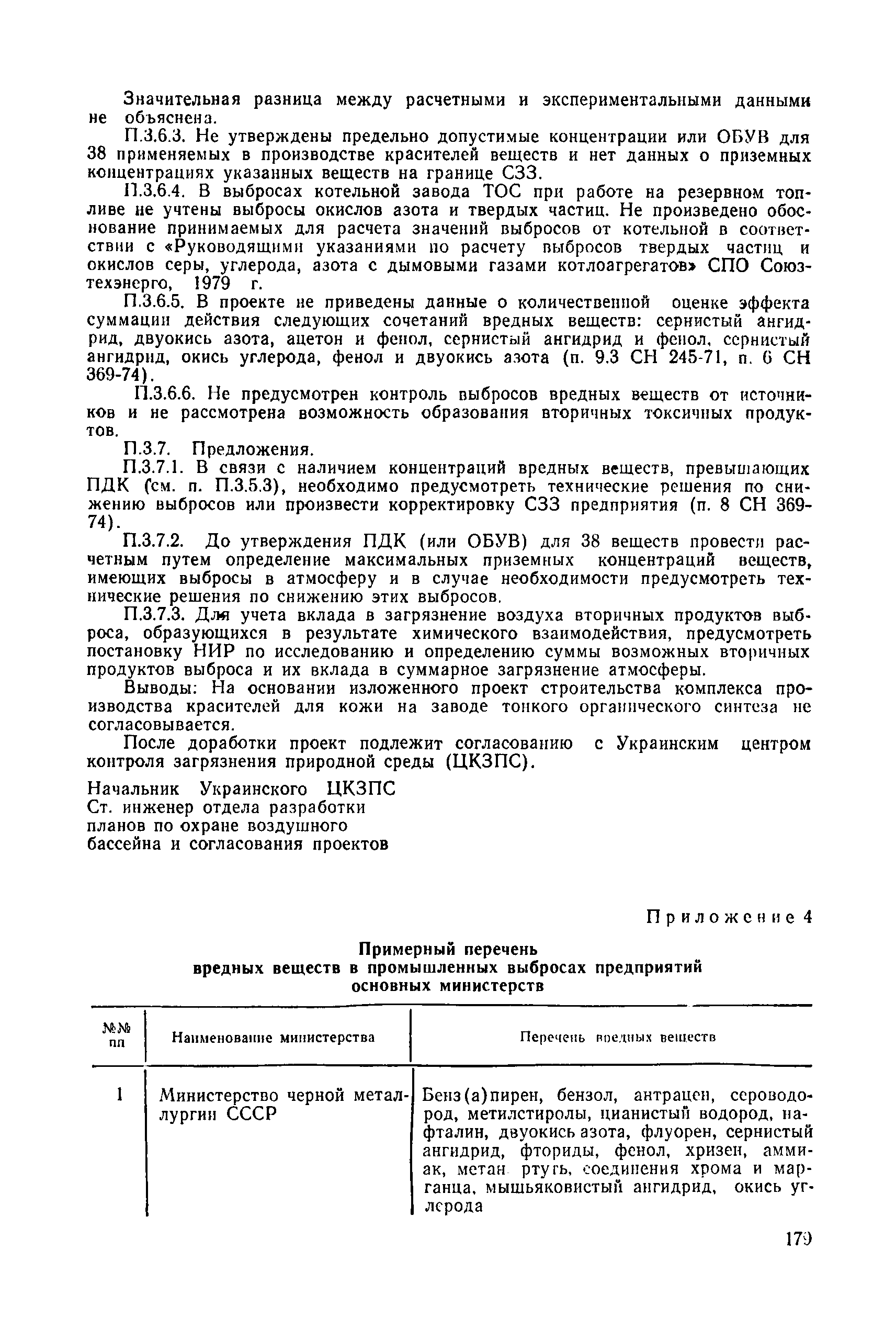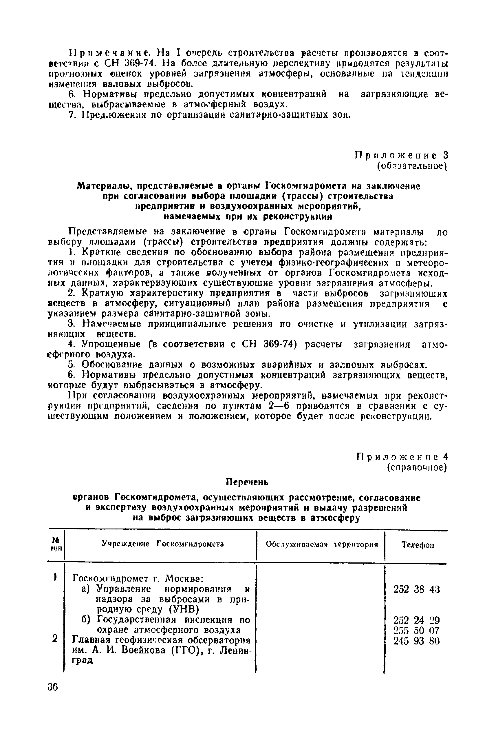 | | Нормативные ссылки: |   СН 387-78 «Инструкция по разработке схем генеральных планов групп предприятий с общими объектами (промышленных узлов)»  СН 245-71 «Санитарные нормы проектирования промышленных предприятий»  ГОСТ 17.2.3.02-78 «Охрана природы. Атмосфера. Правила установления допустимых выбросов вредных веществ промышленными предприятиями»  ОНД 1-84 «Инструкция о порядке рассмотрения, согласования и экспертизы воздухоохранных мероприятий и выдачи разрешений на выброс загрязняющих веществ в атмосферу по проектным решениям» РД 50-210-80 «Методические указания по внедрению ГОСТ 17.2.3.02-78 "Охрана природы. Атмосфера. Правила установления допустимых выбросов вредных веществ промышленными предприятиями"» СН 202-81 «Инструкция о составе, порядке разработки, согласования и утверждения проектов и смет на строительство предприятий, зданий и сооружений» ВСН 38-82/Госгражданстрой «Инструкция о составе, порядке разработки, согласования и утверждения схем и проектов районной планировки, планировки и застройки городов, поселков и сельских населенных пунктов» СНиП III-3-81 «Приемка в эксплуатацию законченных строительством объектов. Основные положения» СНиП II-33-75 «Отопление, вентиляция и кондиционирование воздуха»  СНиП 1.01.03-83* «Система нормативных документов в строительстве. Правила изложения и оформления нормативных документов и их изменений» СН 369-74 «Указания по расчету рассеивания в атмосфере вредных веществ, содержащихся в выбросах предприятий»