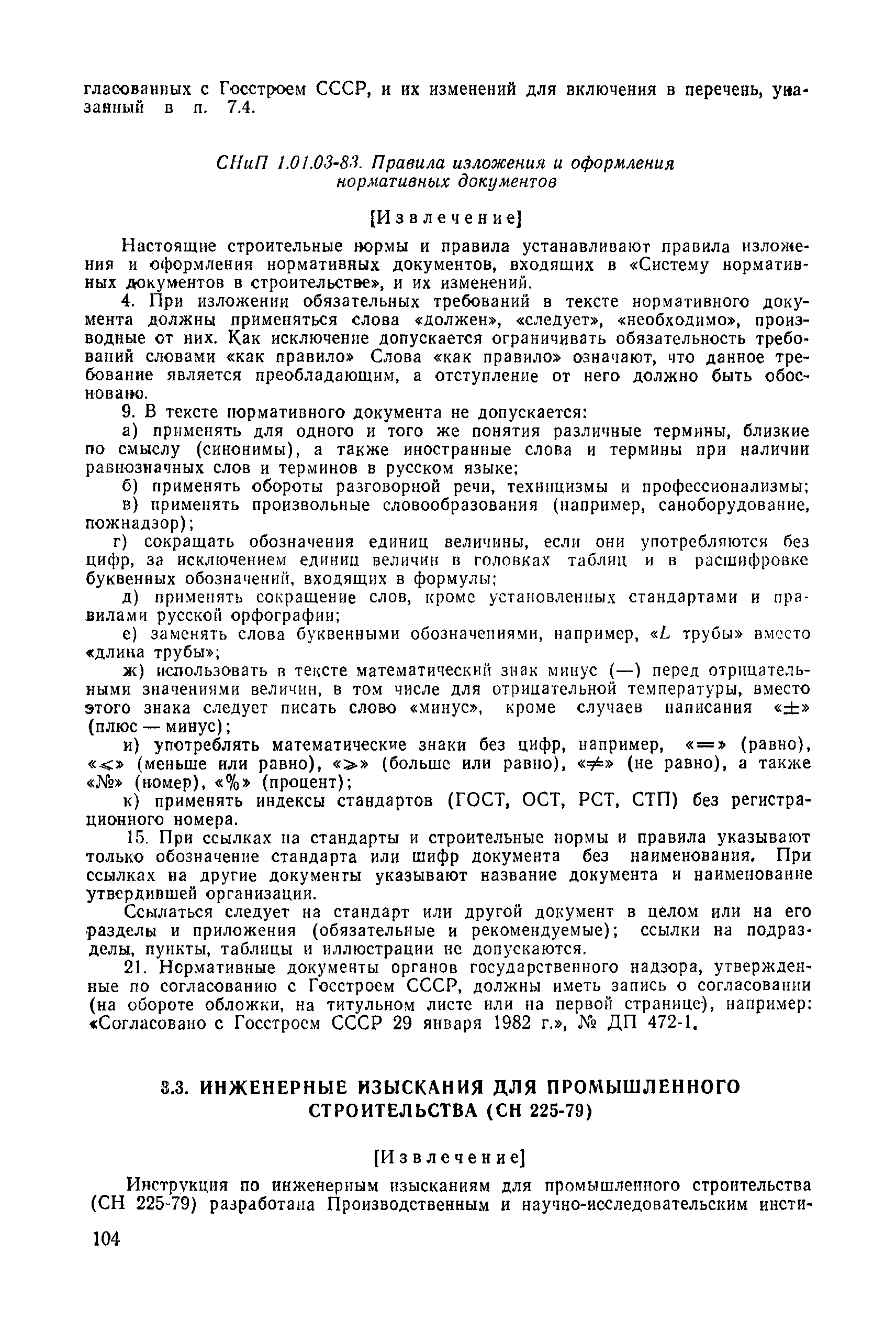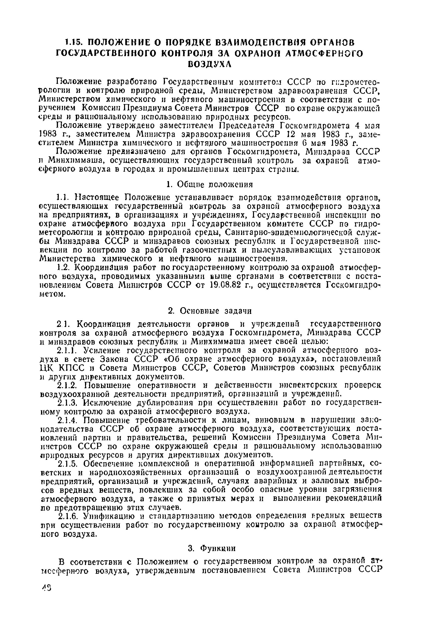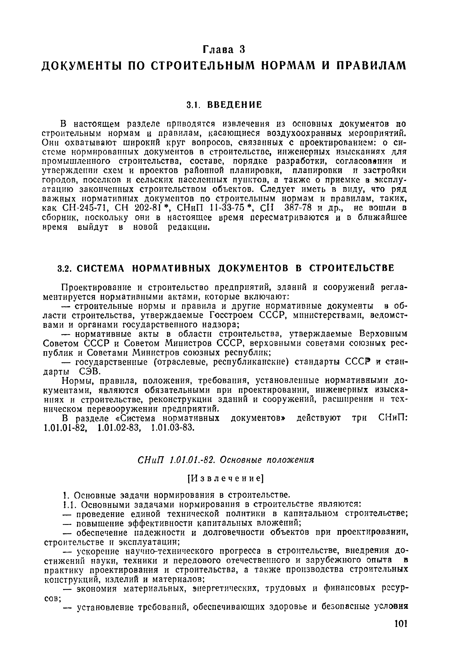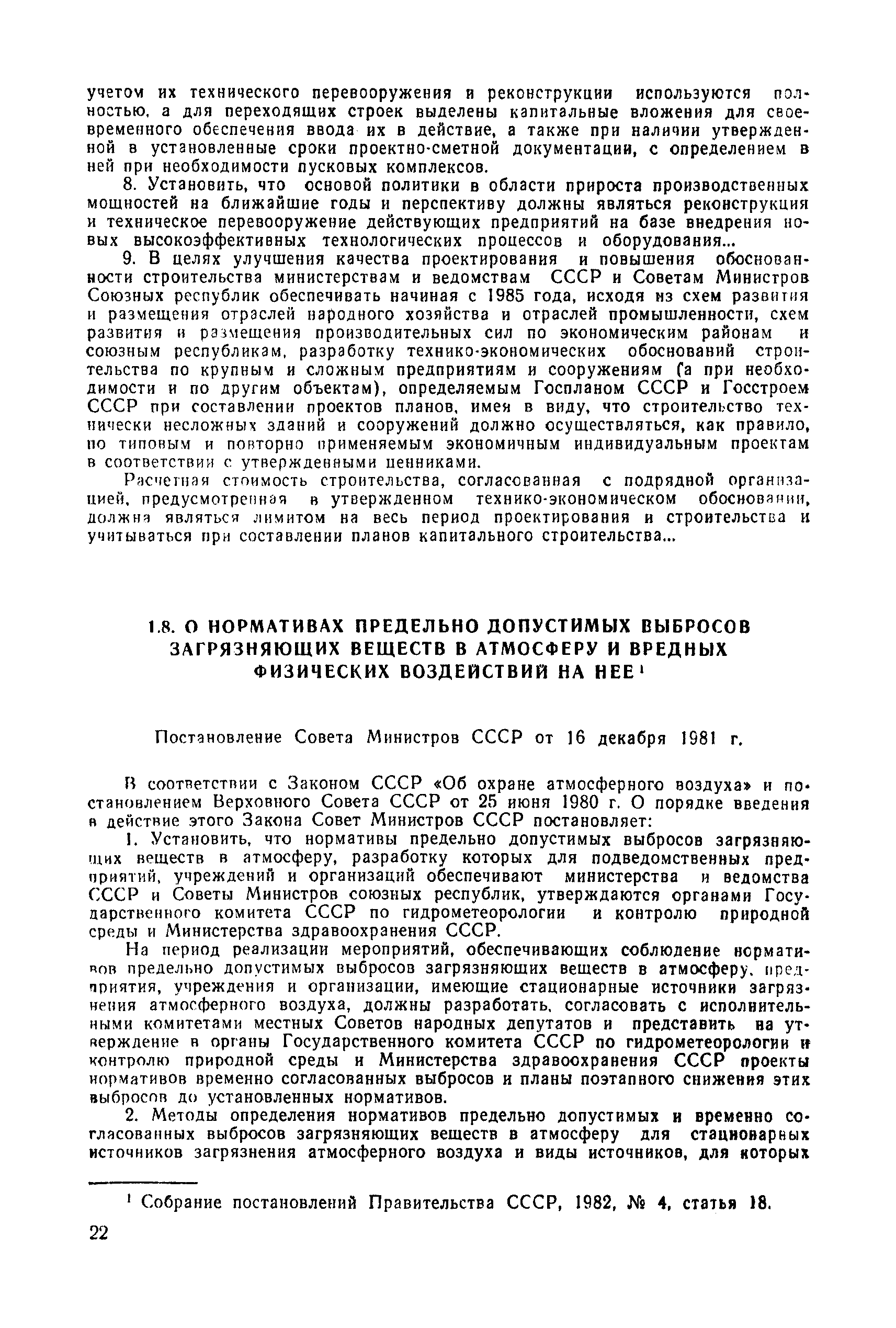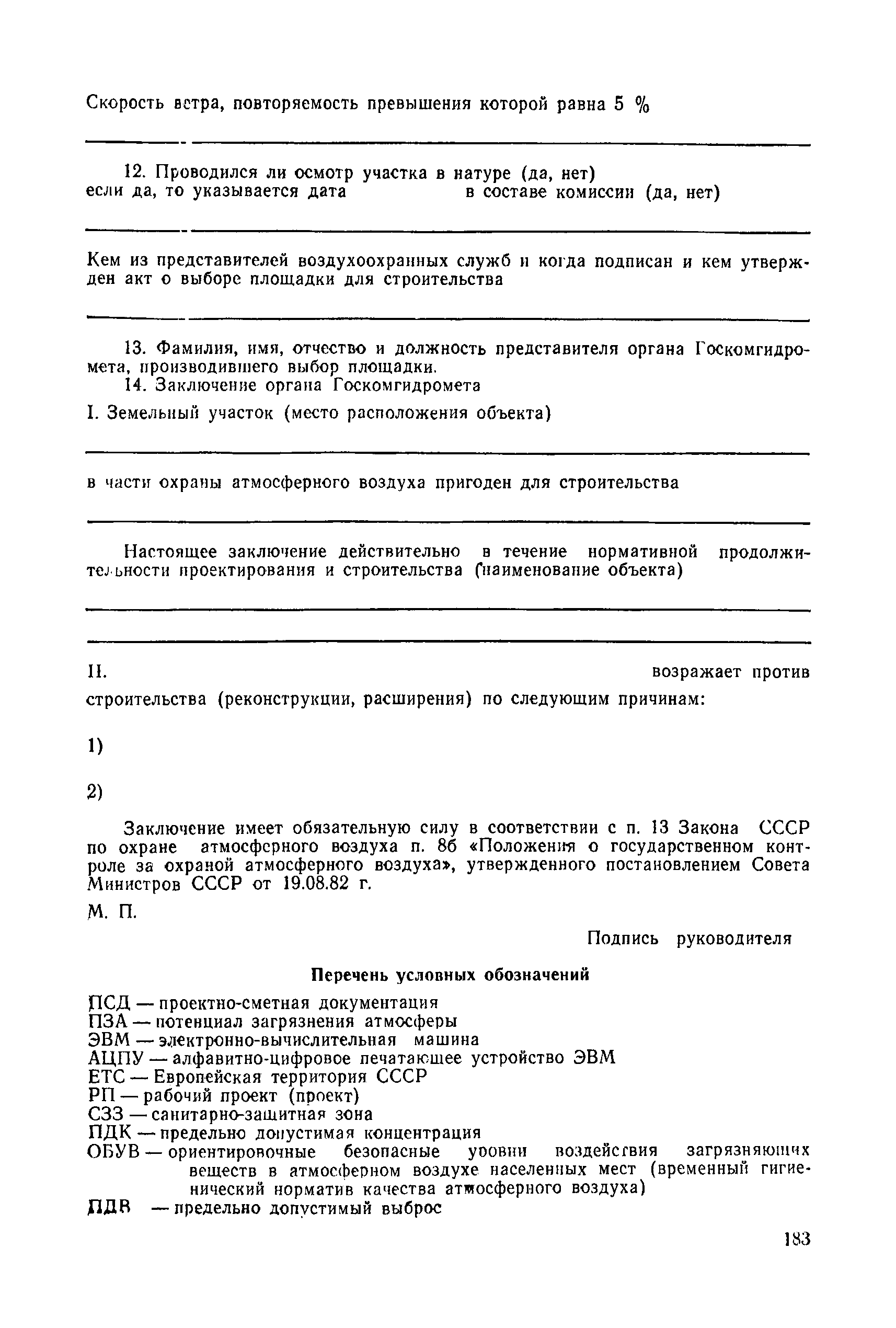 | | Нормативные ссылки: |   СН 387-78 «Инструкция по разработке схем генеральных планов групп предприятий с общими объектами (промышленных узлов)»  СН 245-71 «Санитарные нормы проектирования промышленных предприятий»  ГОСТ 17.2.3.02-78 «Охрана природы. Атмосфера. Правила установления допустимых выбросов вредных веществ промышленными предприятиями»  ОНД 1-84 «Инструкция о порядке рассмотрения, согласования и экспертизы воздухоохранных мероприятий и выдачи разрешений на выброс загрязняющих веществ в атмосферу по проектным решениям» РД 50-210-80 «Методические указания по внедрению ГОСТ 17.2.3.02-78 "Охрана природы. Атмосфера. Правила установления допустимых выбросов вредных веществ промышленными предприятиями"» СН 202-81 «Инструкция о составе, порядке разработки, согласования и утверждения проектов и смет на строительство предприятий, зданий и сооружений» ВСН 38-82/Госгражданстрой «Инструкция о составе, порядке разработки, согласования и утверждения схем и проектов районной планировки, планировки и застройки городов, поселков и сельских населенных пунктов» СНиП III-3-81 «Приемка в эксплуатацию законченных строительством объектов. Основные положения» СНиП II-33-75 «Отопление, вентиляция и кондиционирование воздуха»  СНиП 1.01.03-83* «Система нормативных документов в строительстве. Правила изложения и оформления нормативных документов и их изменений» СН 369-74 «Указания по расчету рассеивания в атмосфере вредных веществ, содержащихся в выбросах предприятий»