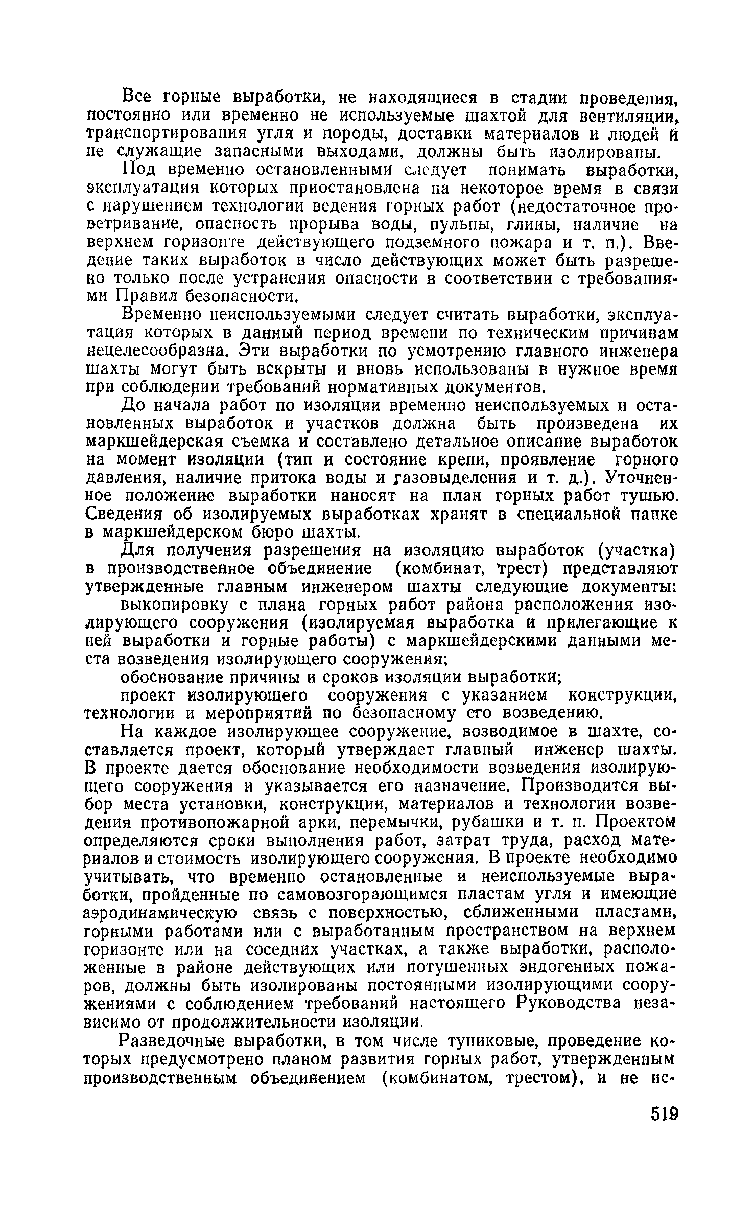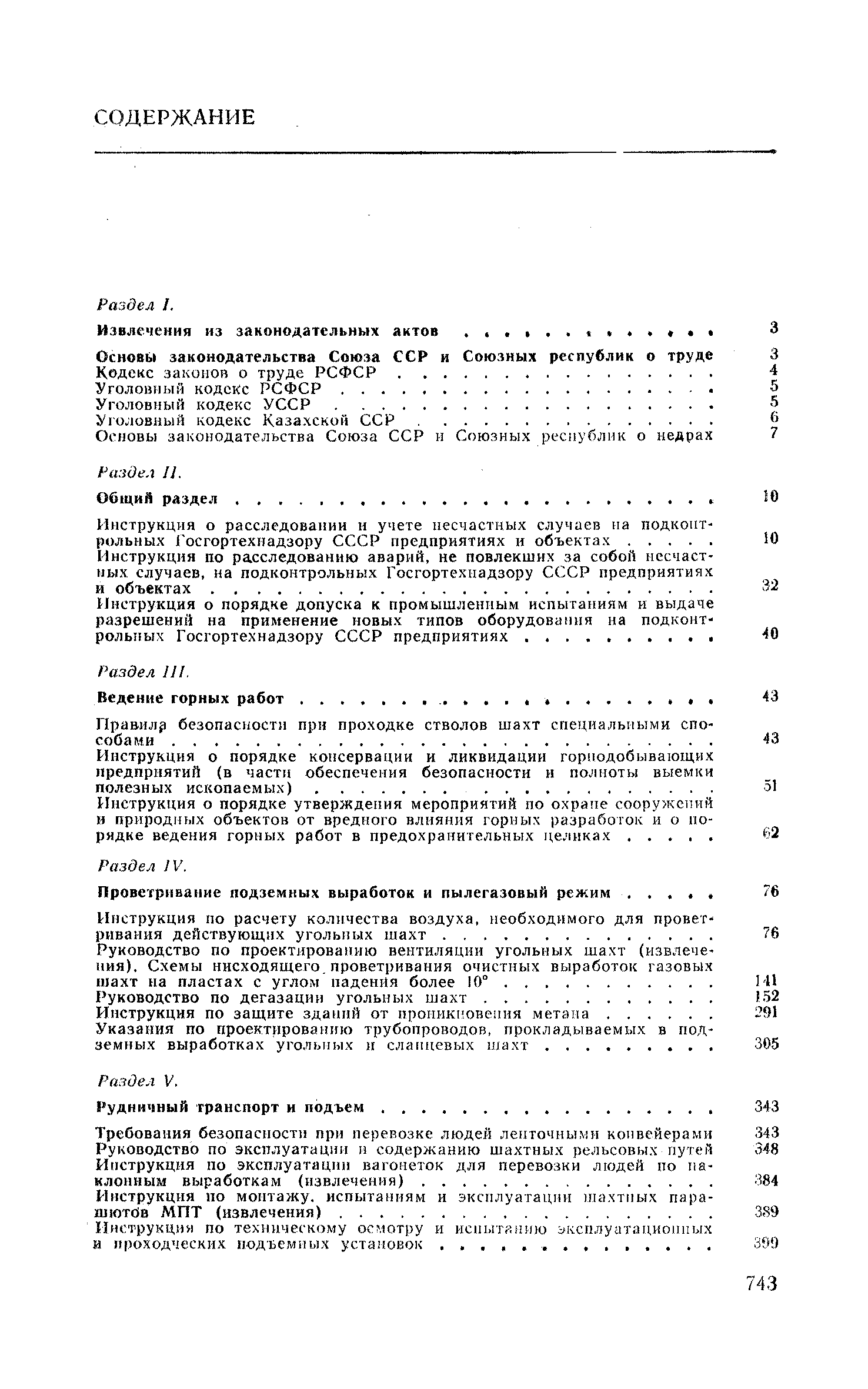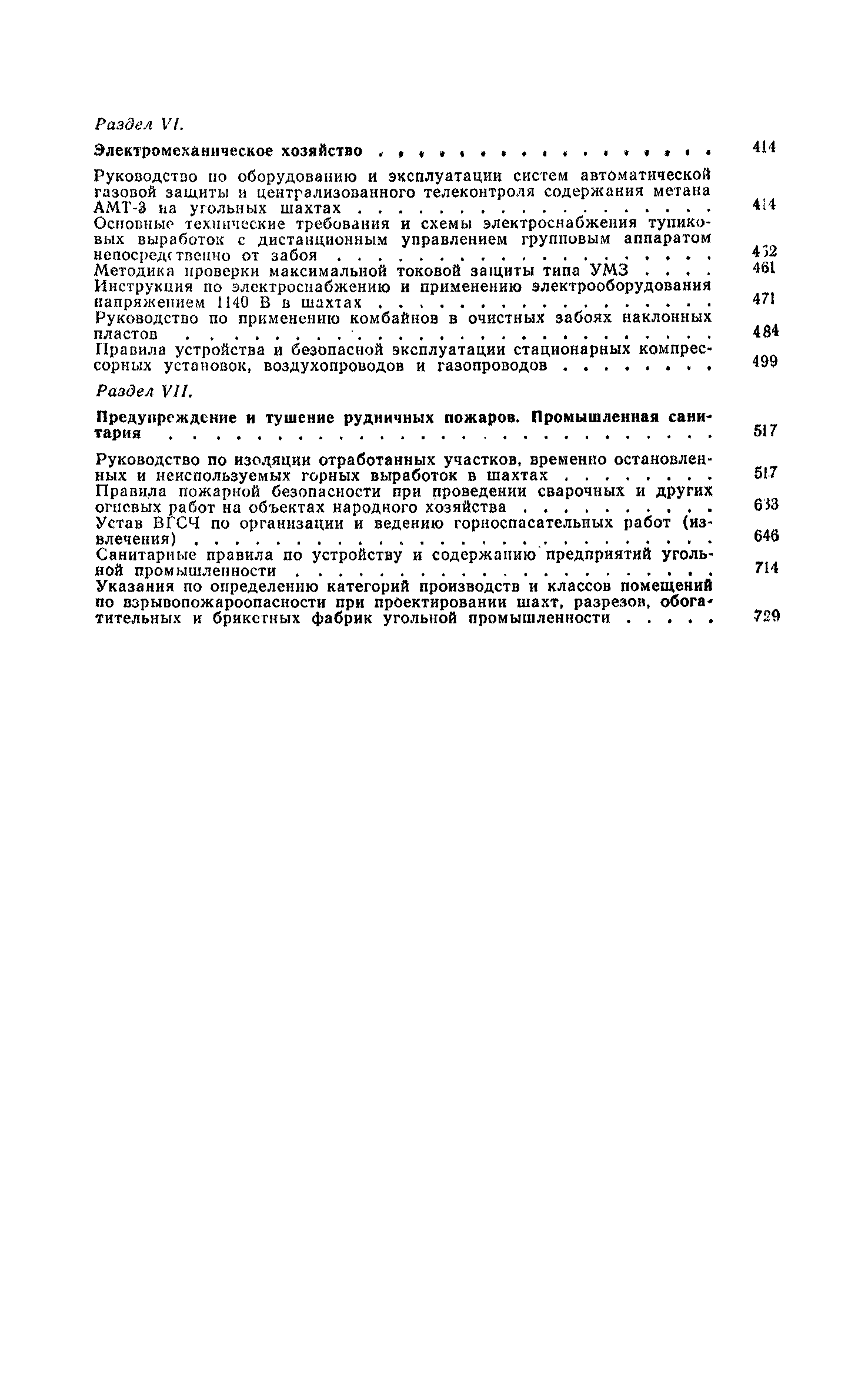 Раздел I. Извлечения из законодательных актов Раздел II. Общий раздел Раздел III Ведение горных работ Раздел IV Проветривание подземных выработок и пылегазовый режим Раздел V. Рудничный транспорт и подъем Раздел VI. Электромеханическое хозяйство Раздел VII. Предупреждение н тушение рудничных пожаров. Промышленная санитари