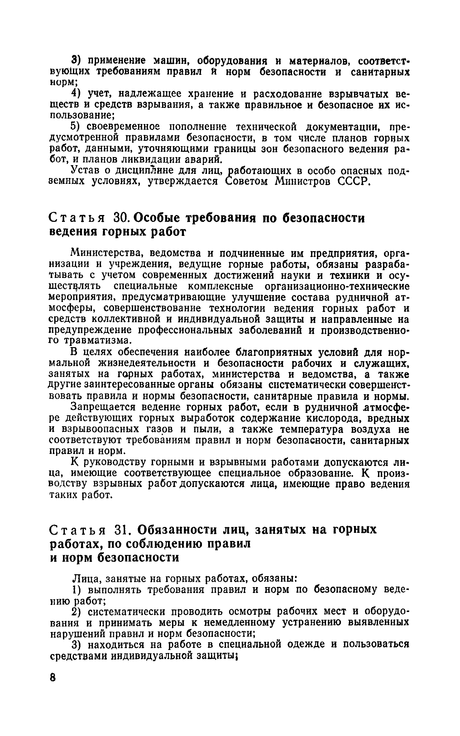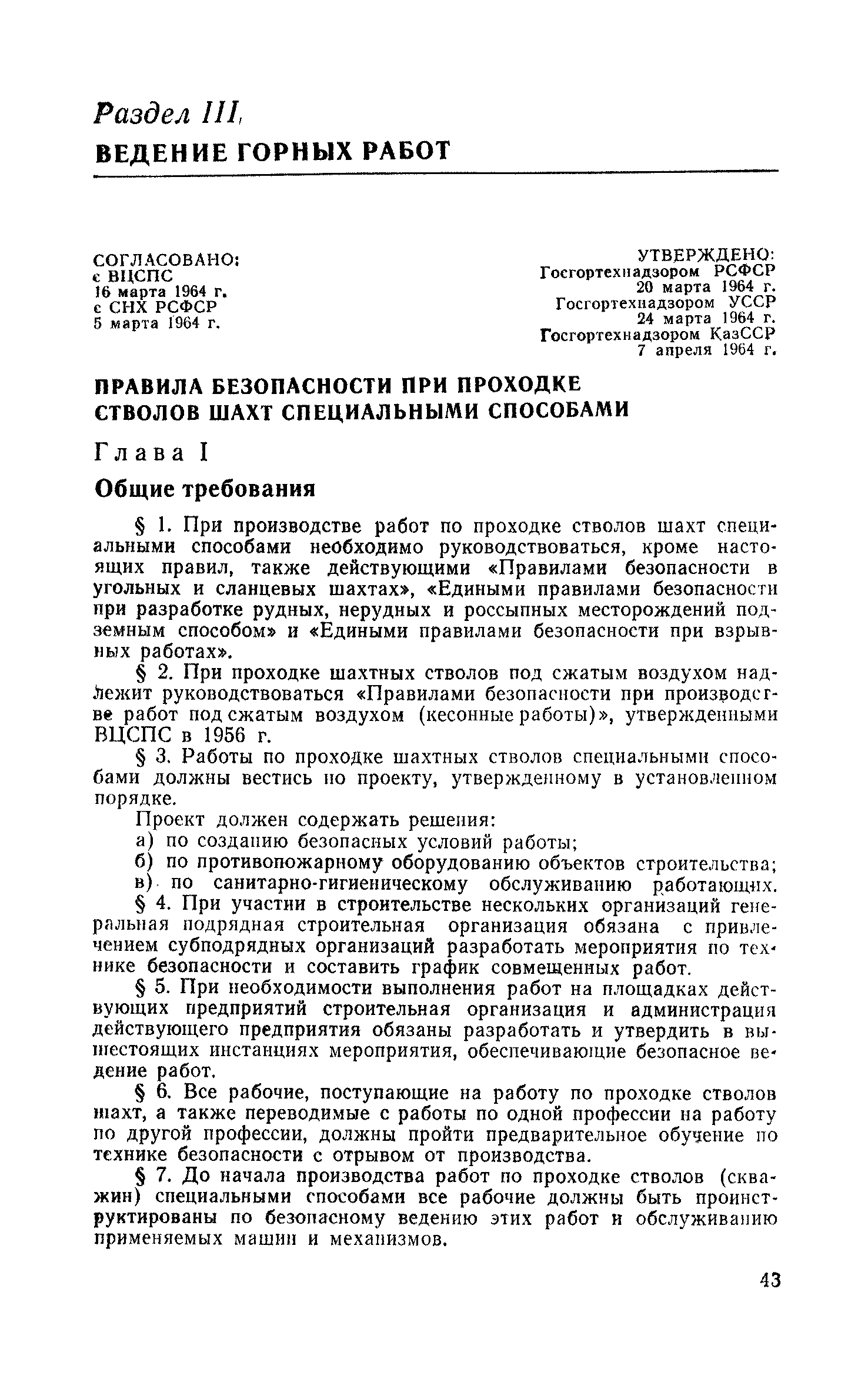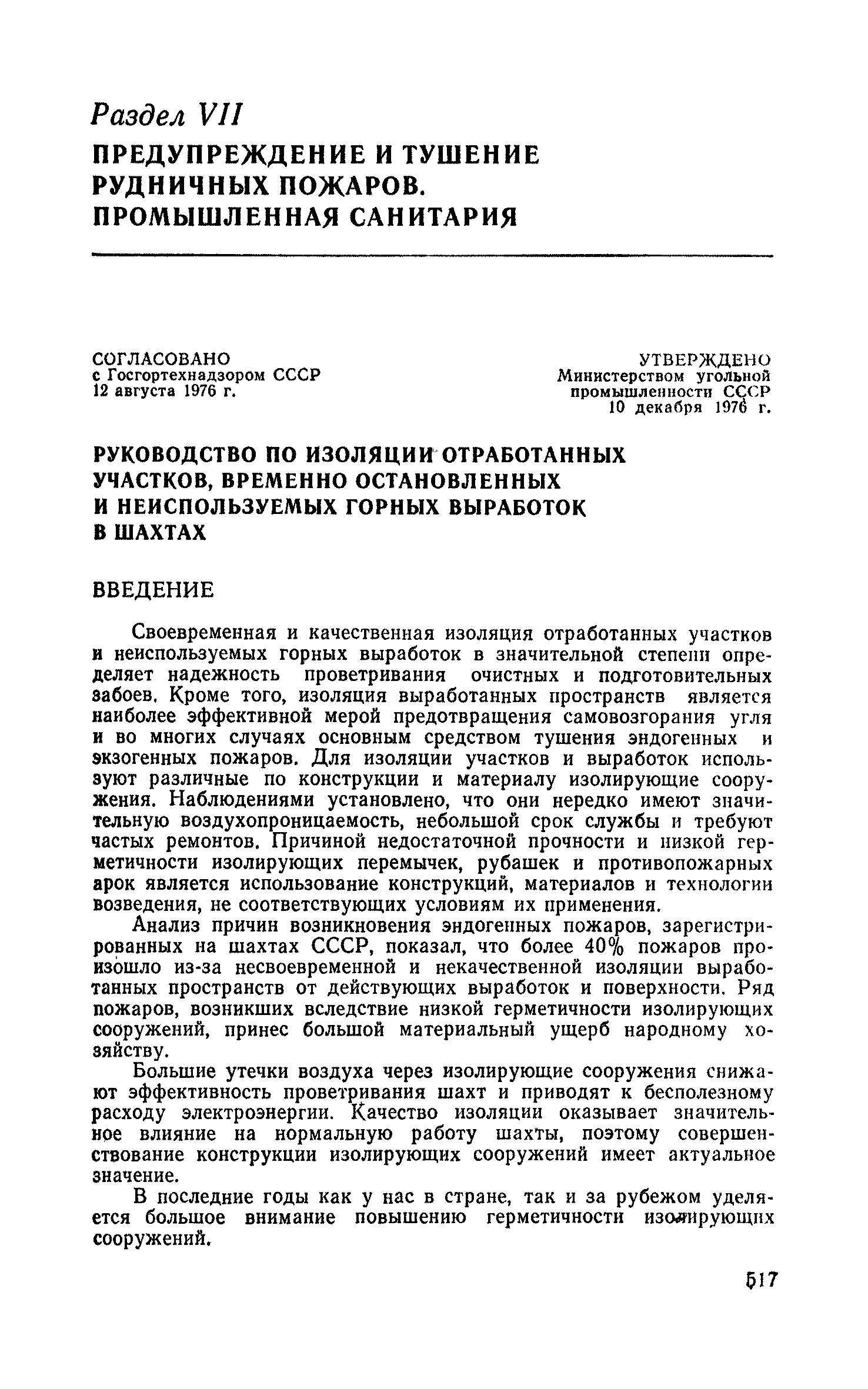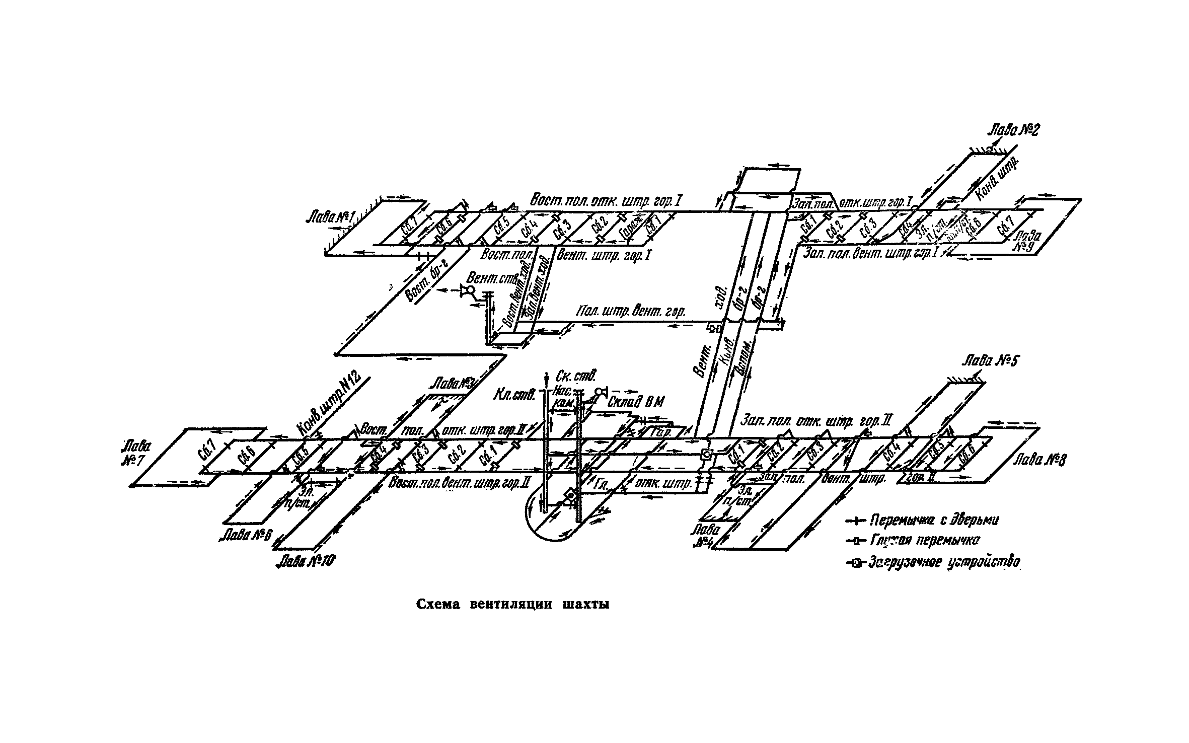 Раздел I. Извлечения из законодательных актов Раздел II. Общий раздел Раздел III Ведение горных работ Раздел IV Проветривание подземных выработок и пылегазовый режим Раздел V. Рудничный транспорт и подъем Раздел VI. Электромеханическое хозяйство Раздел VII. Предупреждение н тушение рудничных пожаров. Промышленная санитари