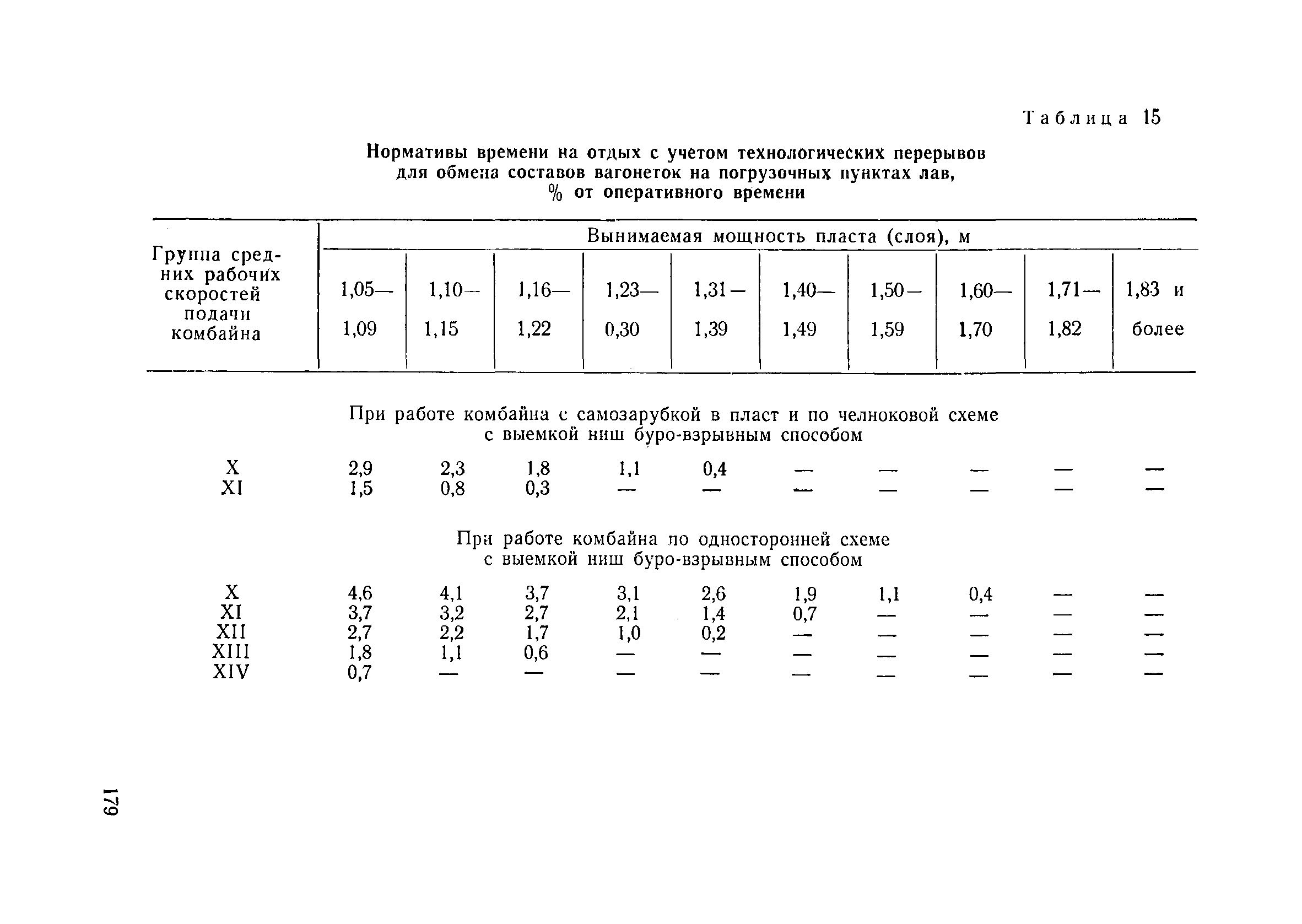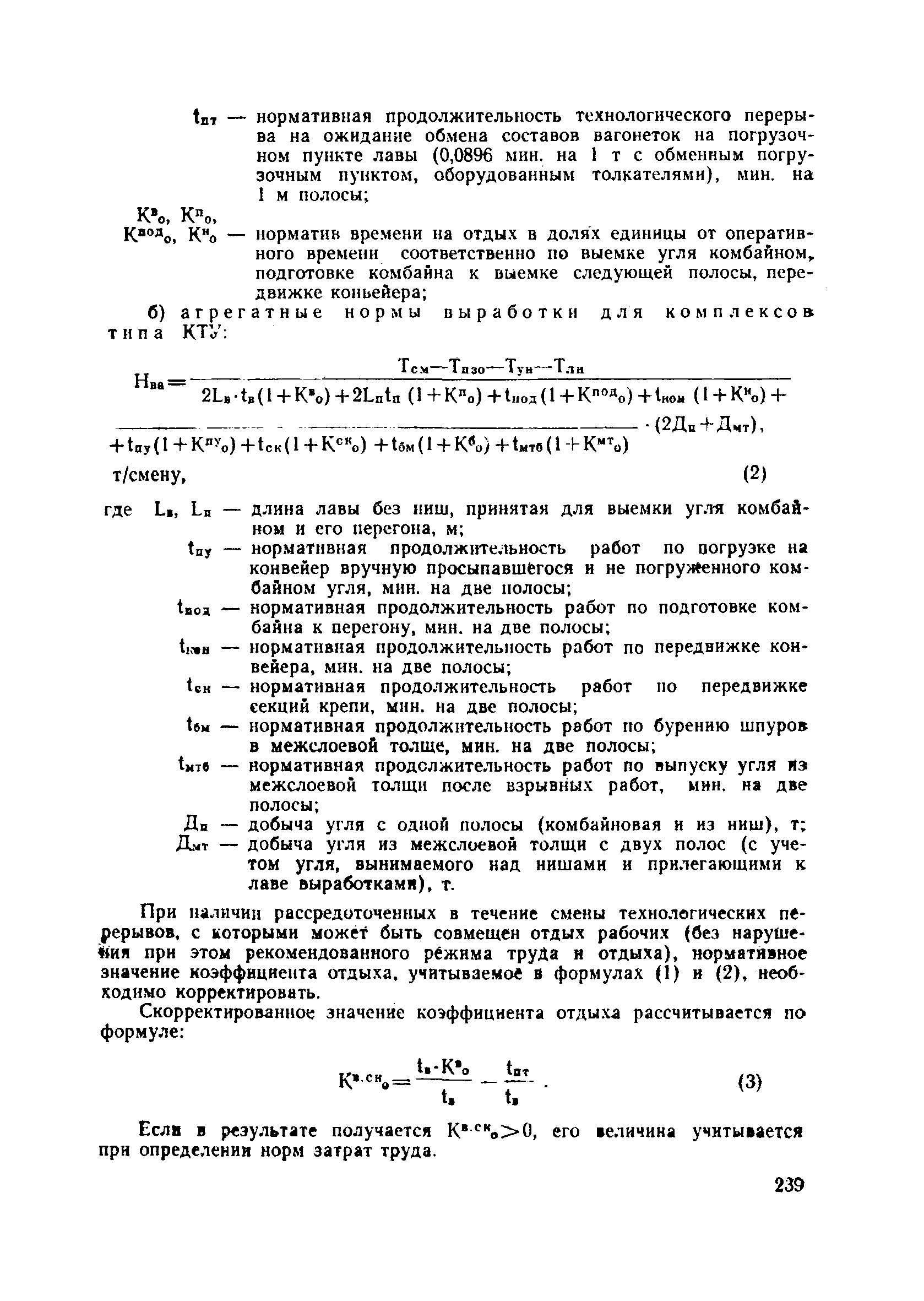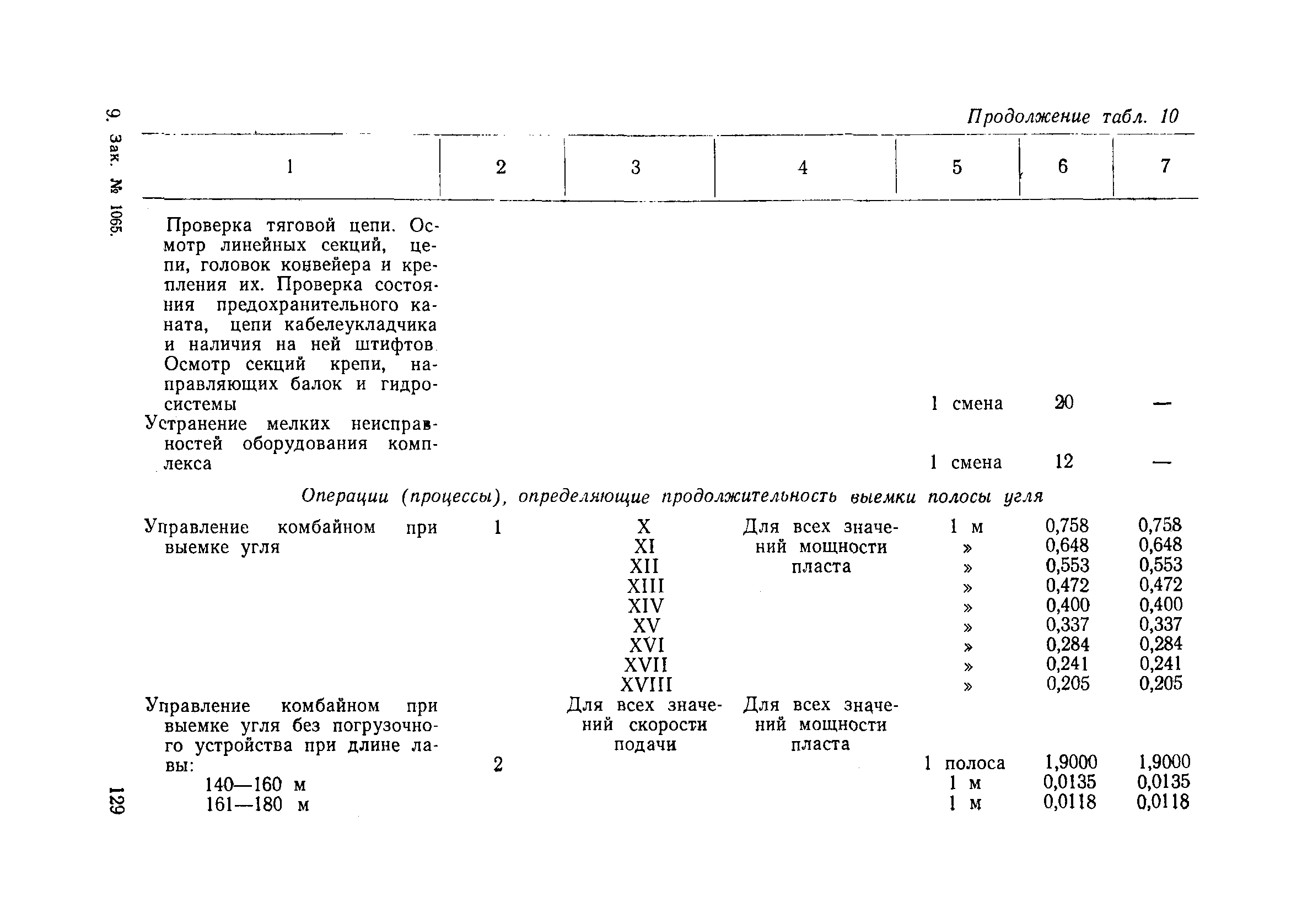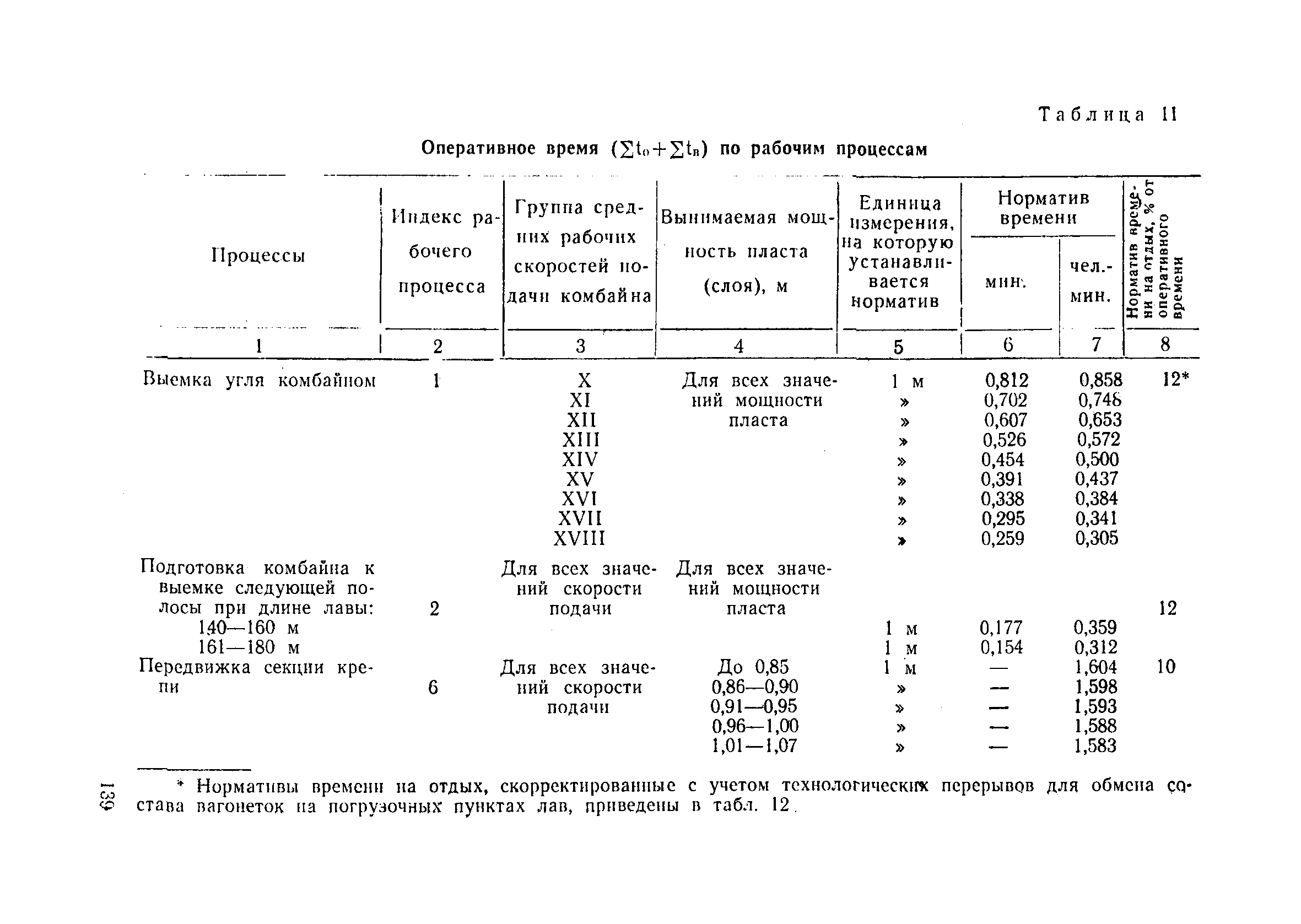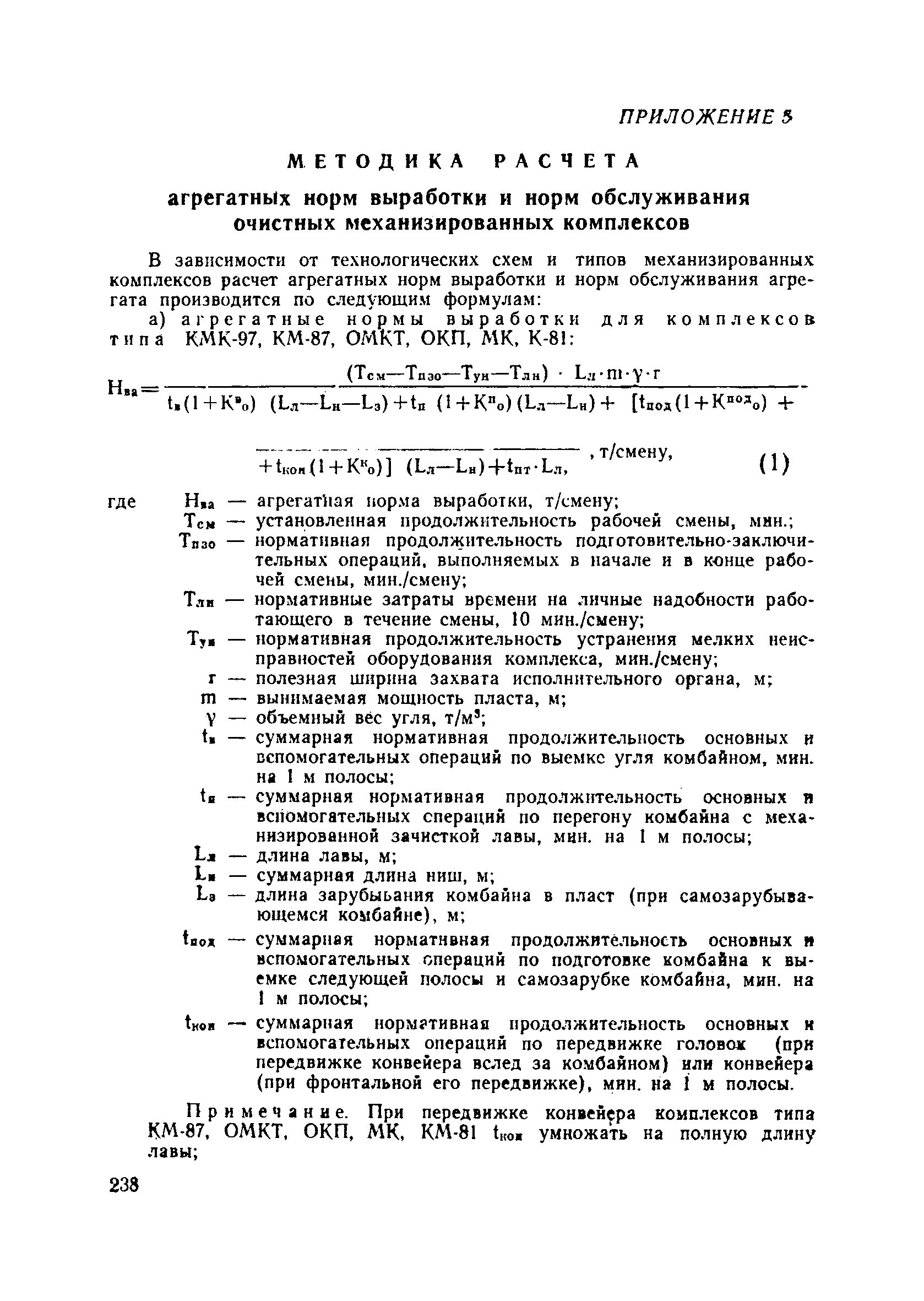 Типовые агрегатные нормы на выемку угля механизированными комплексами в очистных забоях угольных шахт| Статус: | справочные материалы, мп, тпр | | Название рус.: | Типовые агрегатные нормы на выемку угля механизированными комплексами в очистных забоях угольных шахт | | Дата добавления в базу: | 01.02.2020 | | Дата актуализации: | 01.01.2021 | | Область применения: | Агрегатные нормы сборника являются типовыми отраслевыми и предназначены в качестве основы для разработки единых бассейновых и местных норм на шахтах, имеющих фактическую производительность труда в лавах, оборудованных механизированными комплексами, выше единых бассейновых норм. | | Оглавление: | Общая часть Техническая часть Нормативная часть Глава I. Агрегатные нормы выработки и нормы обслуживания агрегата Глава II Организация выполнения операции по приемам Глава III Расчетные нормативы времени по операциям и рабочим процессам, учтенные агрегатными нормами Приложение 1 Сравнение типовых агрегатных норм с действующими нормами и достигнутой производительностью Приложение 2 Методические указания по расчету поправочных коэффициентов к типовым нормам выработки, учитывающих технологические перерывы на заряжание, взрывание шнуров и проветривание очистных забоев Приложение 3 Расчет продолжительности технологических перерывов на заряжание, взрывание шпуров в нишах, межслоевой толще и проветривание очистных забоев при выемке угля механизированными комплексами (угол падения пласта до 18 градусов) для определения поправочных коэффициентов к типовым агрегатным нормам выработки Приложение 4 Расчет поправочных коэффициентов к агрегатным нормам выработки на выемку угля механизированными комплексами типа КМ-871, учитывающих технологические перерывы на заряжание, взрывание шпуров в нишах и проветривание лавы Приложение 5 Методика расчета агрегатных норм выработки и норм обслуживания очистных механизированных комплексов | | Утверждён: | Министерство угольной промышленности СССР (USSR Ministry of the Coal Industry )