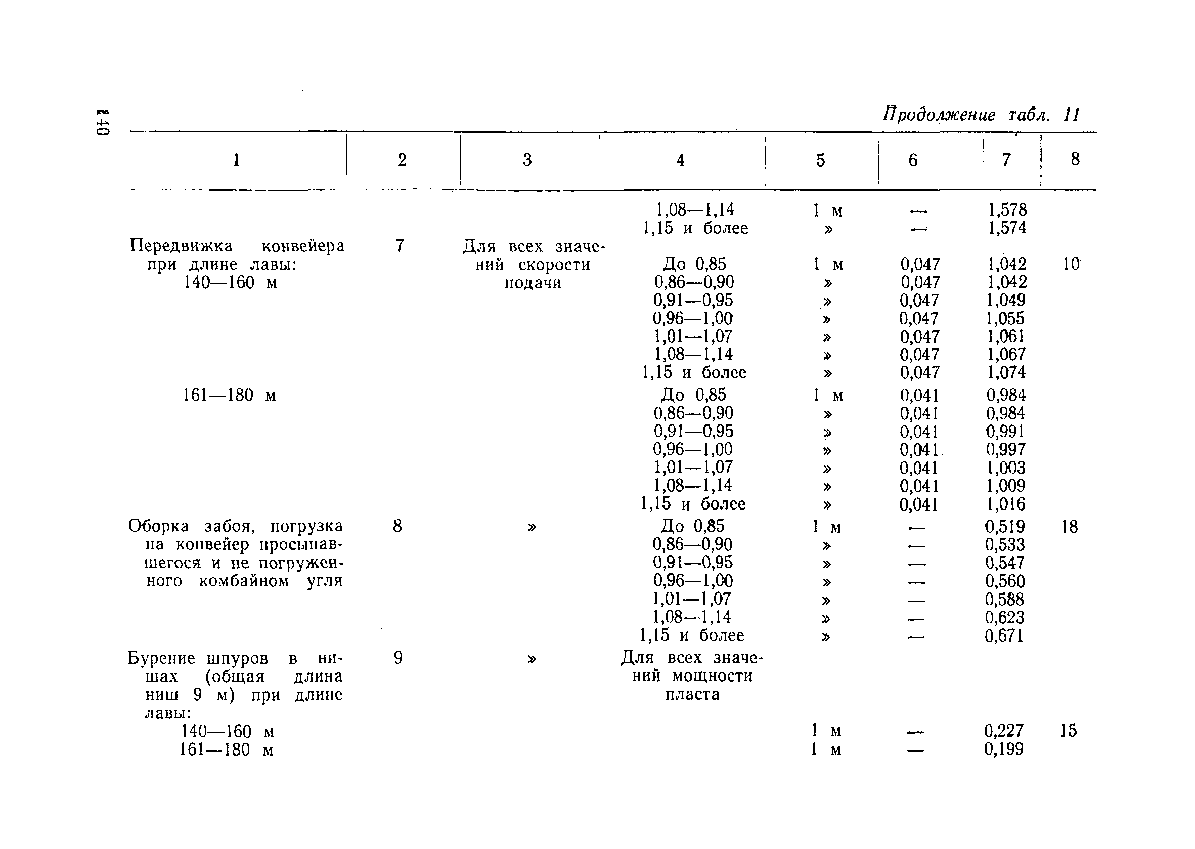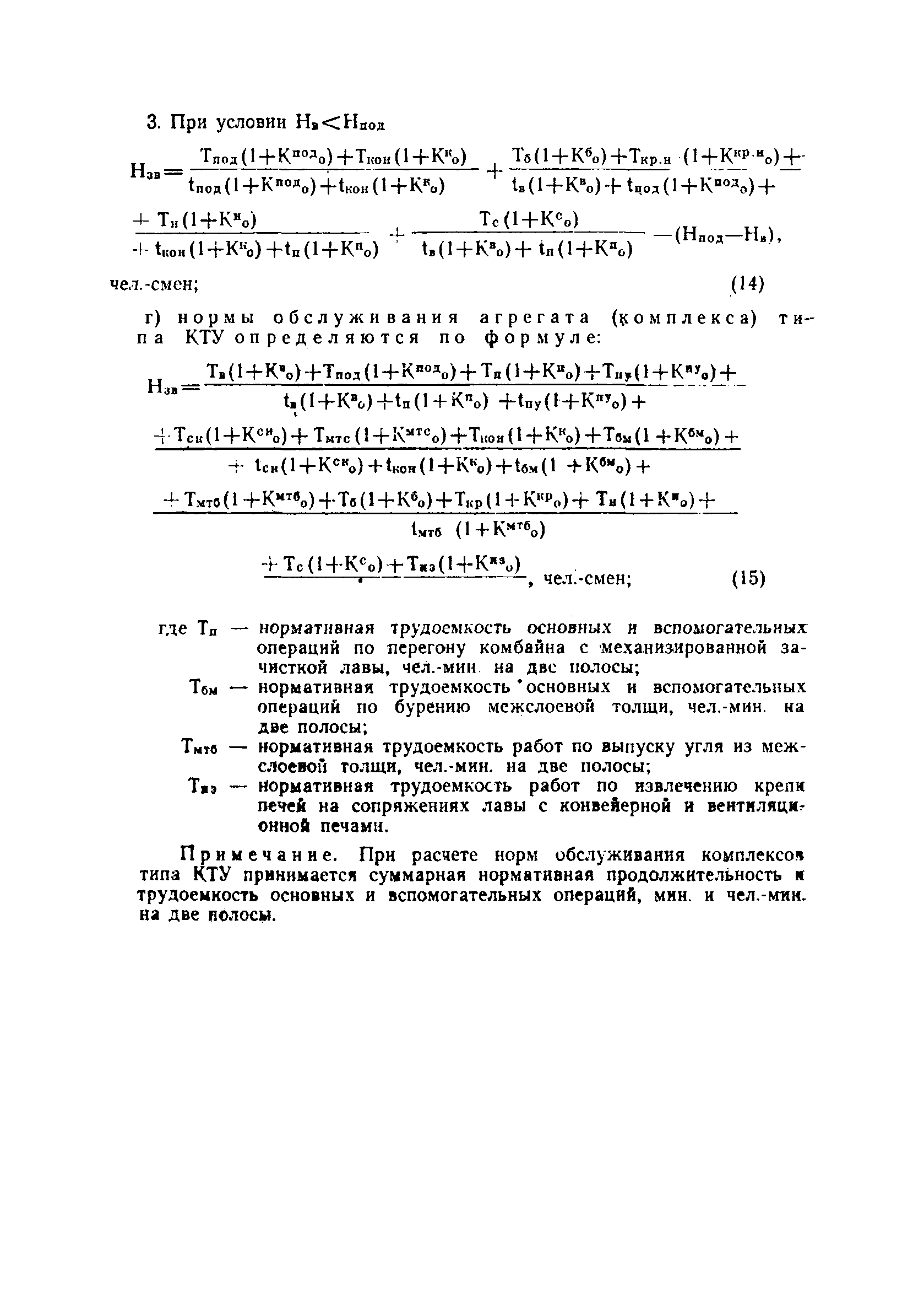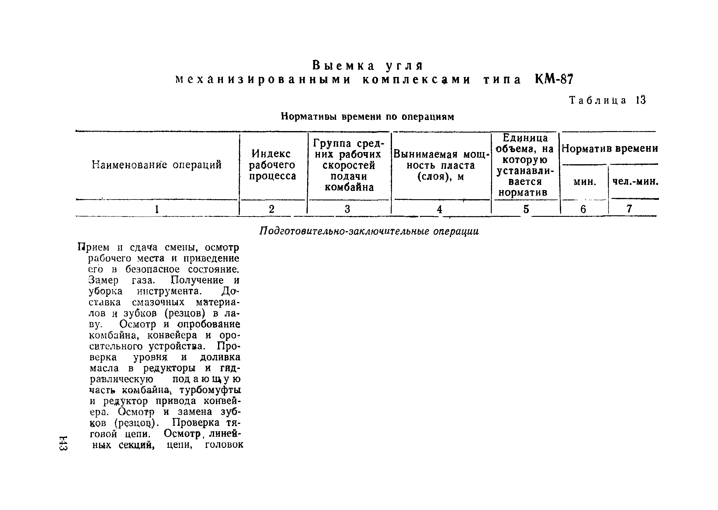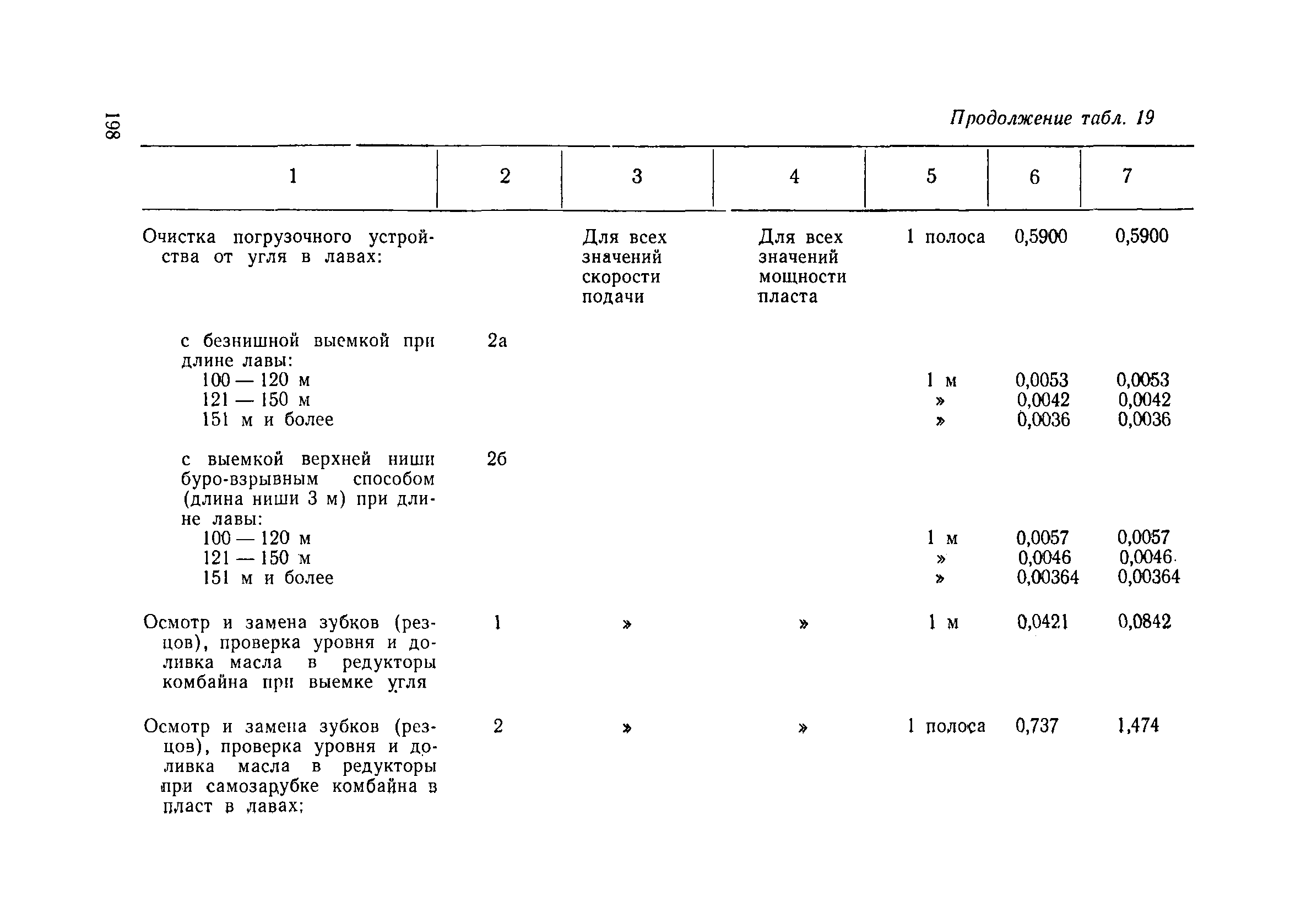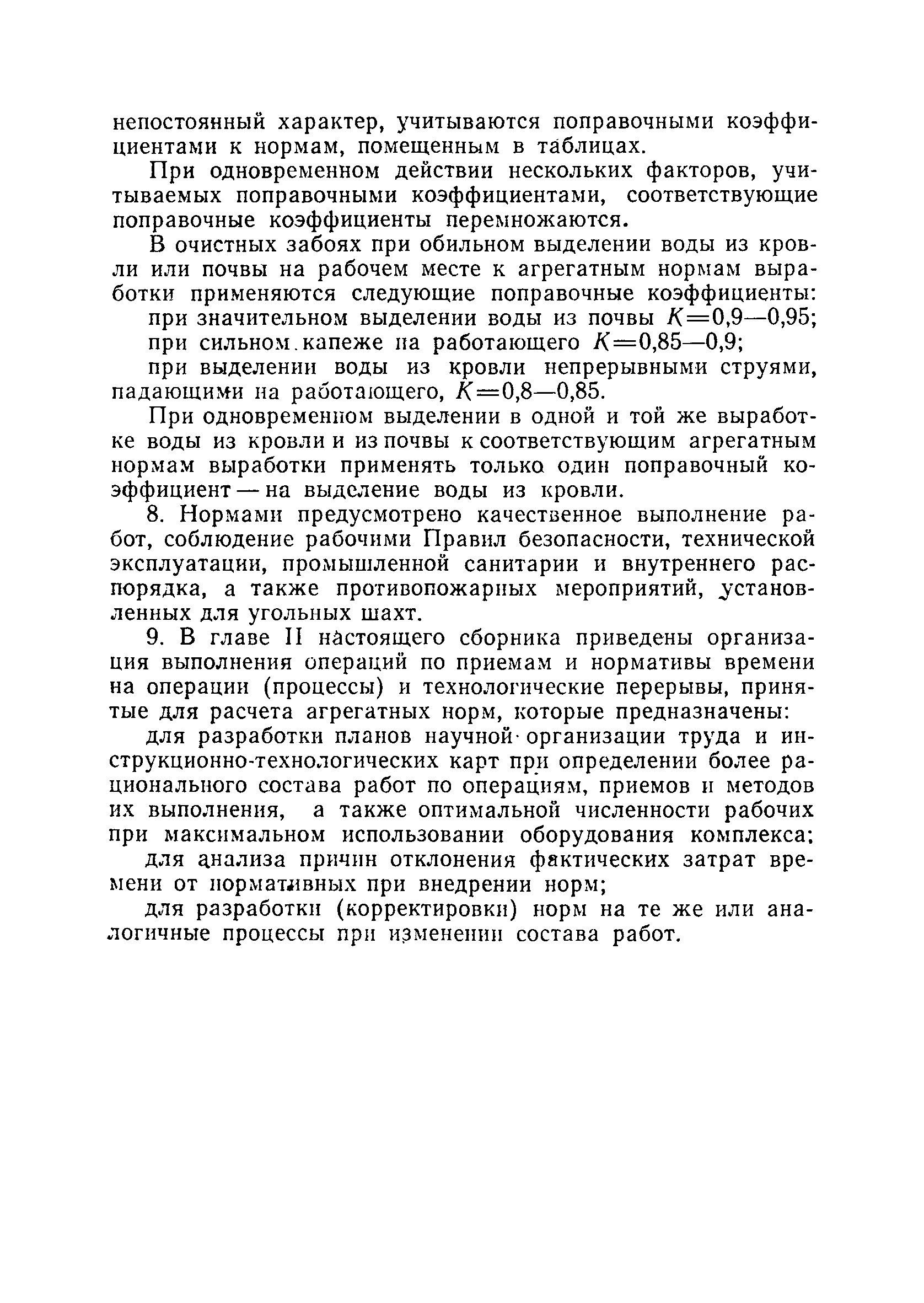 Типовые агрегатные нормы на выемку угля механизированными комплексами в очистных забоях угольных шахт| Статус: | справочные материалы, мп, тпр | | Название рус.: | Типовые агрегатные нормы на выемку угля механизированными комплексами в очистных забоях угольных шахт | | Дата добавления в базу: | 01.02.2020 | | Дата актуализации: | 01.01.2021 | | Область применения: | Агрегатные нормы сборника являются типовыми отраслевыми и предназначены в качестве основы для разработки единых бассейновых и местных норм на шахтах, имеющих фактическую производительность труда в лавах, оборудованных механизированными комплексами, выше единых бассейновых норм. | | Оглавление: | Общая часть Техническая часть Нормативная часть Глава I. Агрегатные нормы выработки и нормы обслуживания агрегата Глава II Организация выполнения операции по приемам Глава III Расчетные нормативы времени по операциям и рабочим процессам, учтенные агрегатными нормами Приложение 1 Сравнение типовых агрегатных норм с действующими нормами и достигнутой производительностью Приложение 2 Методические указания по расчету поправочных коэффициентов к типовым нормам выработки, учитывающих технологические перерывы на заряжание, взрывание шнуров и проветривание очистных забоев Приложение 3 Расчет продолжительности технологических перерывов на заряжание, взрывание шпуров в нишах, межслоевой толще и проветривание очистных забоев при выемке угля механизированными комплексами (угол падения пласта до 18 градусов) для определения поправочных коэффициентов к типовым агрегатным нормам выработки Приложение 4 Расчет поправочных коэффициентов к агрегатным нормам выработки на выемку угля механизированными комплексами типа КМ-871, учитывающих технологические перерывы на заряжание, взрывание шпуров в нишах и проветривание лавы Приложение 5 Методика расчета агрегатных норм выработки и норм обслуживания очистных механизированных комплексов | | Утверждён: | Министерство угольной промышленности СССР (USSR Ministry of the Coal Industry )