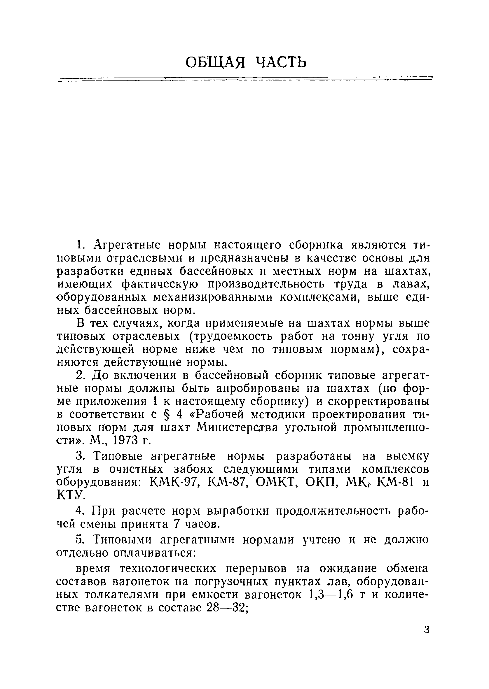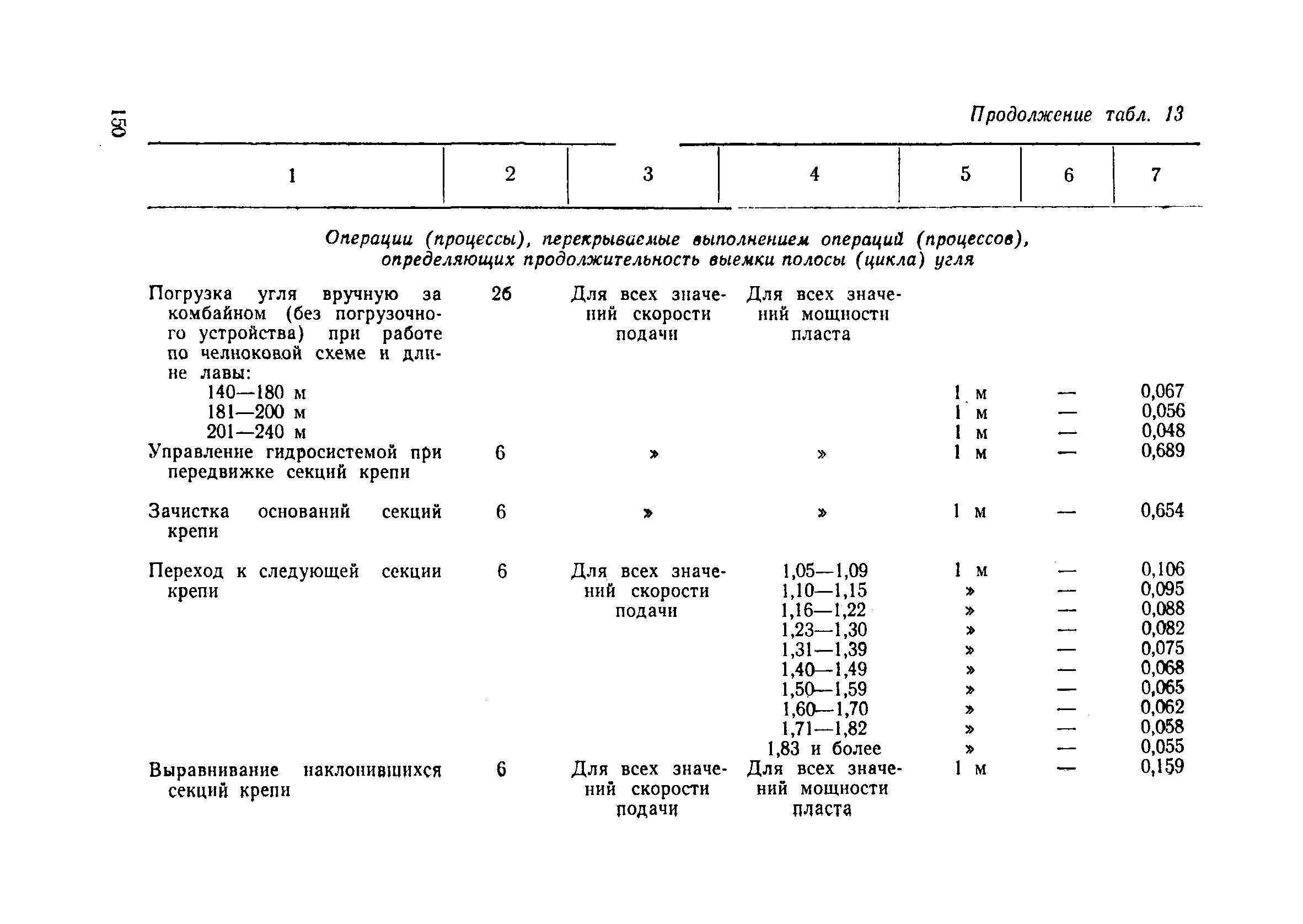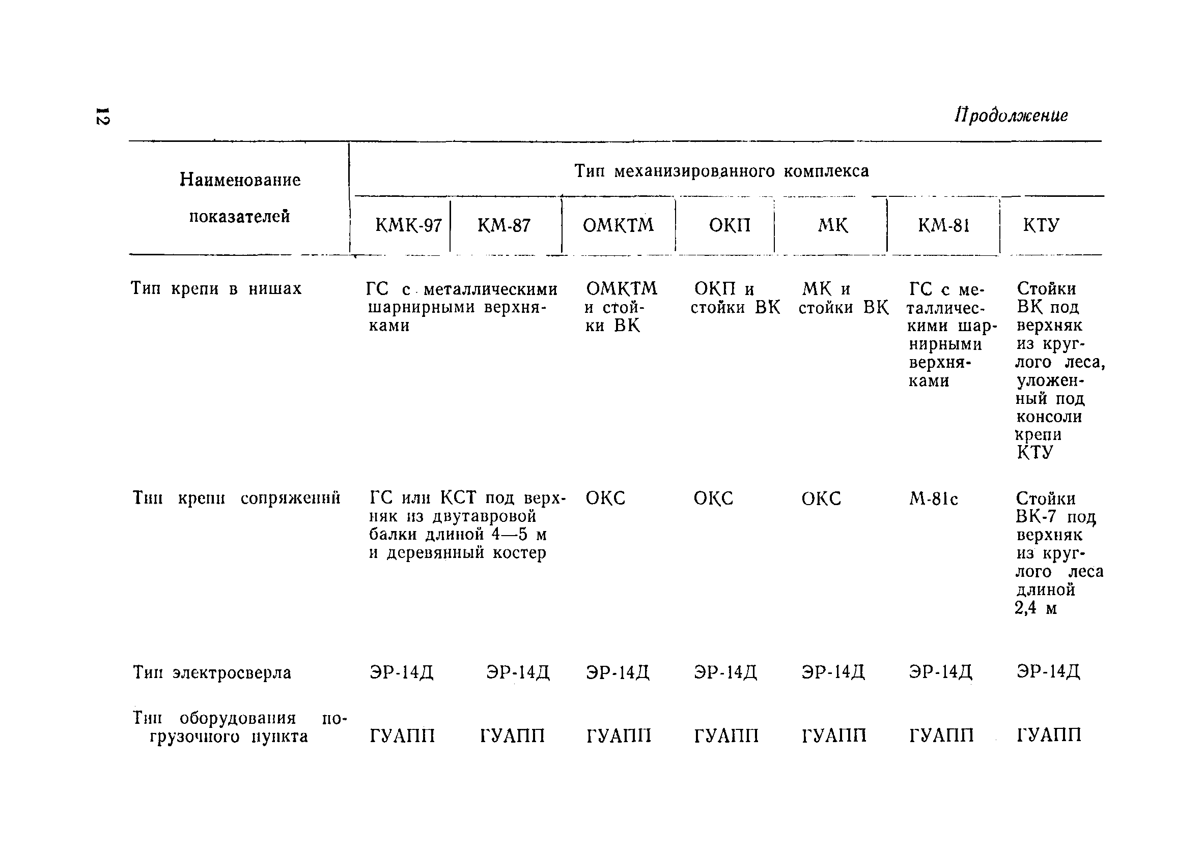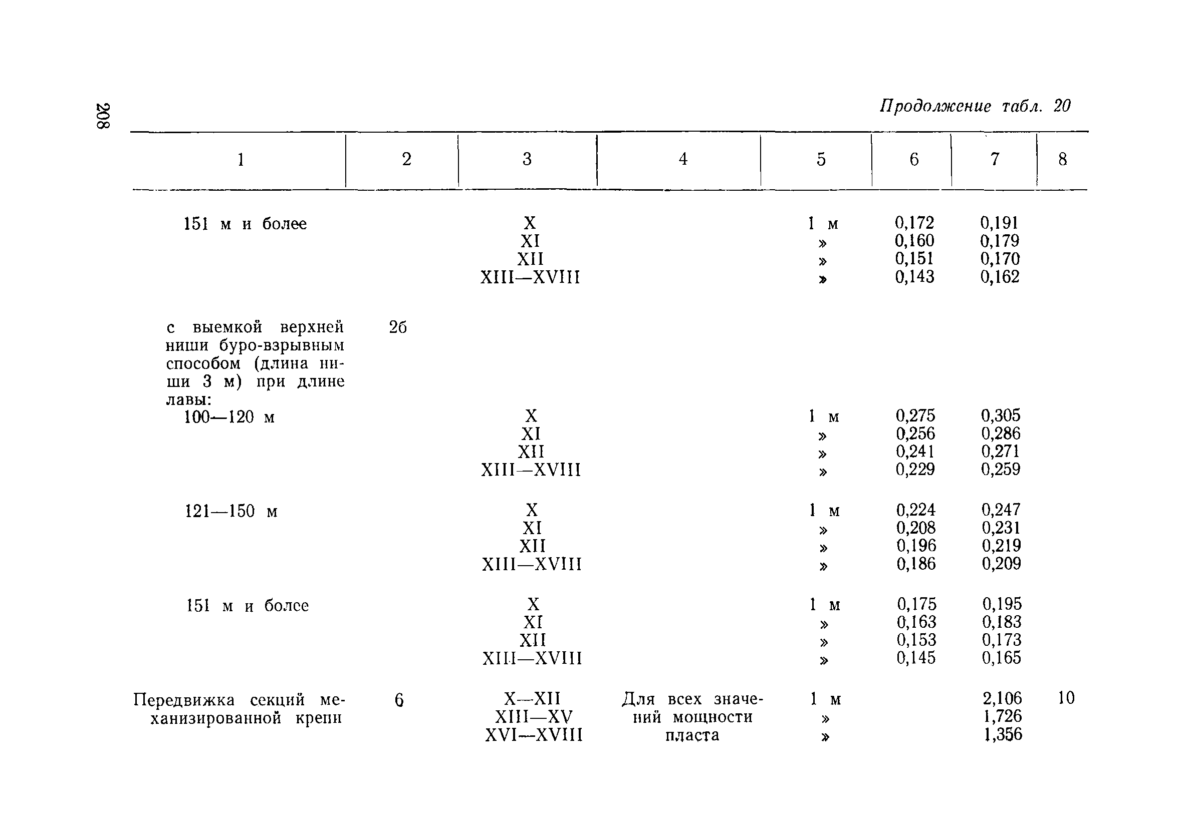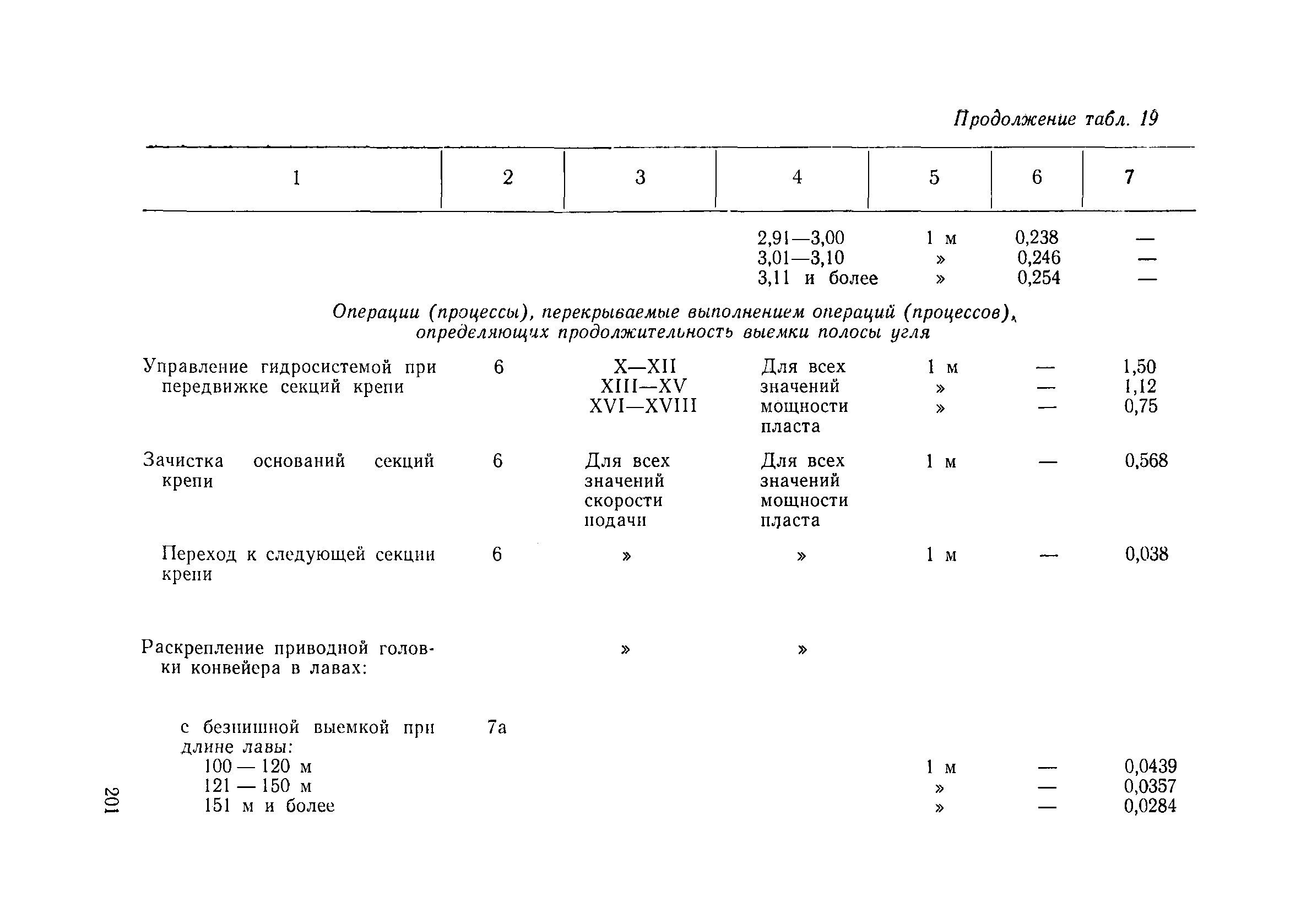 Типовые агрегатные нормы на выемку угля механизированными комплексами в очистных забоях угольных шахт| Статус: | справочные материалы, мп, тпр | | Название рус.: | Типовые агрегатные нормы на выемку угля механизированными комплексами в очистных забоях угольных шахт | | Дата добавления в базу: | 01.02.2020 | | Дата актуализации: | 01.01.2021 | | Область применения: | Агрегатные нормы сборника являются типовыми отраслевыми и предназначены в качестве основы для разработки единых бассейновых и местных норм на шахтах, имеющих фактическую производительность труда в лавах, оборудованных механизированными комплексами, выше единых бассейновых норм. | | Оглавление: | Общая часть Техническая часть Нормативная часть Глава I. Агрегатные нормы выработки и нормы обслуживания агрегата Глава II Организация выполнения операции по приемам Глава III Расчетные нормативы времени по операциям и рабочим процессам, учтенные агрегатными нормами Приложение 1 Сравнение типовых агрегатных норм с действующими нормами и достигнутой производительностью Приложение 2 Методические указания по расчету поправочных коэффициентов к типовым нормам выработки, учитывающих технологические перерывы на заряжание, взрывание шнуров и проветривание очистных забоев Приложение 3 Расчет продолжительности технологических перерывов на заряжание, взрывание шпуров в нишах, межслоевой толще и проветривание очистных забоев при выемке угля механизированными комплексами (угол падения пласта до 18 градусов) для определения поправочных коэффициентов к типовым агрегатным нормам выработки Приложение 4 Расчет поправочных коэффициентов к агрегатным нормам выработки на выемку угля механизированными комплексами типа КМ-871, учитывающих технологические перерывы на заряжание, взрывание шпуров в нишах и проветривание лавы Приложение 5 Методика расчета агрегатных норм выработки и норм обслуживания очистных механизированных комплексов | | Утверждён: | Министерство угольной промышленности СССР (USSR Ministry of the Coal Industry )