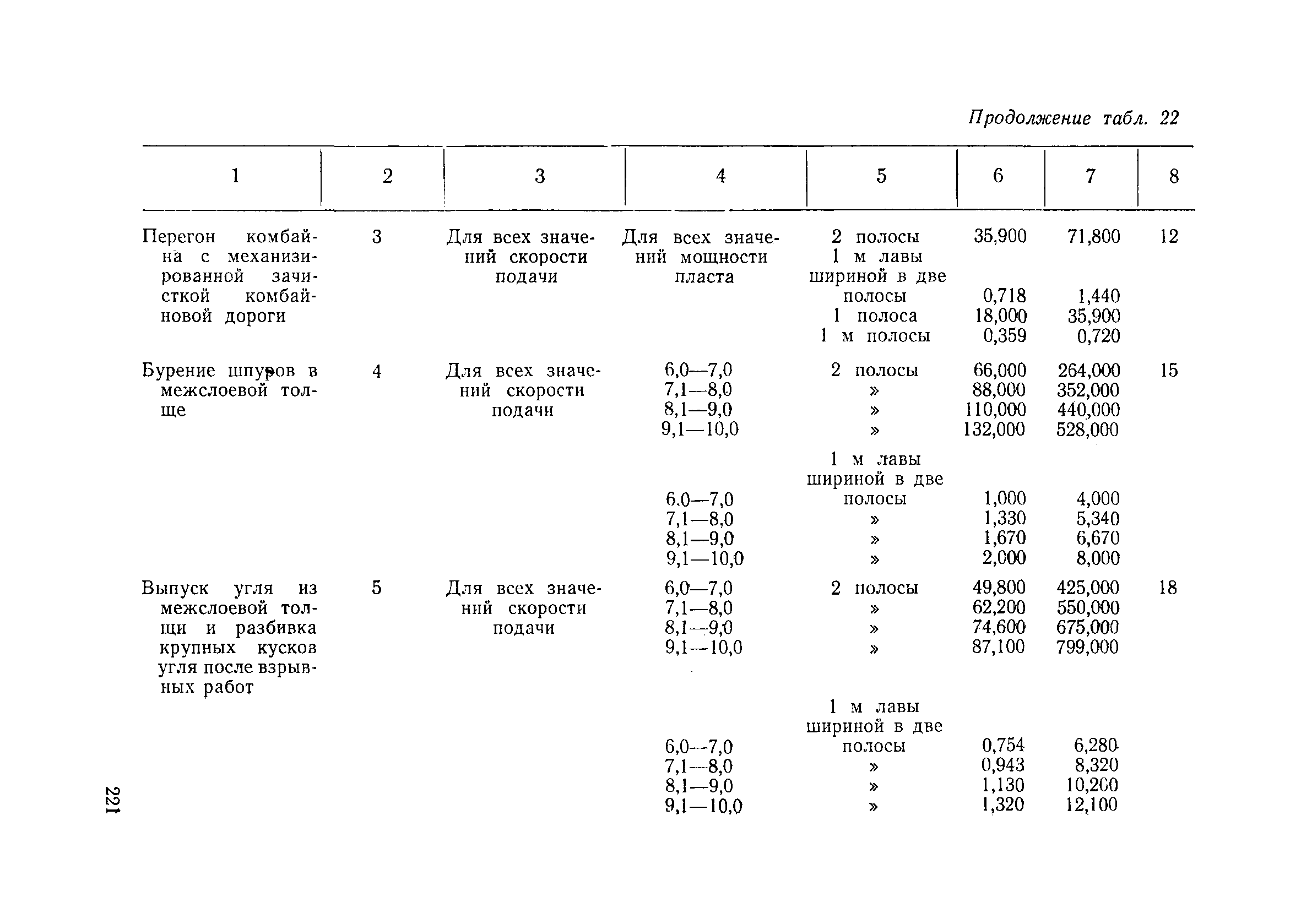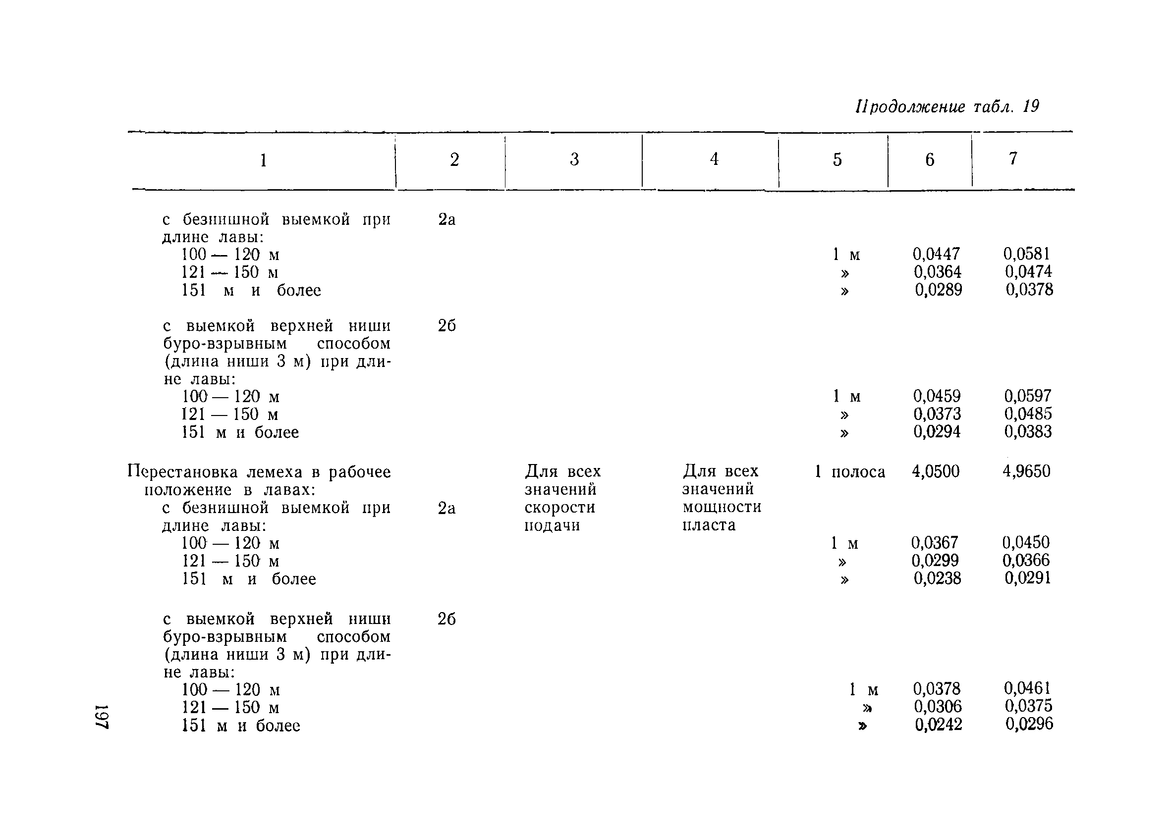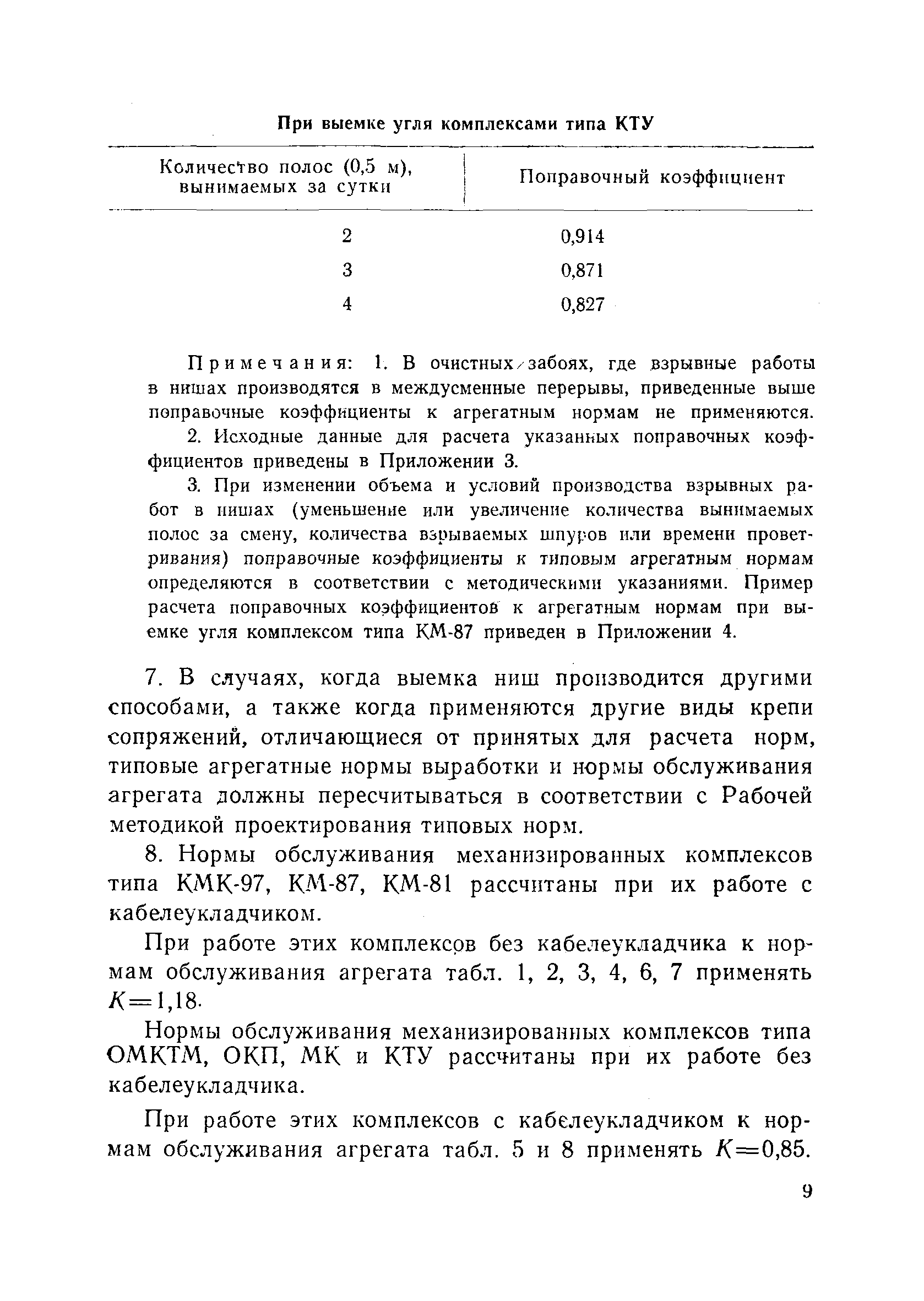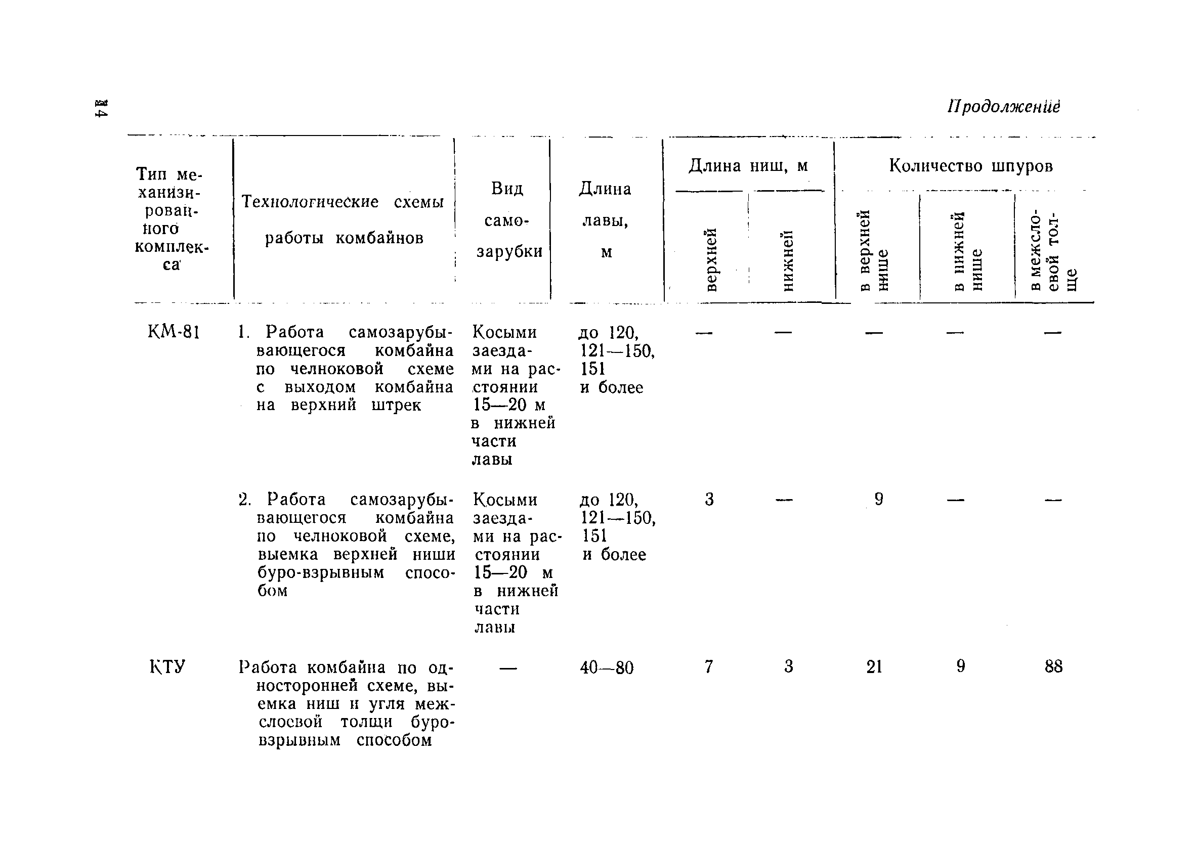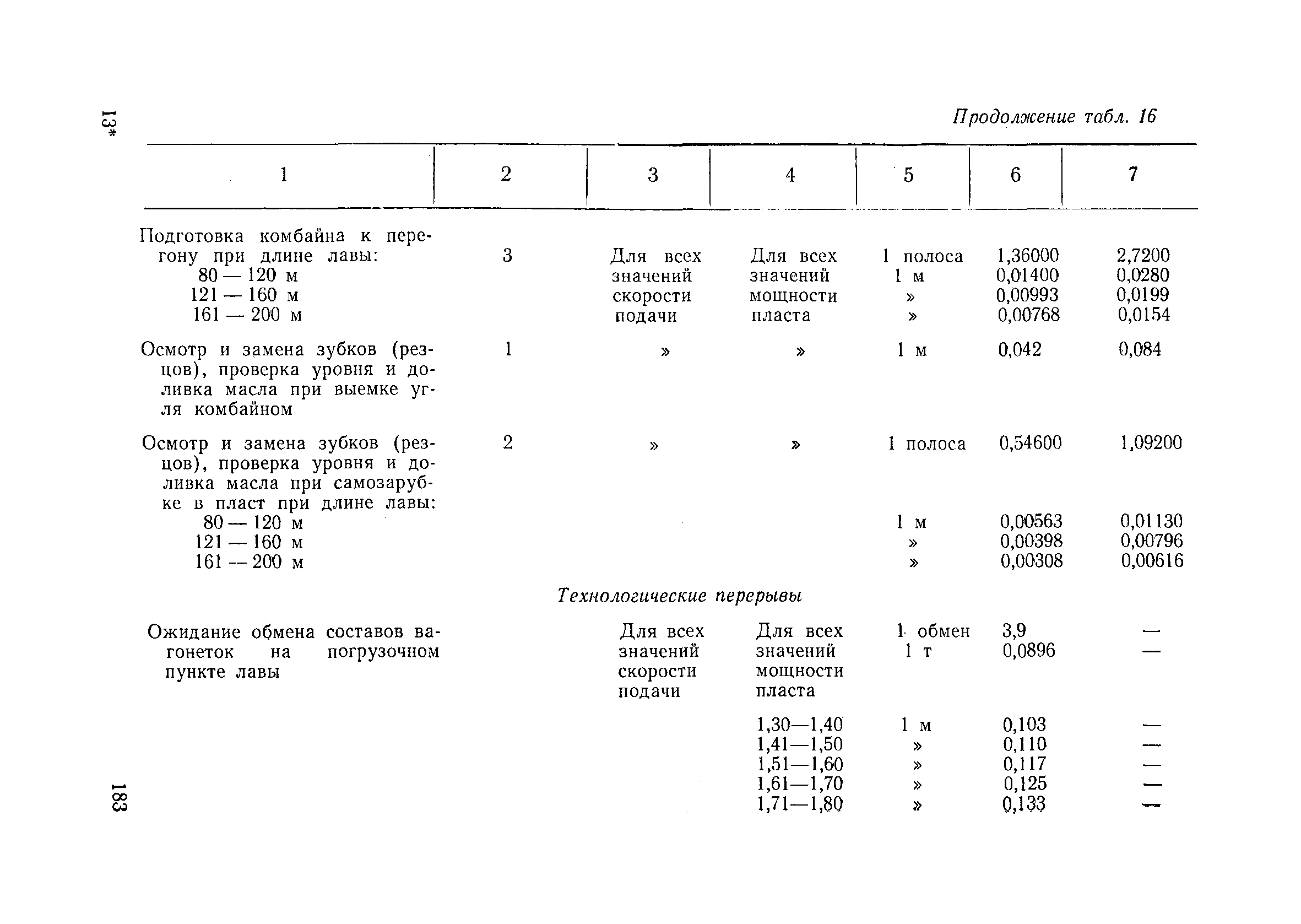 Типовые агрегатные нормы на выемку угля механизированными комплексами в очистных забоях угольных шахт| Статус: | справочные материалы, мп, тпр | | Название рус.: | Типовые агрегатные нормы на выемку угля механизированными комплексами в очистных забоях угольных шахт | | Дата добавления в базу: | 01.02.2020 | | Дата актуализации: | 01.01.2021 | | Область применения: | Агрегатные нормы сборника являются типовыми отраслевыми и предназначены в качестве основы для разработки единых бассейновых и местных норм на шахтах, имеющих фактическую производительность труда в лавах, оборудованных механизированными комплексами, выше единых бассейновых норм. | | Оглавление: | Общая часть Техническая часть Нормативная часть Глава I. Агрегатные нормы выработки и нормы обслуживания агрегата Глава II Организация выполнения операции по приемам Глава III Расчетные нормативы времени по операциям и рабочим процессам, учтенные агрегатными нормами Приложение 1 Сравнение типовых агрегатных норм с действующими нормами и достигнутой производительностью Приложение 2 Методические указания по расчету поправочных коэффициентов к типовым нормам выработки, учитывающих технологические перерывы на заряжание, взрывание шнуров и проветривание очистных забоев Приложение 3 Расчет продолжительности технологических перерывов на заряжание, взрывание шпуров в нишах, межслоевой толще и проветривание очистных забоев при выемке угля механизированными комплексами (угол падения пласта до 18 градусов) для определения поправочных коэффициентов к типовым агрегатным нормам выработки Приложение 4 Расчет поправочных коэффициентов к агрегатным нормам выработки на выемку угля механизированными комплексами типа КМ-871, учитывающих технологические перерывы на заряжание, взрывание шпуров в нишах и проветривание лавы Приложение 5 Методика расчета агрегатных норм выработки и норм обслуживания очистных механизированных комплексов | | Утверждён: | Министерство угольной промышленности СССР (USSR Ministry of the Coal Industry )