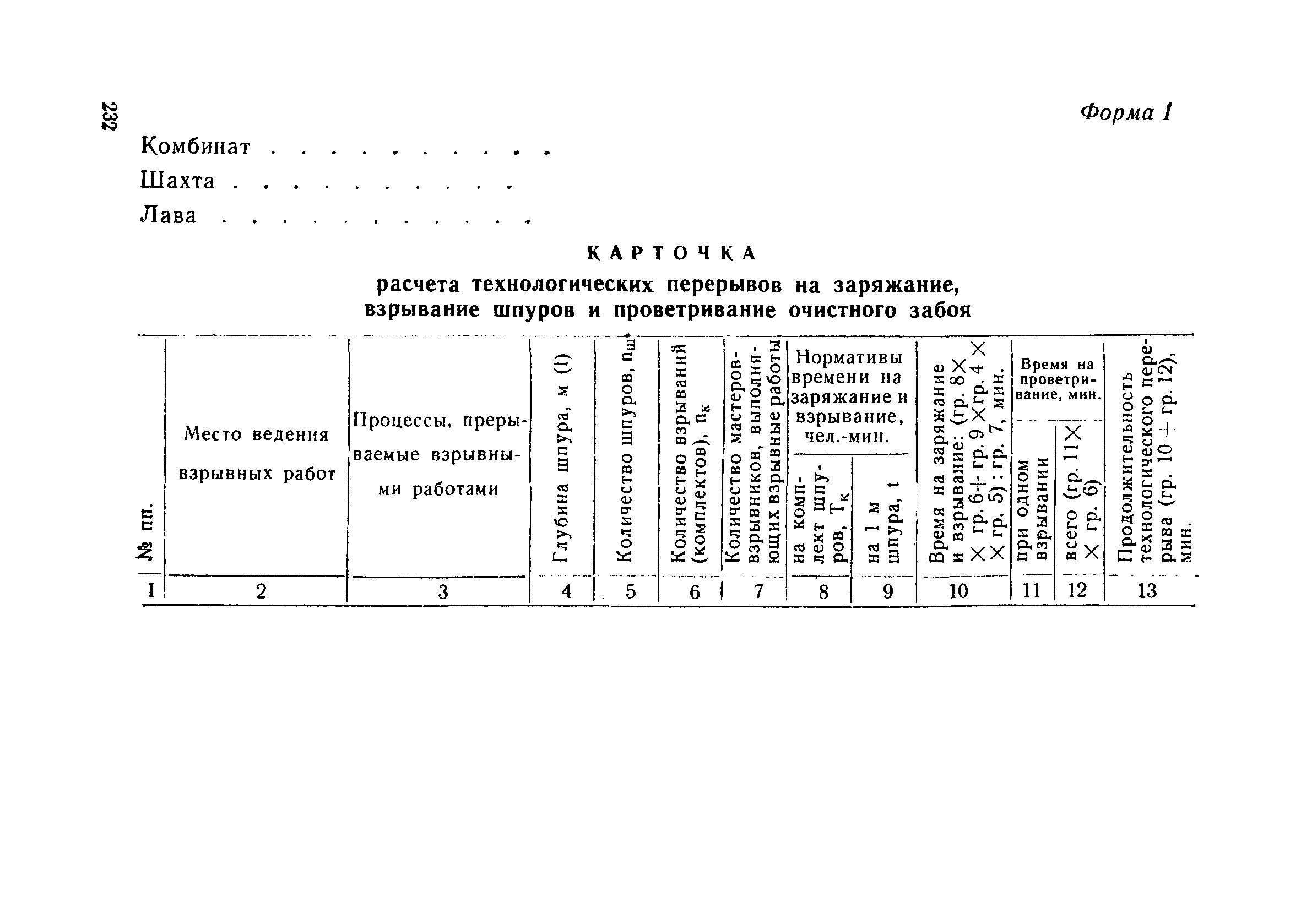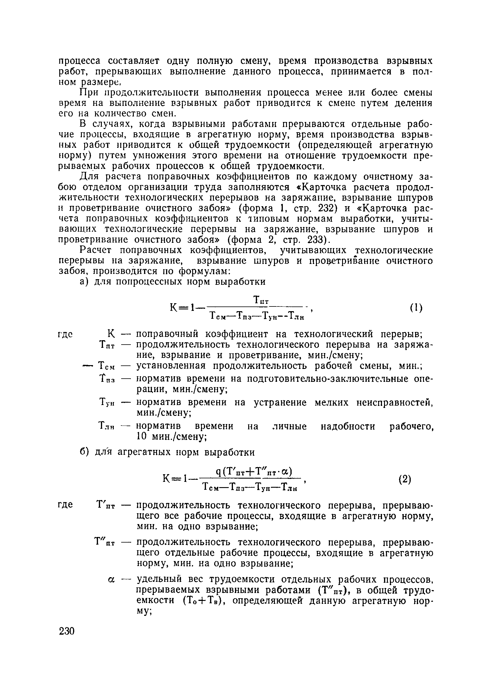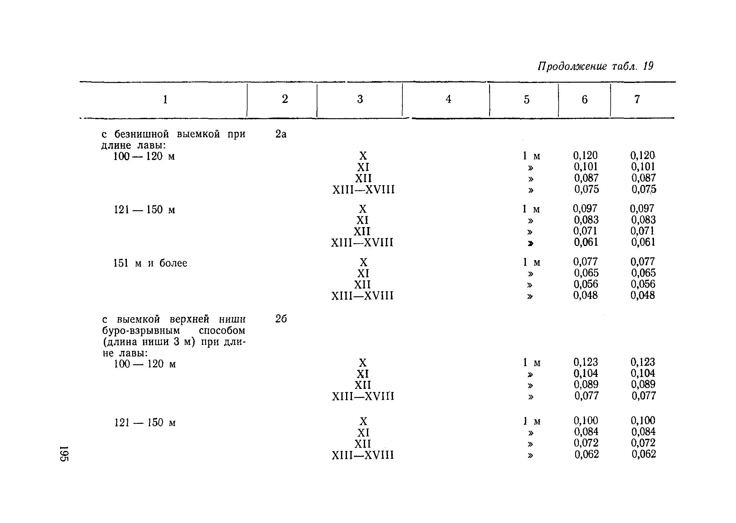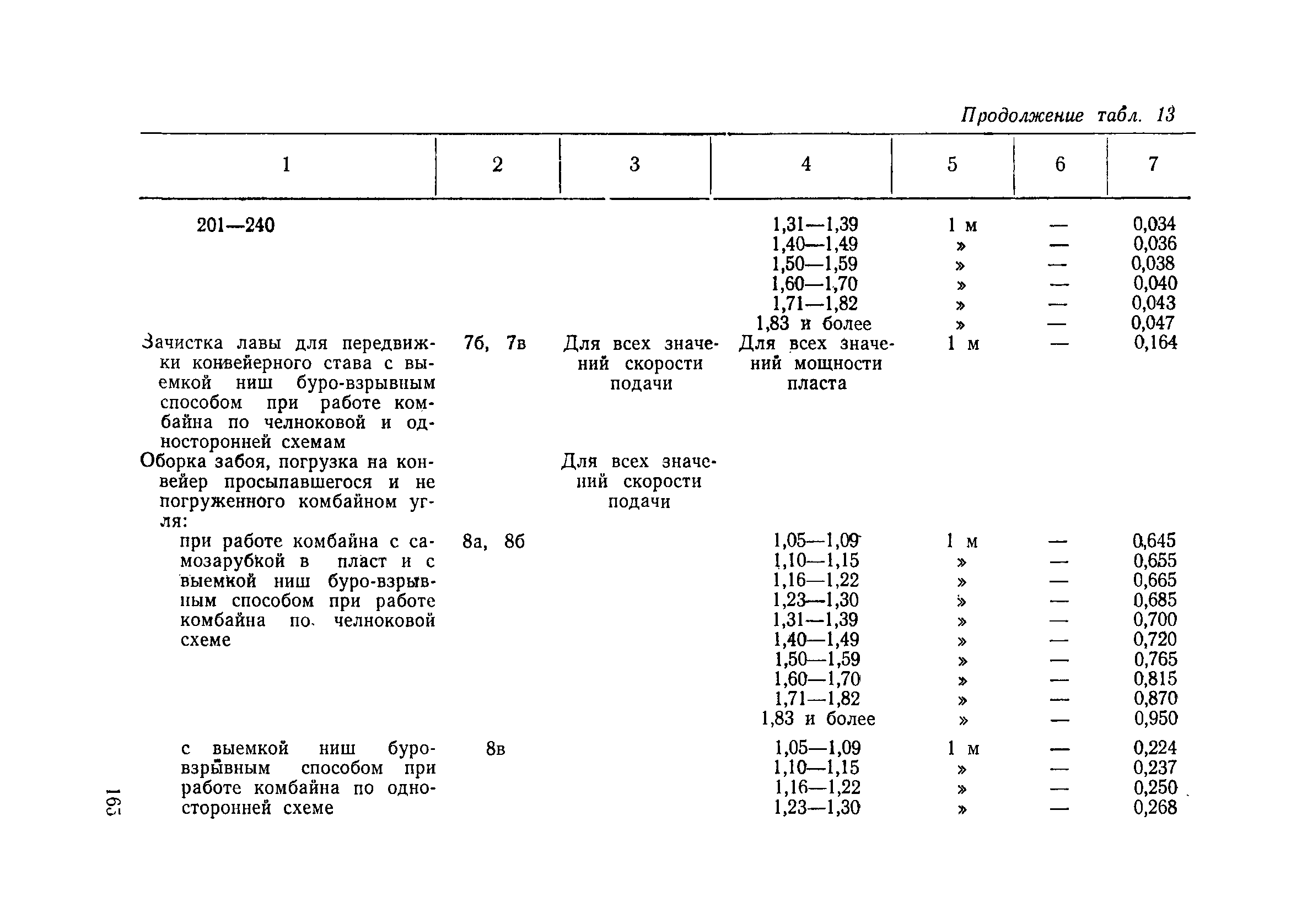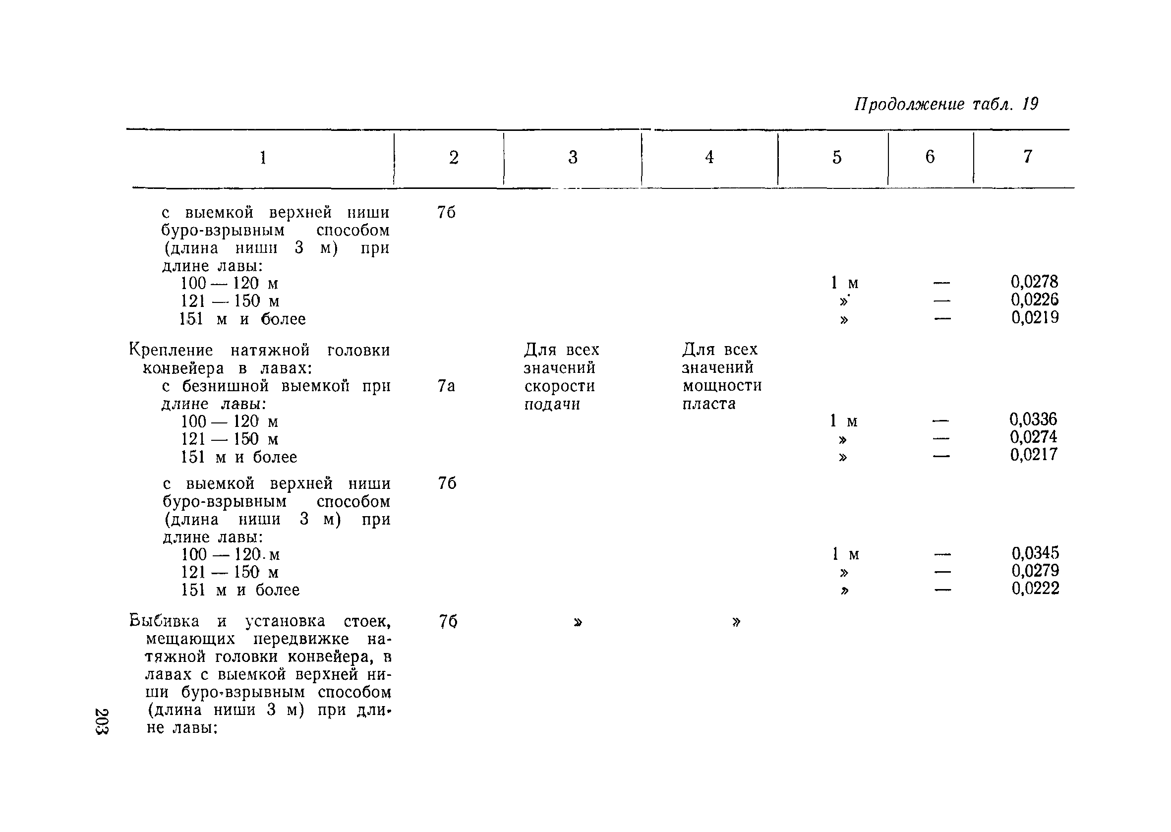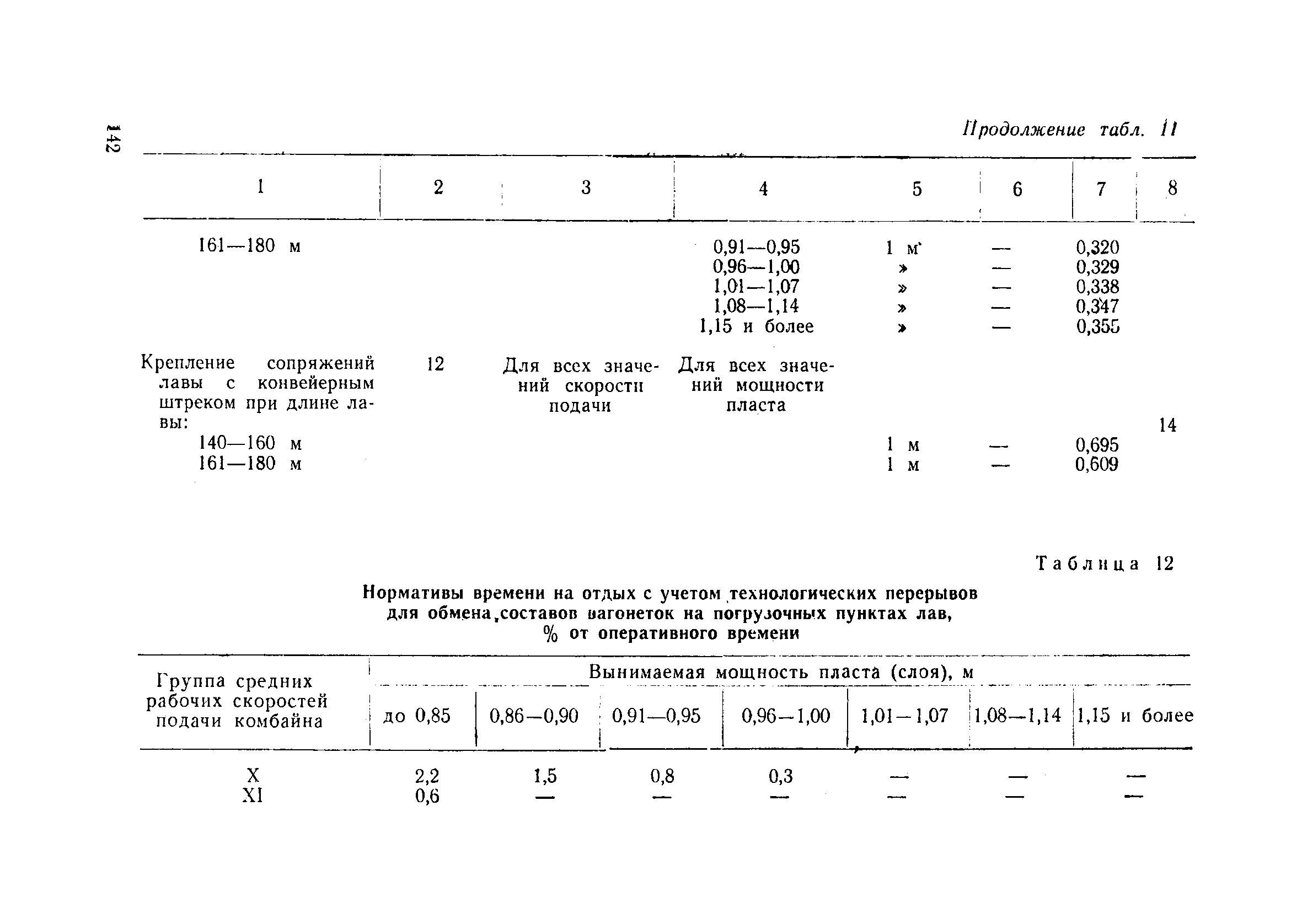 Типовые агрегатные нормы на выемку угля механизированными комплексами в очистных забоях угольных шахт| Статус: | справочные материалы, мп, тпр | | Название рус.: | Типовые агрегатные нормы на выемку угля механизированными комплексами в очистных забоях угольных шахт | | Дата добавления в базу: | 01.02.2020 | | Дата актуализации: | 01.01.2021 | | Область применения: | Агрегатные нормы сборника являются типовыми отраслевыми и предназначены в качестве основы для разработки единых бассейновых и местных норм на шахтах, имеющих фактическую производительность труда в лавах, оборудованных механизированными комплексами, выше единых бассейновых норм. | | Оглавление: | Общая часть Техническая часть Нормативная часть Глава I. Агрегатные нормы выработки и нормы обслуживания агрегата Глава II Организация выполнения операции по приемам Глава III Расчетные нормативы времени по операциям и рабочим процессам, учтенные агрегатными нормами Приложение 1 Сравнение типовых агрегатных норм с действующими нормами и достигнутой производительностью Приложение 2 Методические указания по расчету поправочных коэффициентов к типовым нормам выработки, учитывающих технологические перерывы на заряжание, взрывание шнуров и проветривание очистных забоев Приложение 3 Расчет продолжительности технологических перерывов на заряжание, взрывание шпуров в нишах, межслоевой толще и проветривание очистных забоев при выемке угля механизированными комплексами (угол падения пласта до 18 градусов) для определения поправочных коэффициентов к типовым агрегатным нормам выработки Приложение 4 Расчет поправочных коэффициентов к агрегатным нормам выработки на выемку угля механизированными комплексами типа КМ-871, учитывающих технологические перерывы на заряжание, взрывание шпуров в нишах и проветривание лавы Приложение 5 Методика расчета агрегатных норм выработки и норм обслуживания очистных механизированных комплексов | | Утверждён: | Министерство угольной промышленности СССР (USSR Ministry of the Coal Industry )