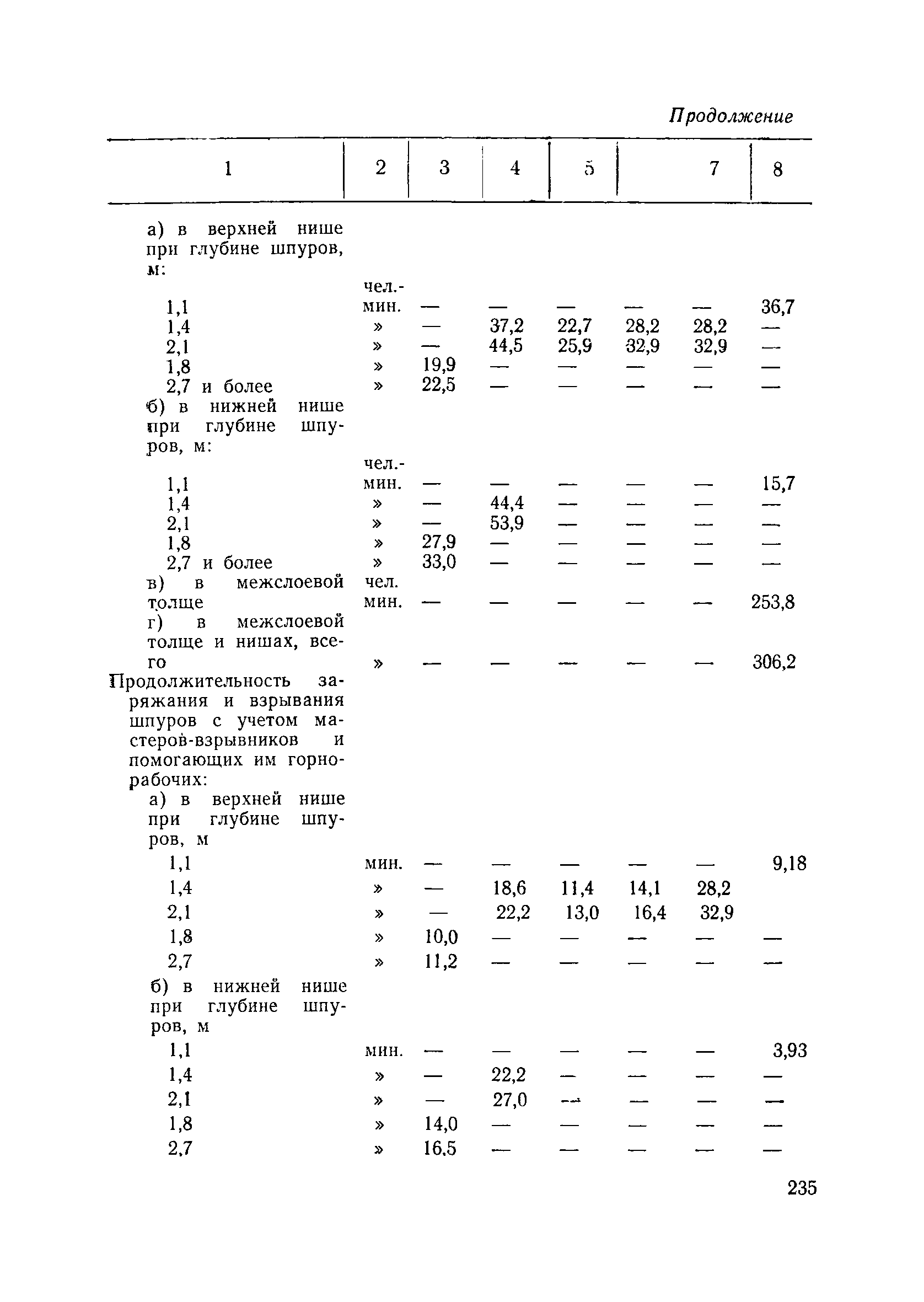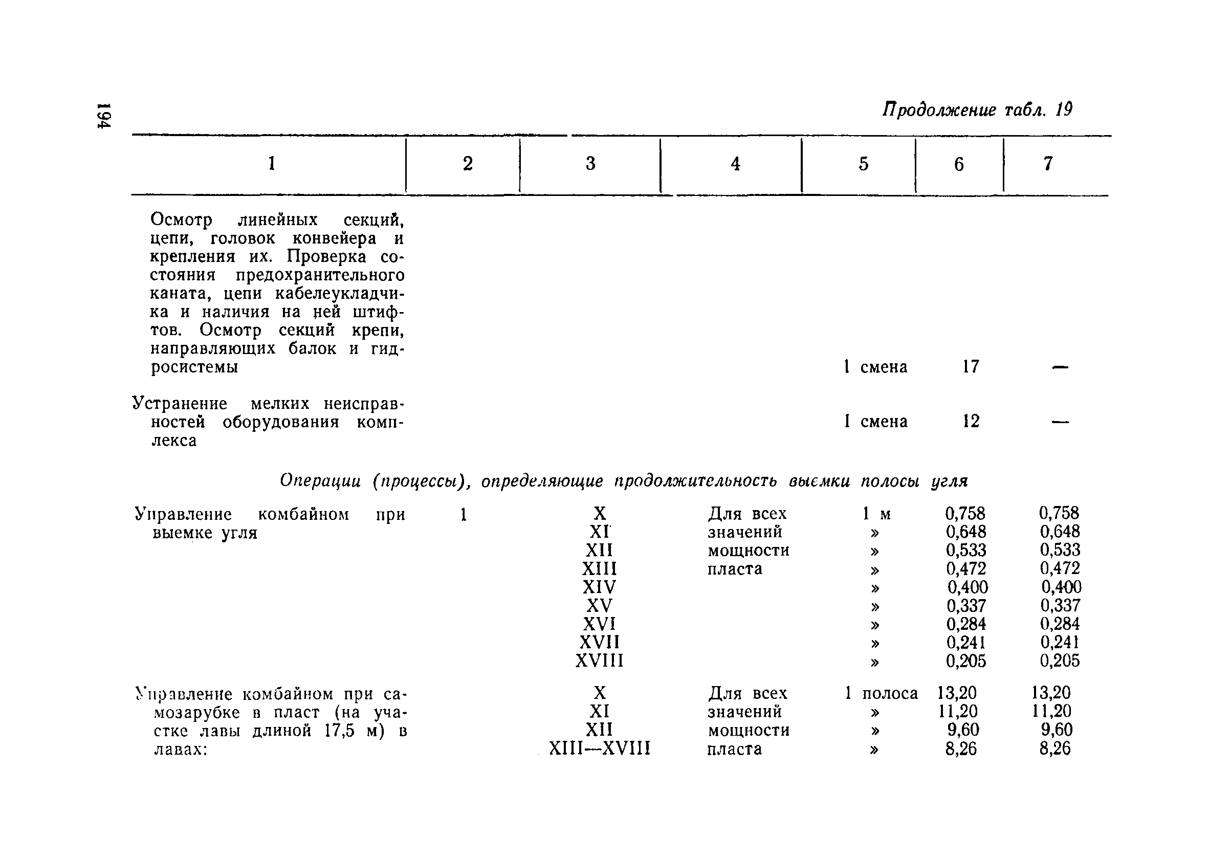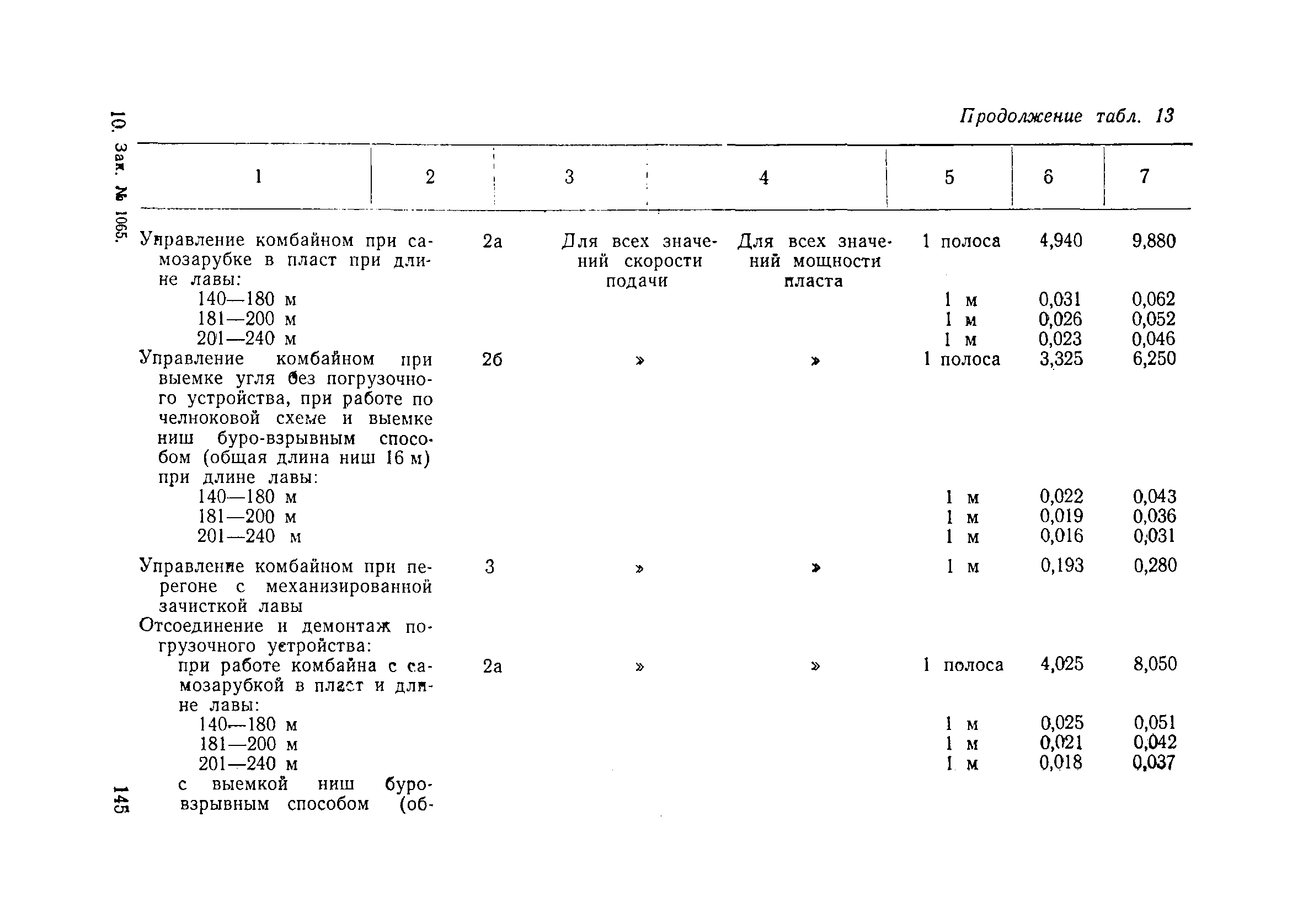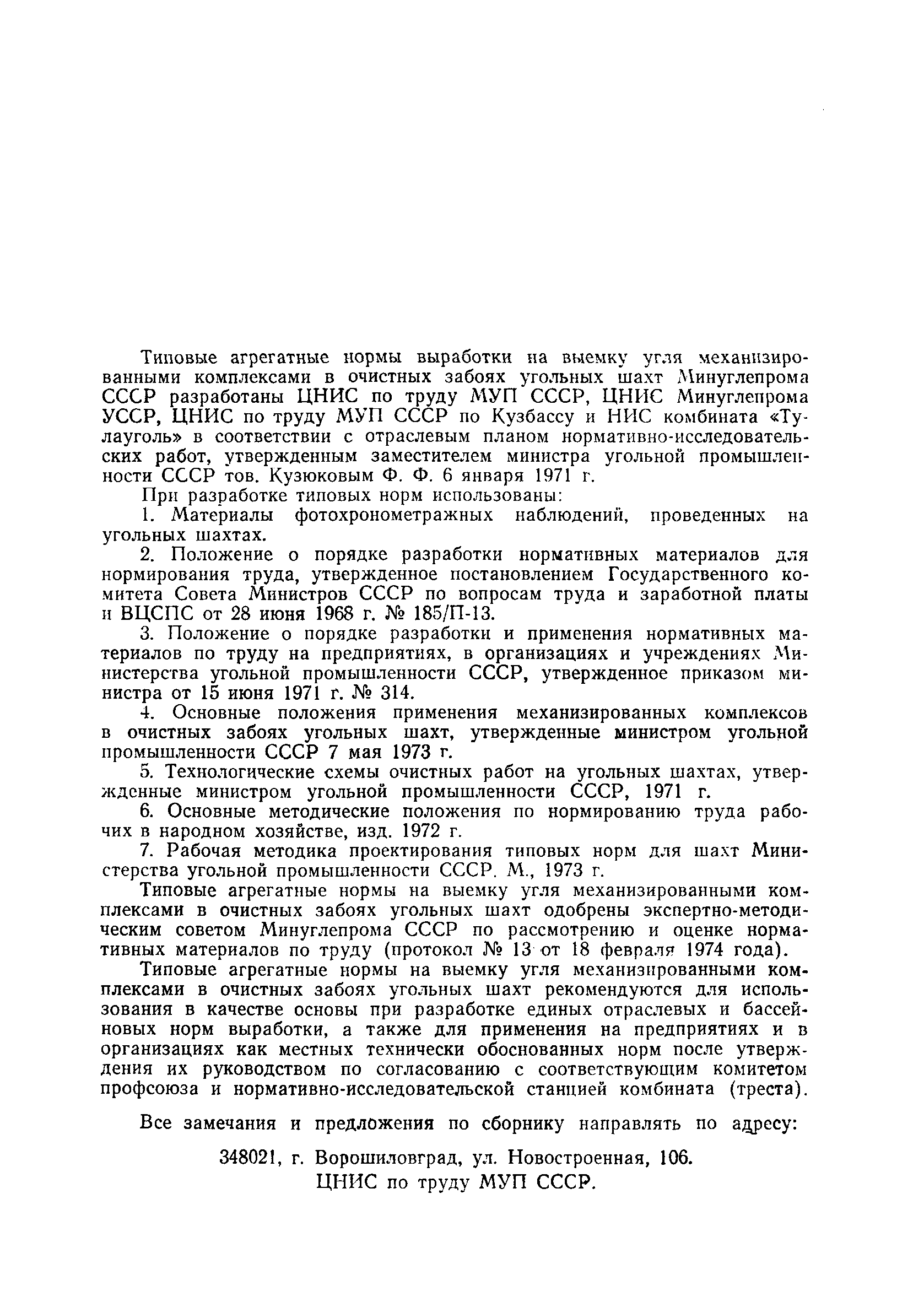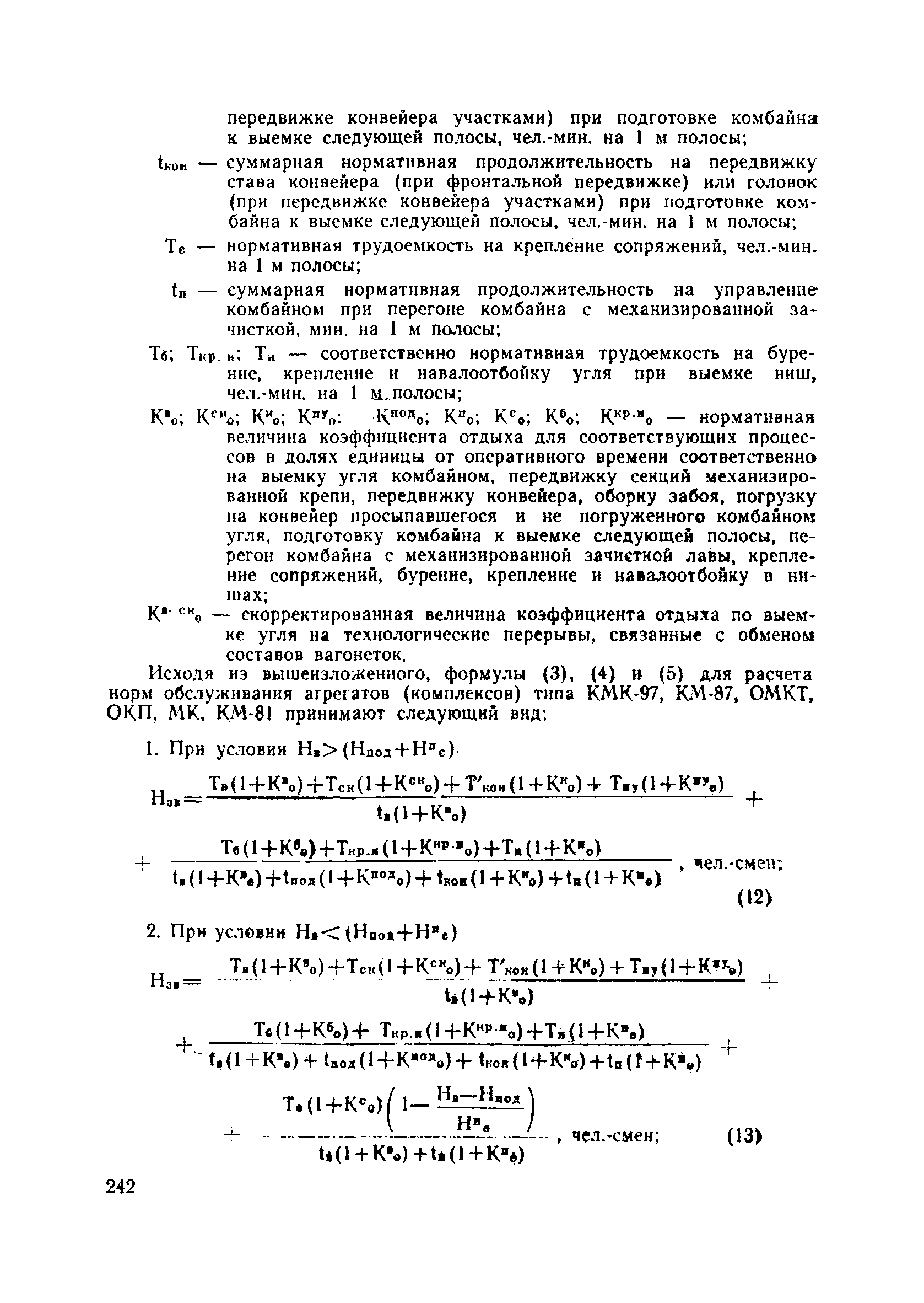 Типовые агрегатные нормы на выемку угля механизированными комплексами в очистных забоях угольных шахт| Статус: | справочные материалы, мп, тпр | | Название рус.: | Типовые агрегатные нормы на выемку угля механизированными комплексами в очистных забоях угольных шахт | | Дата добавления в базу: | 01.02.2020 | | Дата актуализации: | 01.01.2021 | | Область применения: | Агрегатные нормы сборника являются типовыми отраслевыми и предназначены в качестве основы для разработки единых бассейновых и местных норм на шахтах, имеющих фактическую производительность труда в лавах, оборудованных механизированными комплексами, выше единых бассейновых норм. | | Оглавление: | Общая часть Техническая часть Нормативная часть Глава I. Агрегатные нормы выработки и нормы обслуживания агрегата Глава II Организация выполнения операции по приемам Глава III Расчетные нормативы времени по операциям и рабочим процессам, учтенные агрегатными нормами Приложение 1 Сравнение типовых агрегатных норм с действующими нормами и достигнутой производительностью Приложение 2 Методические указания по расчету поправочных коэффициентов к типовым нормам выработки, учитывающих технологические перерывы на заряжание, взрывание шнуров и проветривание очистных забоев Приложение 3 Расчет продолжительности технологических перерывов на заряжание, взрывание шпуров в нишах, межслоевой толще и проветривание очистных забоев при выемке угля механизированными комплексами (угол падения пласта до 18 градусов) для определения поправочных коэффициентов к типовым агрегатным нормам выработки Приложение 4 Расчет поправочных коэффициентов к агрегатным нормам выработки на выемку угля механизированными комплексами типа КМ-871, учитывающих технологические перерывы на заряжание, взрывание шпуров в нишах и проветривание лавы Приложение 5 Методика расчета агрегатных норм выработки и норм обслуживания очистных механизированных комплексов | | Утверждён: | Министерство угольной промышленности СССР (USSR Ministry of the Coal Industry )