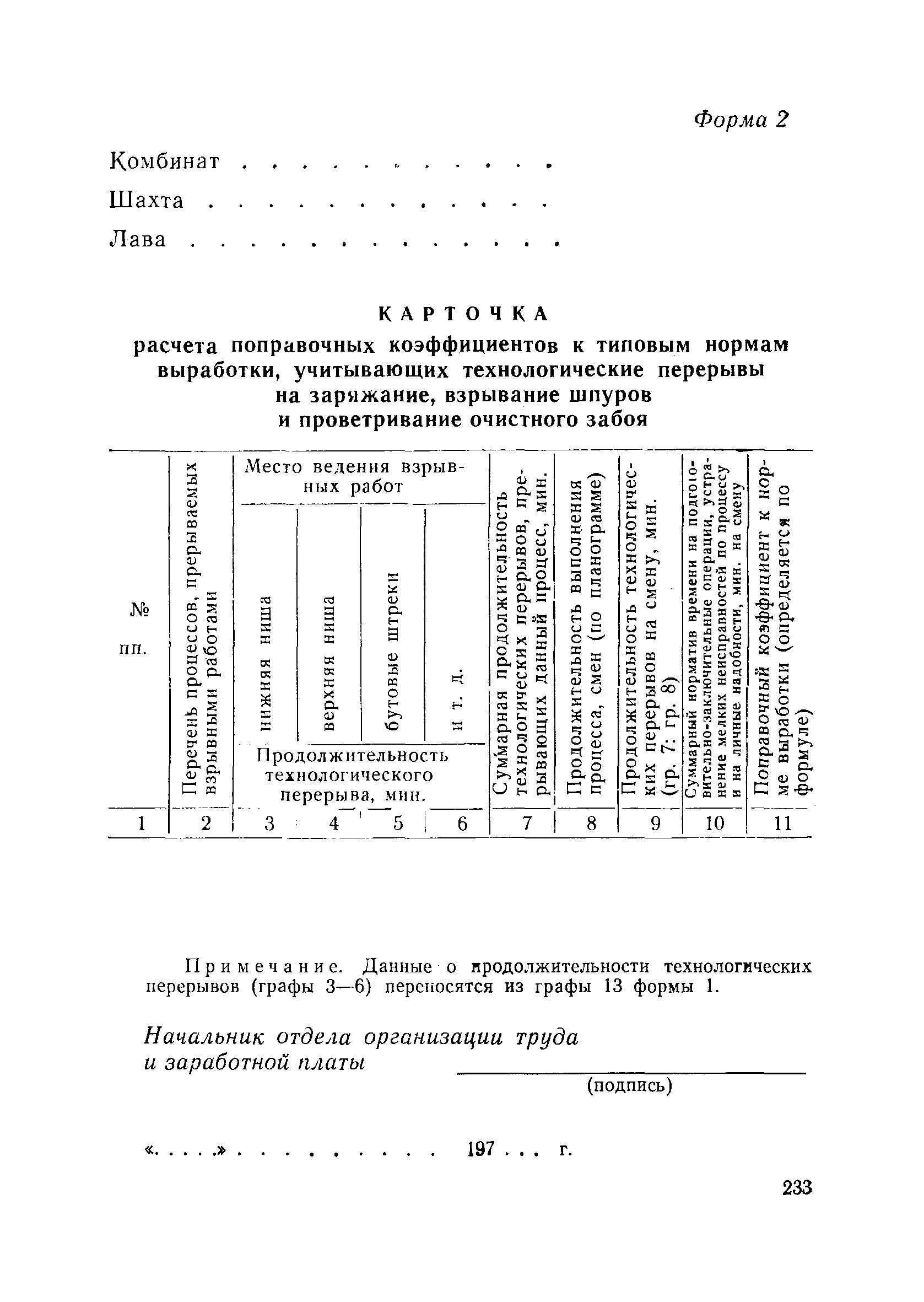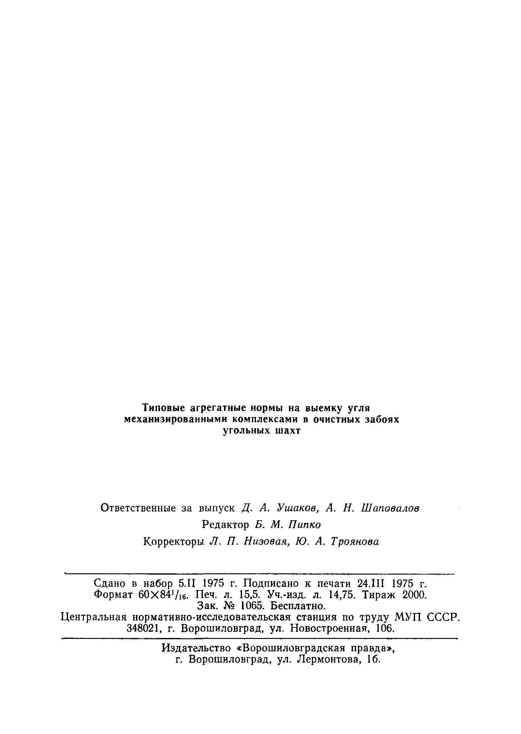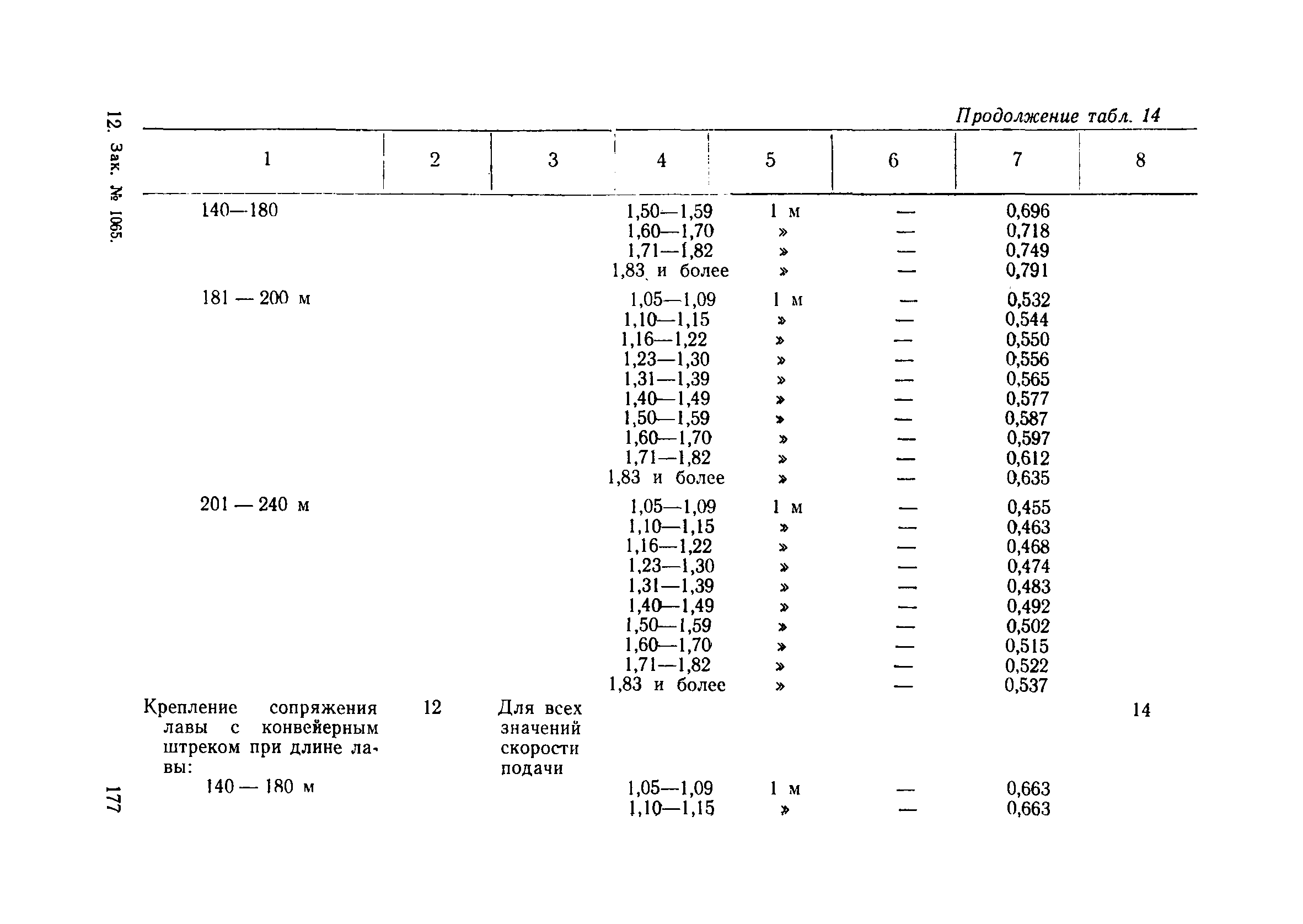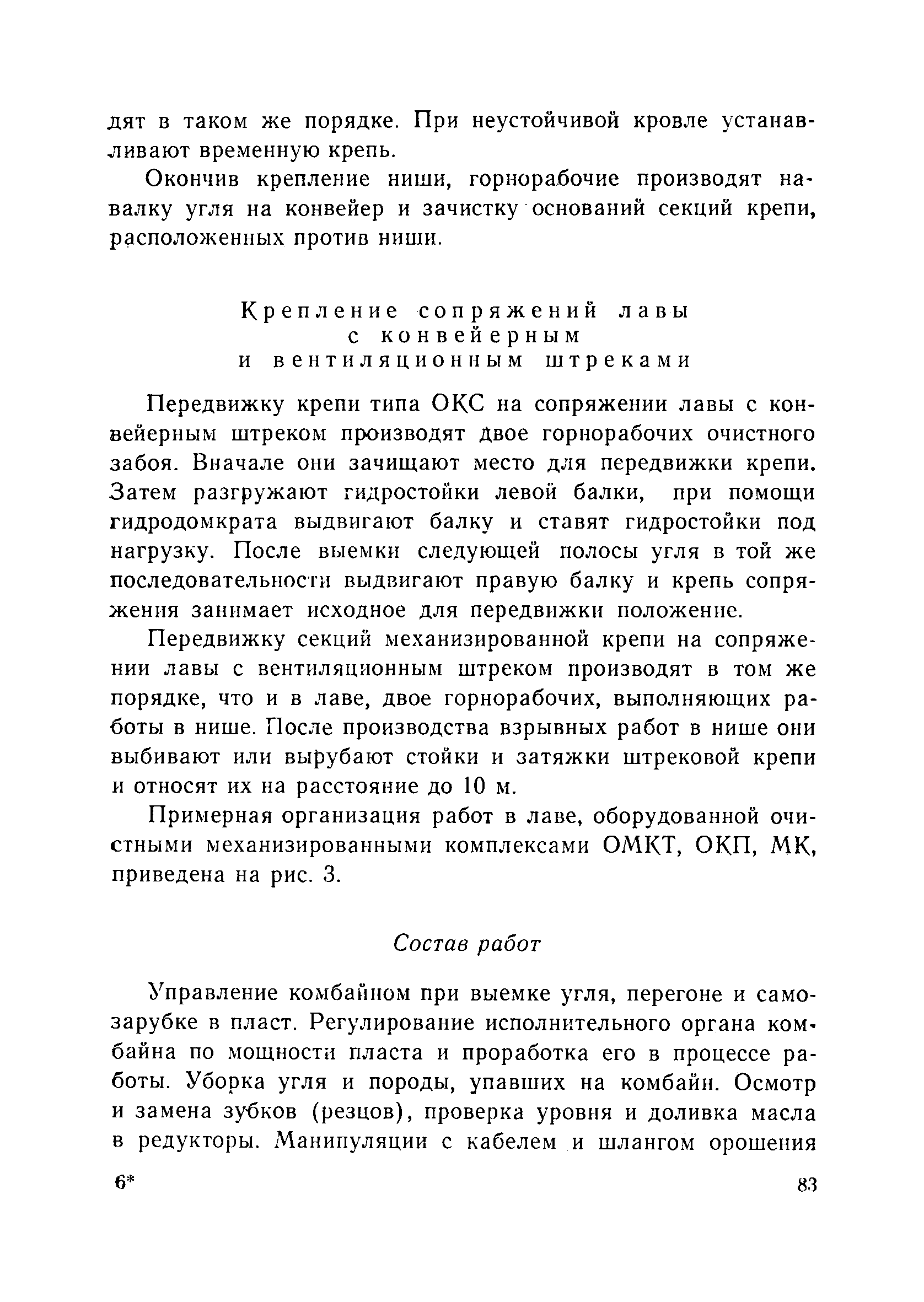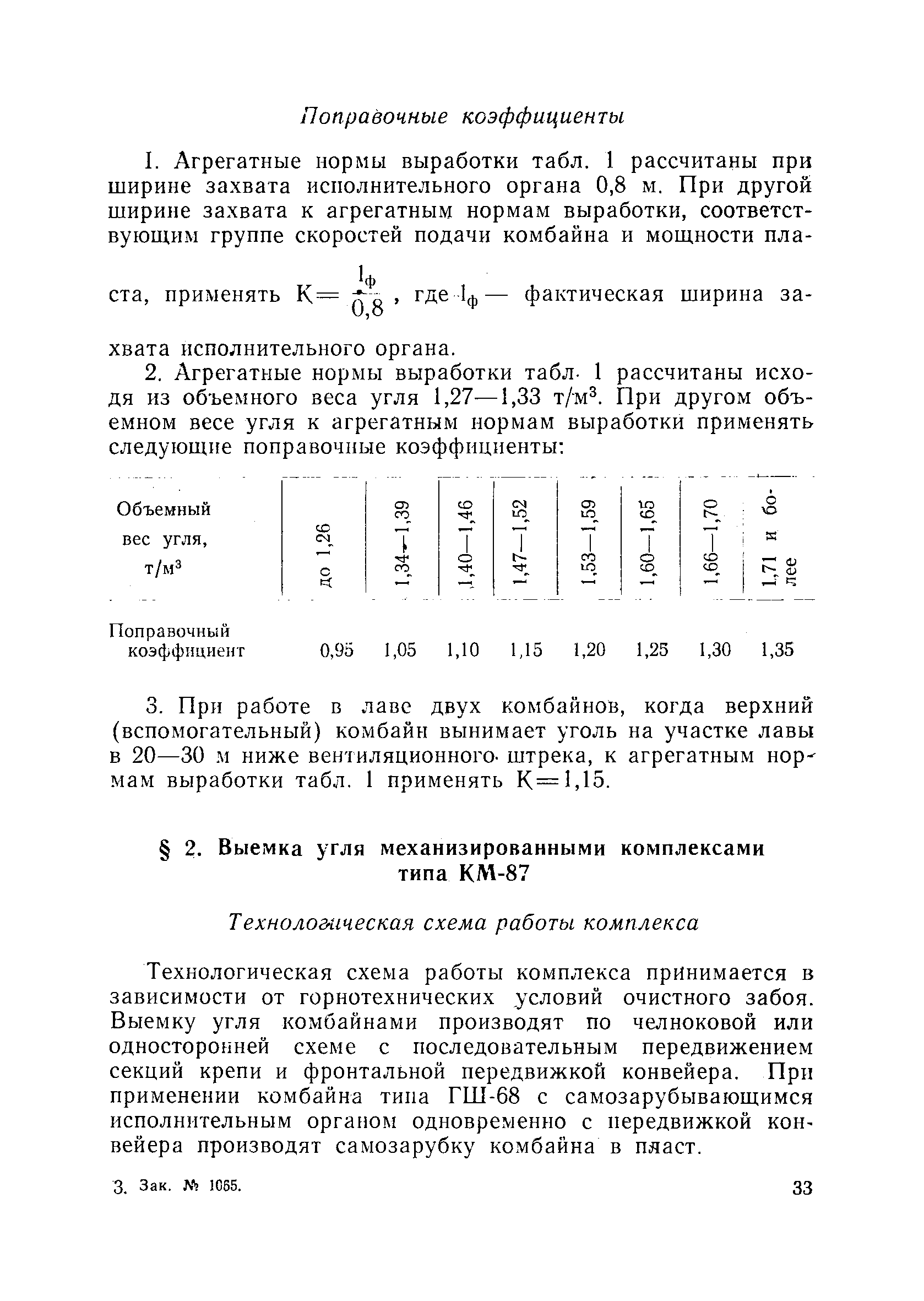 Типовые агрегатные нормы на выемку угля механизированными комплексами в очистных забоях угольных шахт| Статус: | справочные материалы, мп, тпр | | Название рус.: | Типовые агрегатные нормы на выемку угля механизированными комплексами в очистных забоях угольных шахт | | Дата добавления в базу: | 01.02.2020 | | Дата актуализации: | 01.01.2021 | | Область применения: | Агрегатные нормы сборника являются типовыми отраслевыми и предназначены в качестве основы для разработки единых бассейновых и местных норм на шахтах, имеющих фактическую производительность труда в лавах, оборудованных механизированными комплексами, выше единых бассейновых норм. | | Оглавление: | Общая часть Техническая часть Нормативная часть Глава I. Агрегатные нормы выработки и нормы обслуживания агрегата Глава II Организация выполнения операции по приемам Глава III Расчетные нормативы времени по операциям и рабочим процессам, учтенные агрегатными нормами Приложение 1 Сравнение типовых агрегатных норм с действующими нормами и достигнутой производительностью Приложение 2 Методические указания по расчету поправочных коэффициентов к типовым нормам выработки, учитывающих технологические перерывы на заряжание, взрывание шнуров и проветривание очистных забоев Приложение 3 Расчет продолжительности технологических перерывов на заряжание, взрывание шпуров в нишах, межслоевой толще и проветривание очистных забоев при выемке угля механизированными комплексами (угол падения пласта до 18 градусов) для определения поправочных коэффициентов к типовым агрегатным нормам выработки Приложение 4 Расчет поправочных коэффициентов к агрегатным нормам выработки на выемку угля механизированными комплексами типа КМ-871, учитывающих технологические перерывы на заряжание, взрывание шпуров в нишах и проветривание лавы Приложение 5 Методика расчета агрегатных норм выработки и норм обслуживания очистных механизированных комплексов | | Утверждён: | Министерство угольной промышленности СССР (USSR Ministry of the Coal Industry )