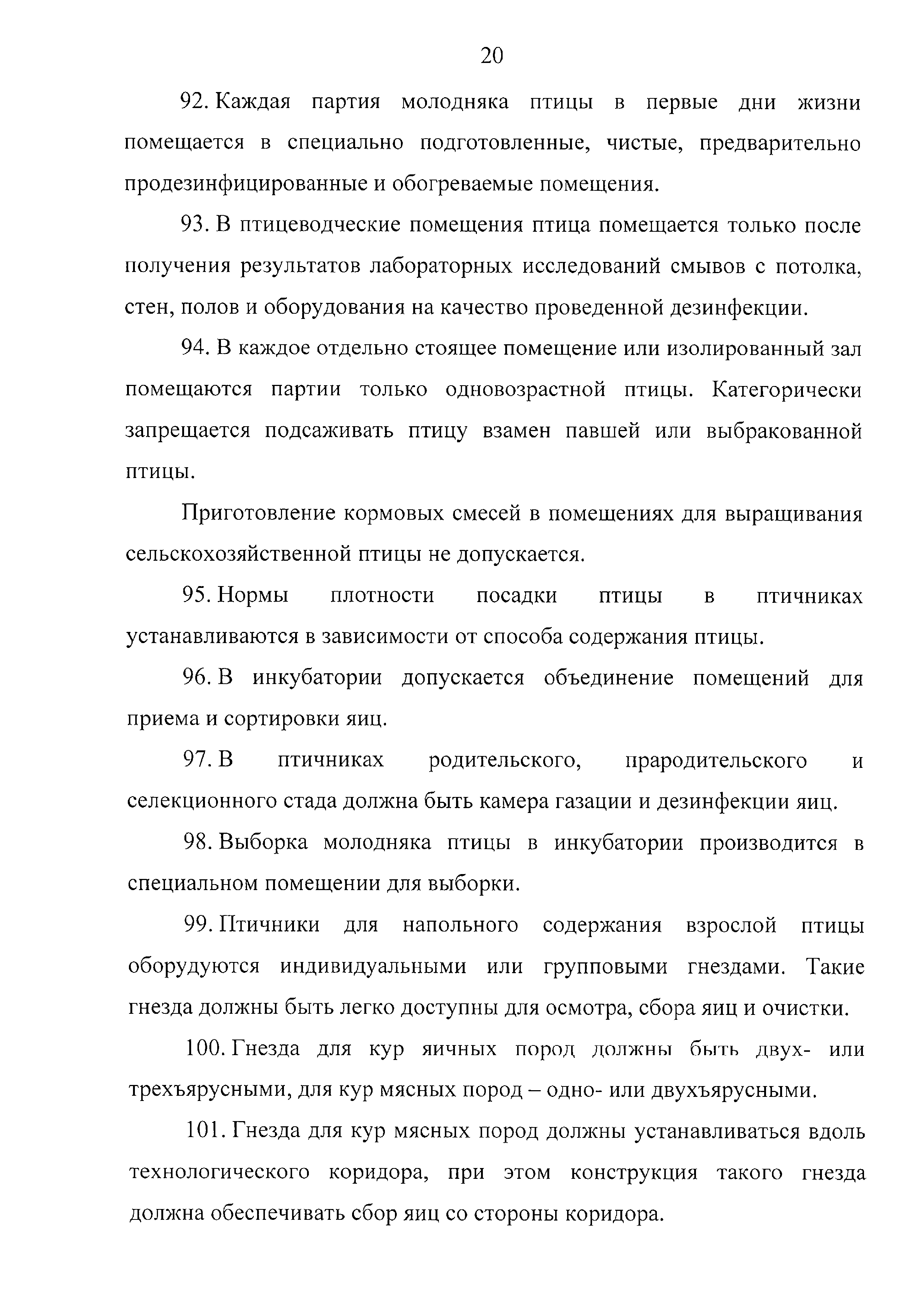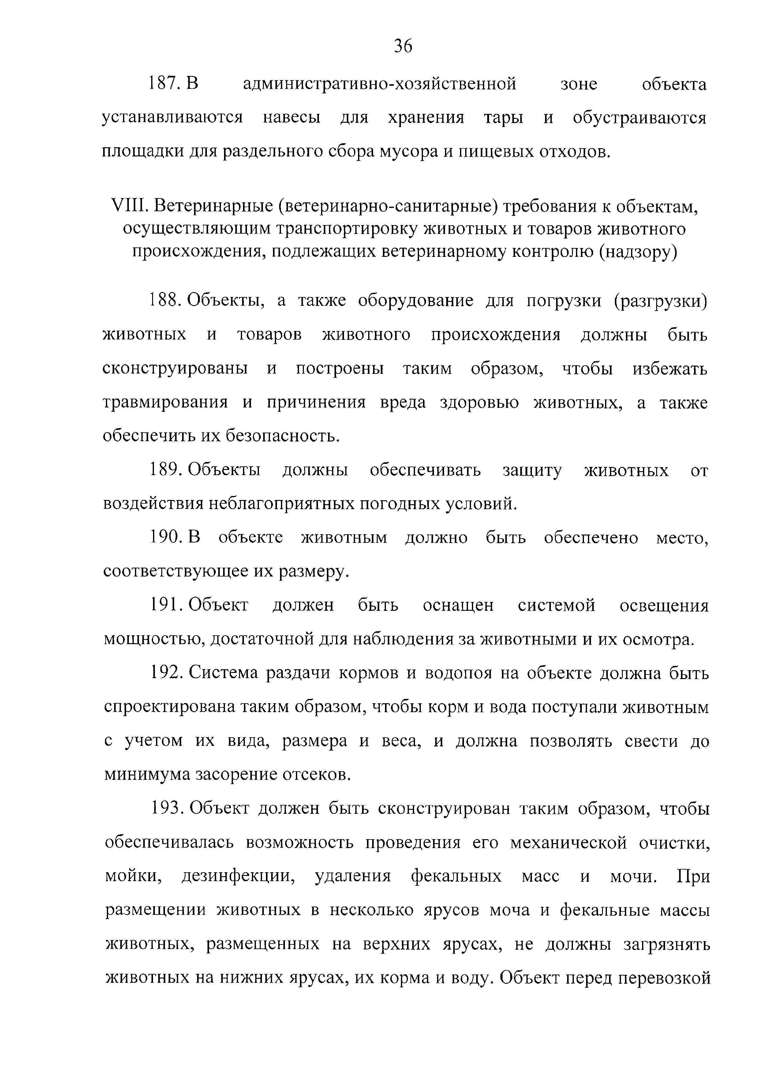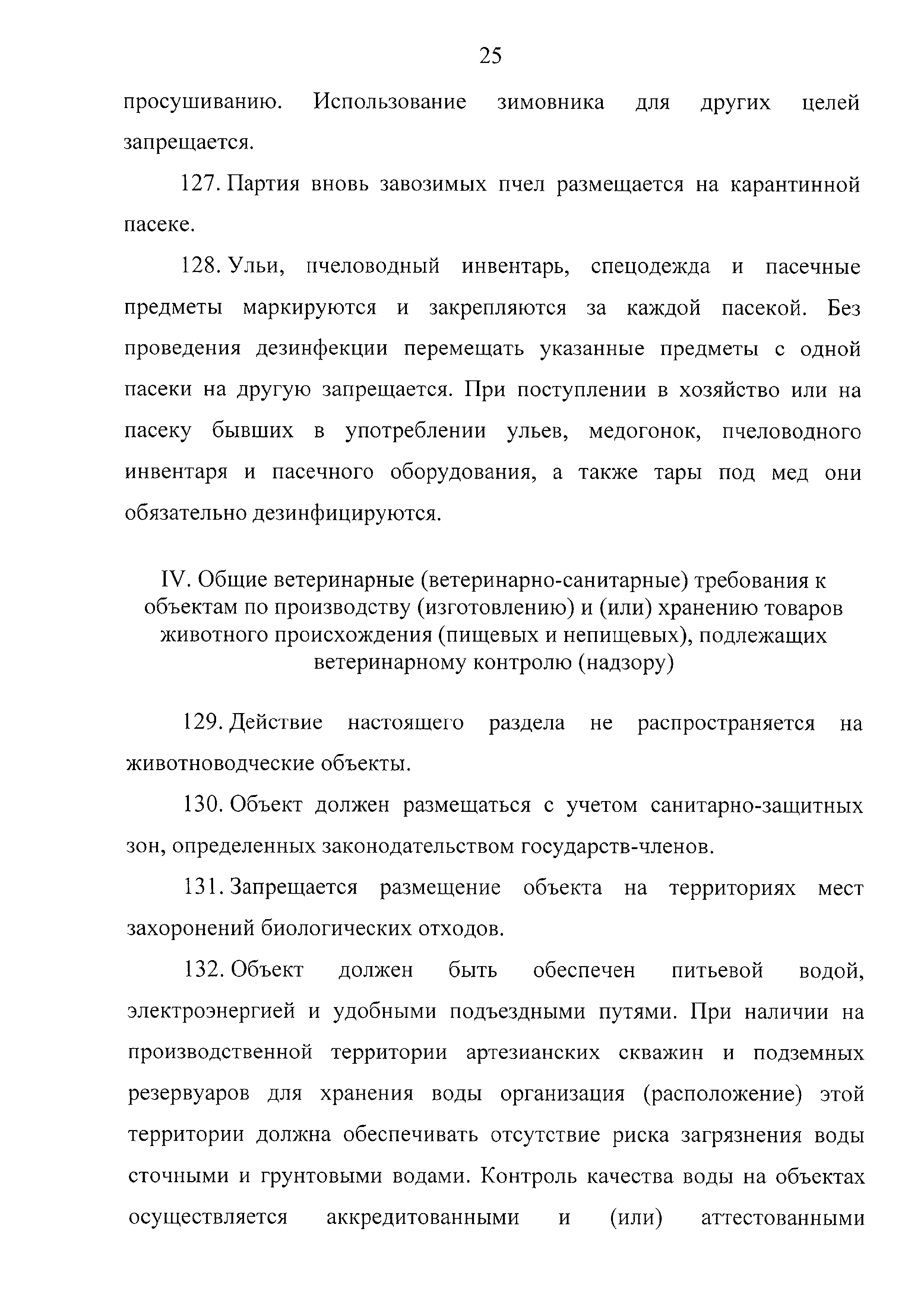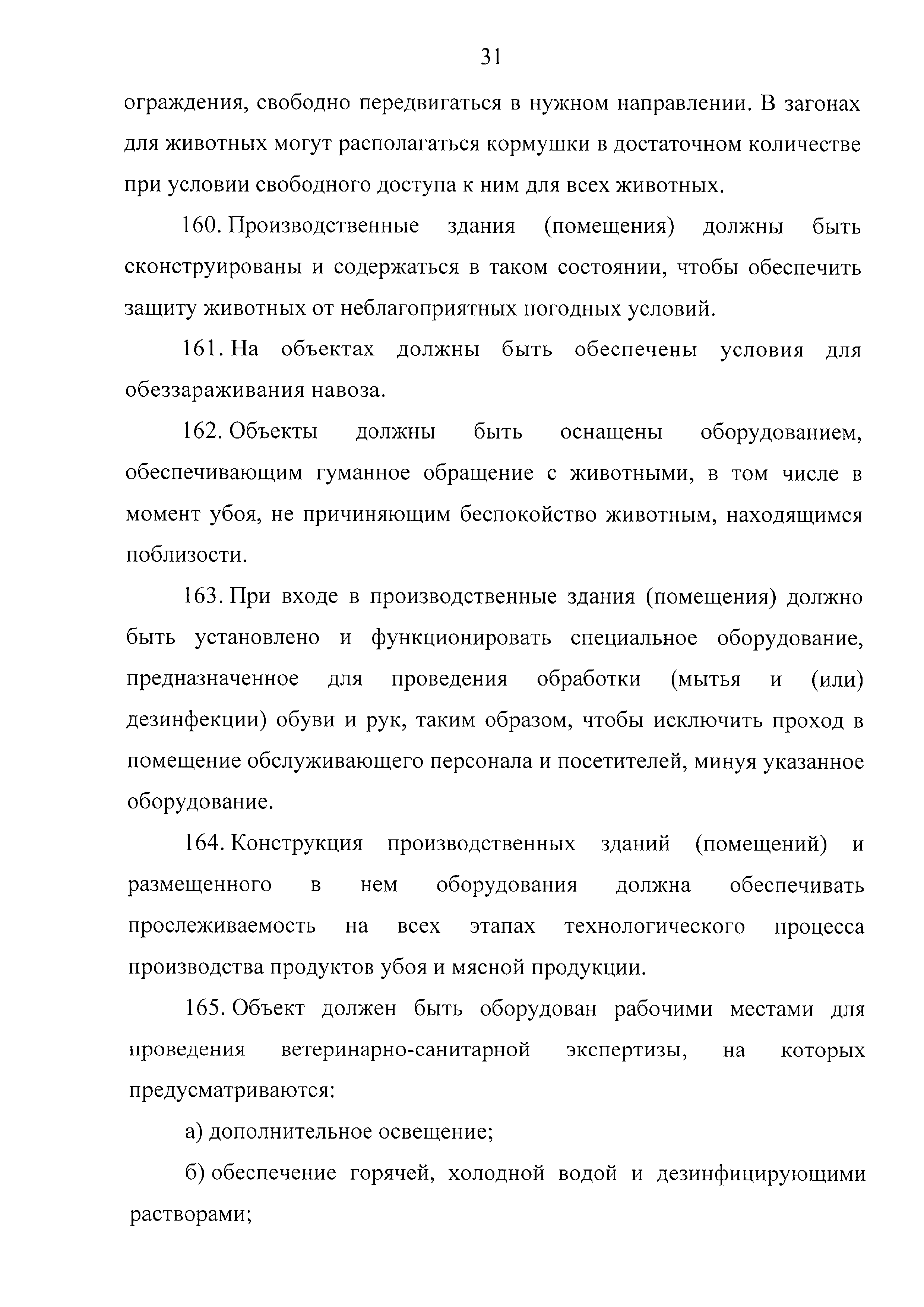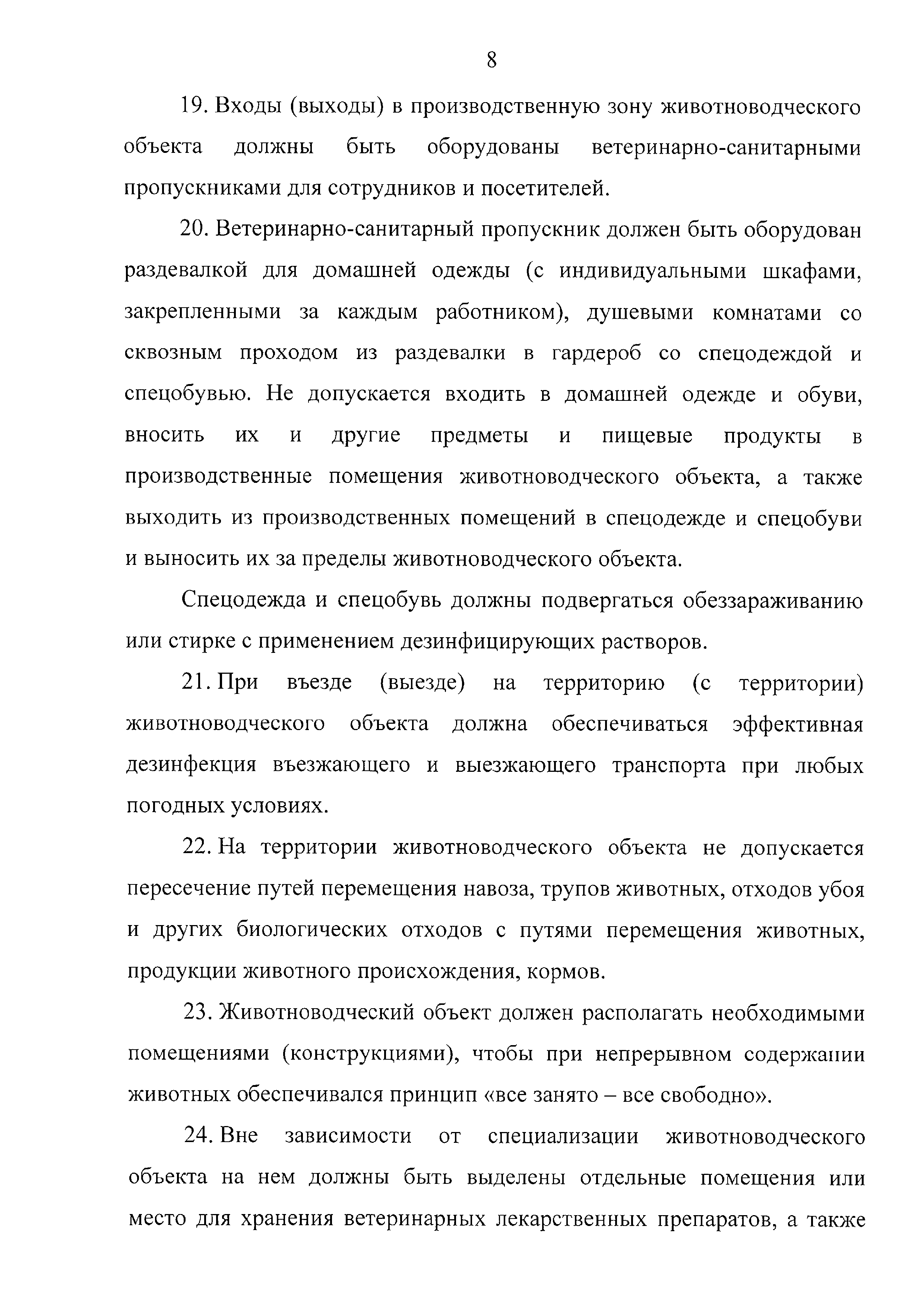 Единые ветеринарные (ветеринарно-санитарные) требования, предъявляемые к объектам, подлежащим ветеринарному контролю (надзору)| Статус: | действует | | Название рус.: | Единые ветеринарные (ветеринарно-санитарные) требования, предъявляемые к объектам, подлежащим ветеринарному контролю (надзору) | | Дата добавления в базу: | 01.02.2020 | | Дата актуализации: | 01.01.2021 | | Дата введения: | 14.08.2018 | | Область применения: | Требования являются обязательными для исполнения юридическими лицами, физическими лицами, в том числе зарегистрированными в качестве индивидуальных предпринимателей, которым принадлежат на праве собственности или на ином законном основании земельные участки, здания, строения, сооружения, места складирования (хранения), в которых осуществляется деятельность по выращиванию (разведению и содержанию), изготовлению, переработке и хранению товаров, подлежащих ветеринарному контролю (надзору), и сведения о которых включаются (включены) в реестр организаций и лиц, осуществляющих производство, переработку и (или) хранение товаров, перемещаемых с территории одного государства - члена Евразийского экономического союза на территорию другого государства-члена, а также собственниками (владельцами) транспортных средств, осуществляющих перемещение указанных товаров | | Оглавление: | I. Общие положения II. Определения III. Ветеринарные (ветеринарно-санитарные) требования к животноводческим объектам 1. Общие ветеринарные (ветеринарно-санитарные) требования к животноводческим объектам 2. Ветеринарные (ветеринарно-санитарные) требования к животноводческим объектам, предназначенным для содержания крупного рогатого скота 3. Ветеринарные (ветеринарно-санитарные) требования к животноводческим объектам, с круглогодичным пастбищным содержанием крупного рогатого скота 4. Ветеринарные (ветеринарно-санитарные) требования к животноводческим объектам, предназначенным для содержания свиней 5. Ветеринарные (ветеринарно-санитарные) требования к животноводческим объектам, предназначенным для содержания овец 6. Ветеринарные (ветеринарно-санитарные) требования к животноводческим объектам, предназначенным для содержания пушных зверей 7. Ветеринарные (ветеринарно-санитарные) требования к животноводческим объектам, предназначенным для содержания птицы (кроме водоплавающих) 8. Ветеринарные (ветеринарно-санитарные) требования к животноводческим объектам, предназначенным для содержания рыбы (только к прудовым хозяйствам) 9. Ветеринарные (ветеринарно-санитарные) требования к животноводческим объектам, предназначенным для содержания пчел IV. Общие ветеринарные (ветеринарно-санитарные) требования к объектам по производству (изготовлению) и (или) хранению товаров животного происхождения (пищевых и непищевых), подлежащих ветеринарному контролю (надзору) V. Ветеринарные (ветеринарно-санитарные) требования к объектам по убою продуктивных животных VI. Ветеринарные (ветеринарно-санитарные) требования к объектам по производству (изготовлению) товаров животного происхождения (пищевых и непищевых), подлежащих ветеринарному контролю (надзору) VII. Ветеринарные (ветеринарно-санитарные) требования к объектам по хранению товаров животного происхождения и кормов VIII. Ветеринарные (ветеринарно-санитарные) требования к объектам, осуществляющим транспортировку жи