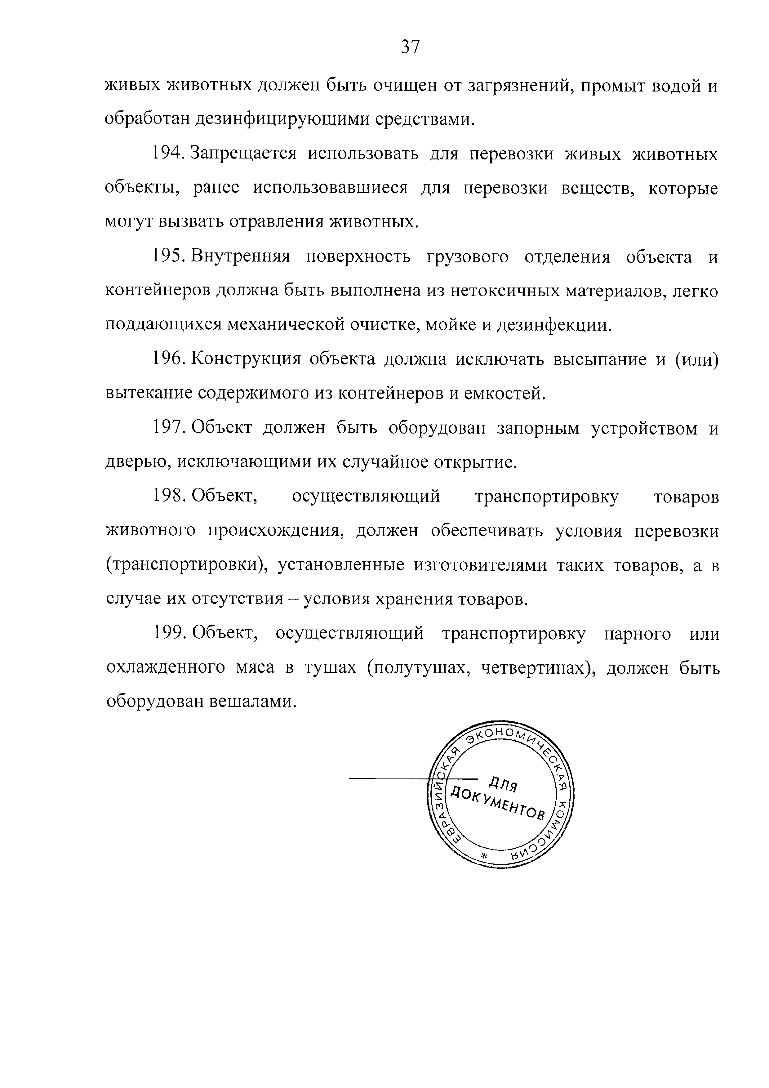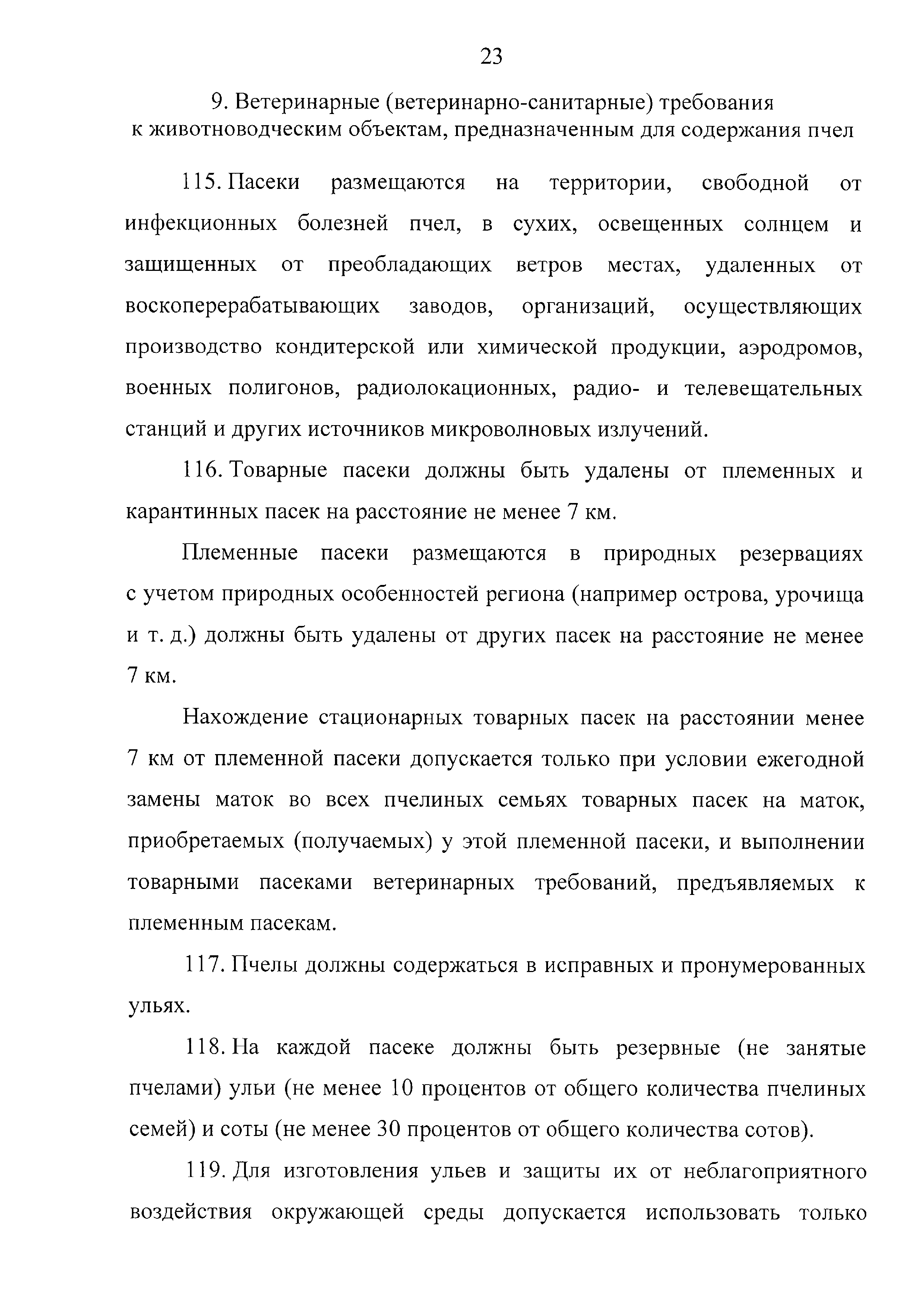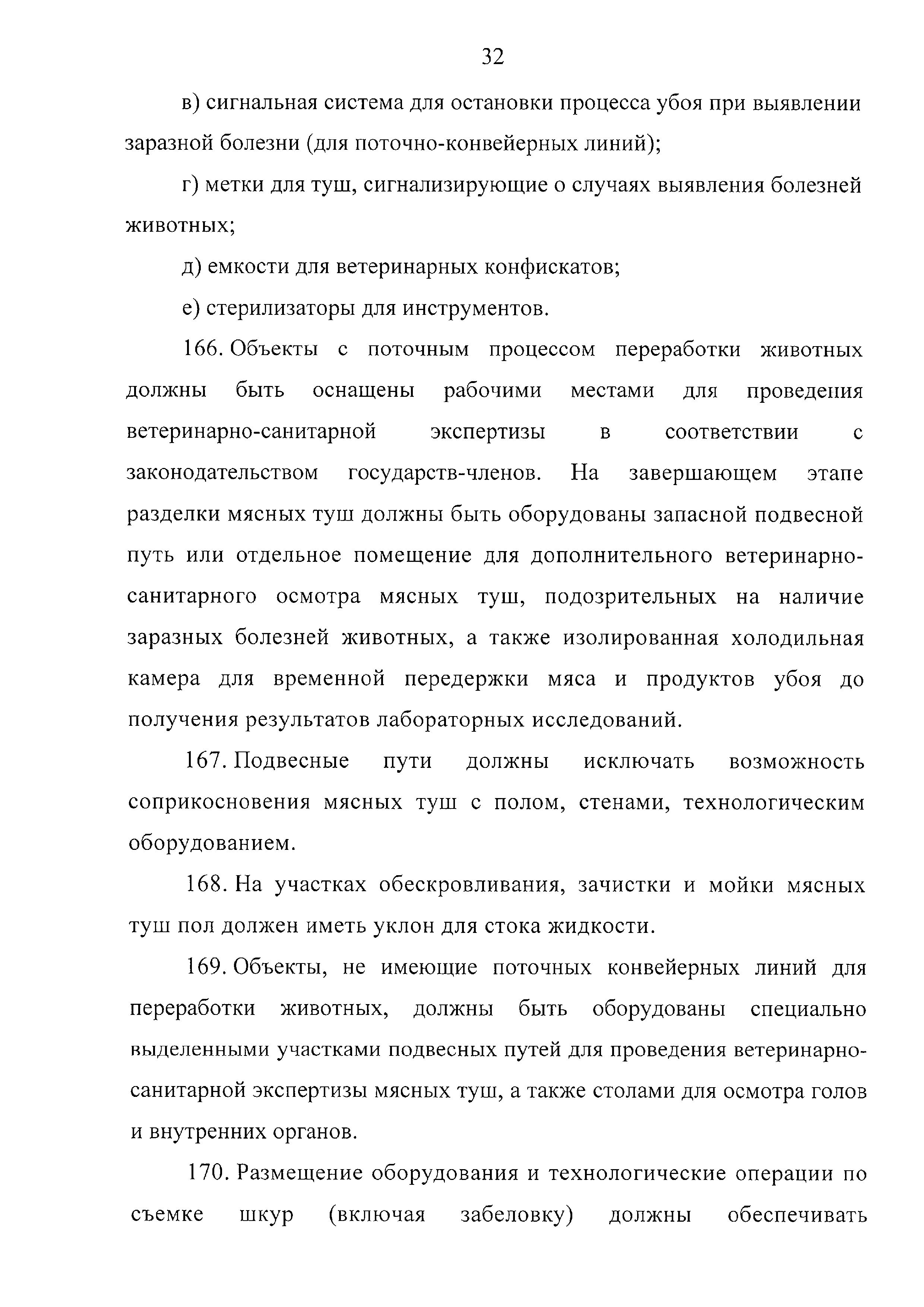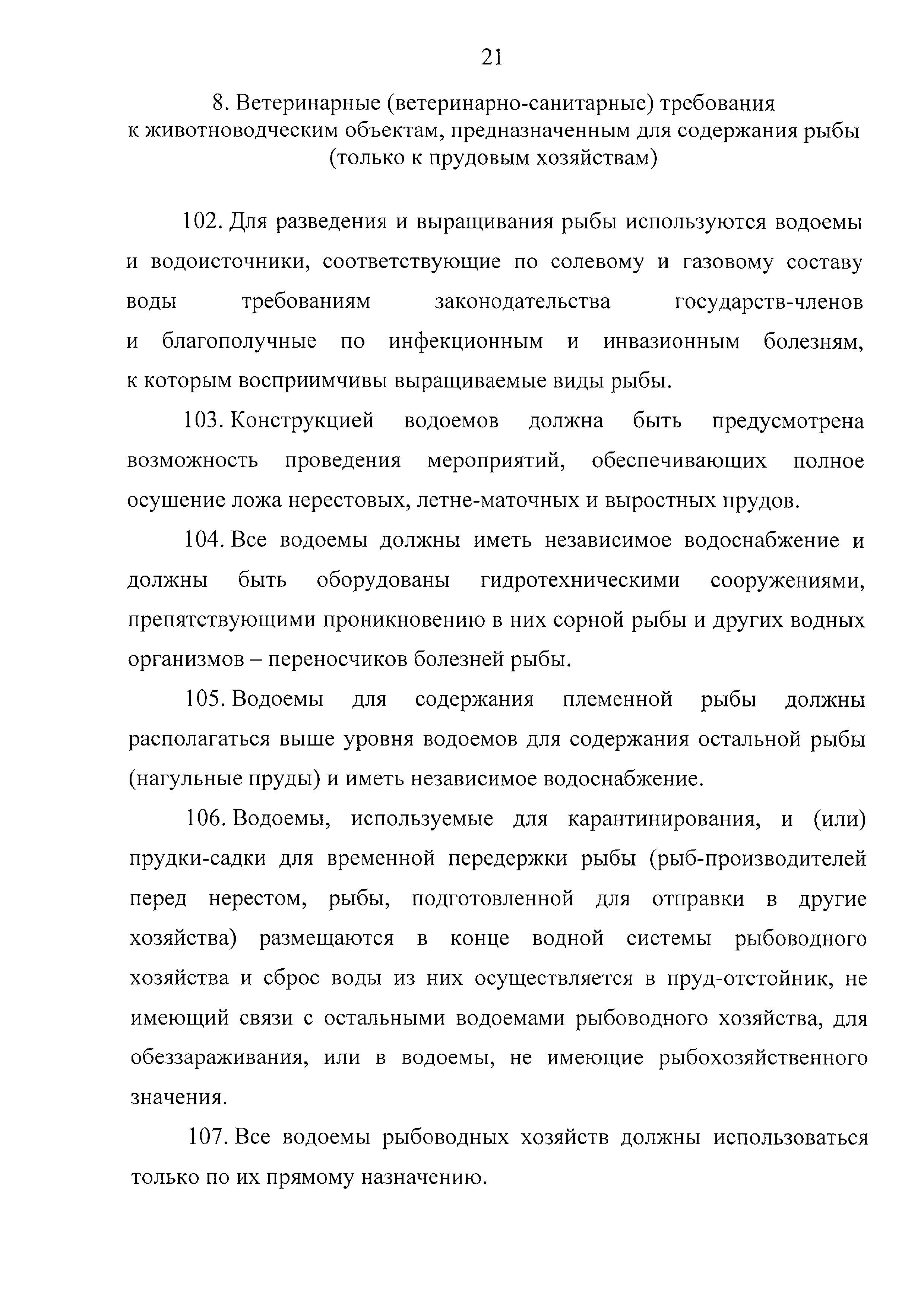 Единые ветеринарные (ветеринарно-санитарные) требования, предъявляемые к объектам, подлежащим ветеринарному контролю (надзору)| Статус: | действует | | Название рус.: | Единые ветеринарные (ветеринарно-санитарные) требования, предъявляемые к объектам, подлежащим ветеринарному контролю (надзору) | | Дата добавления в базу: | 01.02.2020 | | Дата актуализации: | 01.01.2021 | | Дата введения: | 14.08.2018 | | Область применения: | Требования являются обязательными для исполнения юридическими лицами, физическими лицами, в том числе зарегистрированными в качестве индивидуальных предпринимателей, которым принадлежат на праве собственности или на ином законном основании земельные участки, здания, строения, сооружения, места складирования (хранения), в которых осуществляется деятельность по выращиванию (разведению и содержанию), изготовлению, переработке и хранению товаров, подлежащих ветеринарному контролю (надзору), и сведения о которых включаются (включены) в реестр организаций и лиц, осуществляющих производство, переработку и (или) хранение товаров, перемещаемых с территории одного государства - члена Евразийского экономического союза на территорию другого государства-члена, а также собственниками (владельцами) транспортных средств, осуществляющих перемещение указанных товаров | | Оглавление: | I. Общие положения II. Определения III. Ветеринарные (ветеринарно-санитарные) требования к животноводческим объектам 1. Общие ветеринарные (ветеринарно-санитарные) требования к животноводческим объектам 2. Ветеринарные (ветеринарно-санитарные) требования к животноводческим объектам, предназначенным для содержания крупного рогатого скота 3. Ветеринарные (ветеринарно-санитарные) требования к животноводческим объектам, с круглогодичным пастбищным содержанием крупного рогатого скота 4. Ветеринарные (ветеринарно-санитарные) требования к животноводческим объектам, предназначенным для содержания свиней 5. Ветеринарные (ветеринарно-санитарные) требования к животноводческим объектам, предназначенным для содержания овец 6. Ветеринарные (ветеринарно-санитарные) требования к животноводческим объектам, предназначенным для содержания пушных зверей 7. Ветеринарные (ветеринарно-санитарные) требования к животноводческим объектам, предназначенным для содержания птицы (кроме водоплавающих) 8. Ветеринарные (ветеринарно-санитарные) требования к животноводческим объектам, предназначенным для содержания рыбы (только к прудовым хозяйствам) 9. Ветеринарные (ветеринарно-санитарные) требования к животноводческим объектам, предназначенным для содержания пчел IV. Общие ветеринарные (ветеринарно-санитарные) требования к объектам по производству (изготовлению) и (или) хранению товаров животного происхождения (пищевых и непищевых), подлежащих ветеринарному контролю (надзору) V. Ветеринарные (ветеринарно-санитарные) требования к объектам по убою продуктивных животных VI. Ветеринарные (ветеринарно-санитарные) требования к объектам по производству (изготовлению) товаров животного происхождения (пищевых и непищевых), подлежащих ветеринарному контролю (надзору) VII. Ветеринарные (ветеринарно-санитарные) требования к объектам по хранению товаров животного происхождения и кормов VIII. Ветеринарные (ветеринарно-санитарные) требования к объектам, осуществляющим транспортировку жи