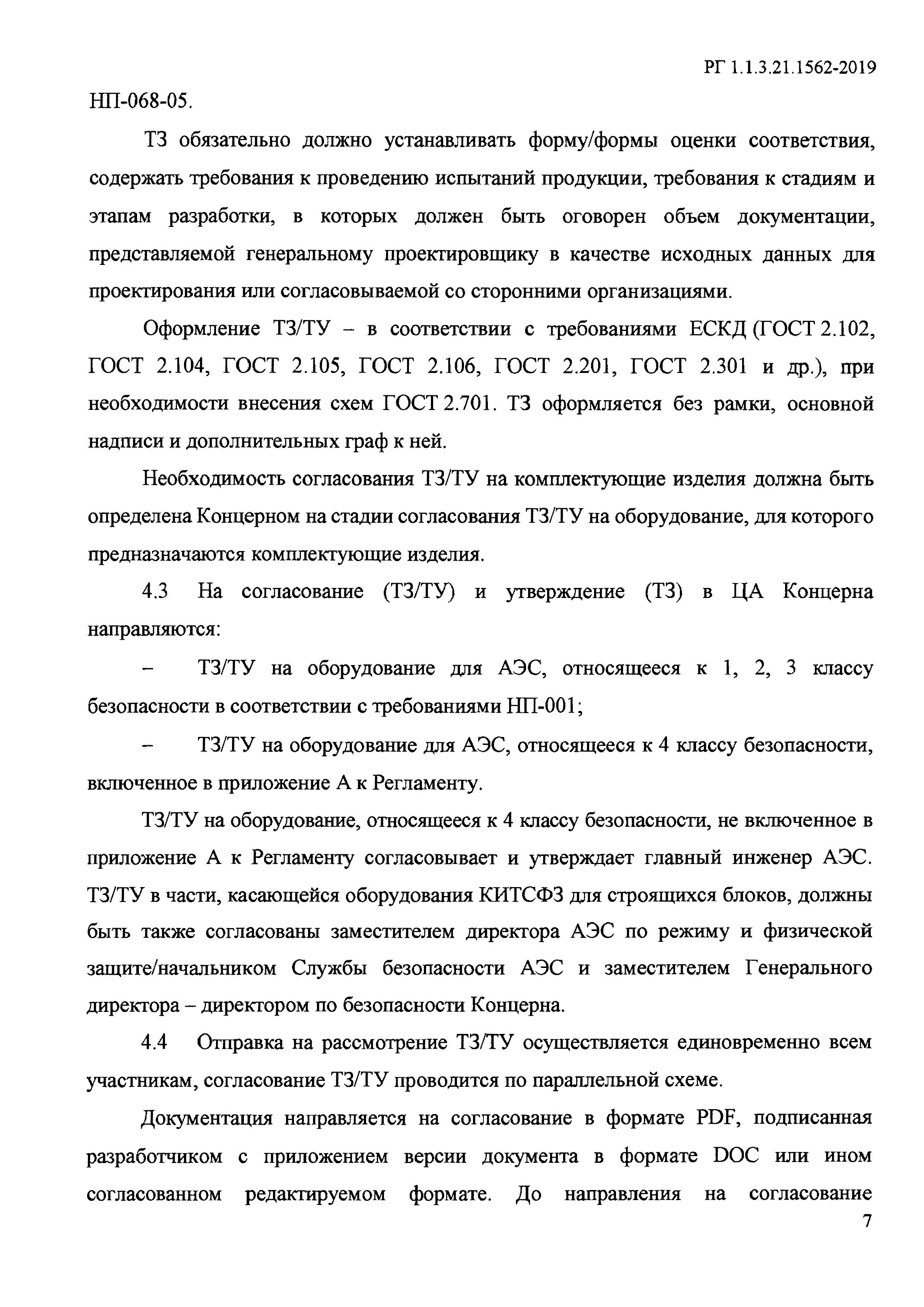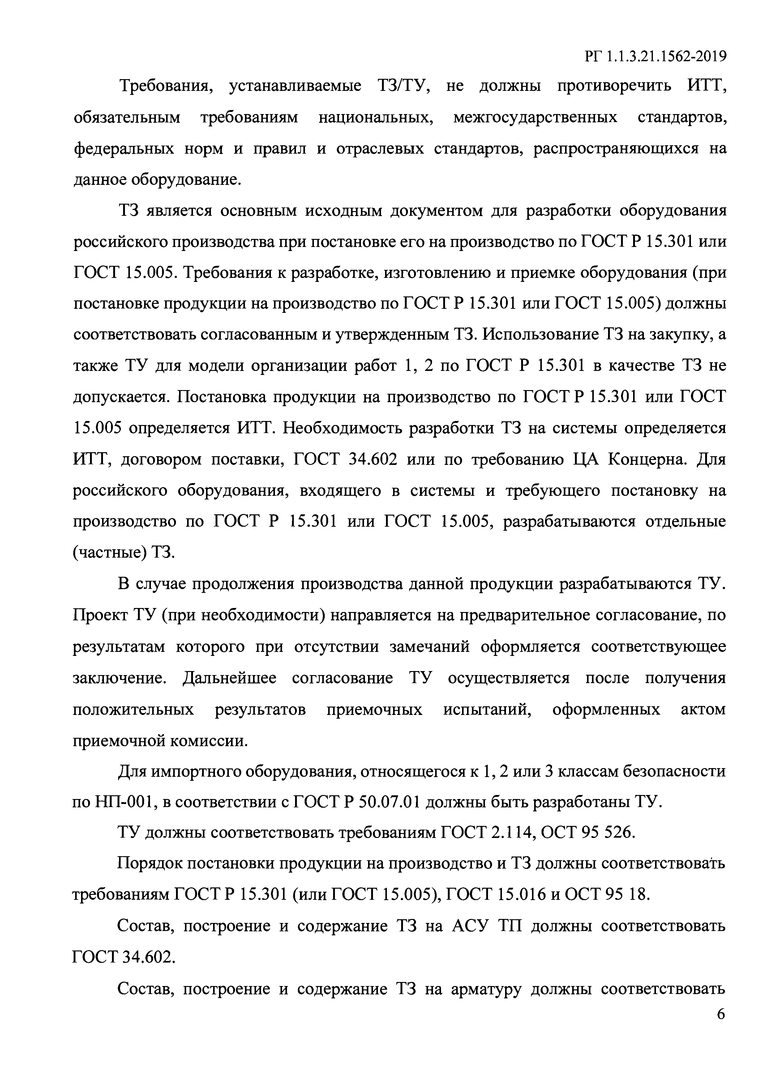 | | Заменяет собой: | | | Нормативные ссылки: |   ГОСТ 2.105-95 «Единая система конструкторской документации. Общие требования к текстовым документам» ГОСТ 2.201-80 «Единая система конструкторской документации. Обозначение изделий и конструкторских документов»  ГОСТ 2.301-68 «Единая система конструкторской документации. Форматы»  ГОСТ 2.106-96 «Единая система конструкторской документации. Текстовые документы»  ГОСТ 34.602-89 «Информационная технология. Комплекс стандартов на автоматизированные системы. Техническое задание на создание автоматизированной системы»  ГОСТ 15.005-86 «Система разработки и постановки продукции на производство. Создание изделий единичного и мелкосерийного производства, собираемых на месте эксплуатации»  ГОСТ 2.104-2006 «Единая система конструкторской документации. Основные надписи»  НП 068-05 «Трубопроводная арматура для атомных станций. Общие технические требования»  ГОСТ 2.701-2008 «Единая система конструкторской документации. Схемы. Виды и типы. Общие требования к выполнению»  ГОСТ 2.503-2013 «Единая система конструкторской документации. Правила внесения изменений» ГОСТ 2.102-2013 «Единая система конструкторской документации. Виды и комплектность конструкторских документов» ОСТ 95 18-2001 «Порядок проведения научно-исследовательских и опытно-конструкторских работ. Основные положения»  НП 001-15 «Федеральные нормы и правила в области использования атомной энергии "Общие положения обеспечения безопасности атомных станций"»  ГОСТ 2.114-2016 «Единая система конструкторской документации. Технические условия» ГОСТ Р 15.301-2016 «Система разработки и постановки продукции на производство. Продукция производственно-технического назначения. Порядок разработки и постановки продукции на производство»  ГОСТ 15.016-2016 «Система разработки и постановки продукции на производство. Техническое задание. Требования к содержанию и оформлению» ГОСТ Р 50.03.01-2017 «Система оценки соответствия в области использования атомной энергии. Оценка соответствия в форме экспертизы технической документации. Порядок проведения» ГОСТ Р 50.07.01-2017 «Система оценки соответствия в области использования атомной энергии. Оценка соответствия в форме решения о применении импортной продукции на объекте использования атомной энергии. Процедура принятия решения»  НП 071-18 «Федеральные нормы и правила в области использования атомной энергии "Правила оценки соответствия продукции, для которой устанавливаются требования, связанные с обеспечением безопасности в области использования атомной энергии, а также процессов ее проектирования (включая изыскания), производства, строительства, монтажа, наладки, эксплуатации, хранения, перевозки, реализации, утилизации и захоронения"» СТО 1.1.1.01.003.1340-2017 «Разработка, оформление и учет решений (технических решений). Общие требования»