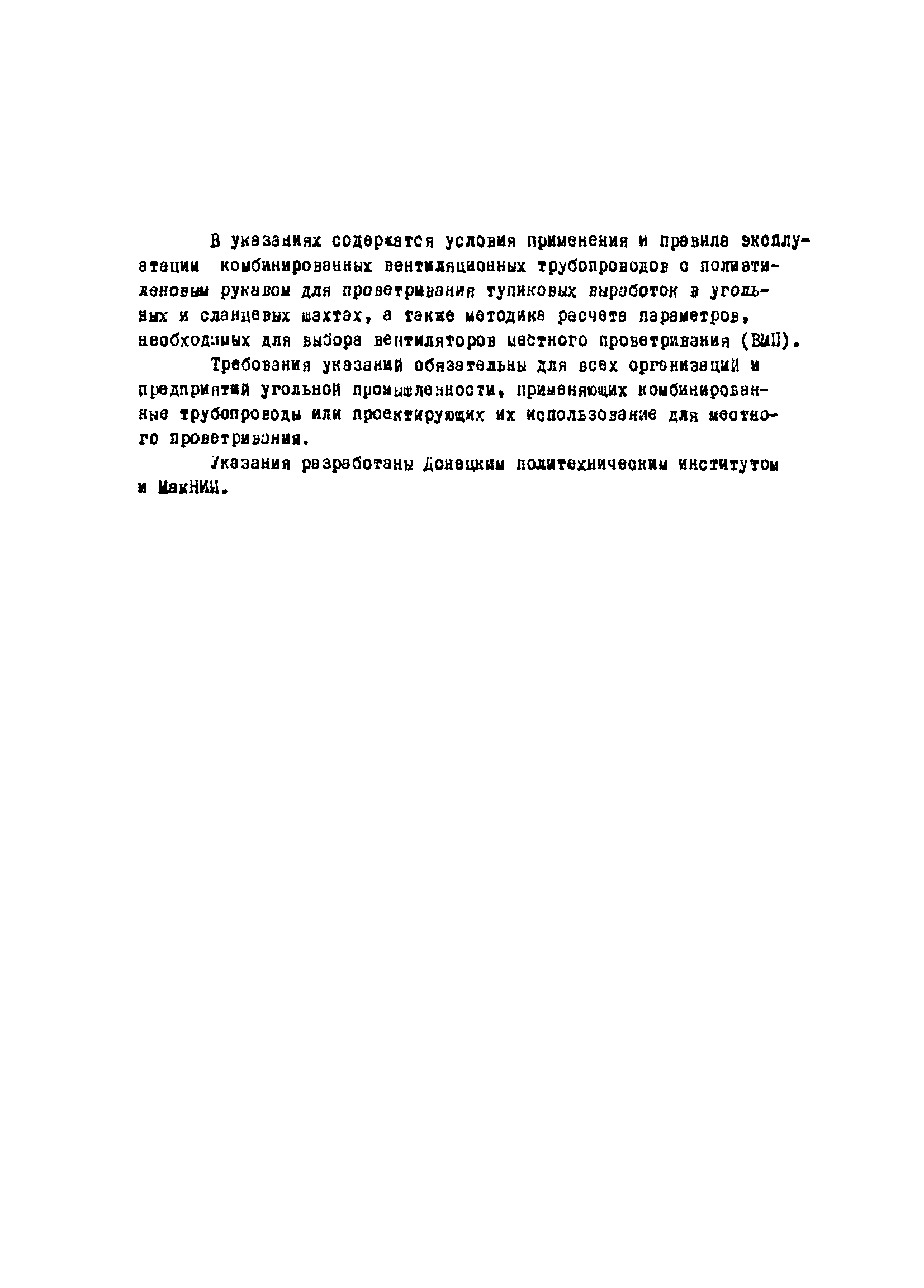 | Название рус.: | Указания по применению комбинированного трубопровода для проветривания тупиковых подготовительных выработок |