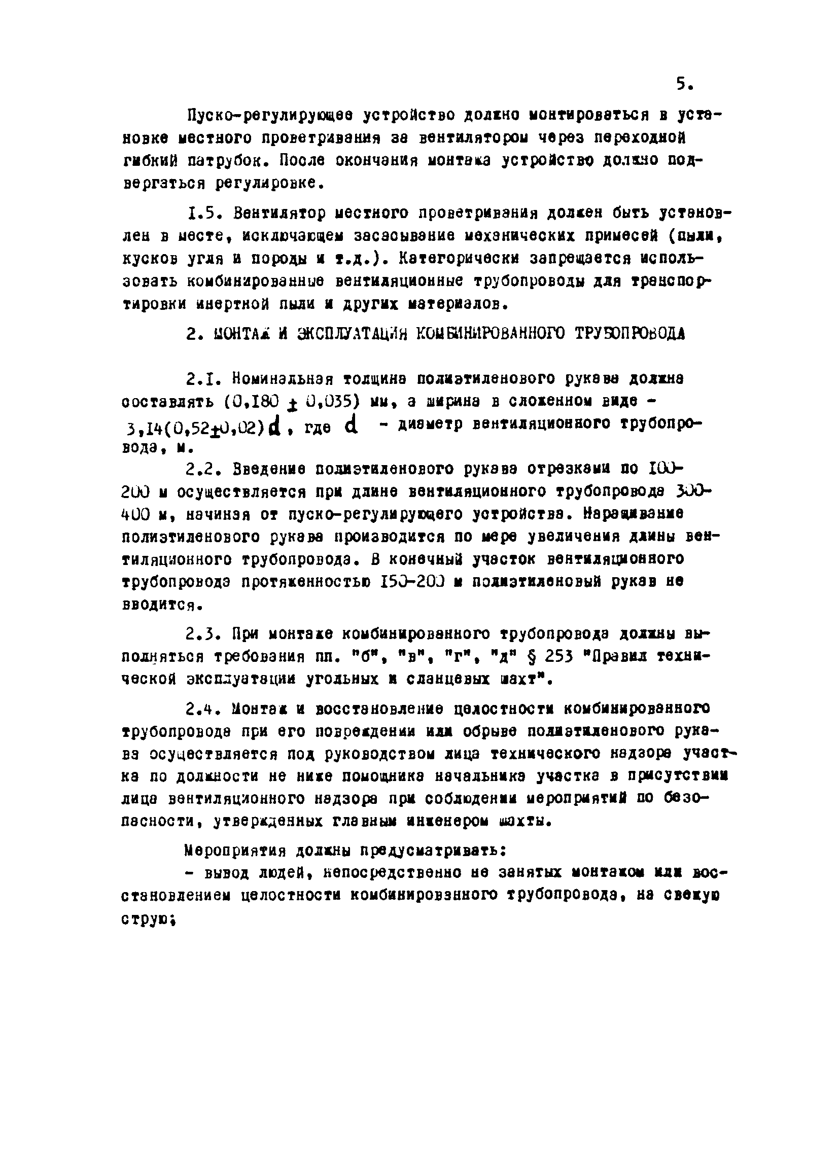 | Область применения: | Требования указания обязательны для всех организаций и предприятий угольной промышленности, применяющих комбинированные трубопроводы или проектирующих их использование для местного проветривания. |