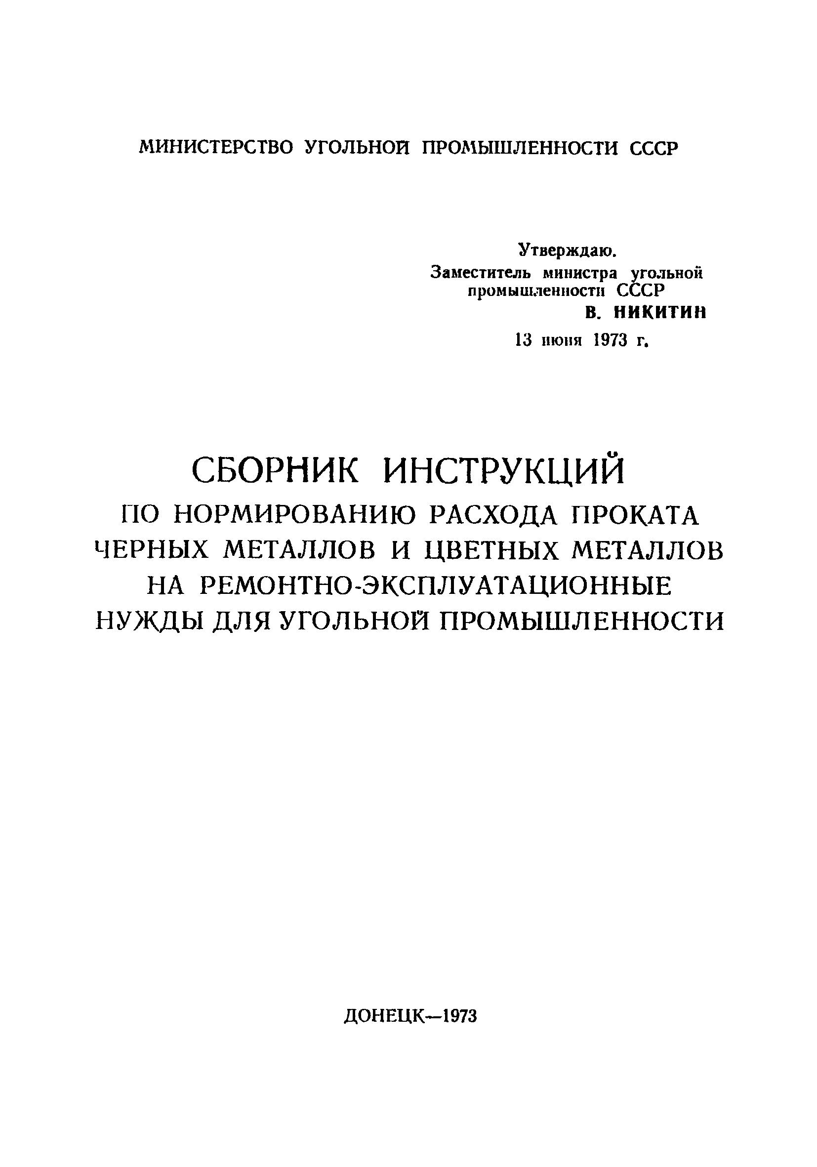 | Утверждён: | 13.06.1973 Министерство угольной промышленности СССР (USSR Ministry of the Coal Industry )