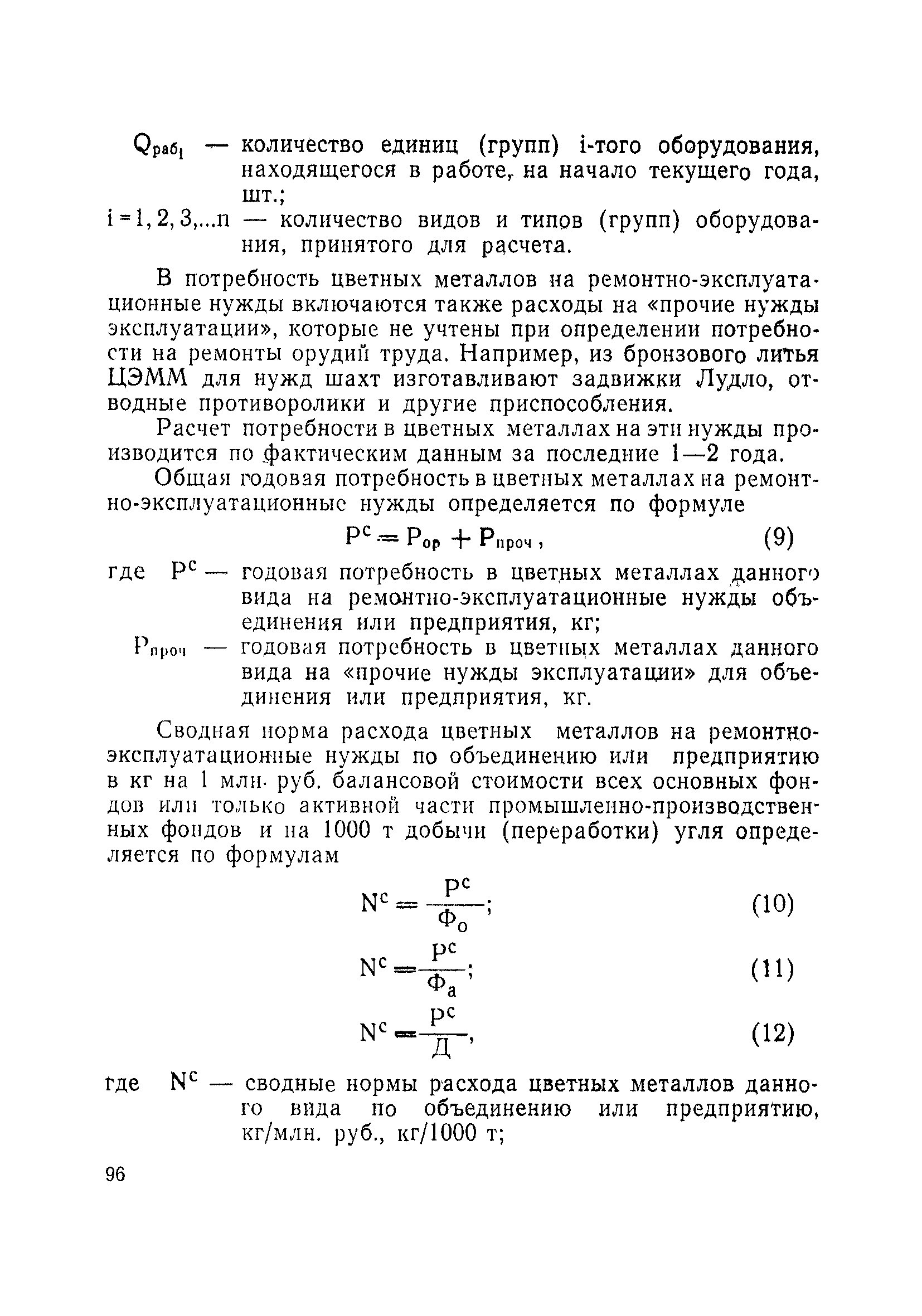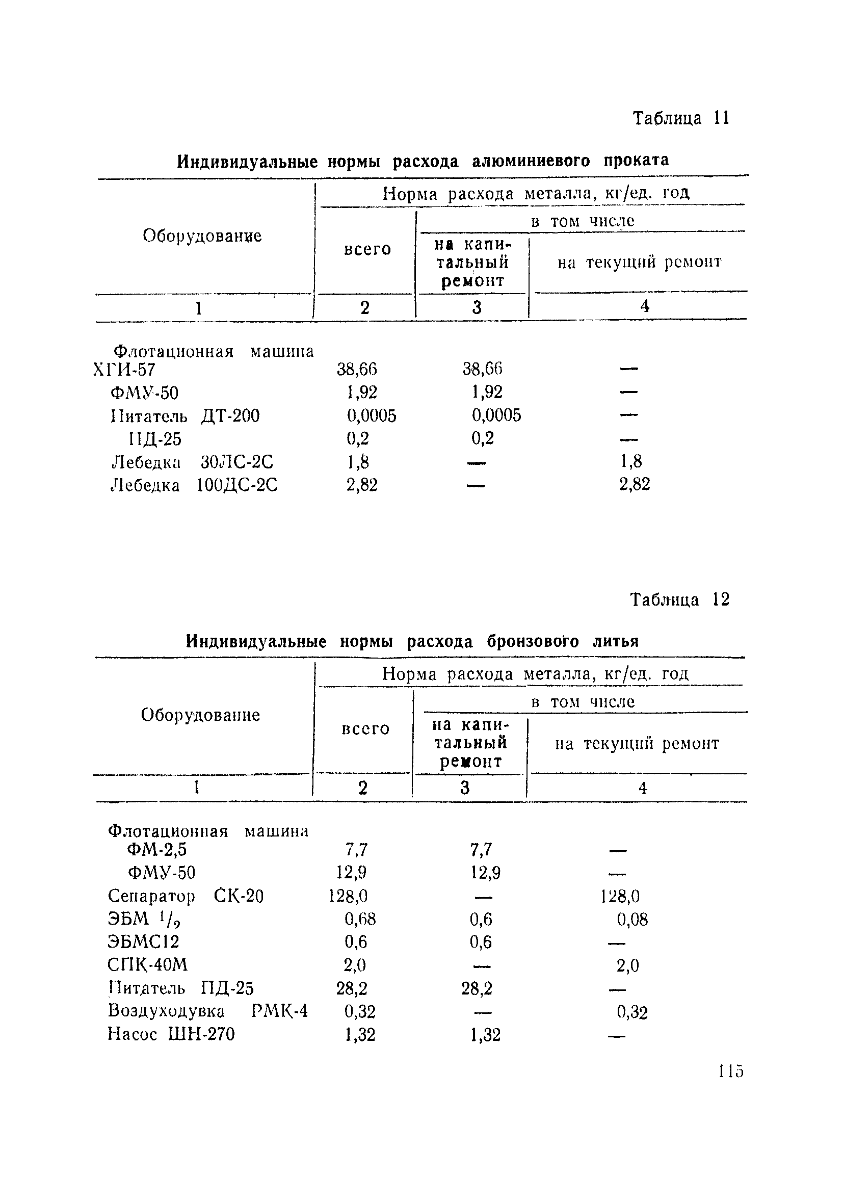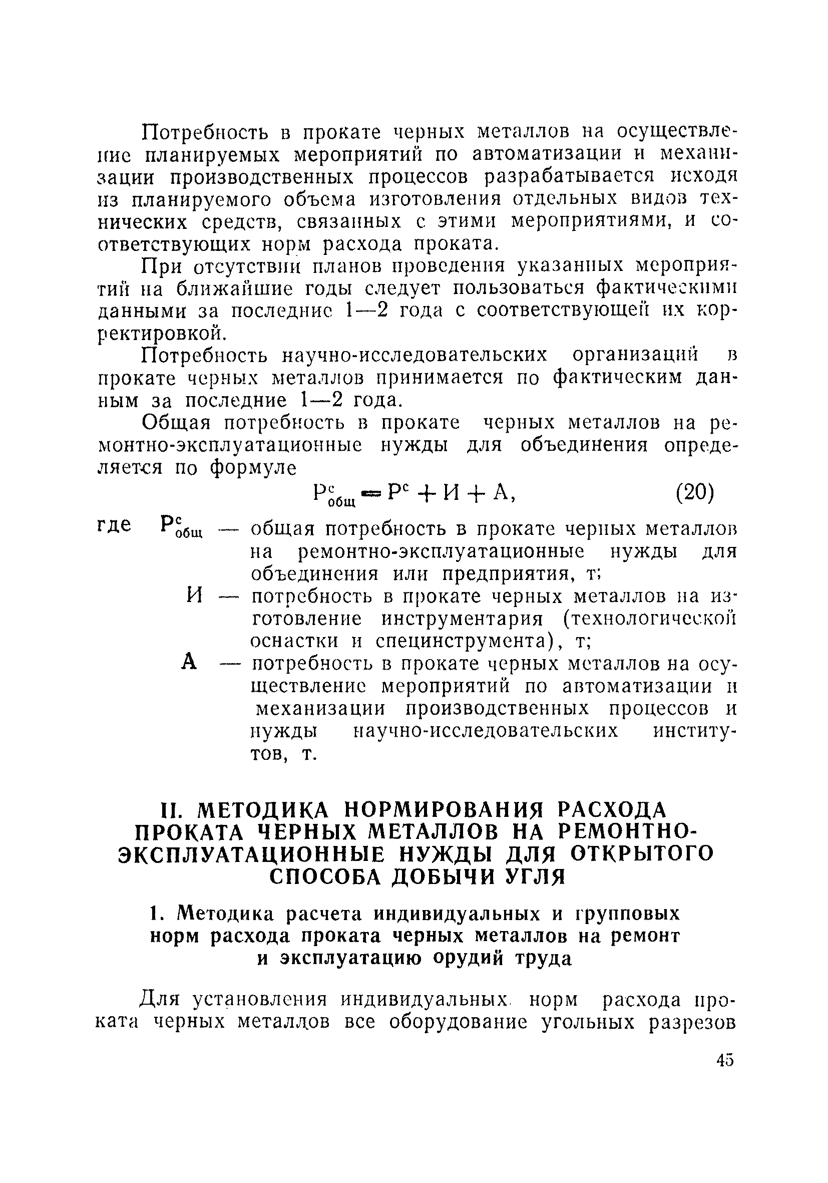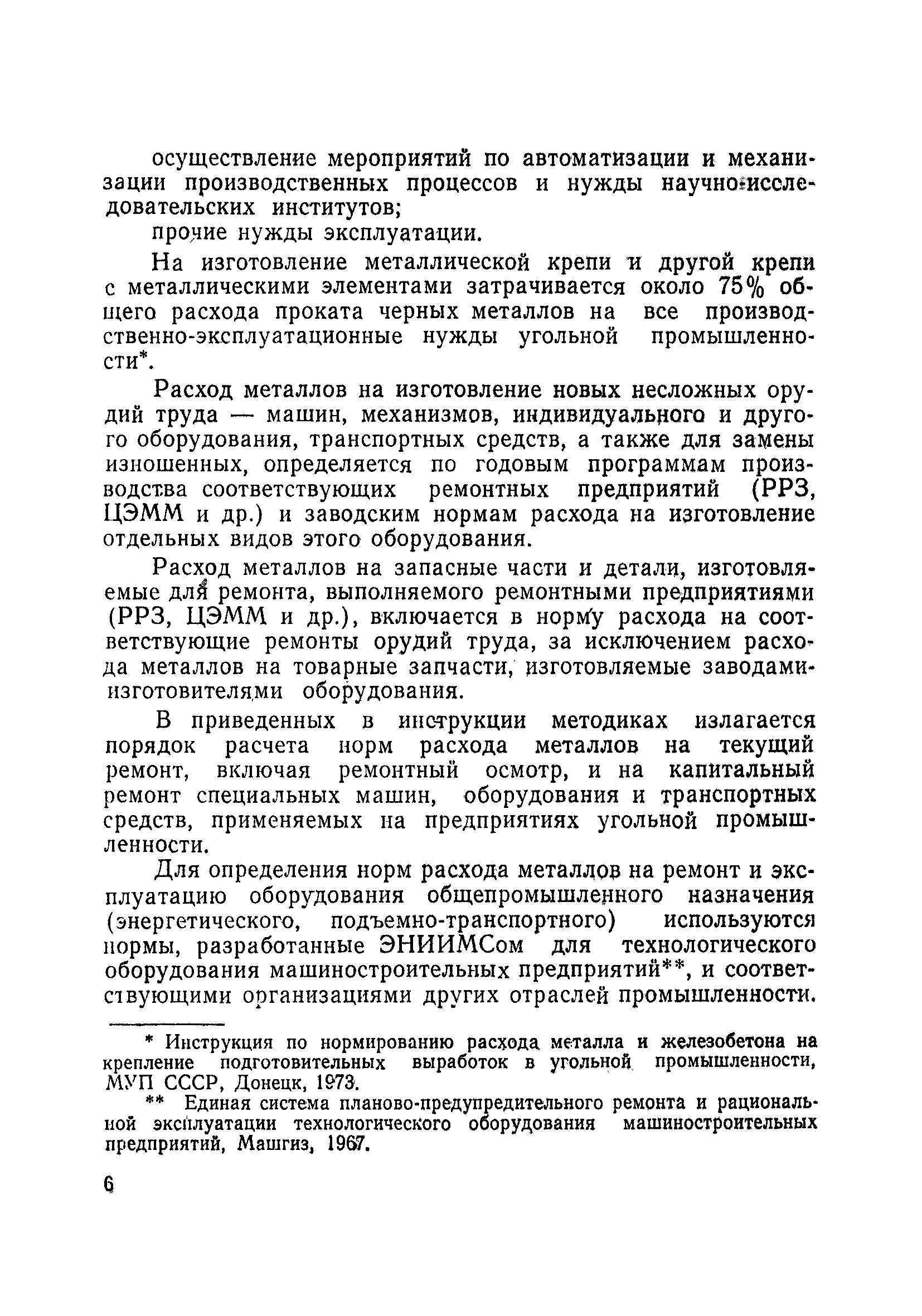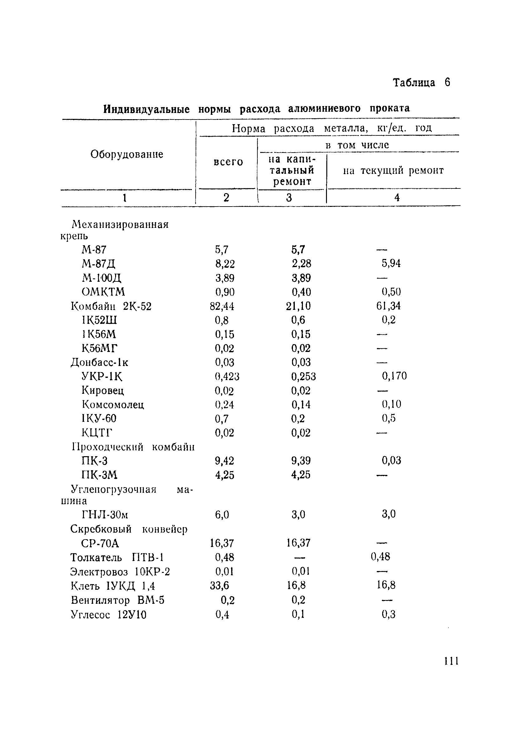 | Оглавление: | Общие положения Часть I. Инструкция во нормированию расхода проката черных металлов на ремонтно-эксплуатационные нужды для угольной промышленности I Методика нормирования расхода проката черных металлов на ремонтно-эксплуатационные нужды для подземного способа добычи и обогащения угля II. Методика нормирования расхода проката черных металлов на ремонтно-эксплуатационные нужды для открытого способа добычи угля III. Основные направления по экономии проката черных металлов IV. Примеры расчета потребности и сводных норм расхода проката черных металлов для объединения и предприятия V. Нормы расхода проката черных металлов VI. Формы для расчета норм расхода проката черных металлов Часть II. Инструкция по нормированию расхода цветных металлов на ремонтно-эксплуатационные нужды для угольной промышленности I. Методика нормирования расхода цветных металлов на ремонтно-эксплуатационные нужды для подземного способа добычи и обогащения угля II. Методика нормирования расхода цветных металлов на ремонтно-эксплуатационные нужды для открытого способа добычи угля III. Основные направления по экономии цветных металлов IV. Примеры расчета сводных норм расхода цветных металлов для объединения и предприятия V. Нормы расхода цветных металлов VI. Формы для расчета норм расхода цветных металлов Приложение Перечень оборудования, для которого разработаны индивидуальные нормы расхода на ремонт и эксплуатацию горношахтного оборудования |