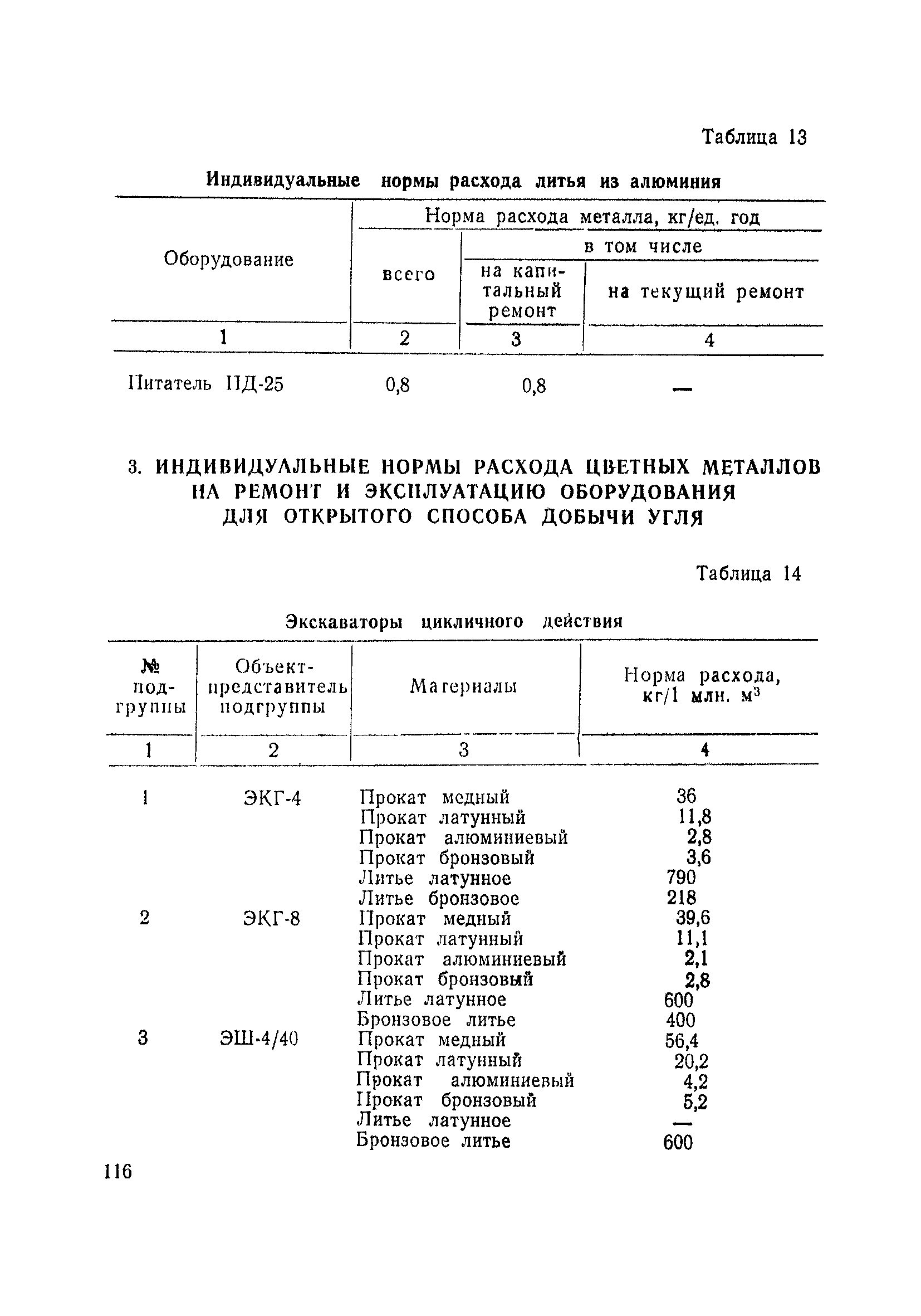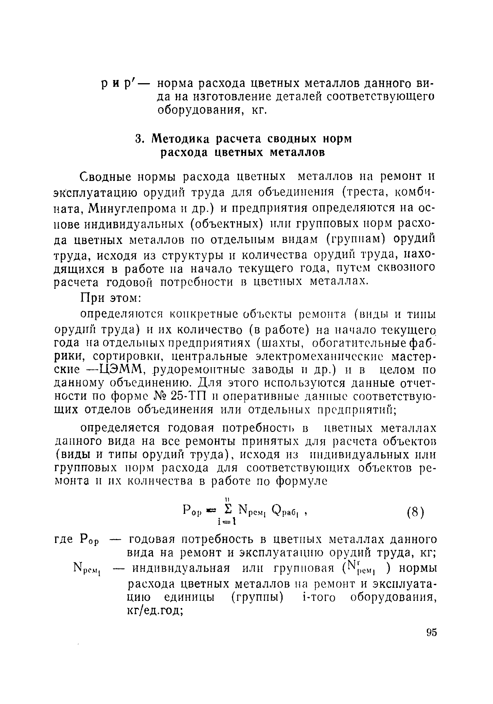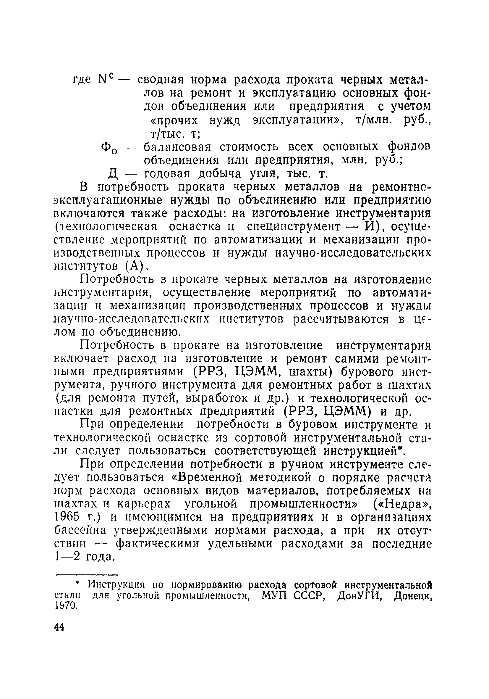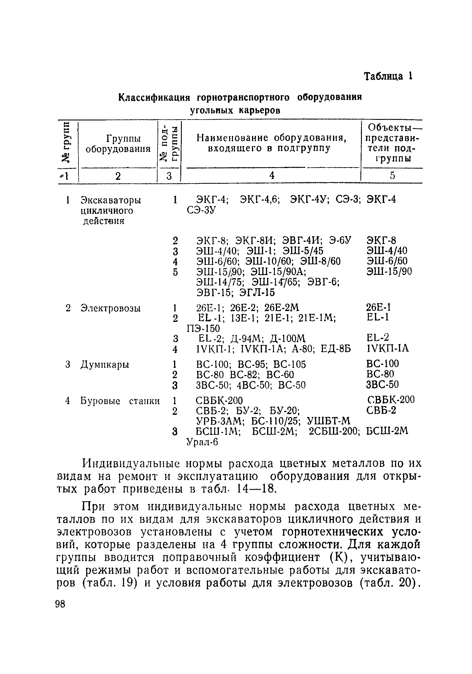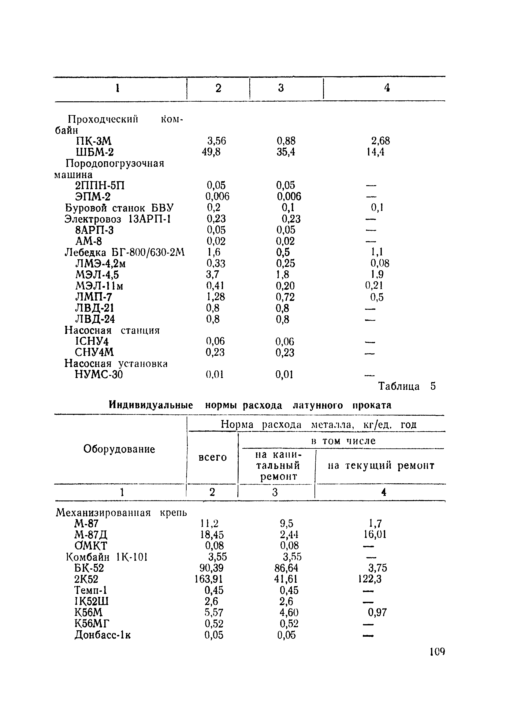 | Оглавление: | Общие положения Часть I. Инструкция во нормированию расхода проката черных металлов на ремонтно-эксплуатационные нужды для угольной промышленности I Методика нормирования расхода проката черных металлов на ремонтно-эксплуатационные нужды для подземного способа добычи и обогащения угля II. Методика нормирования расхода проката черных металлов на ремонтно-эксплуатационные нужды для открытого способа добычи угля III. Основные направления по экономии проката черных металлов IV. Примеры расчета потребности и сводных норм расхода проката черных металлов для объединения и предприятия V. Нормы расхода проката черных металлов VI. Формы для расчета норм расхода проката черных металлов Часть II. Инструкция по нормированию расхода цветных металлов на ремонтно-эксплуатационные нужды для угольной промышленности I. Методика нормирования расхода цветных металлов на ремонтно-эксплуатационные нужды для подземного способа добычи и обогащения угля II. Методика нормирования расхода цветных металлов на ремонтно-эксплуатационные нужды для открытого способа добычи угля III. Основные направления по экономии цветных металлов IV. Примеры расчета сводных норм расхода цветных металлов для объединения и предприятия V. Нормы расхода цветных металлов VI. Формы для расчета норм расхода цветных металлов Приложение Перечень оборудования, для которого разработаны индивидуальные нормы расхода на ремонт и эксплуатацию горношахтного оборудования |