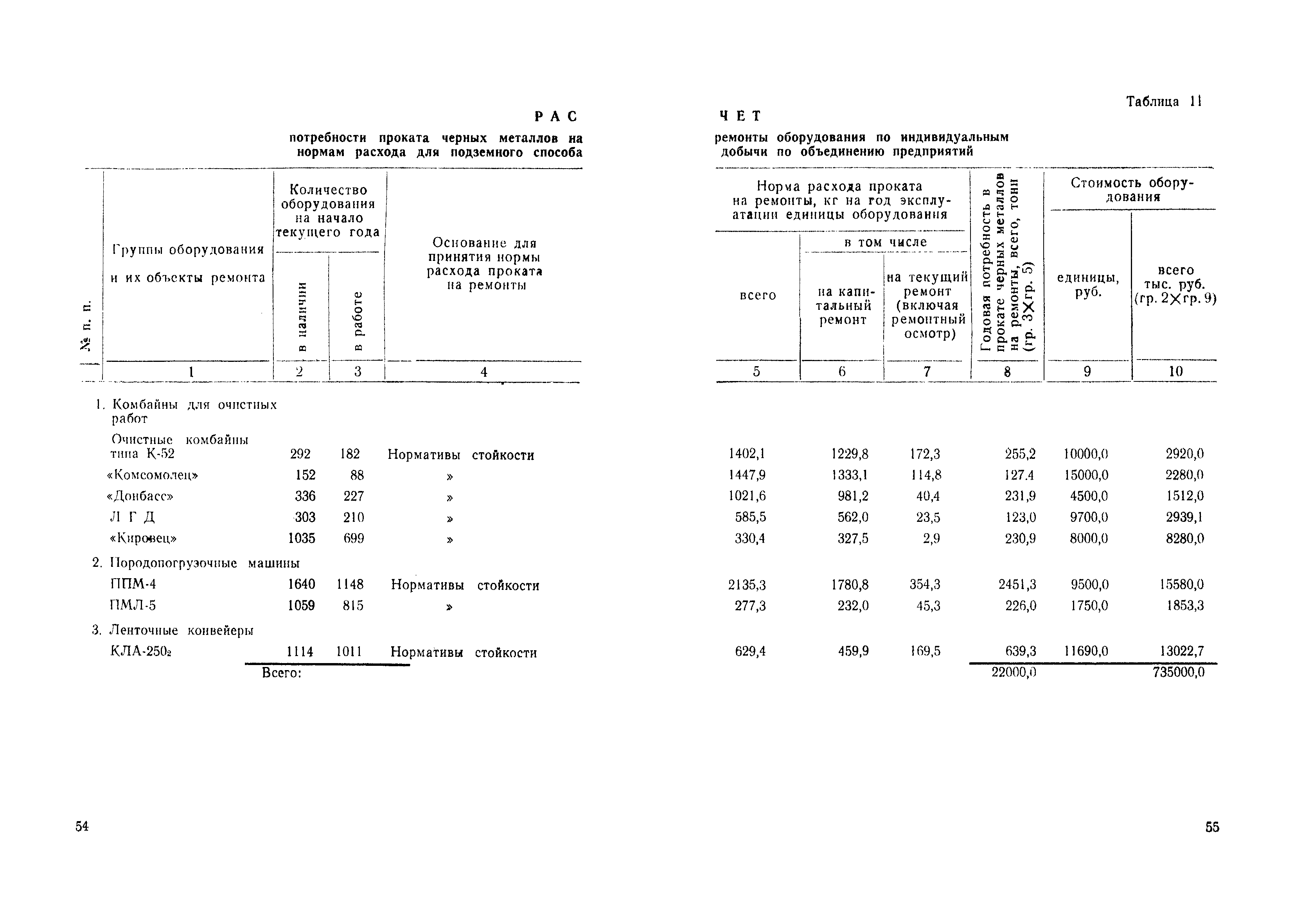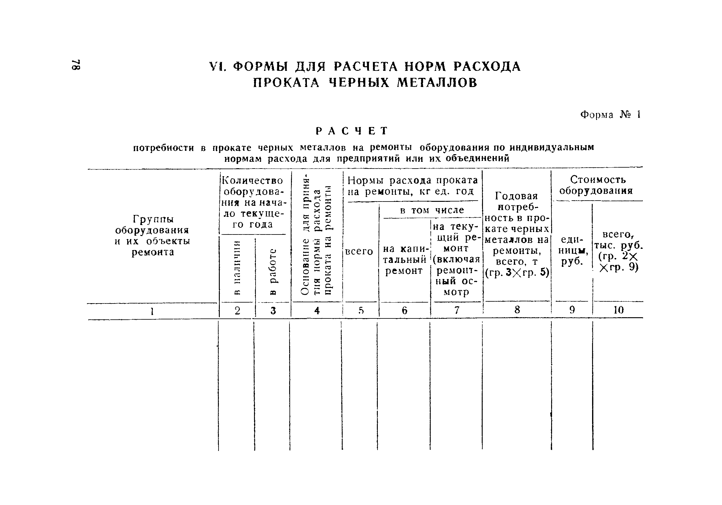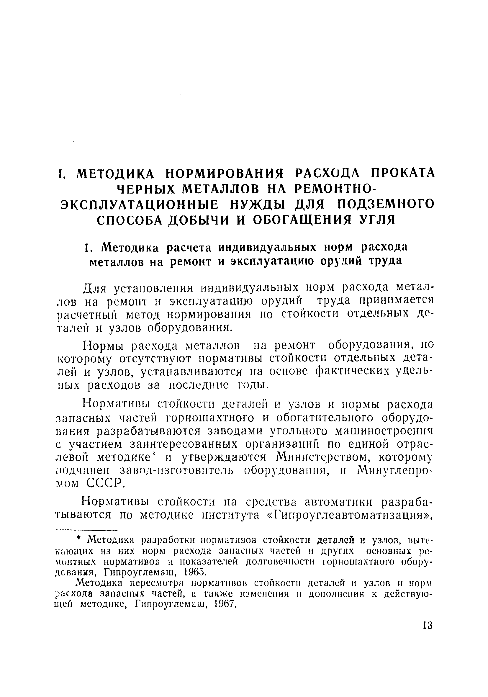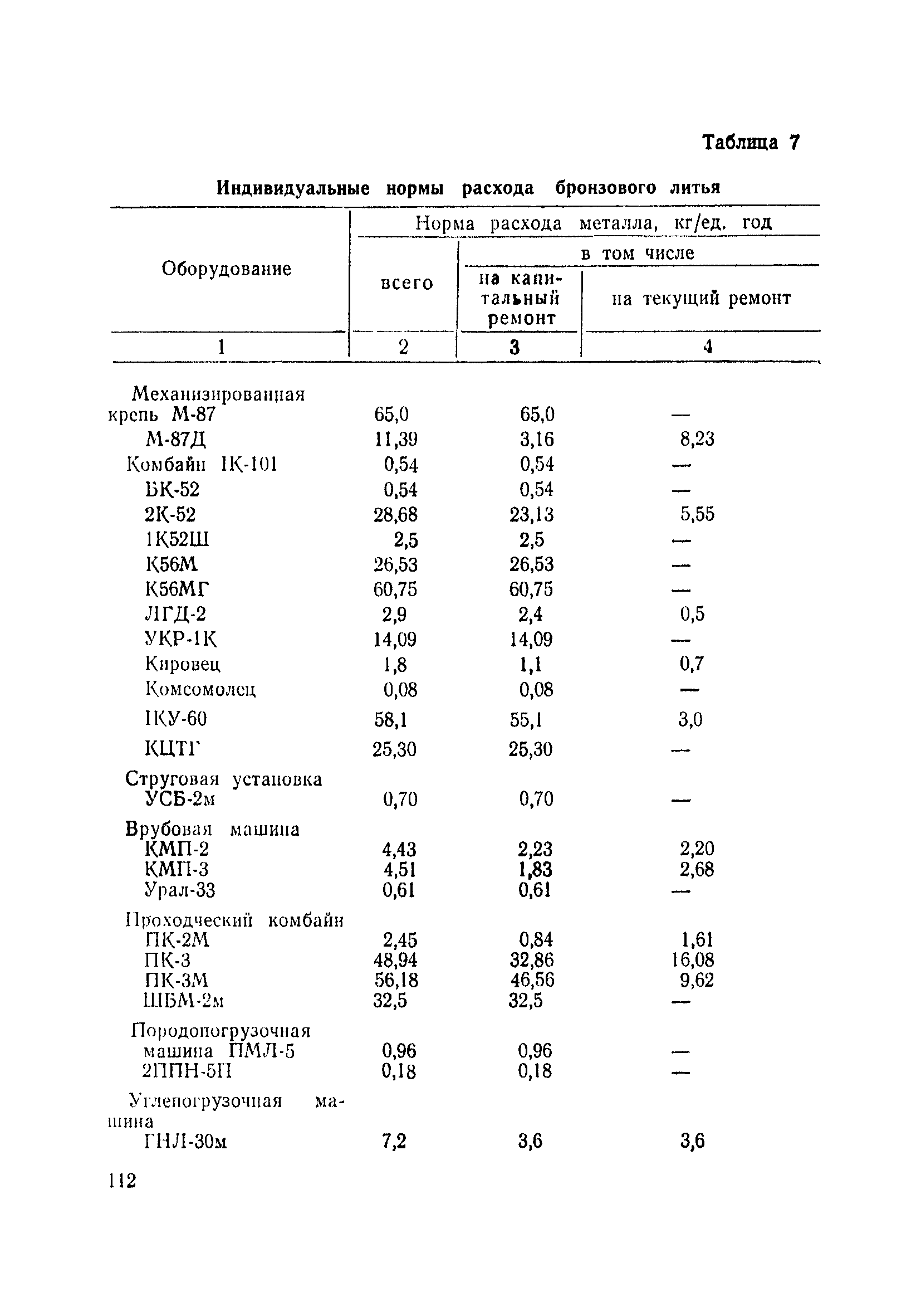 | Оглавление: | Общие положения Часть I. Инструкция во нормированию расхода проката черных металлов на ремонтно-эксплуатационные нужды для угольной промышленности I Методика нормирования расхода проката черных металлов на ремонтно-эксплуатационные нужды для подземного способа добычи и обогащения угля II. Методика нормирования расхода проката черных металлов на ремонтно-эксплуатационные нужды для открытого способа добычи угля III. Основные направления по экономии проката черных металлов IV. Примеры расчета потребности и сводных норм расхода проката черных металлов для объединения и предприятия V. Нормы расхода проката черных металлов VI. Формы для расчета норм расхода проката черных металлов Часть II. Инструкция по нормированию расхода цветных металлов на ремонтно-эксплуатационные нужды для угольной промышленности I. Методика нормирования расхода цветных металлов на ремонтно-эксплуатационные нужды для подземного способа добычи и обогащения угля II. Методика нормирования расхода цветных металлов на ремонтно-эксплуатационные нужды для открытого способа добычи угля III. Основные направления по экономии цветных металлов IV. Примеры расчета сводных норм расхода цветных металлов для объединения и предприятия V. Нормы расхода цветных металлов VI. Формы для расчета норм расхода цветных металлов Приложение Перечень оборудования, для которого разработаны индивидуальные нормы расхода на ремонт и эксплуатацию горношахтного оборудования |